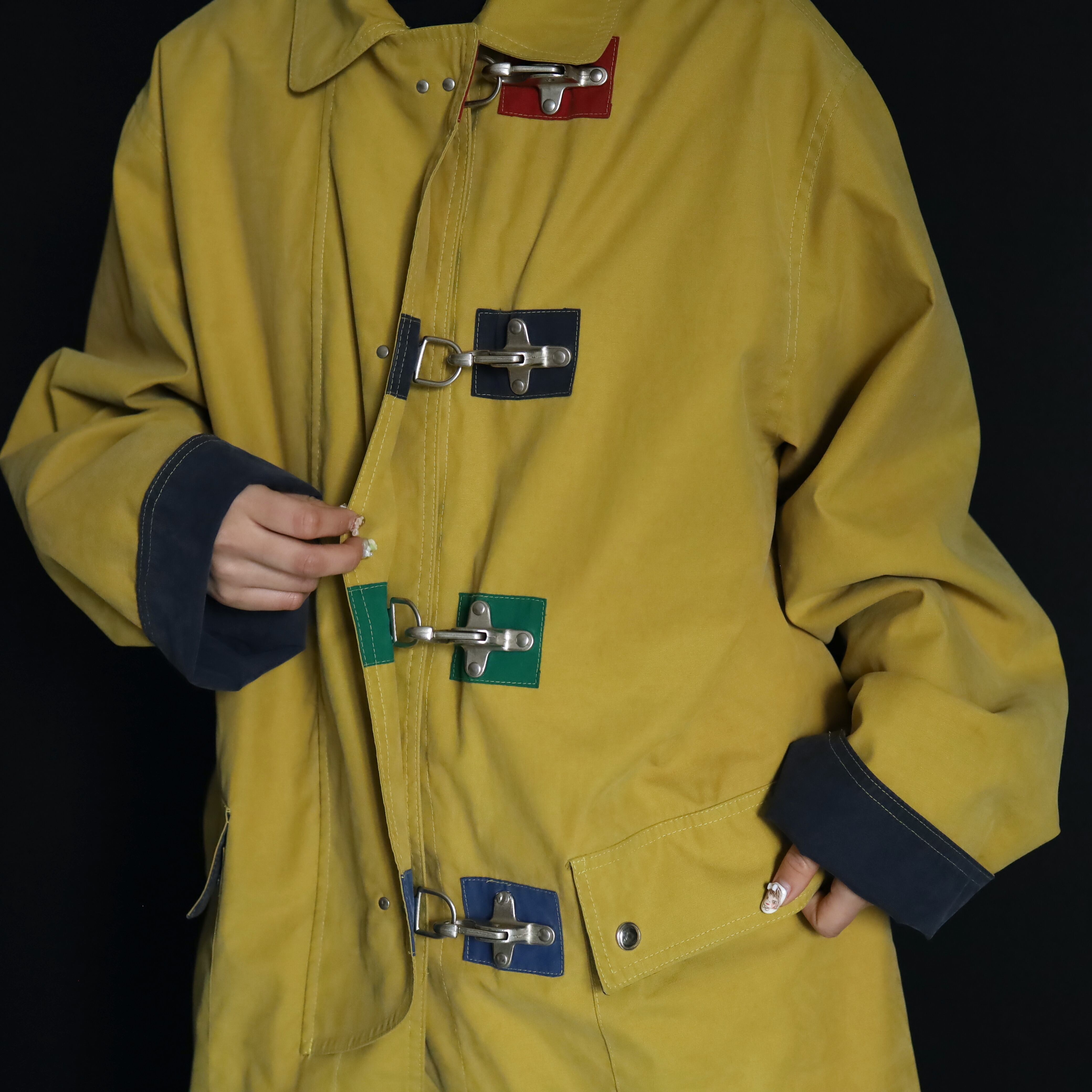 ファイアマンジャケット最大の特徴である,バックルボタンもシルバーでいい表情.
