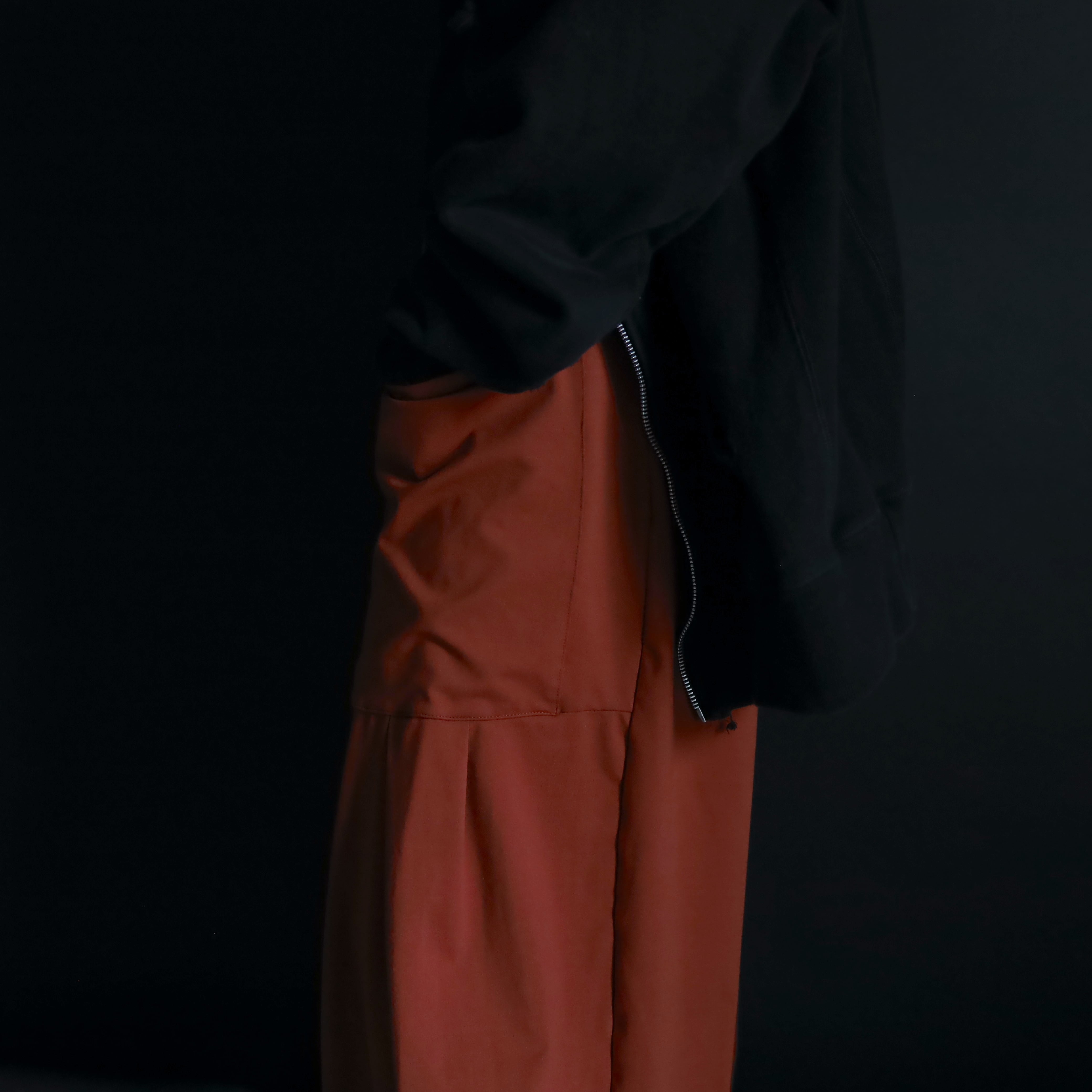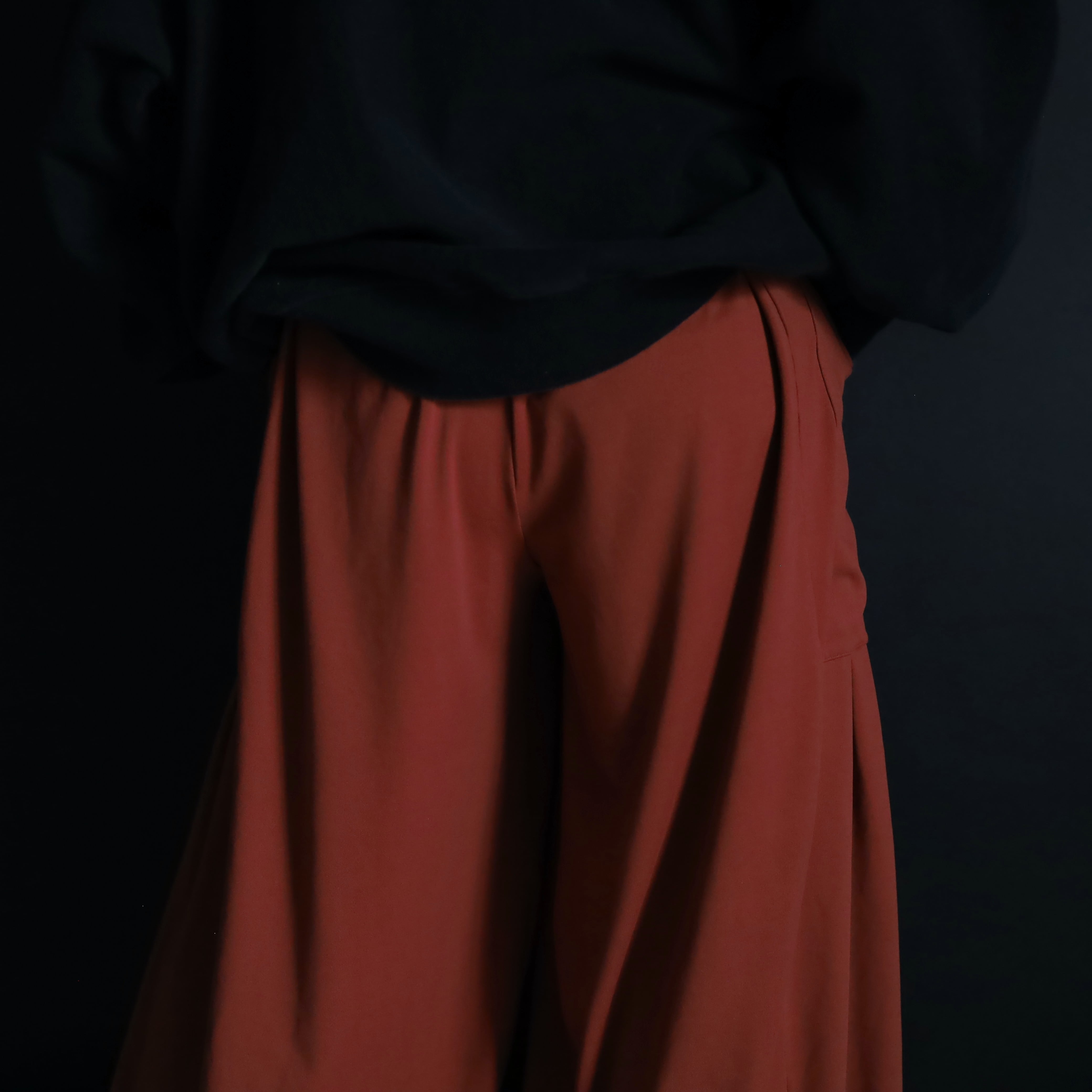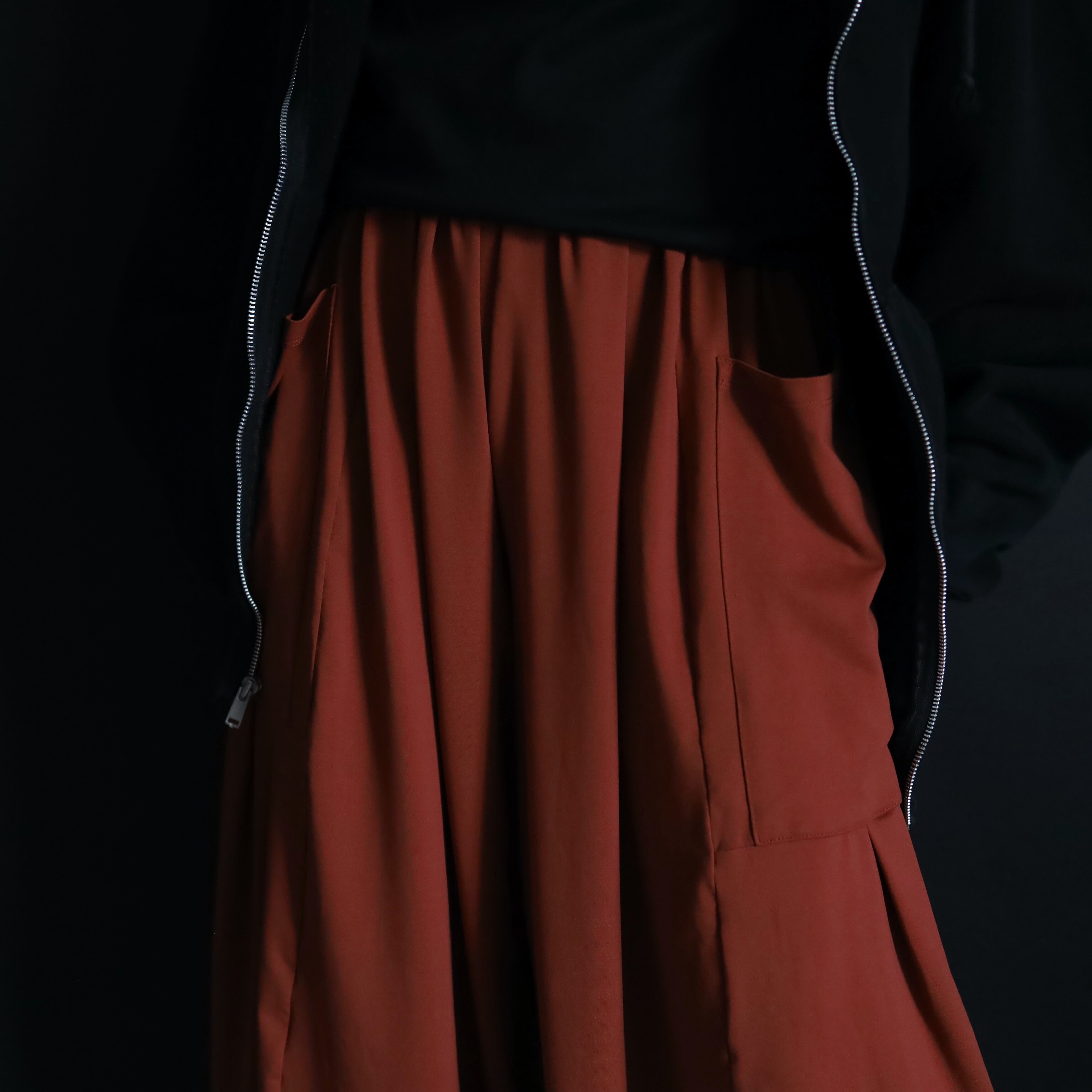 とろんとろんのトロミに加えて,適度なストレッチ性を兼ね備えた履きやすい生地感.