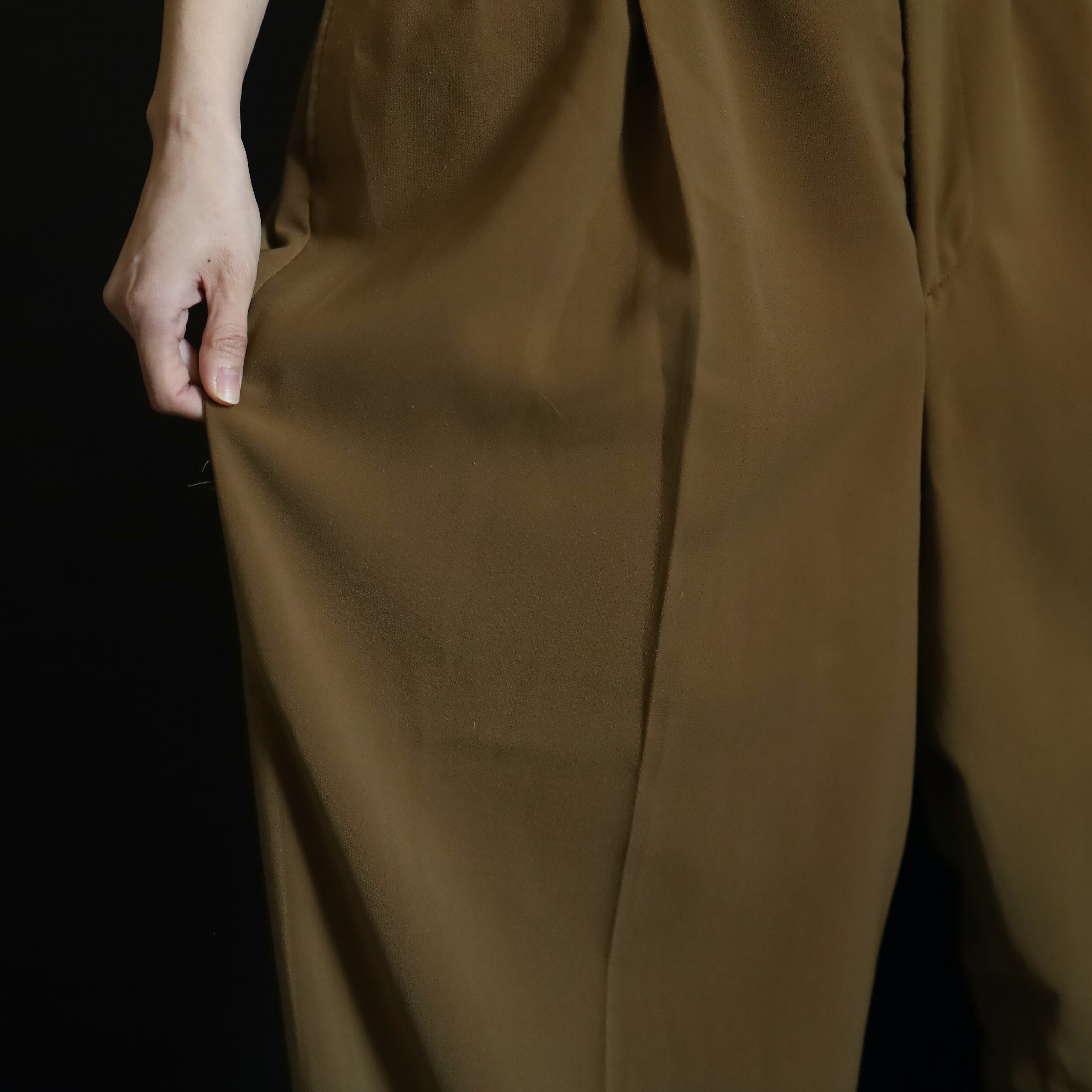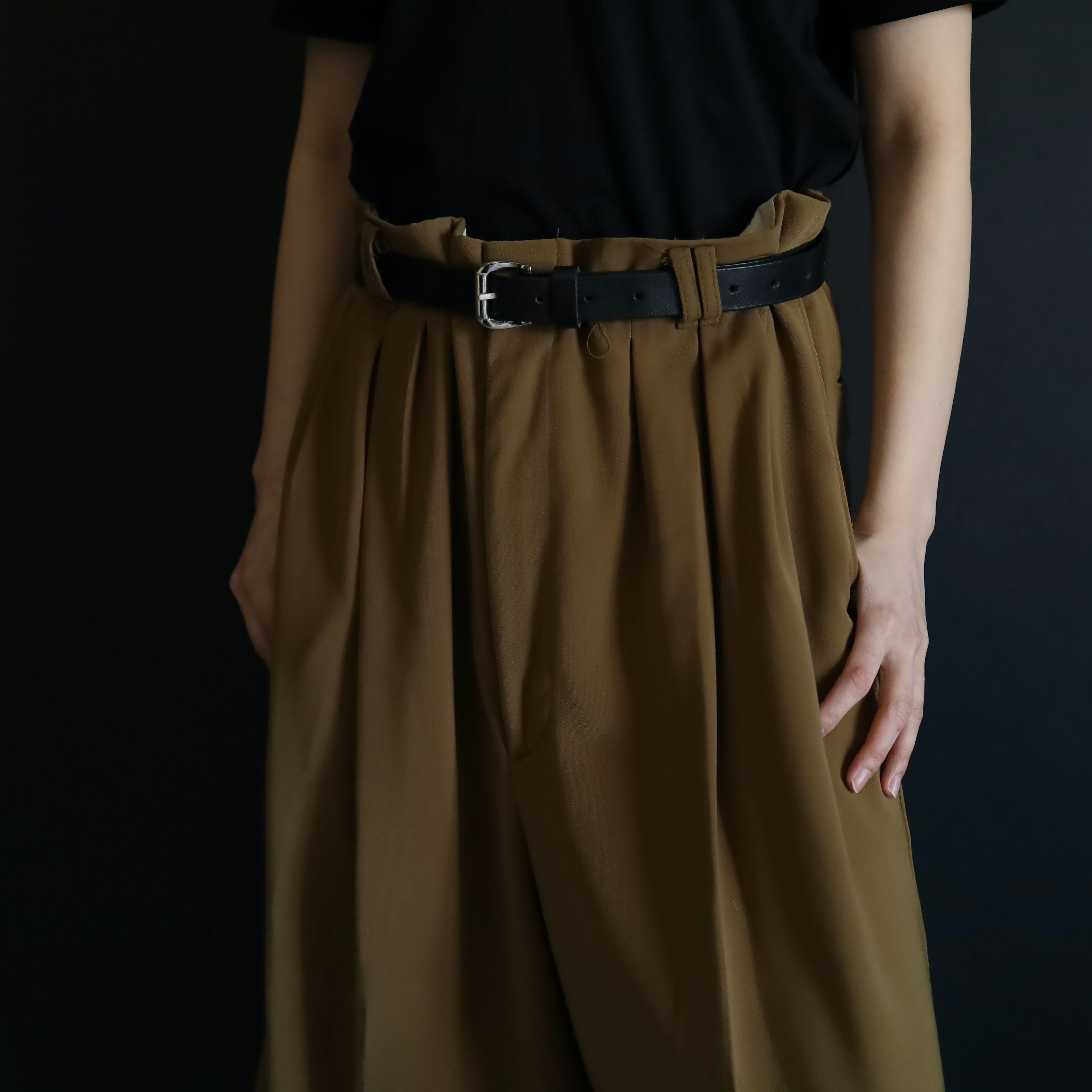ゆったりとしたルーズな仕上がりでありつつ,センタープレスやタックで美しいラインを描く一本.