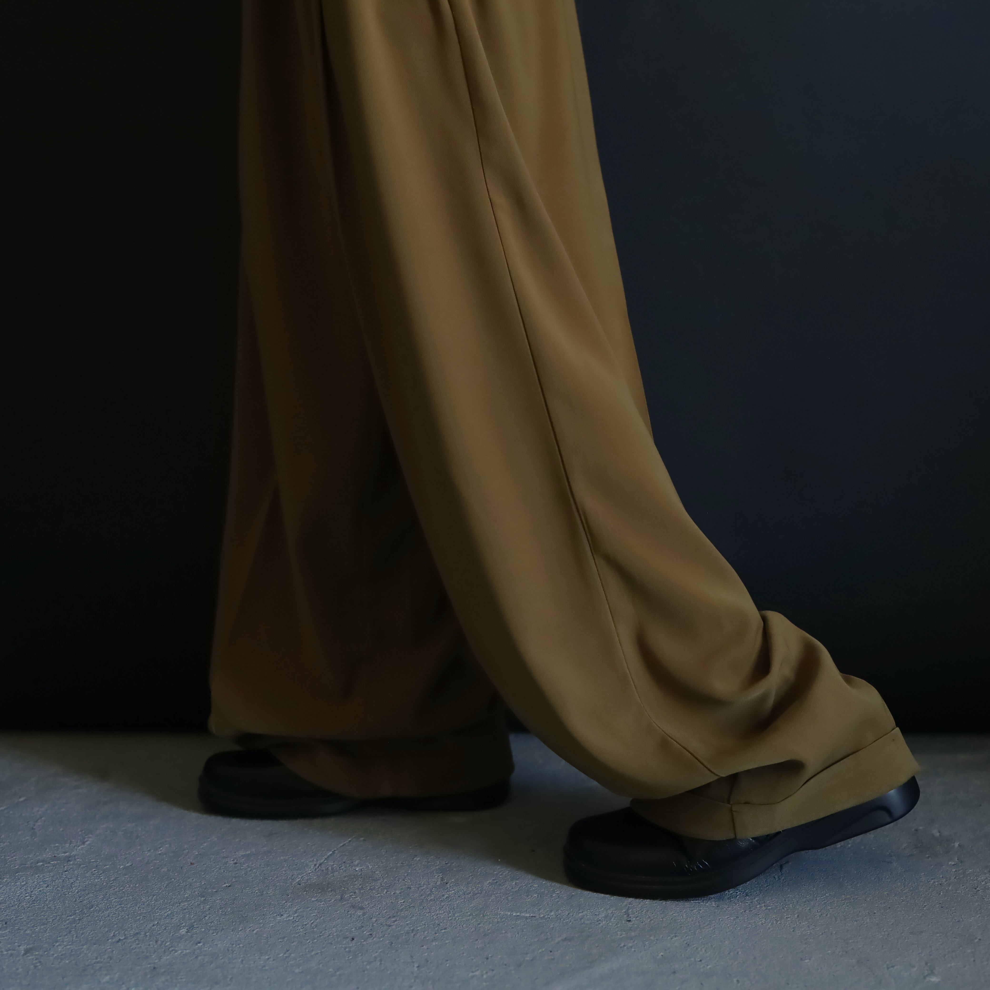 ワイドでルーズ,且つ美しいシルエットのトラウザー.