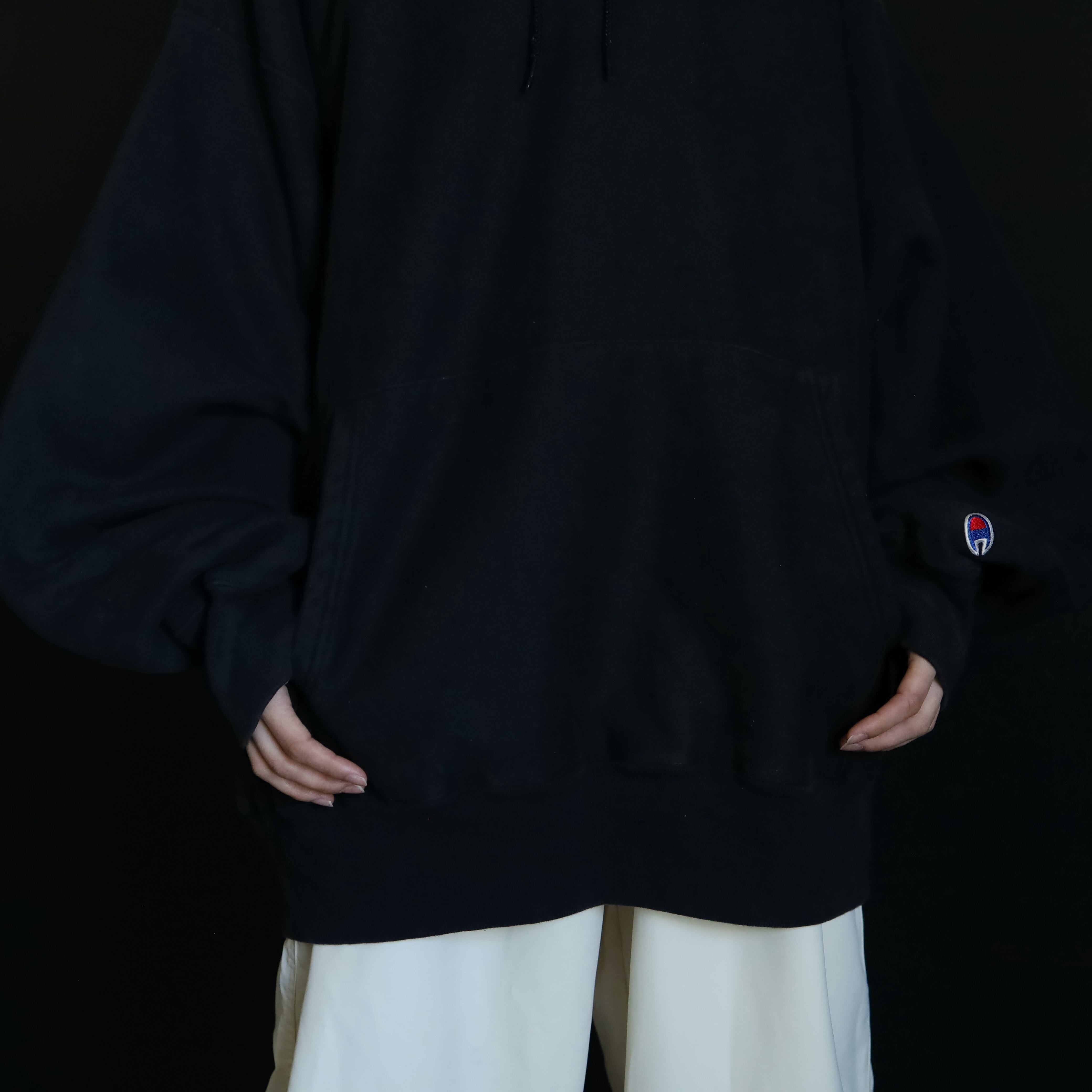 チャンピオンの名作リバースウィーヴシリーズより,前後両面プリントスウェットパーカー.