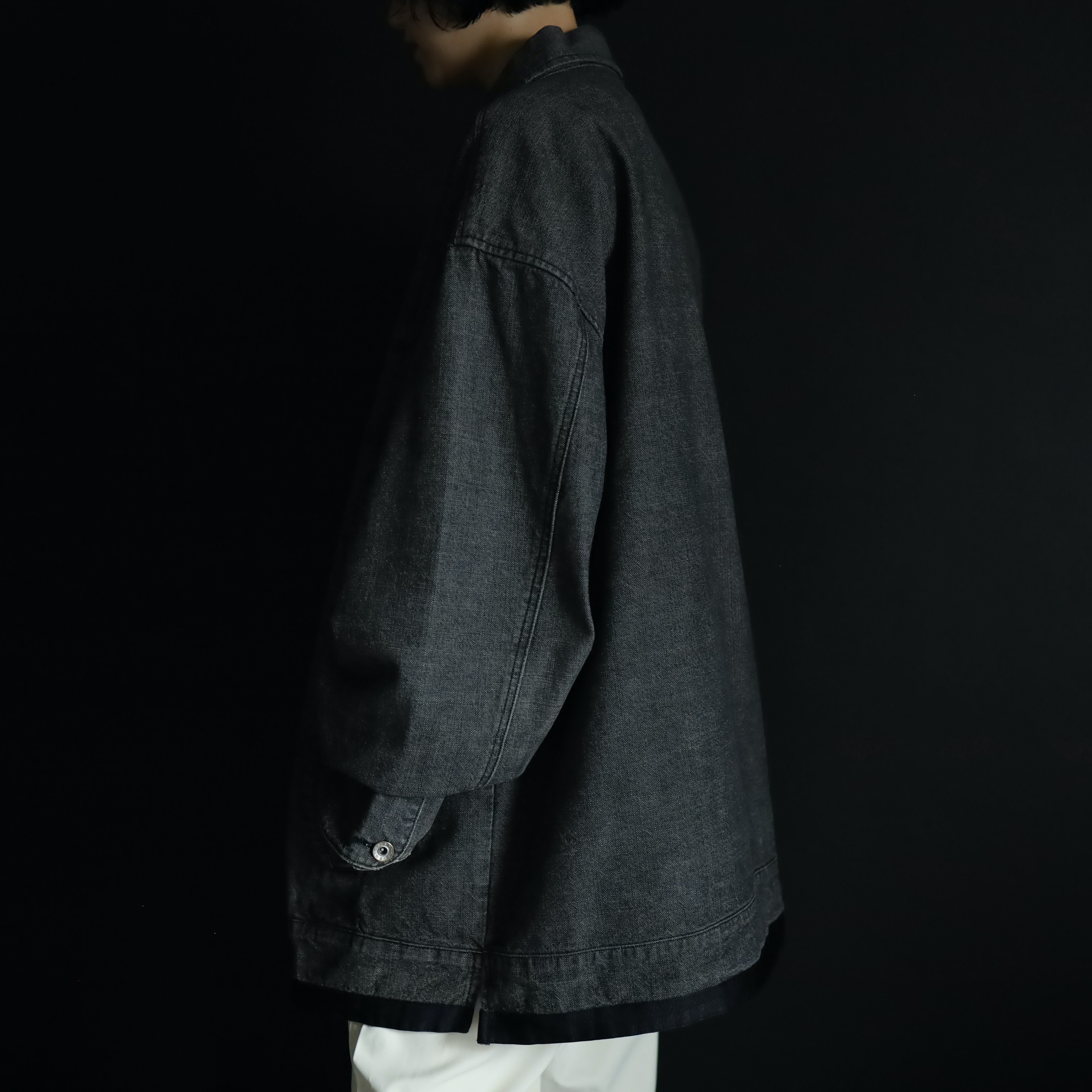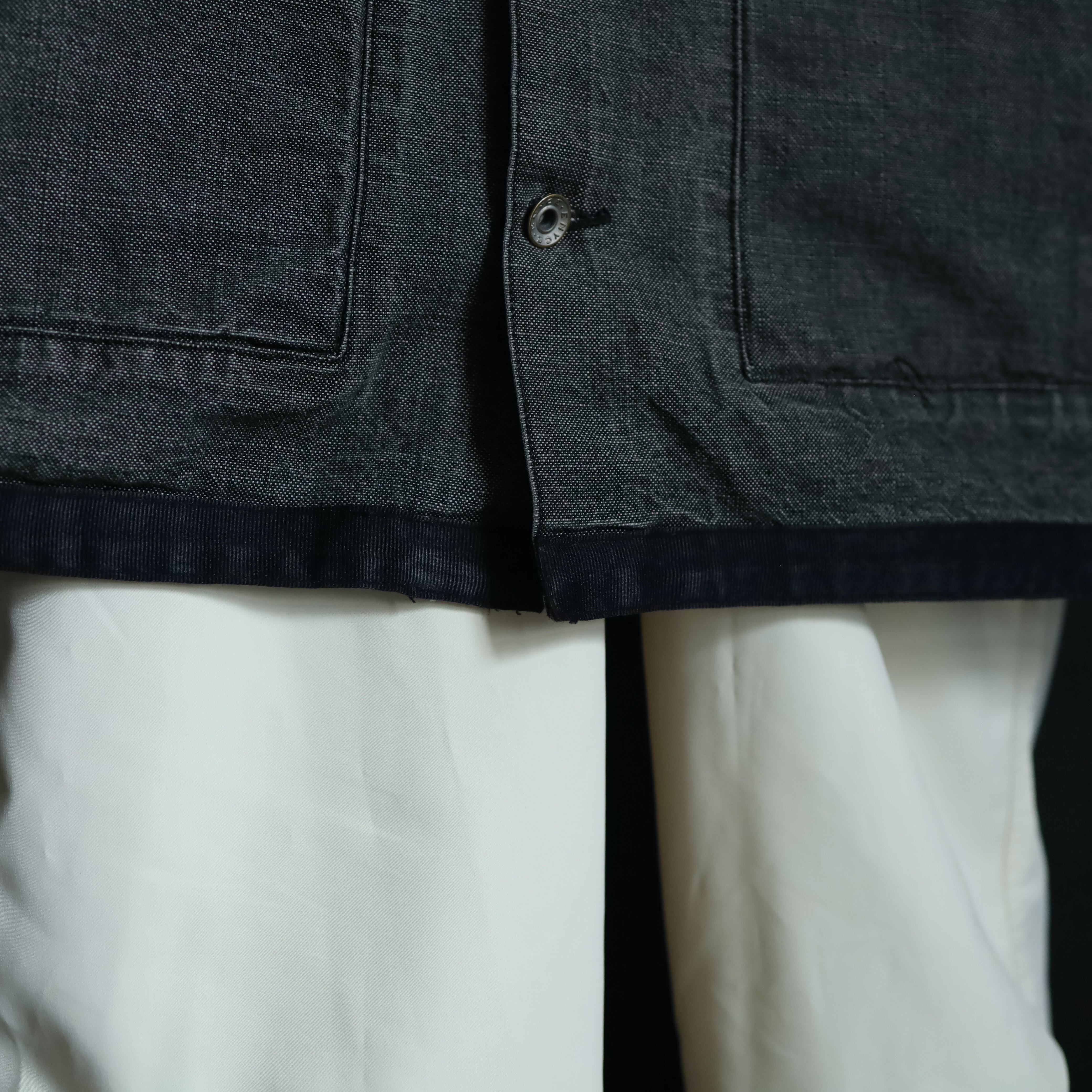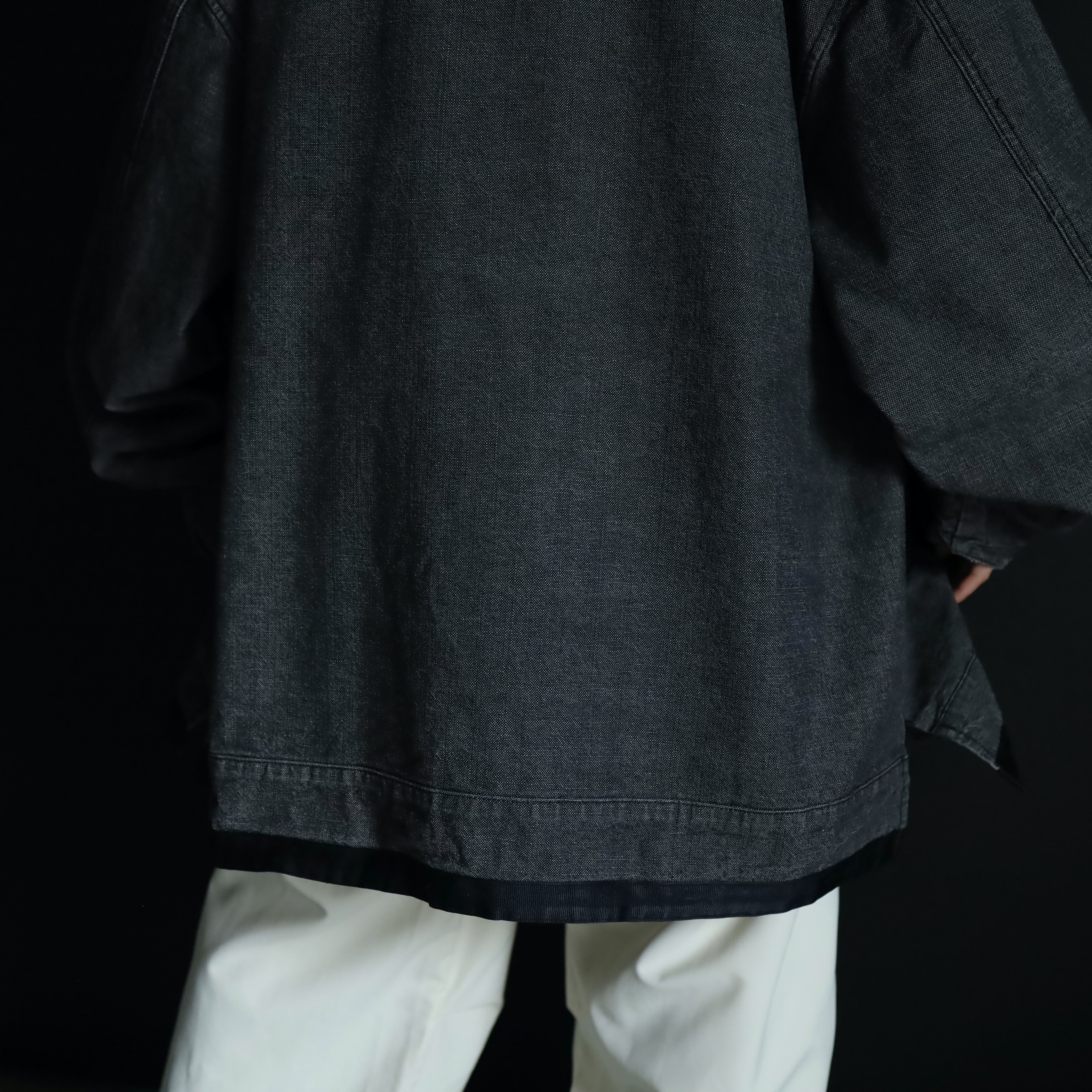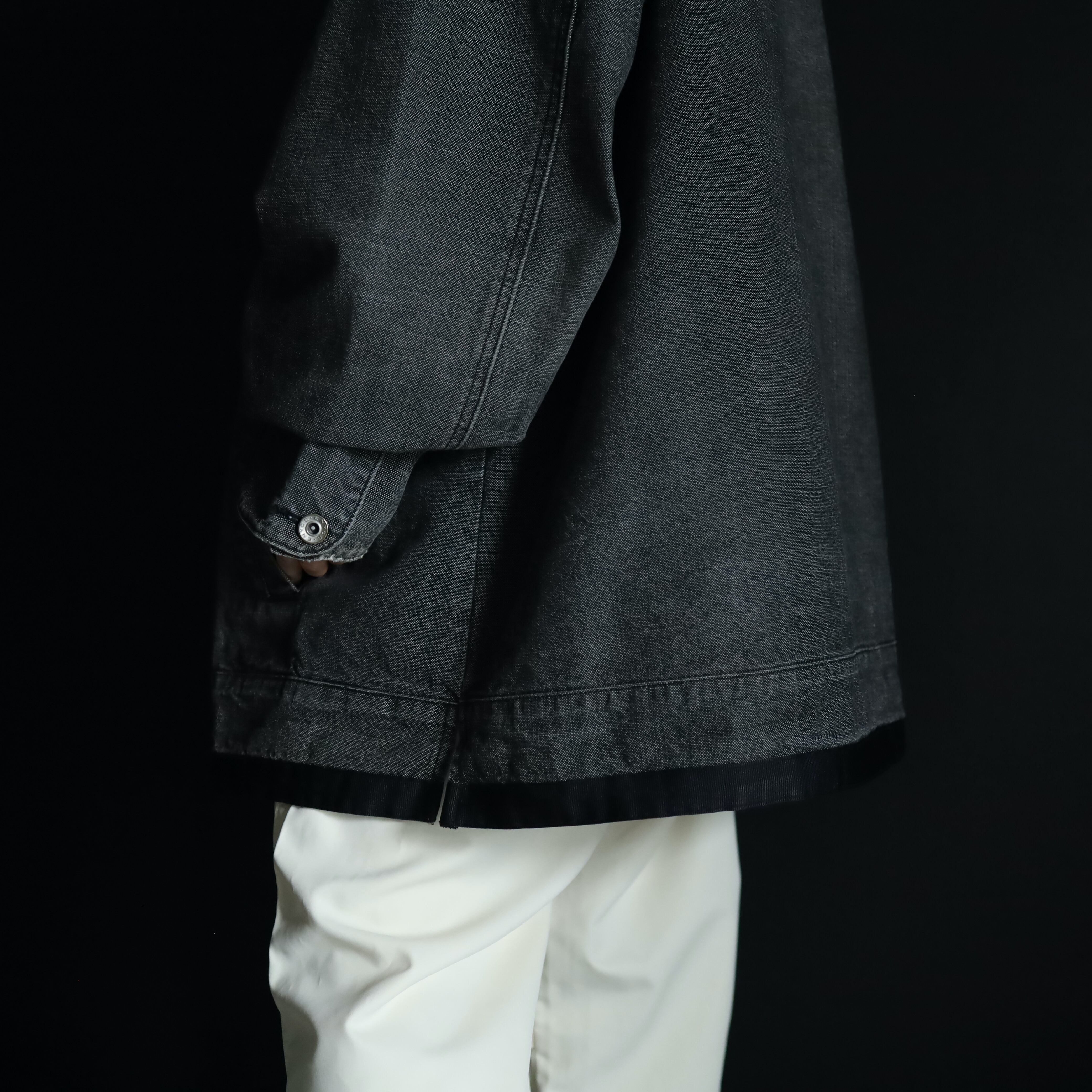 裾元や胸ポケットはブラックのラインで縁取りがされ,薄めのブラックデニムボディの雰囲気を引き締めます.