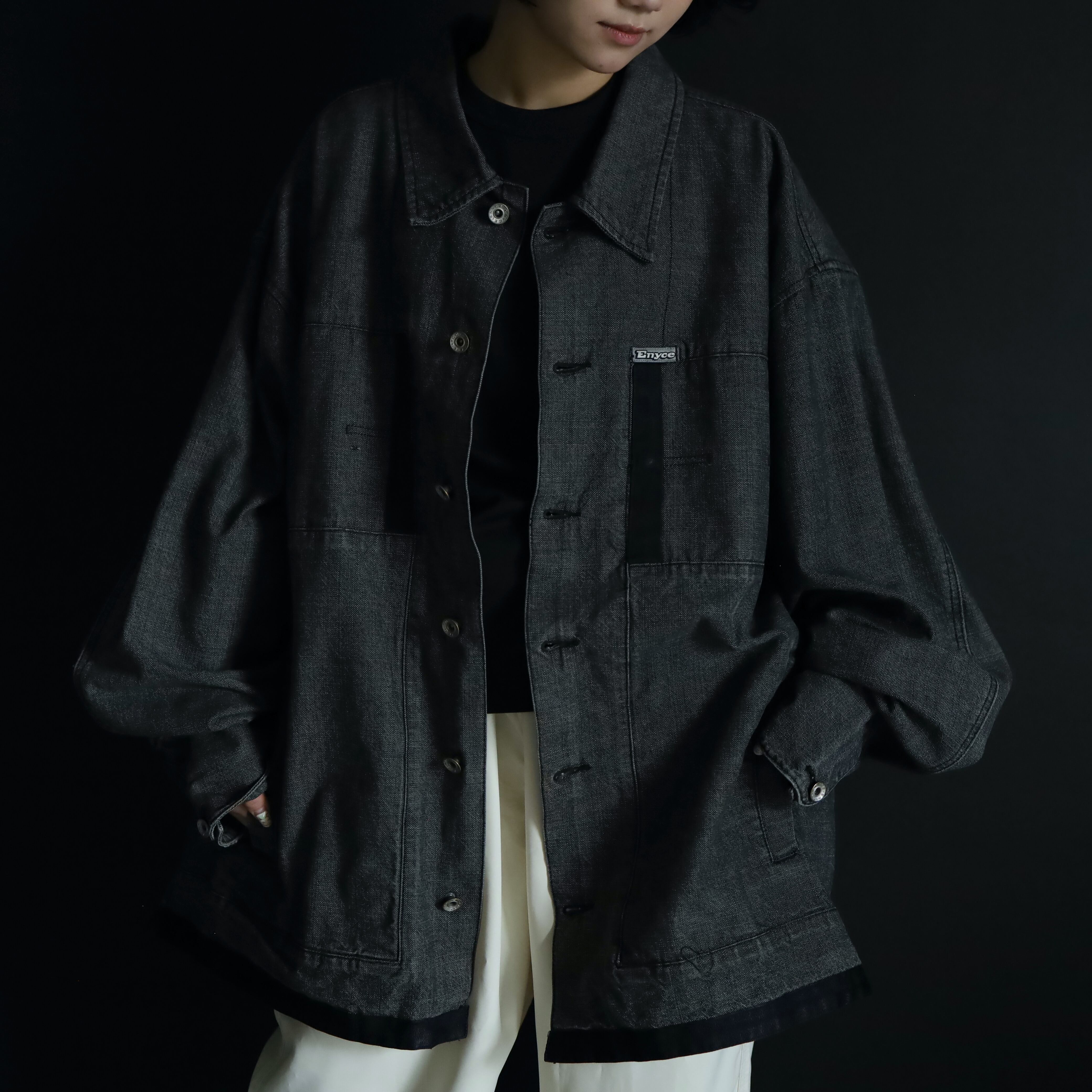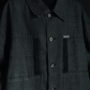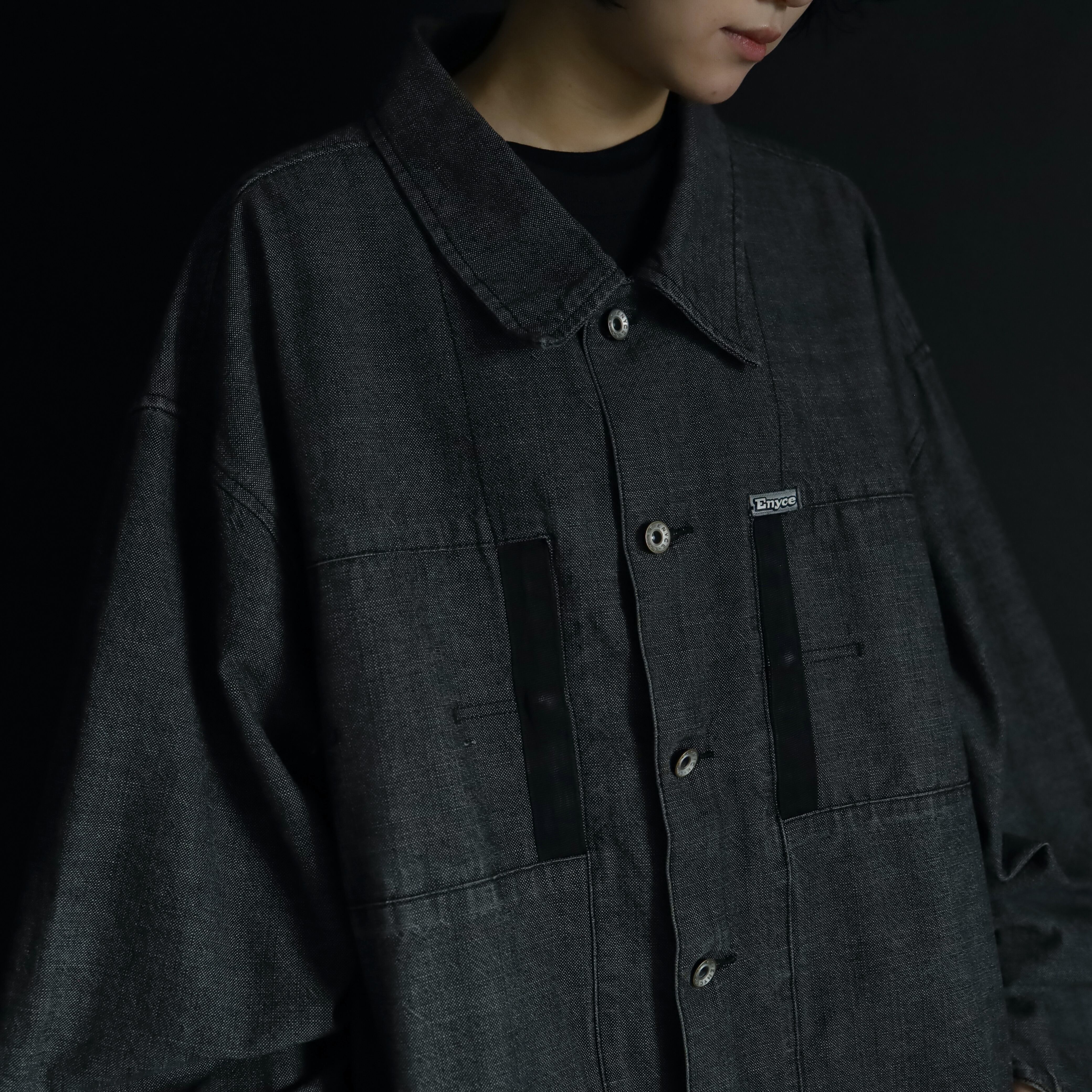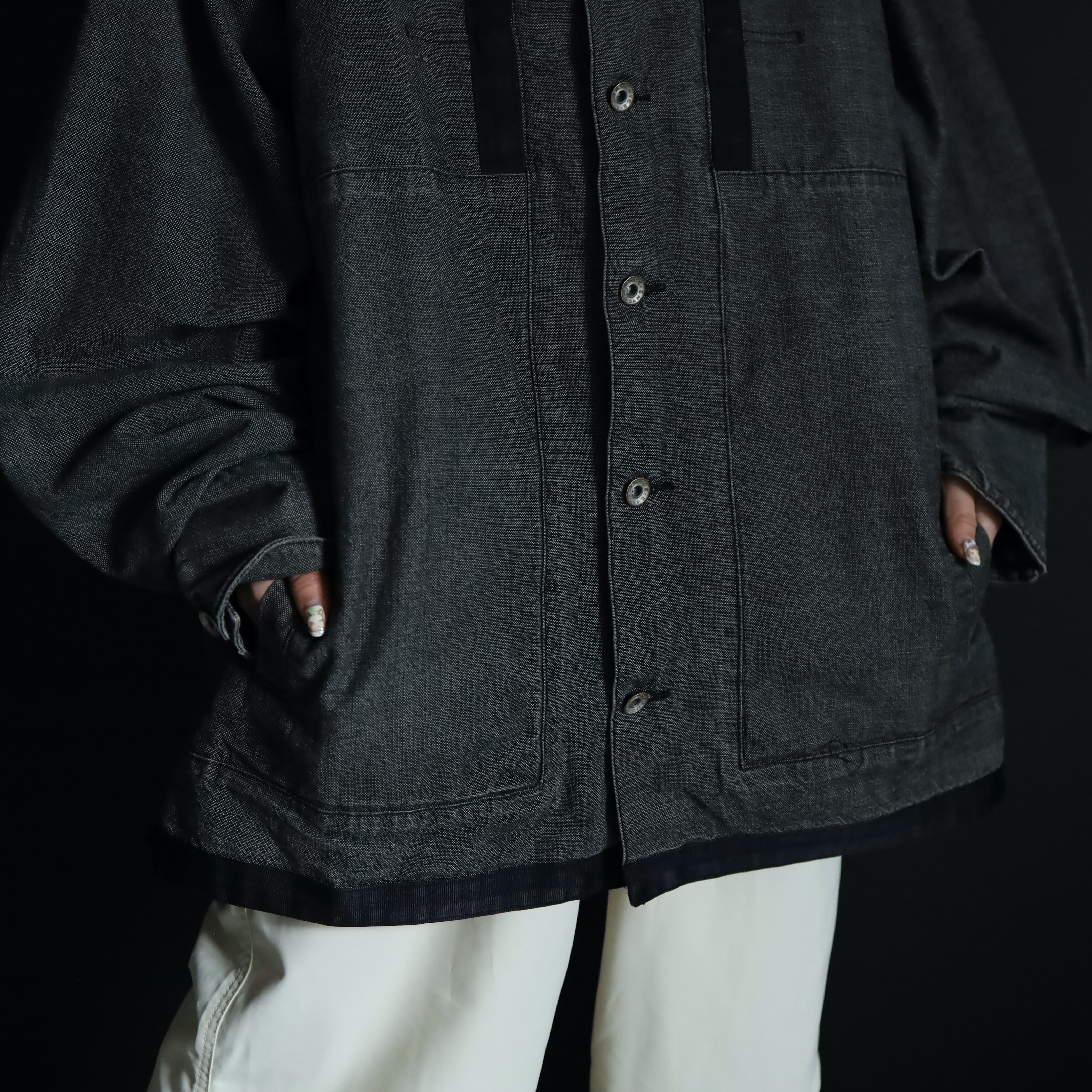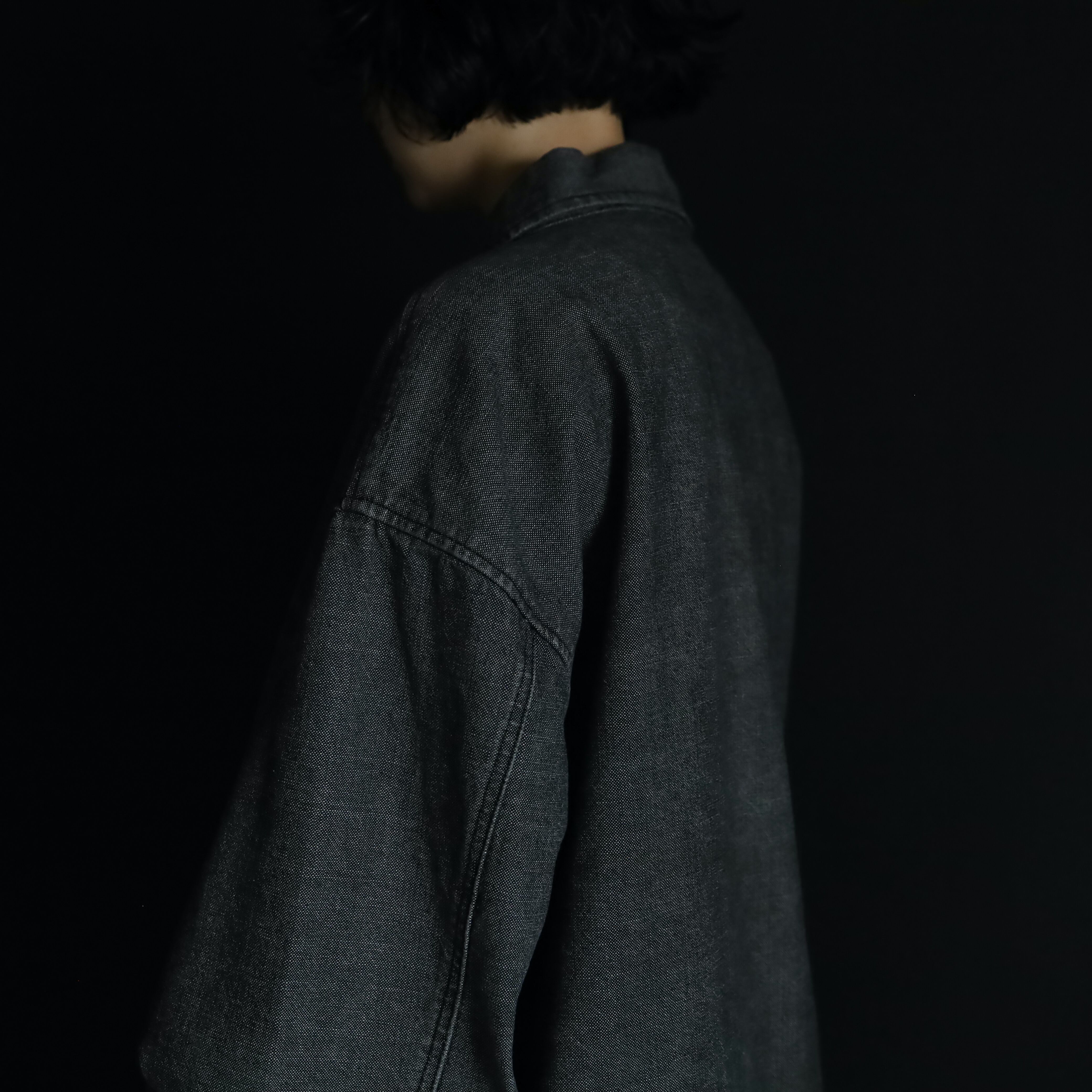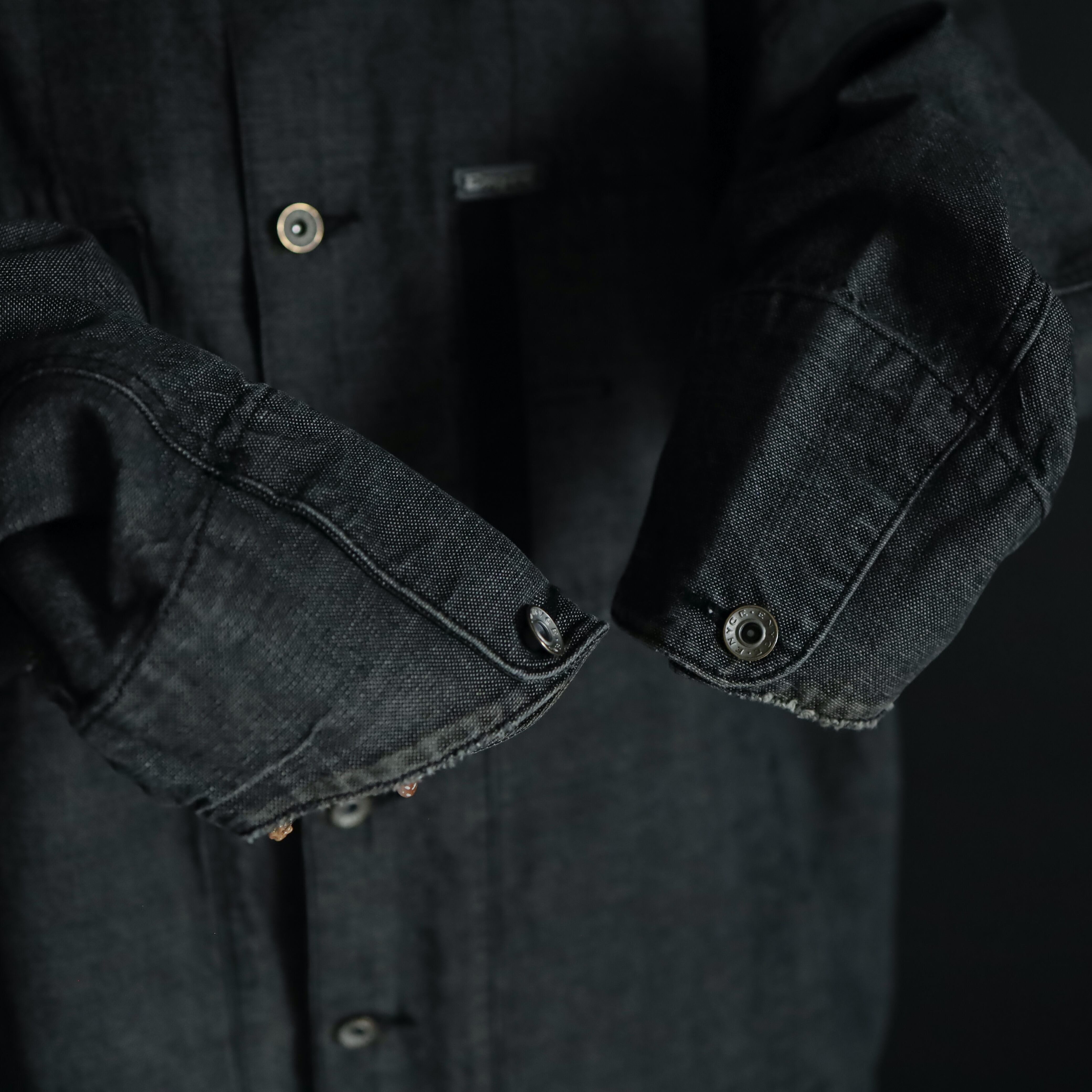 裾元や胸ポケットはブラックのラインで縁取りがされ,薄めのブラックデニムボディの雰囲気を引き締めます.
