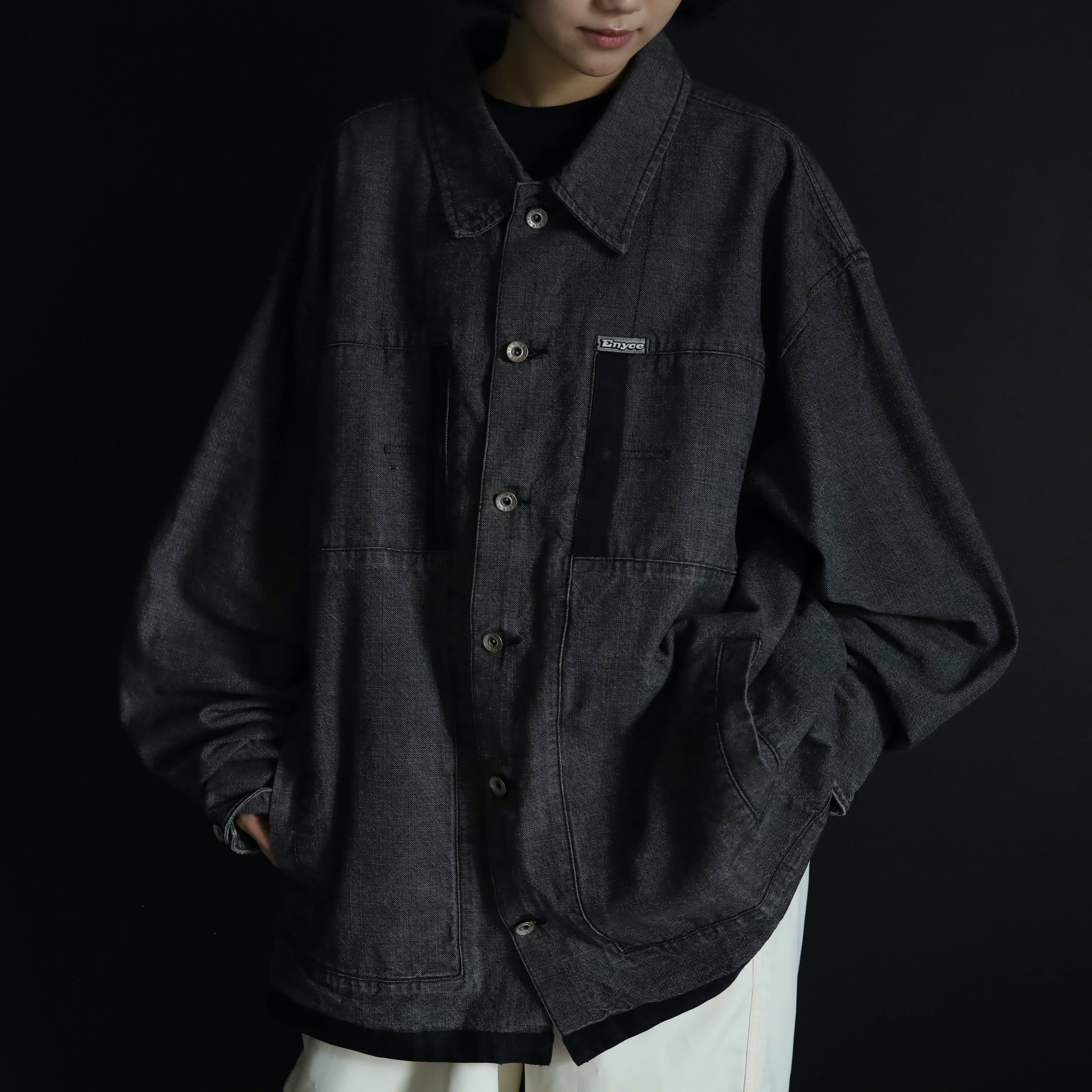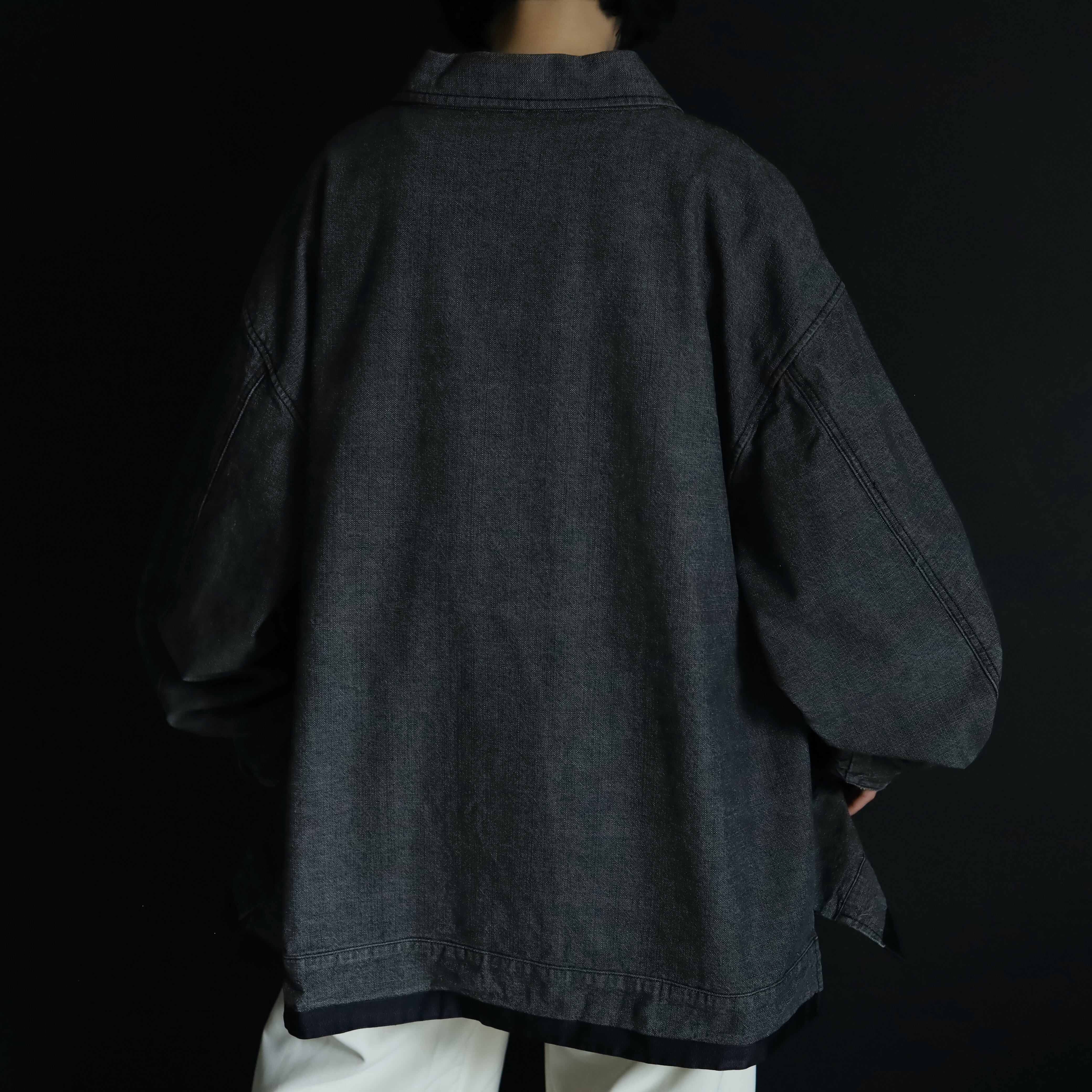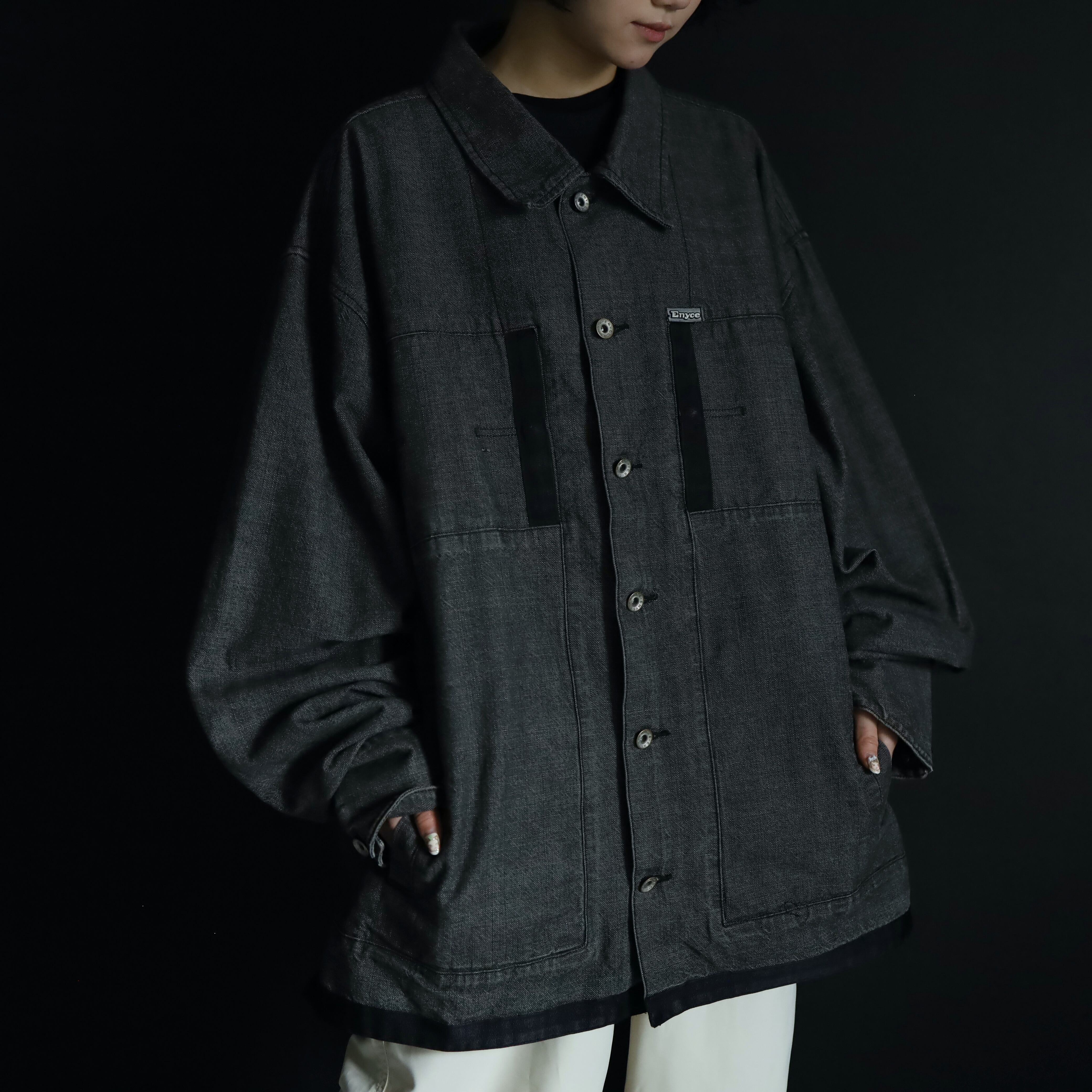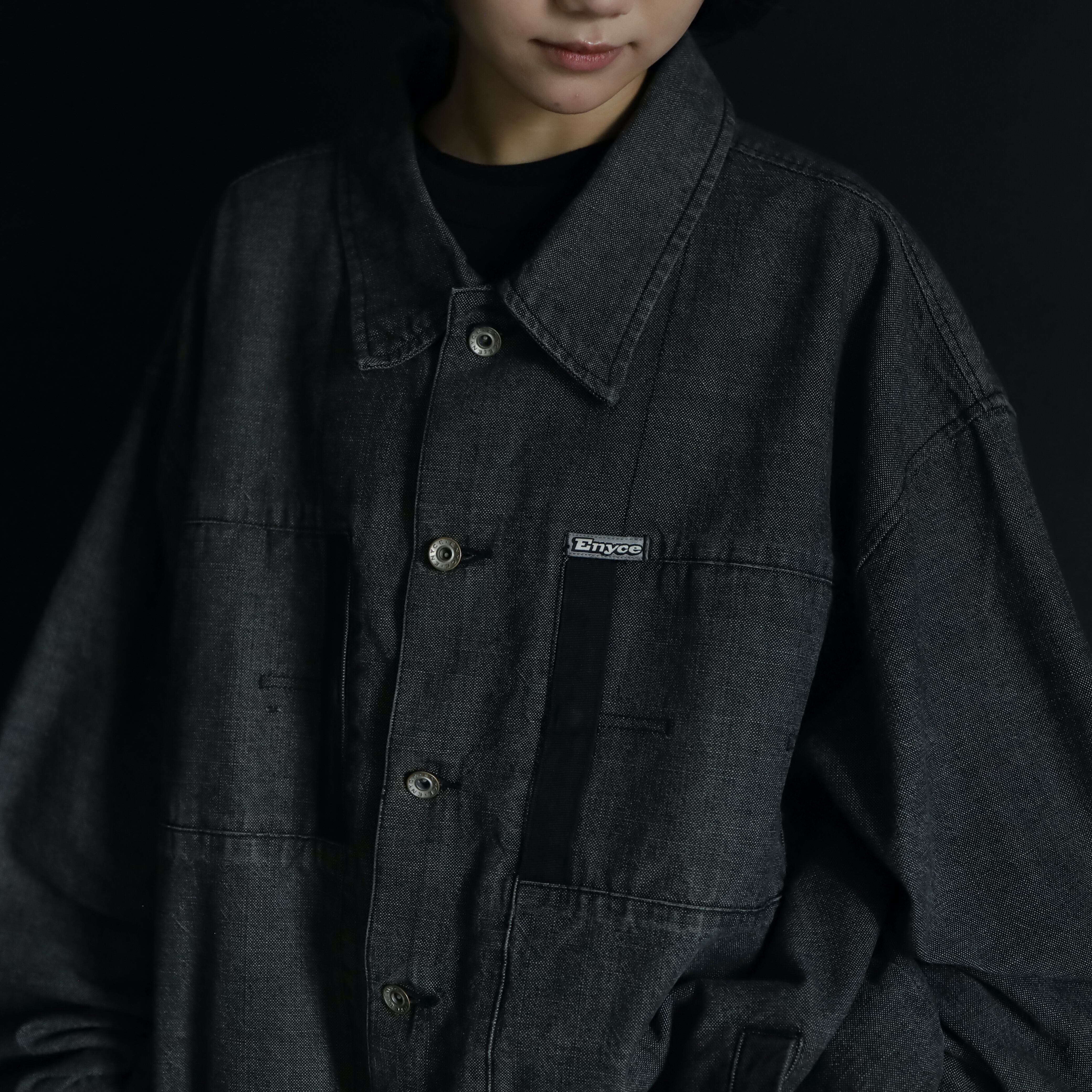 裾元や胸ポケットはブラックのラインで縁取りがされ,薄めのブラックデニムボディの雰囲気を引き締めます.