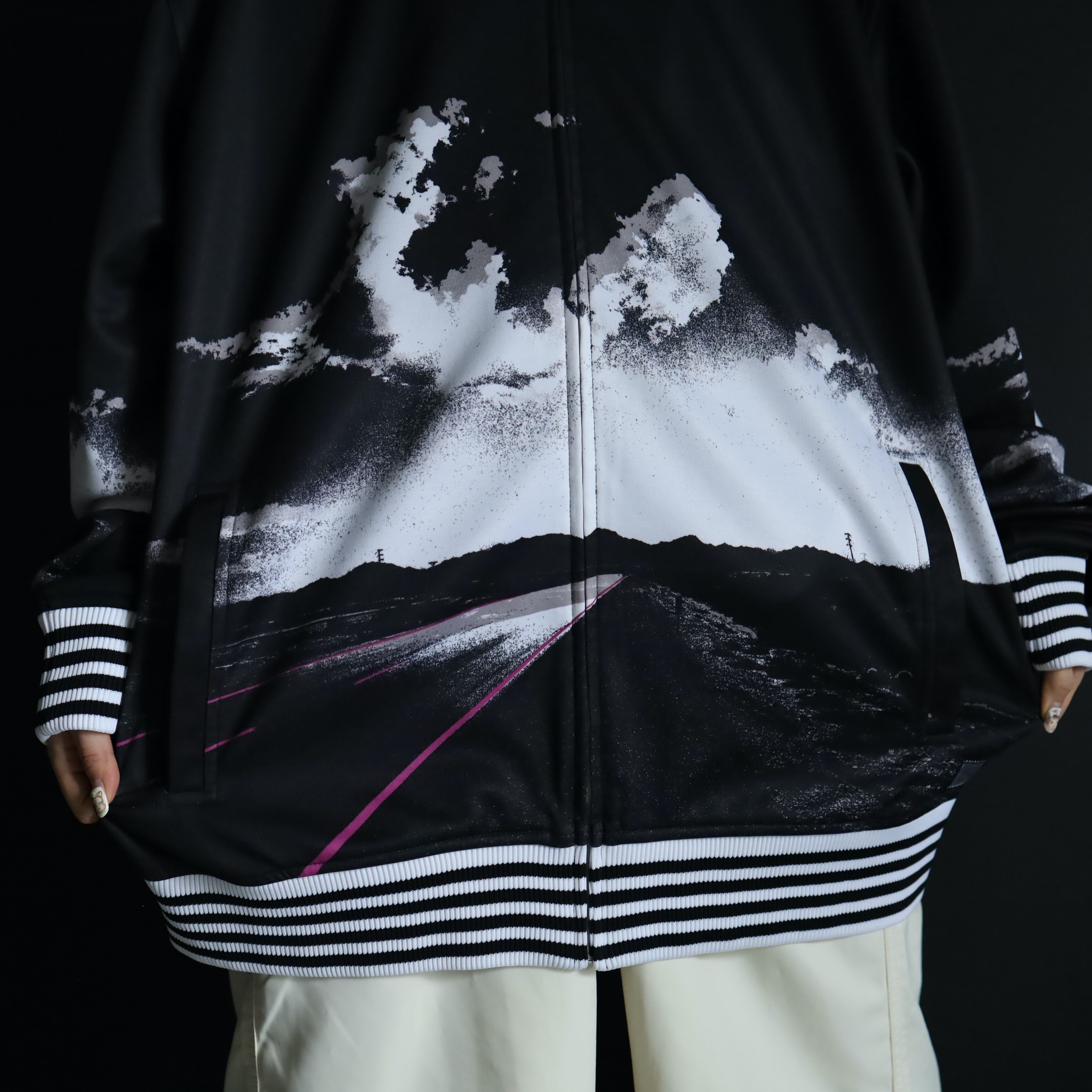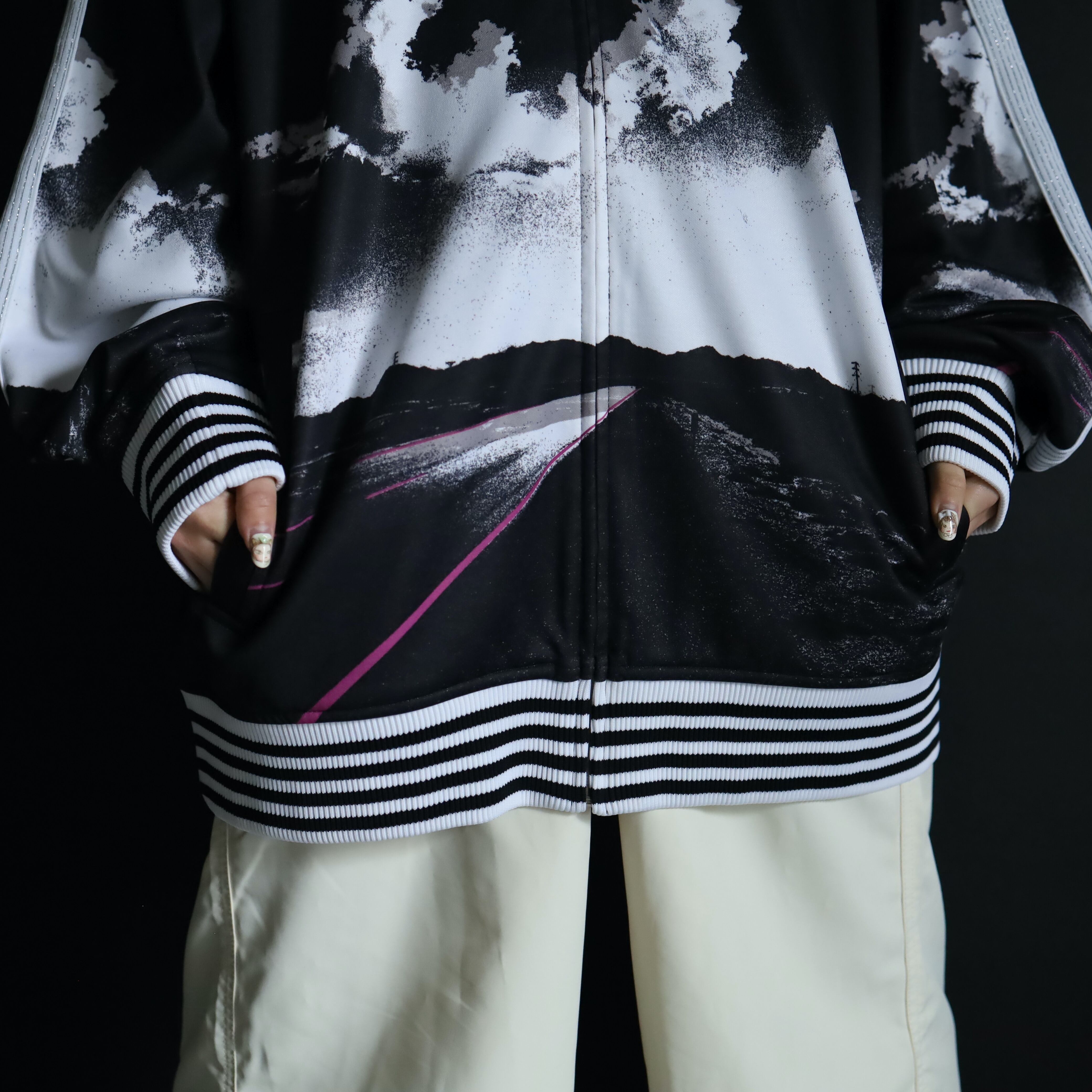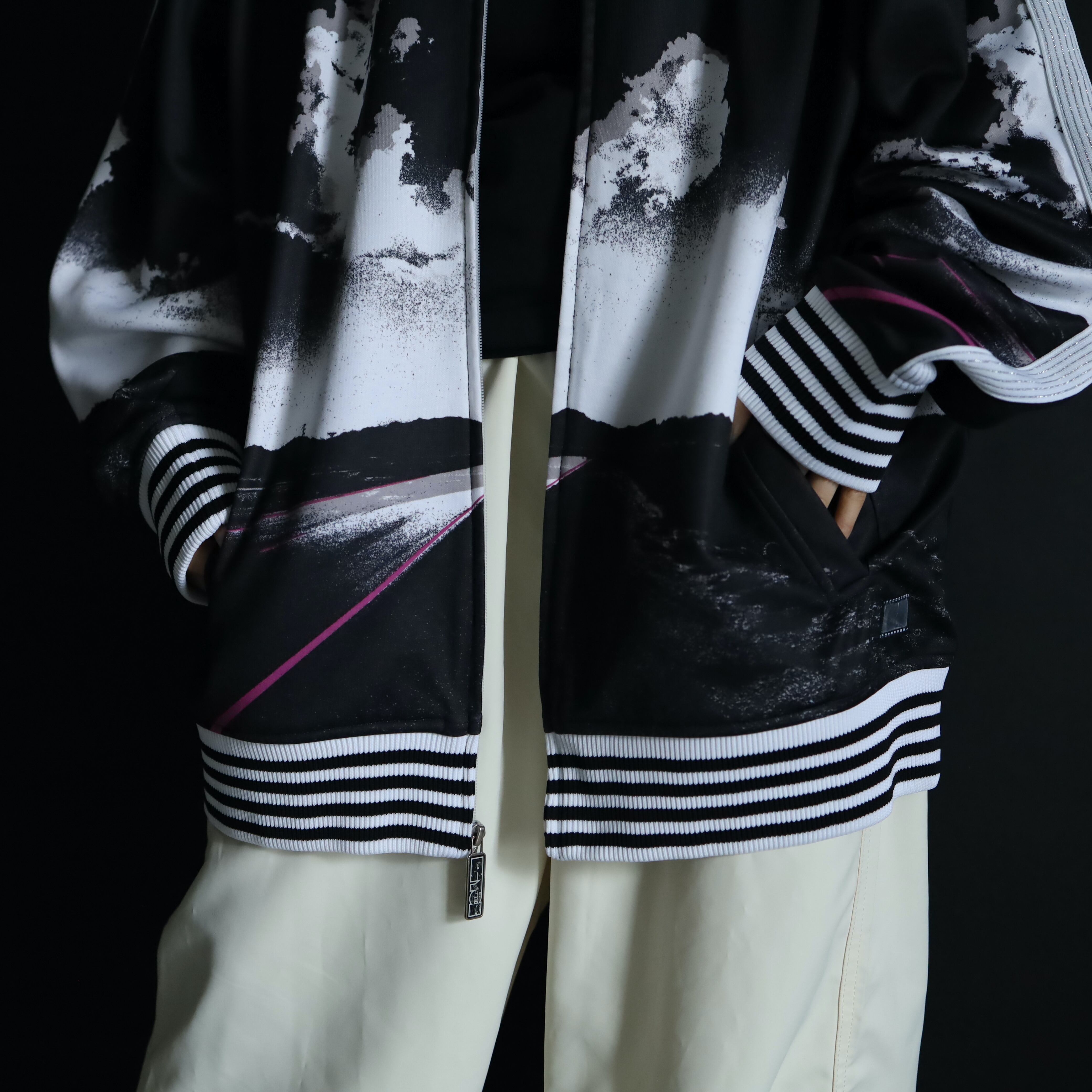 adidas,NIKEのなどのトラックジャケットでは,まず見ないであろうデザインですね.