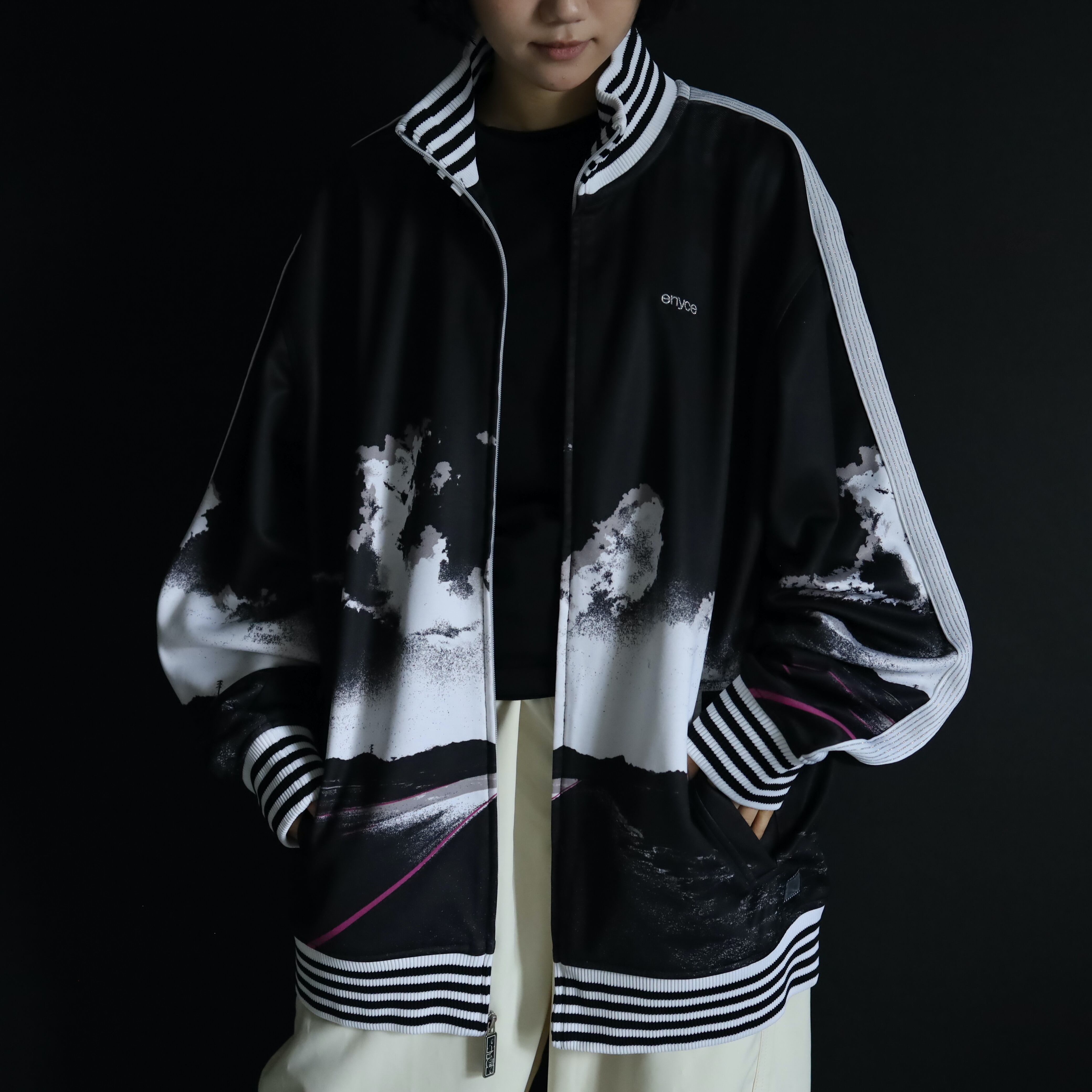 スポーツブランド製のモノが比較的多いですが,こちらはヒップホップブランドeynceより,昨今のストリートスタイルにハマるデザインの一枚.