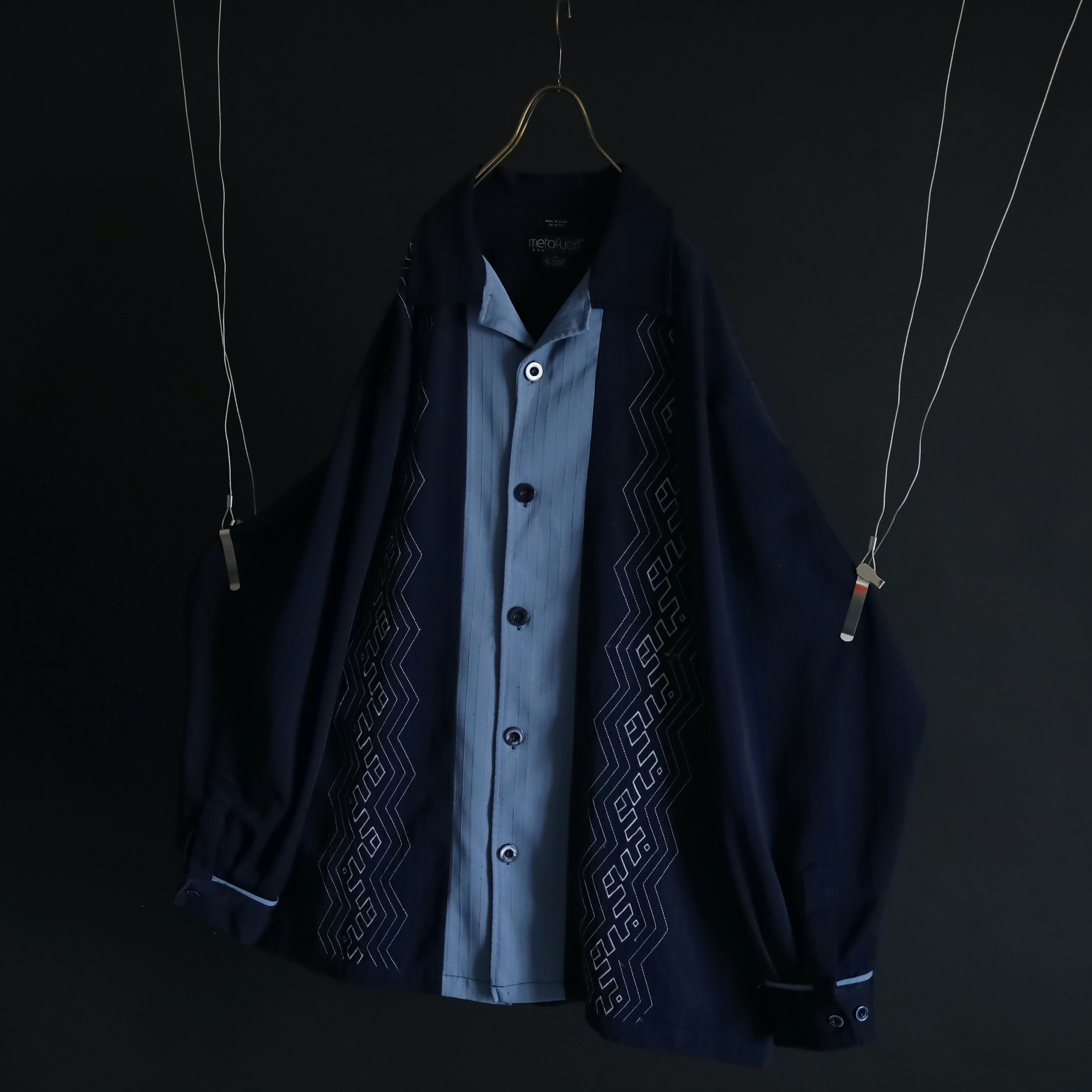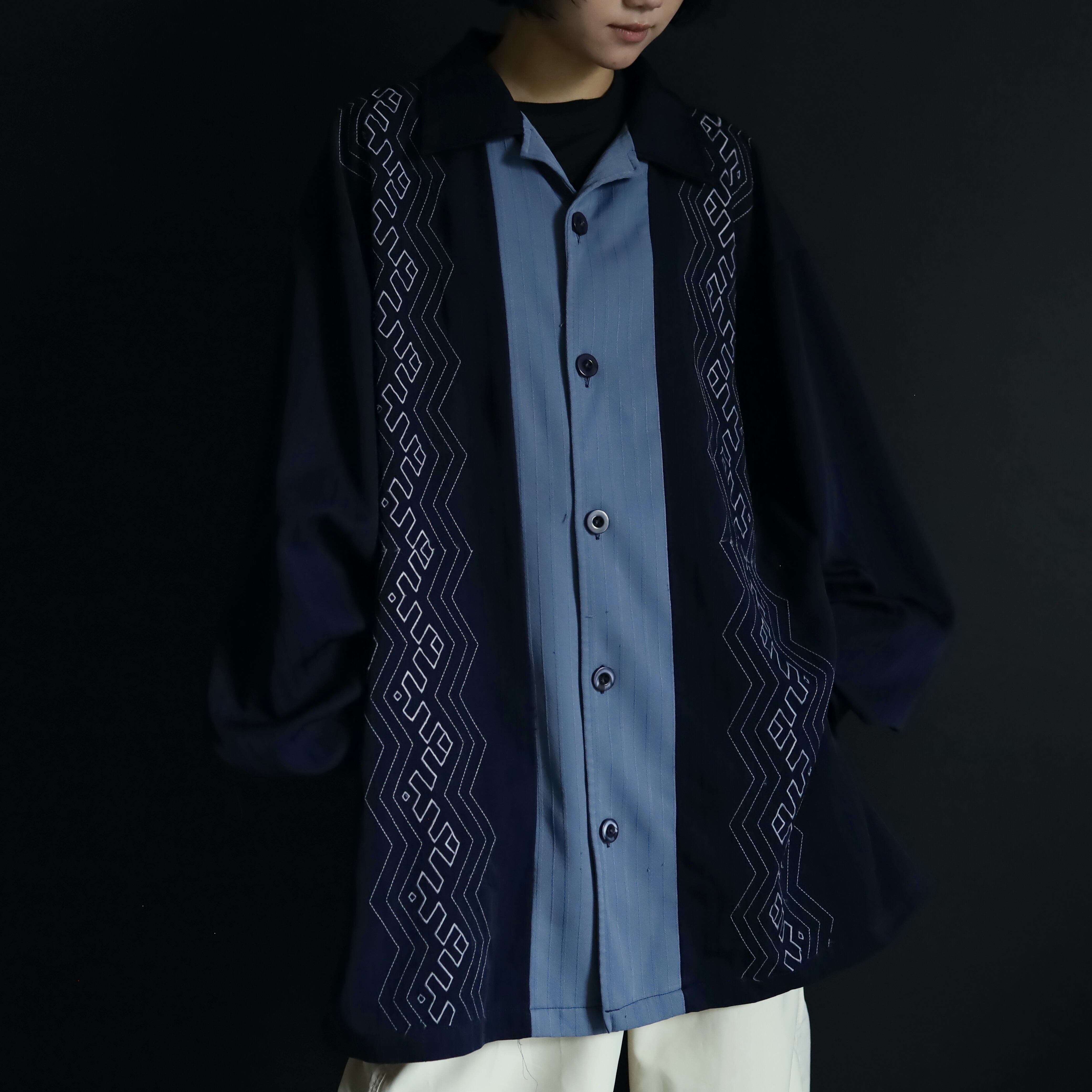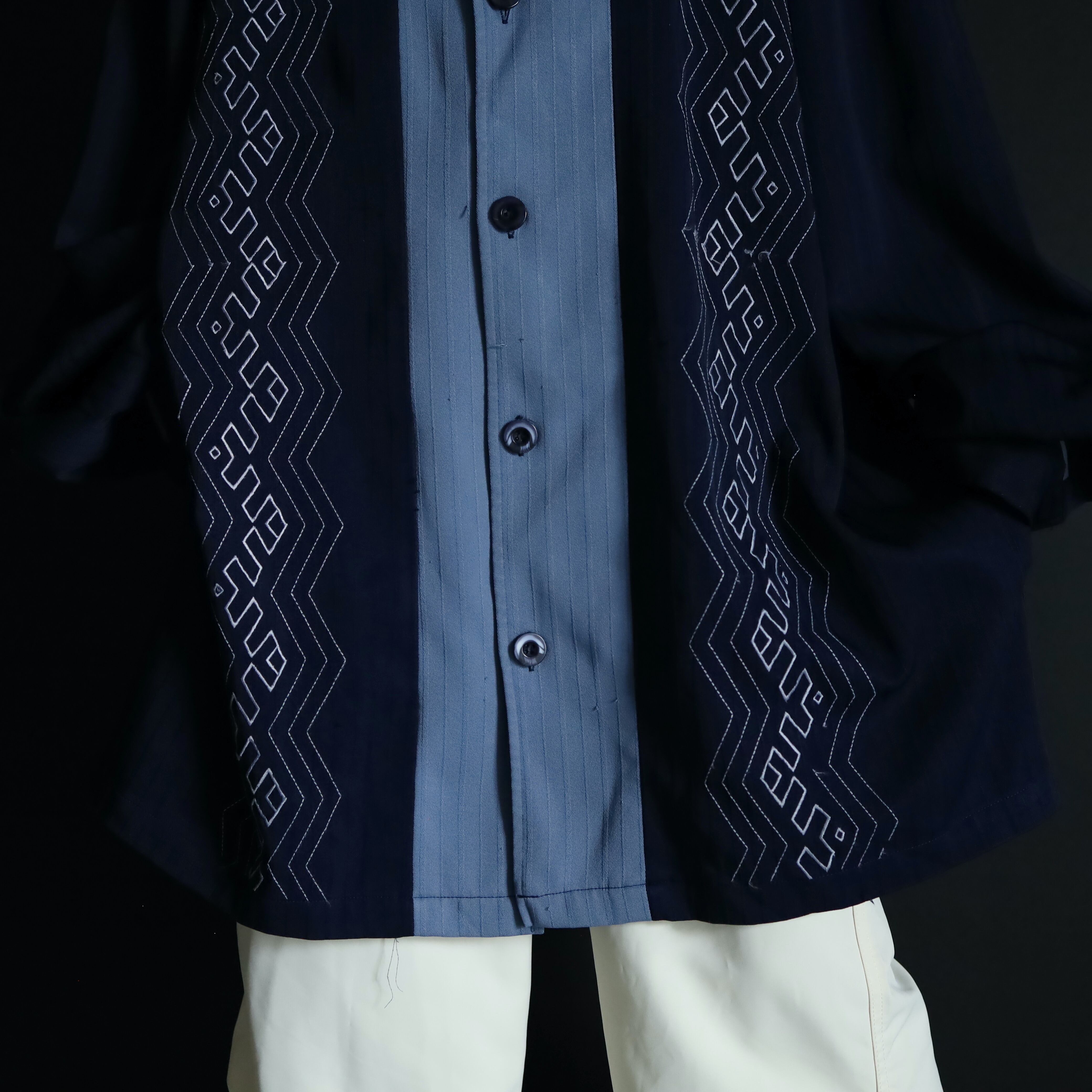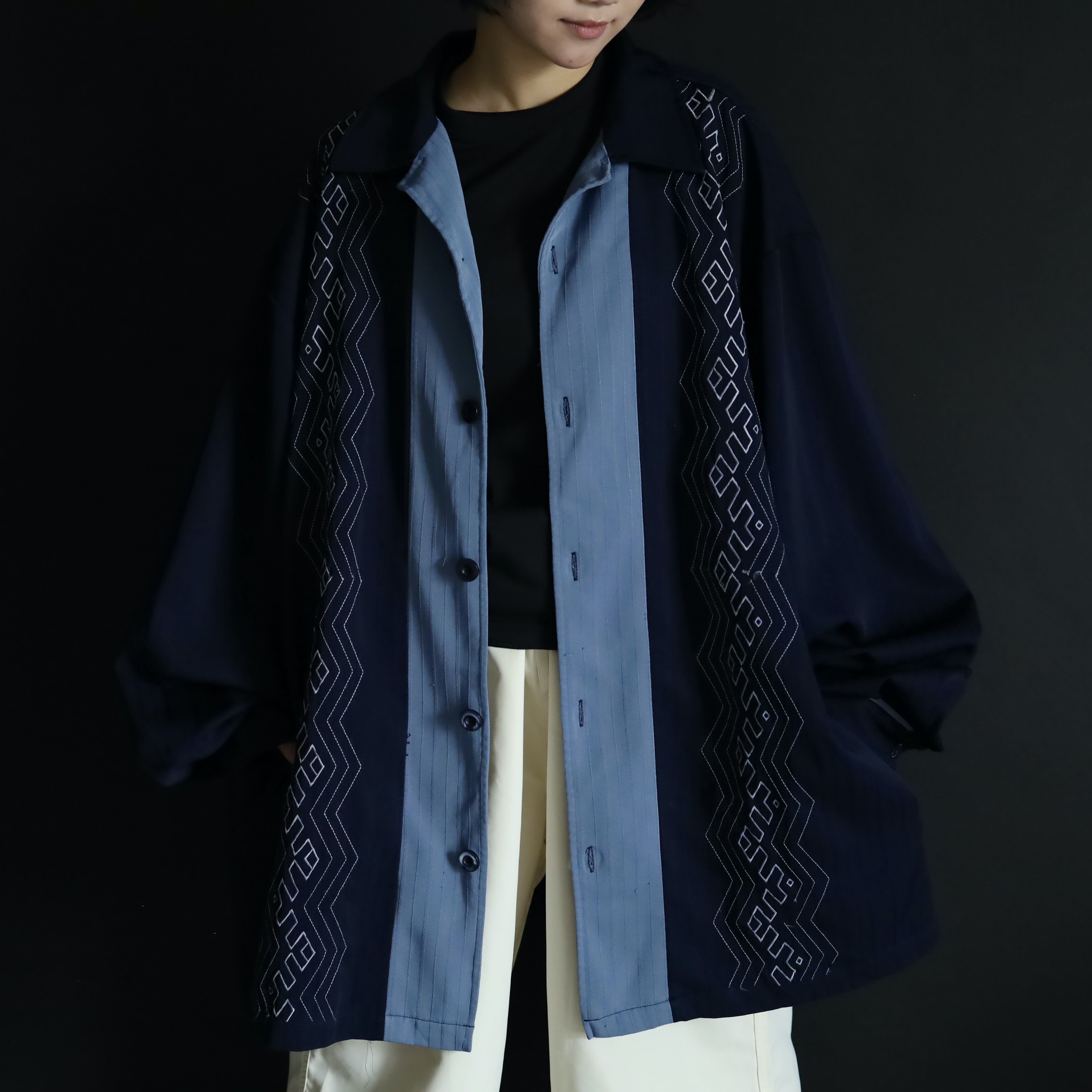 左右でシンメトリーのジグザグとウネウネの刺繍.