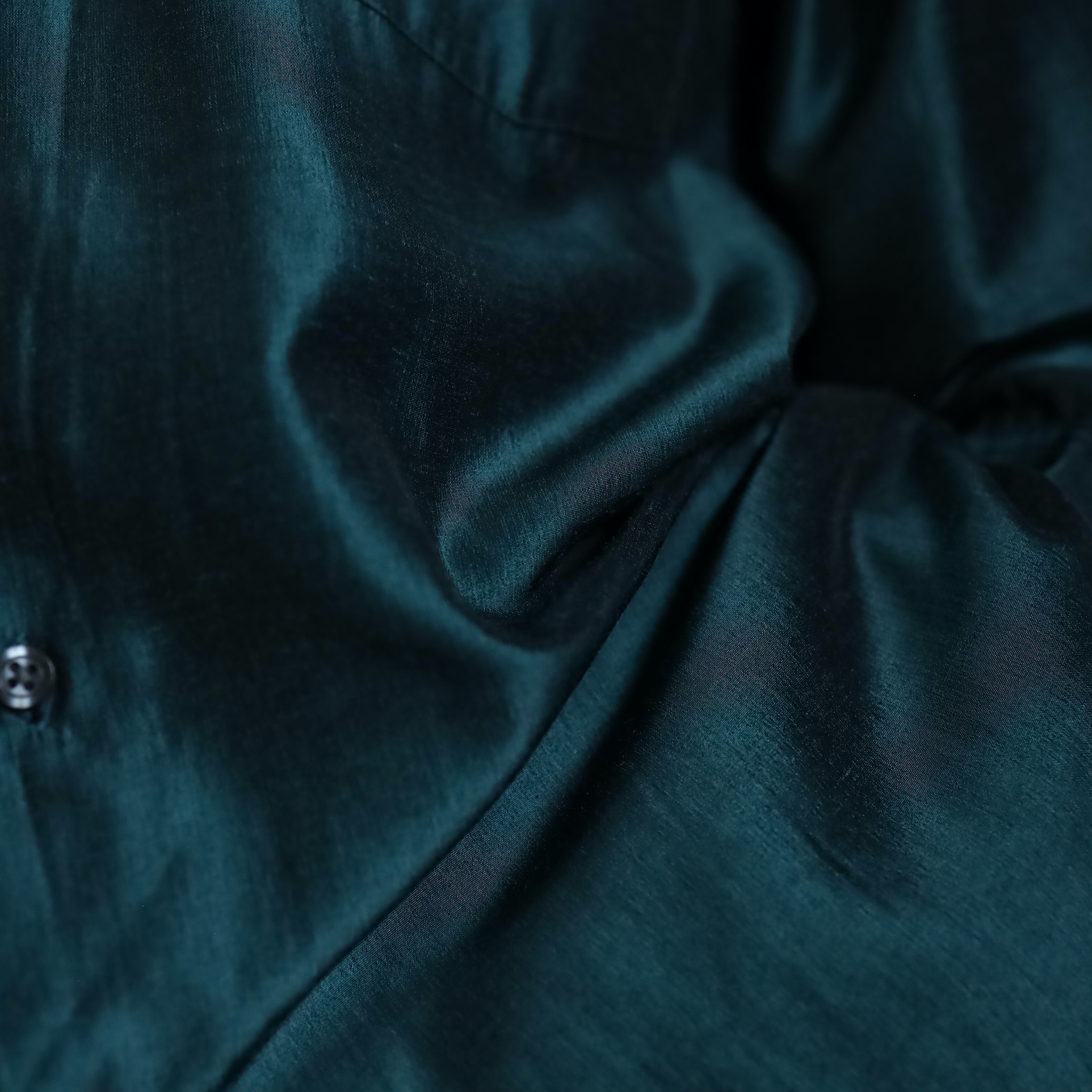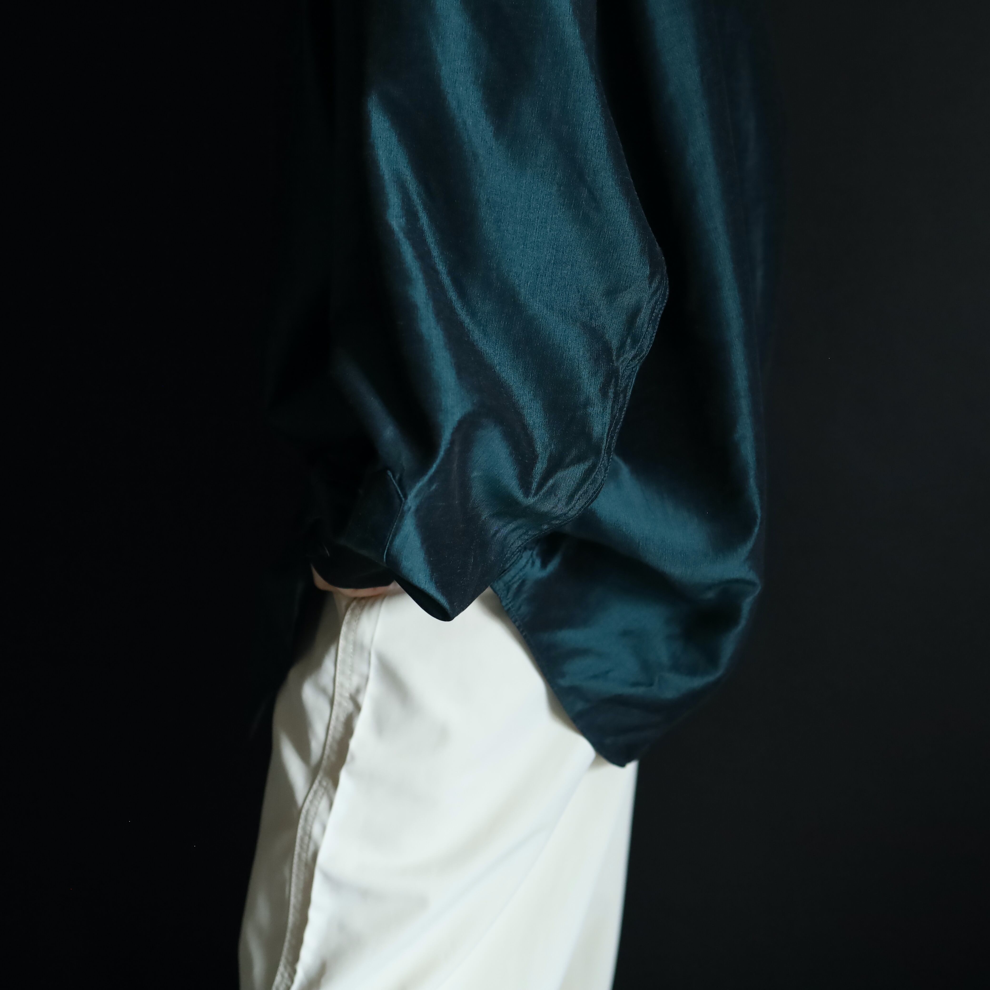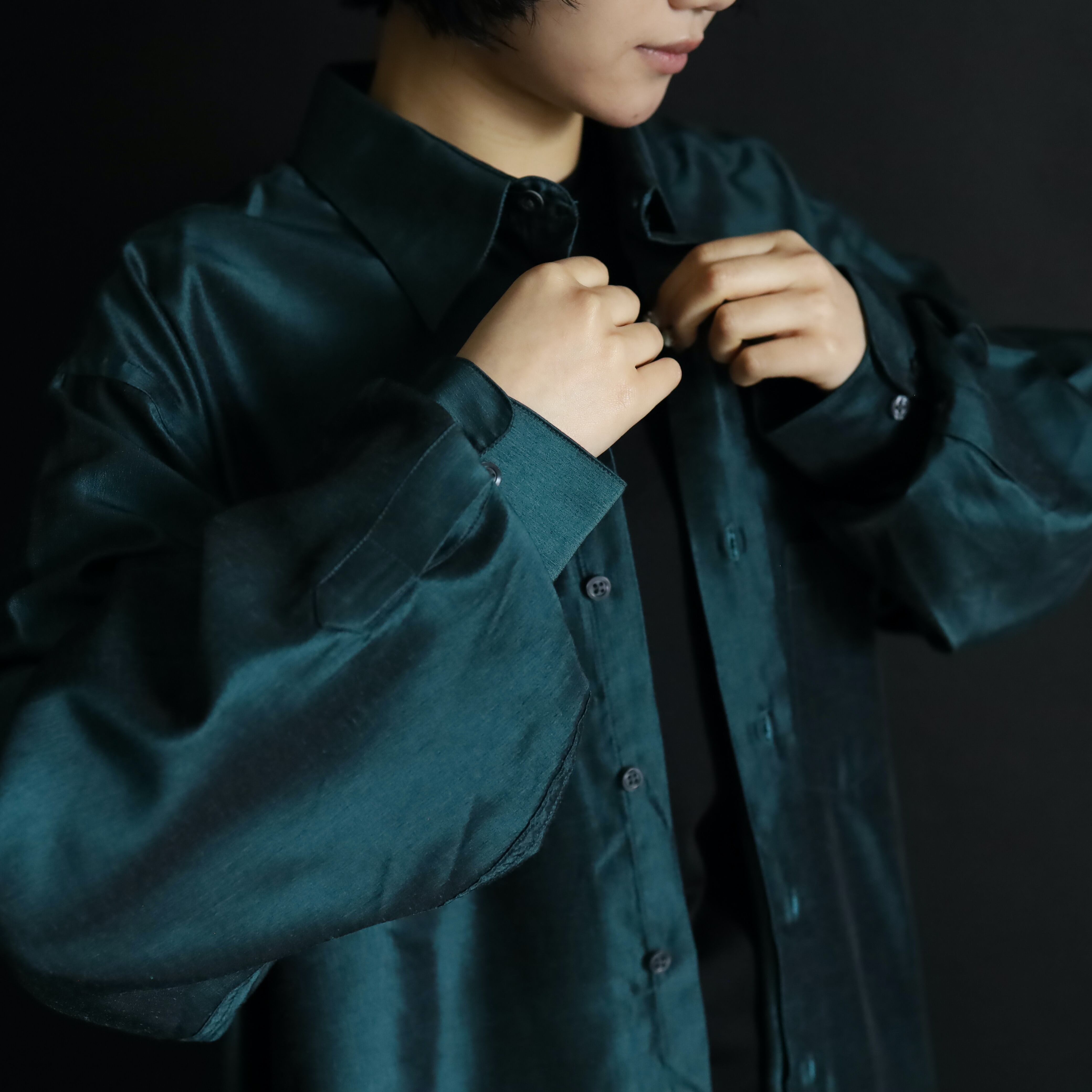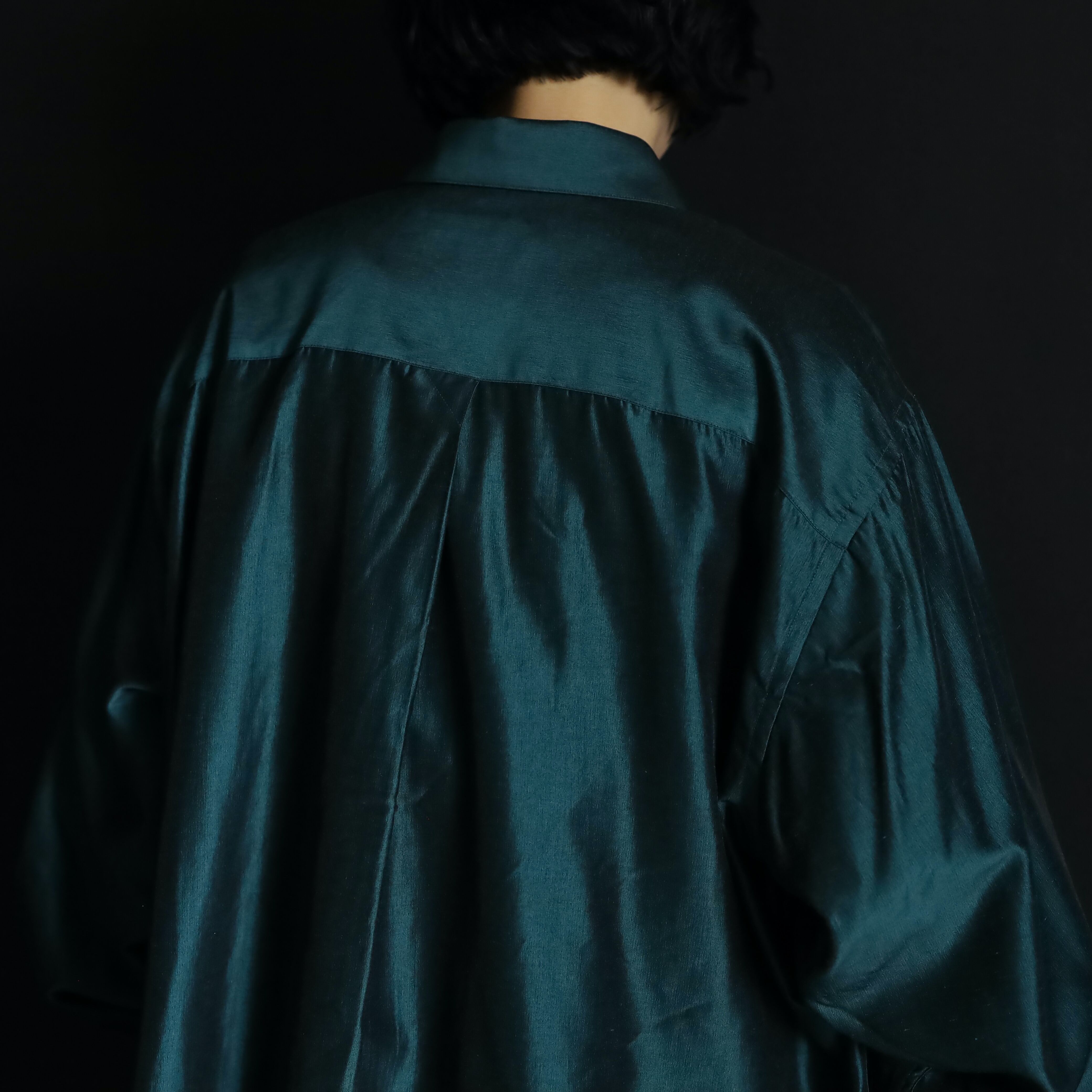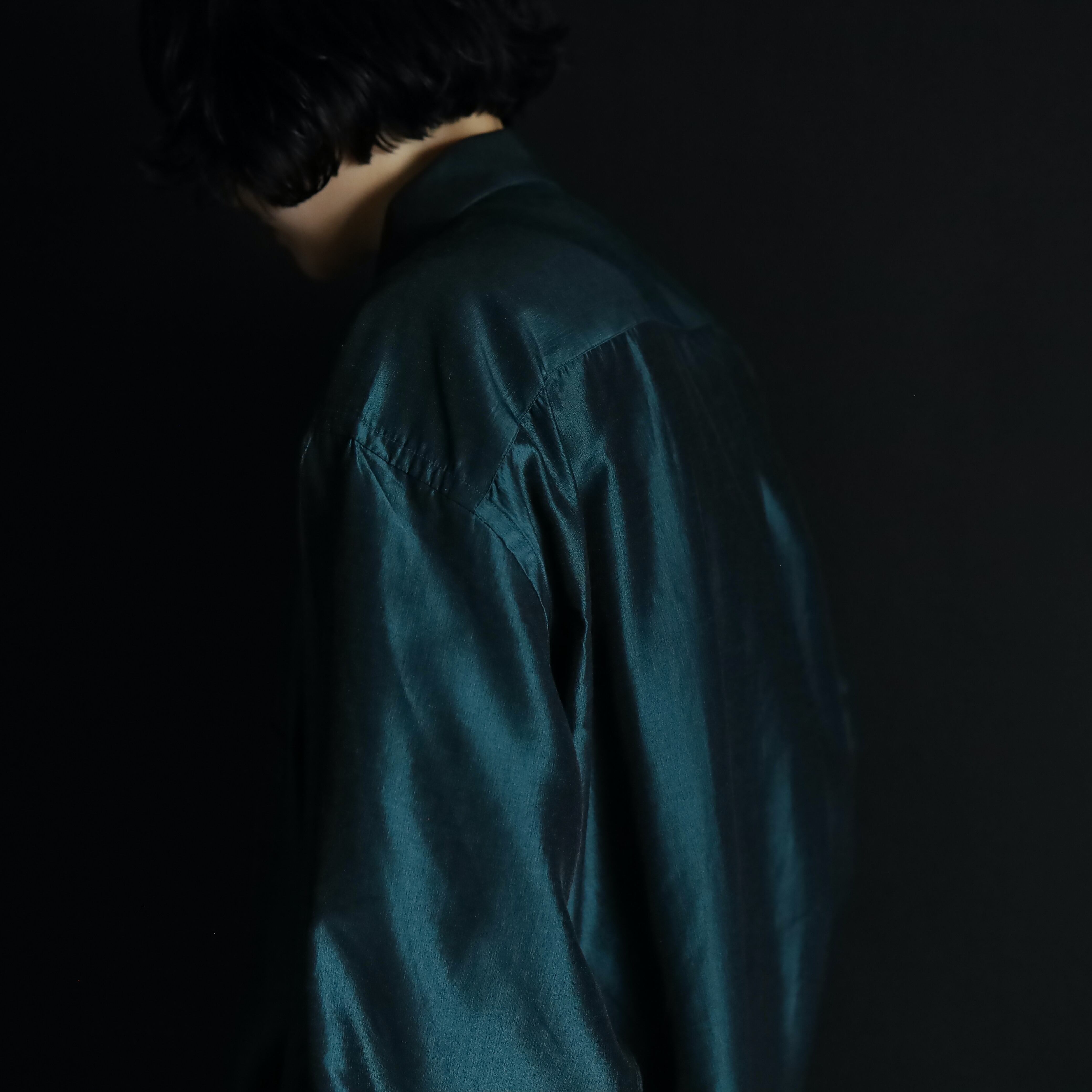 サテン織による特有の光沢がある生地に,光が当たることによって変わる色の表情は,タマムシ色を思わせるほどの高級感がありますね.