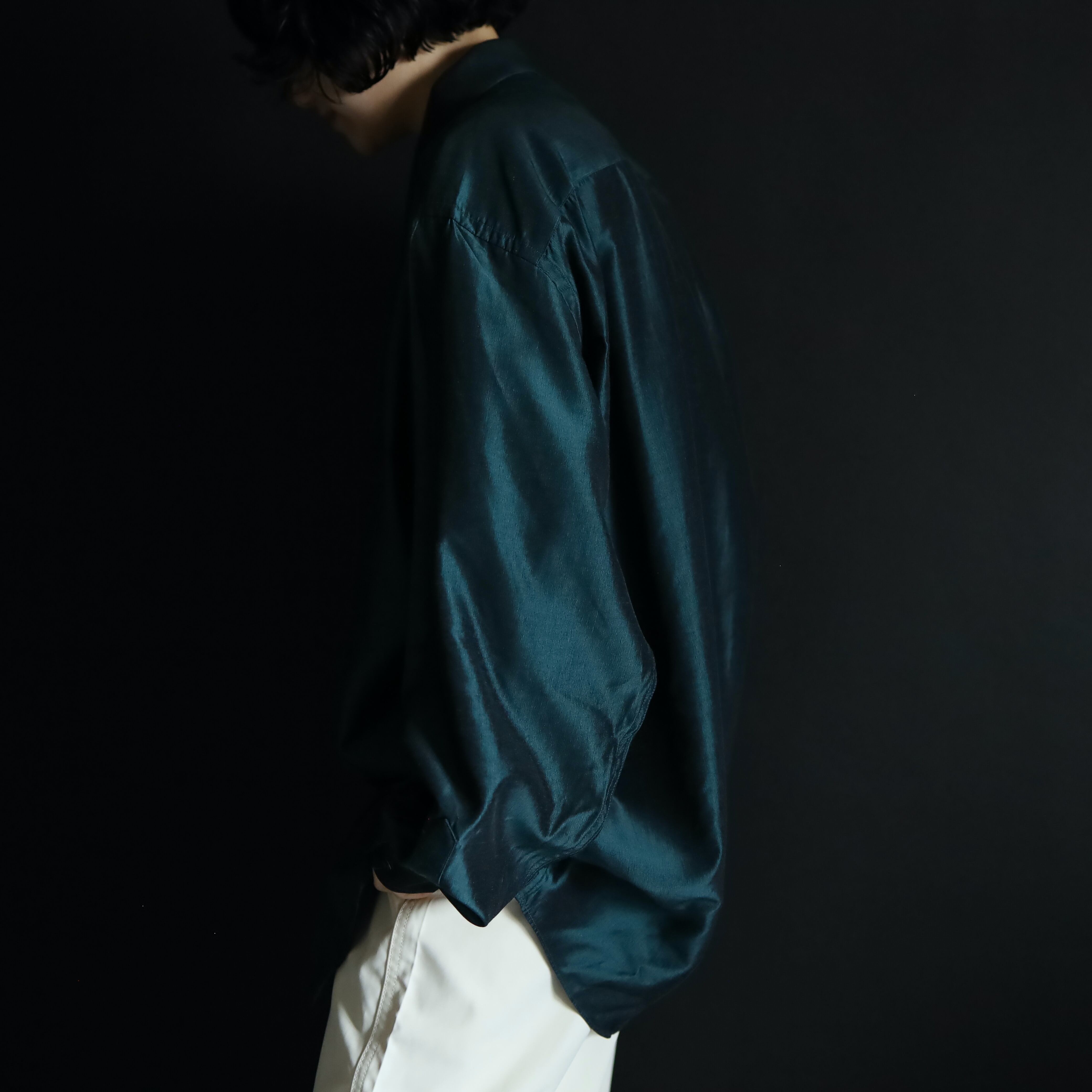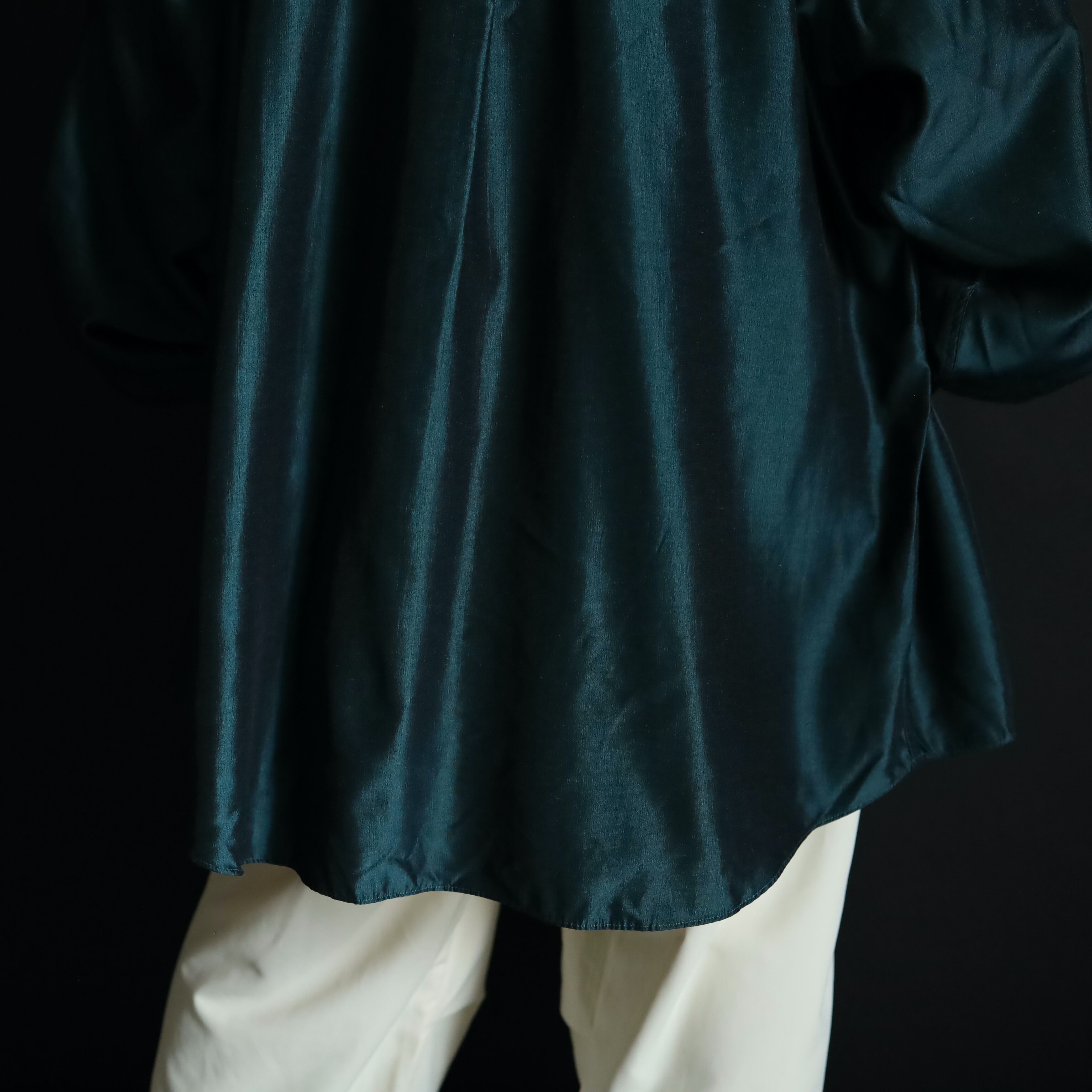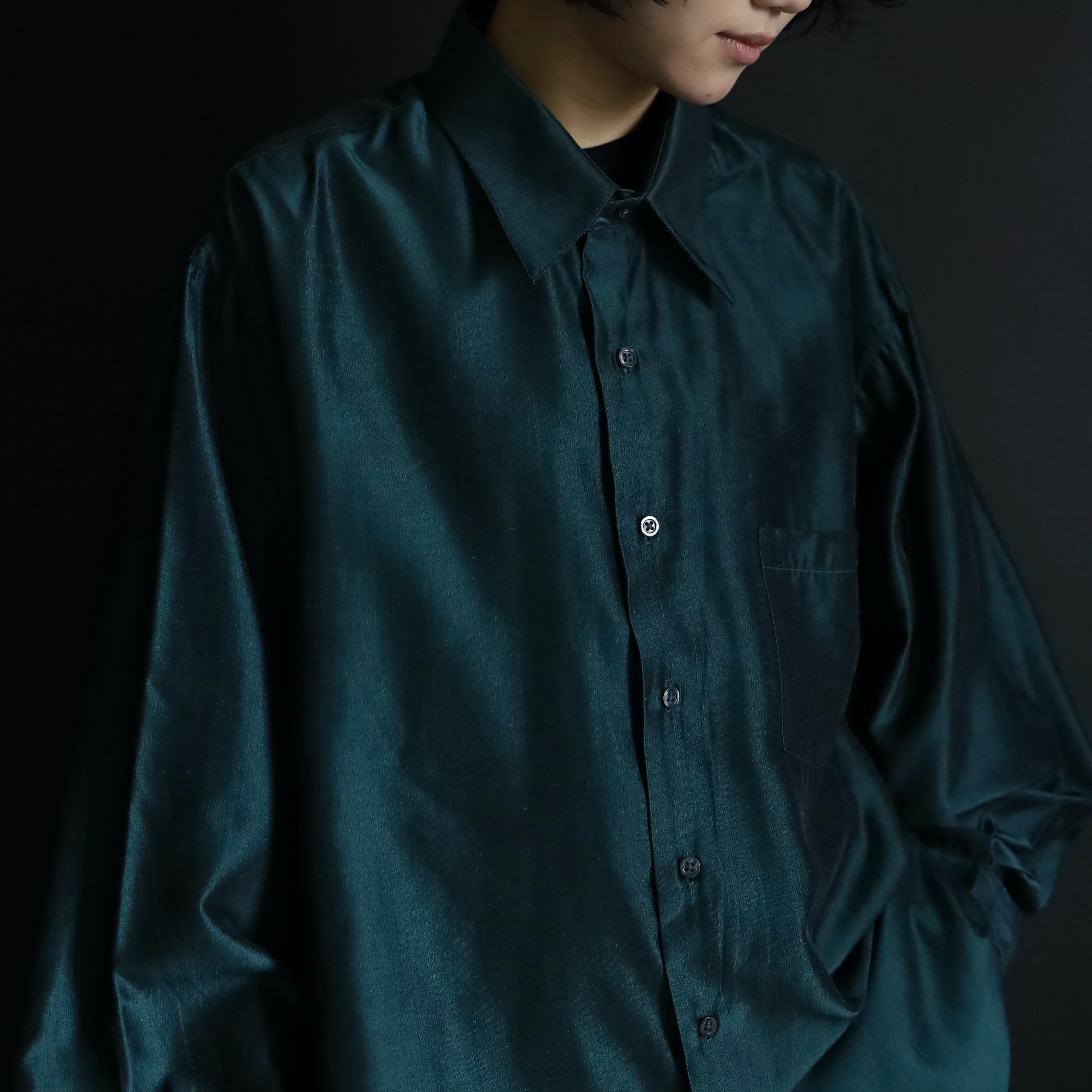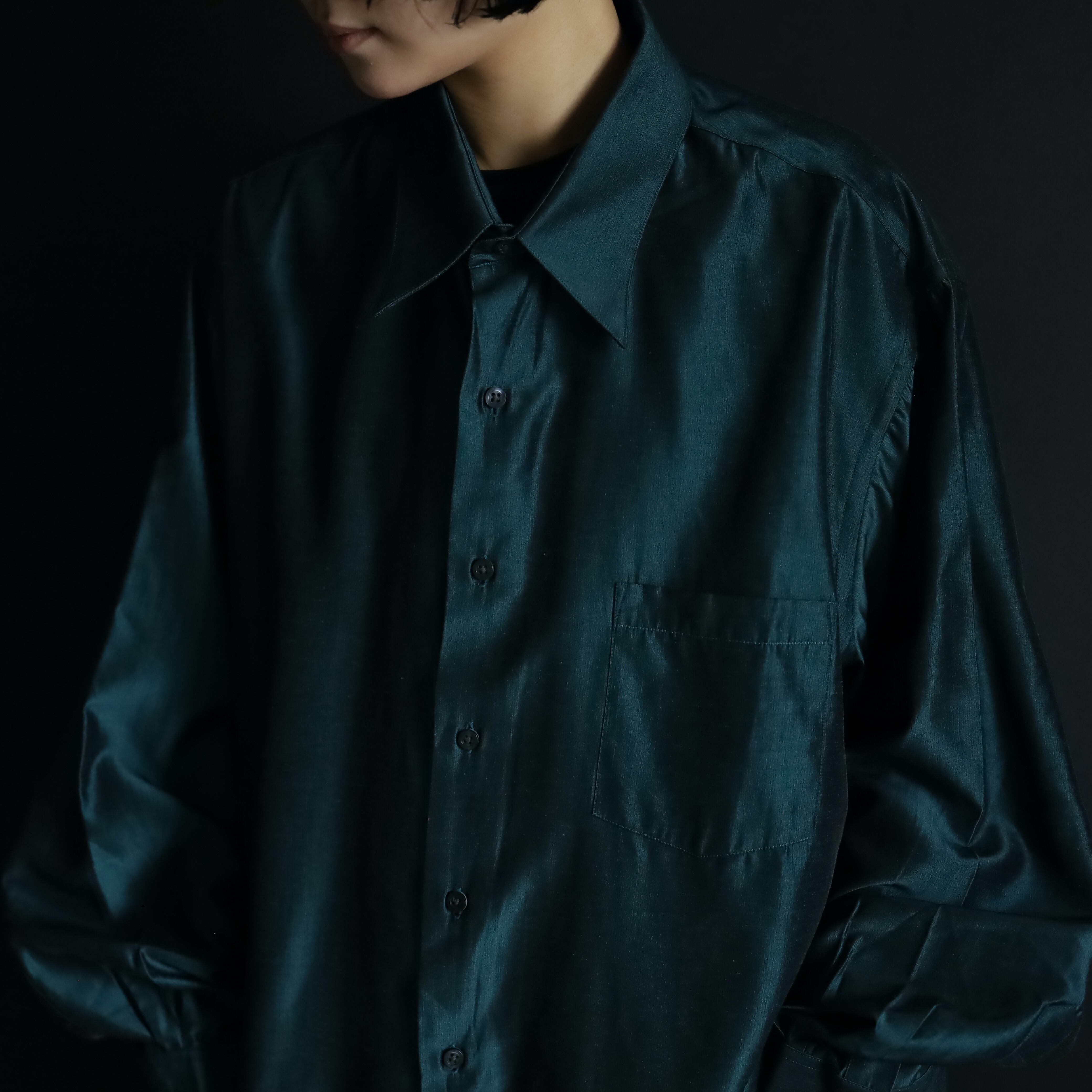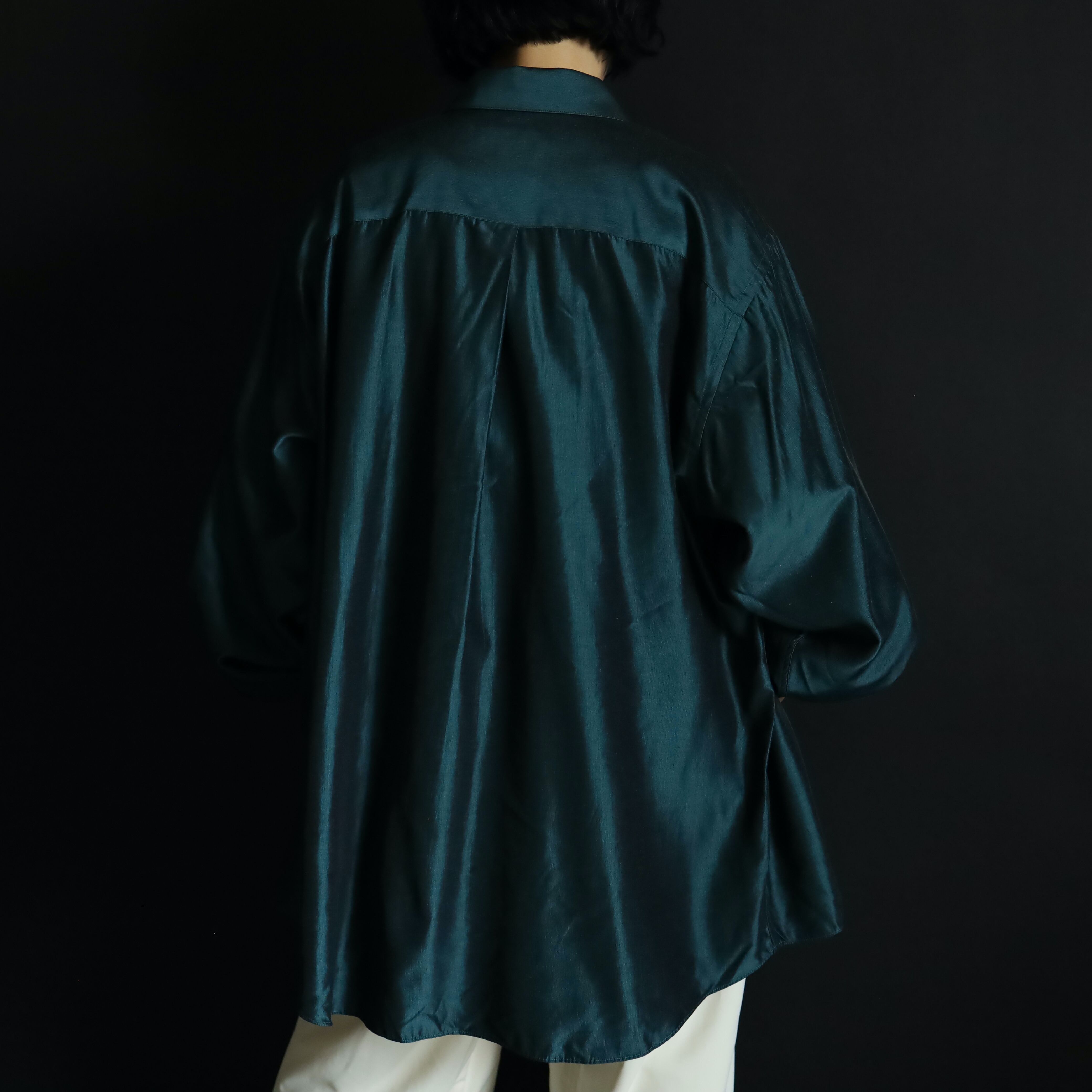 サテン織による特有の光沢がある生地に,光が当たることによって変わる色の表情は,タマムシ色を思わせるほどの高級感がありますね.