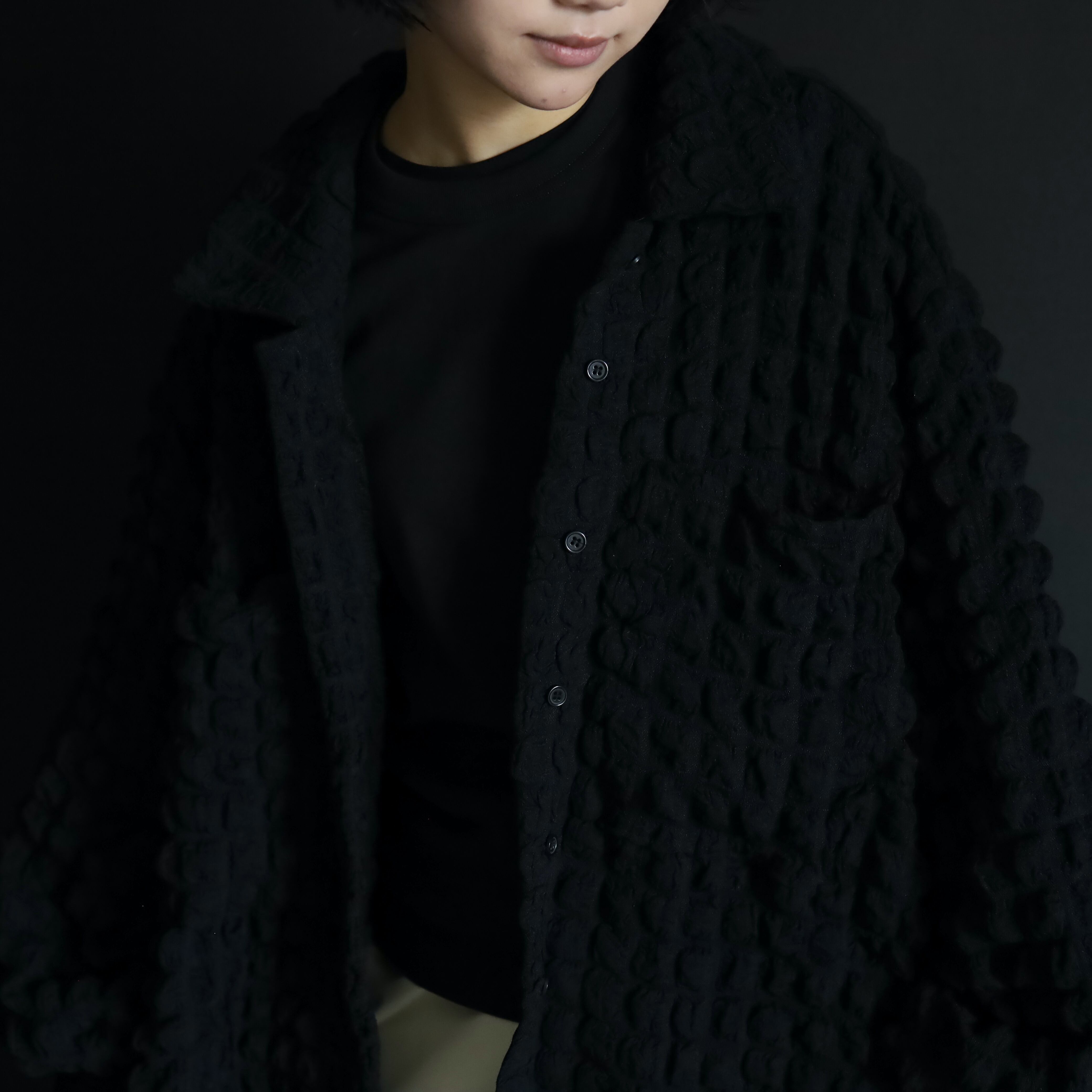 シャツらしからぬ立体的なルックスに加え,ふんわりと軽やかな異質な羽織心地が特徴的な一枚.