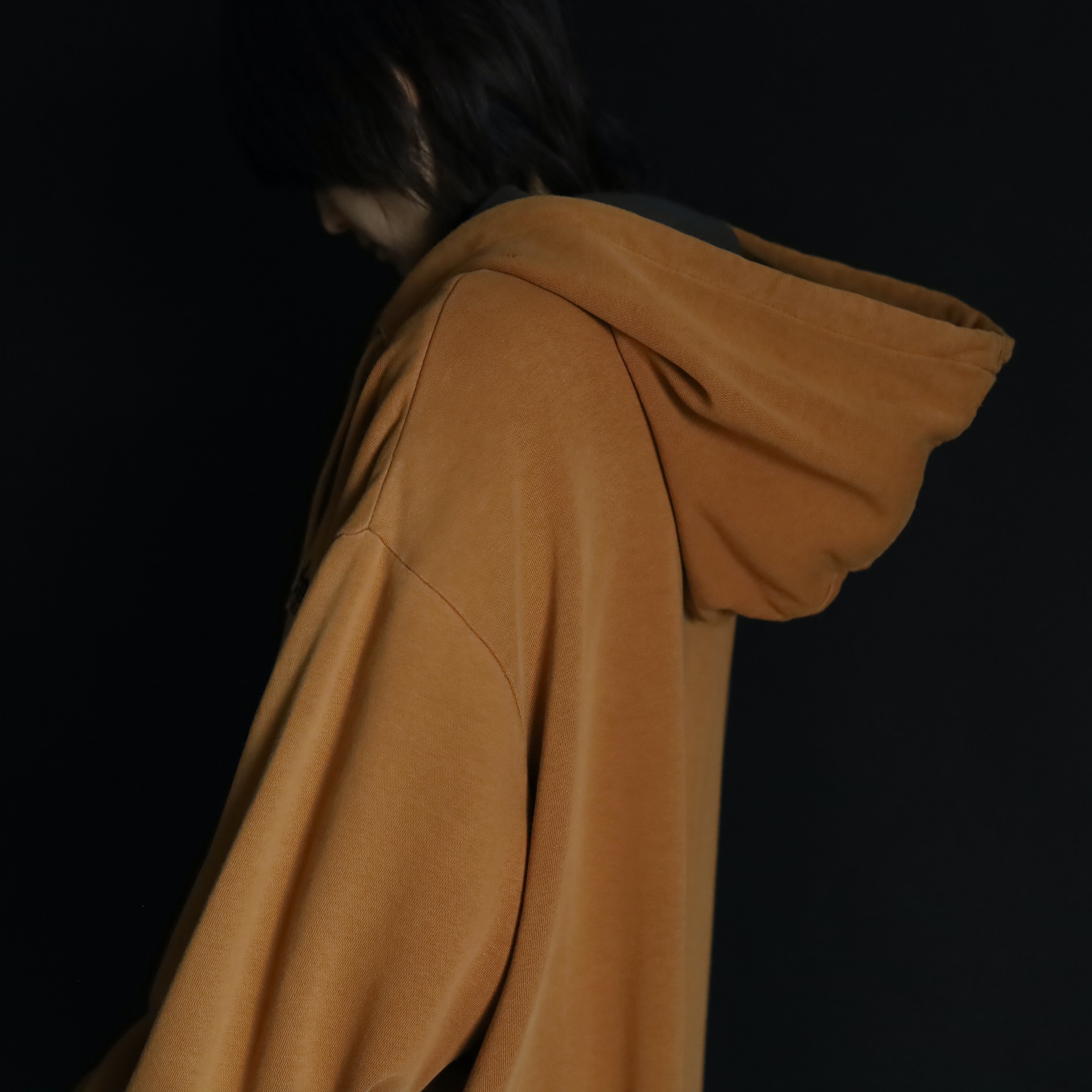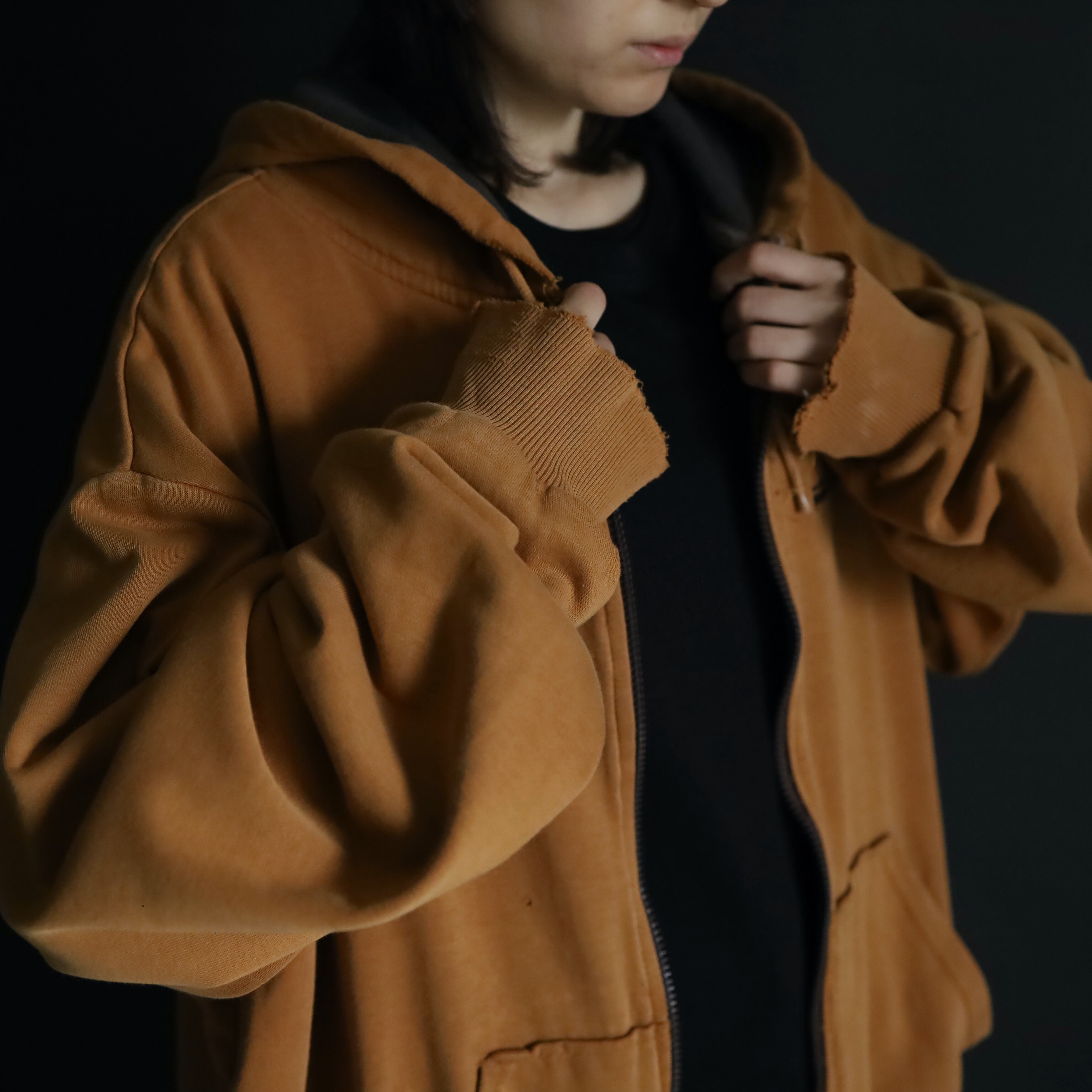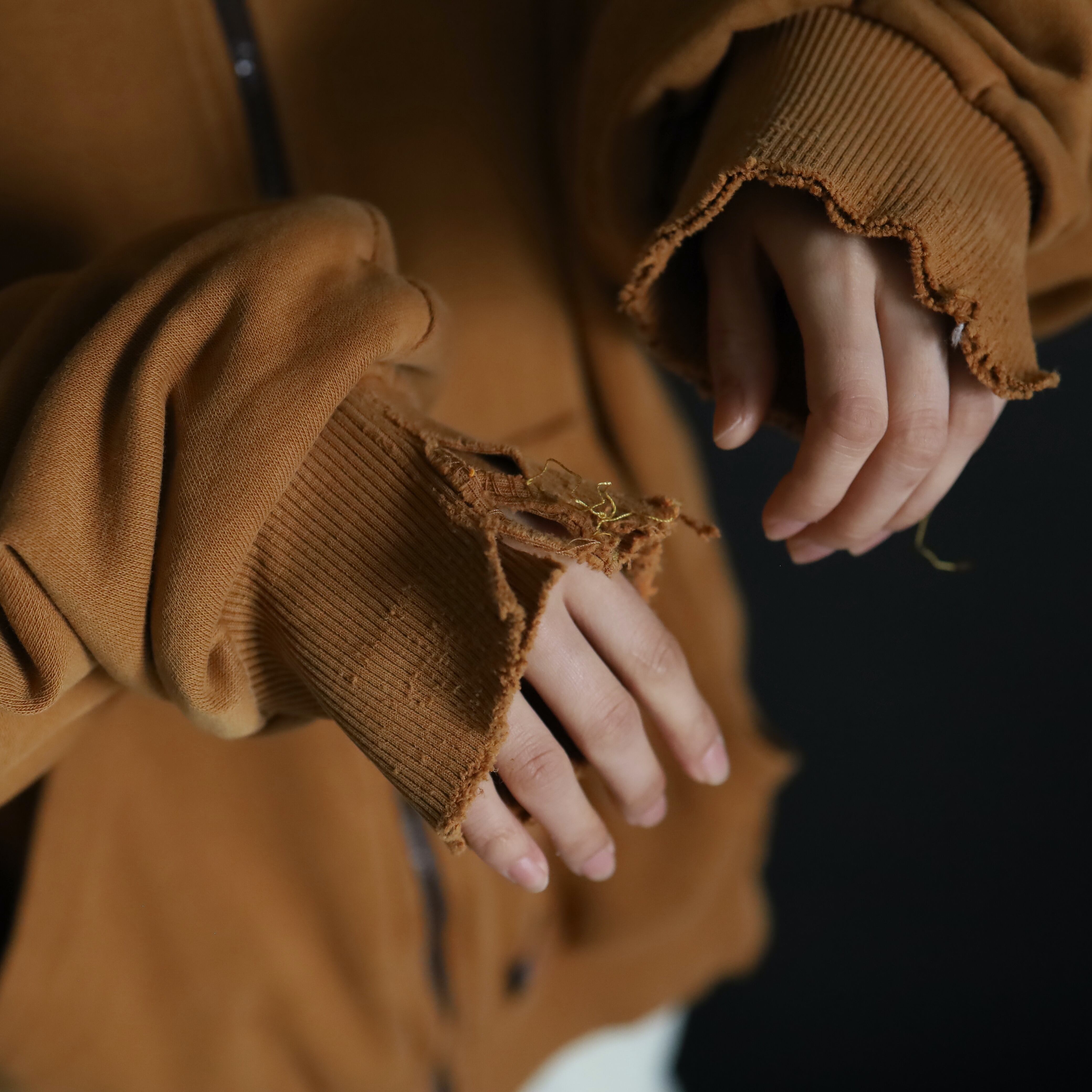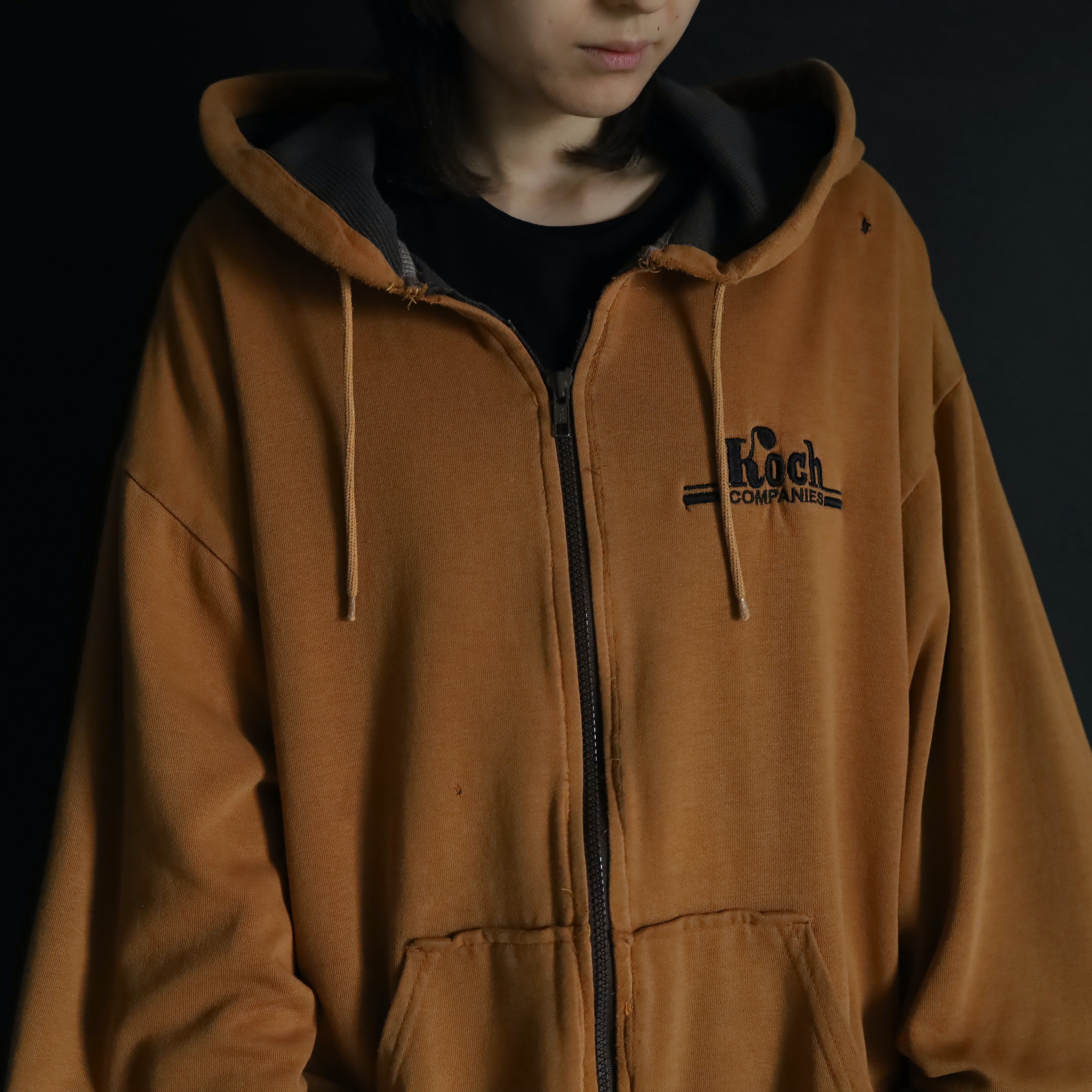 キャメルカラーのいい発色具合のスウェットボディ.