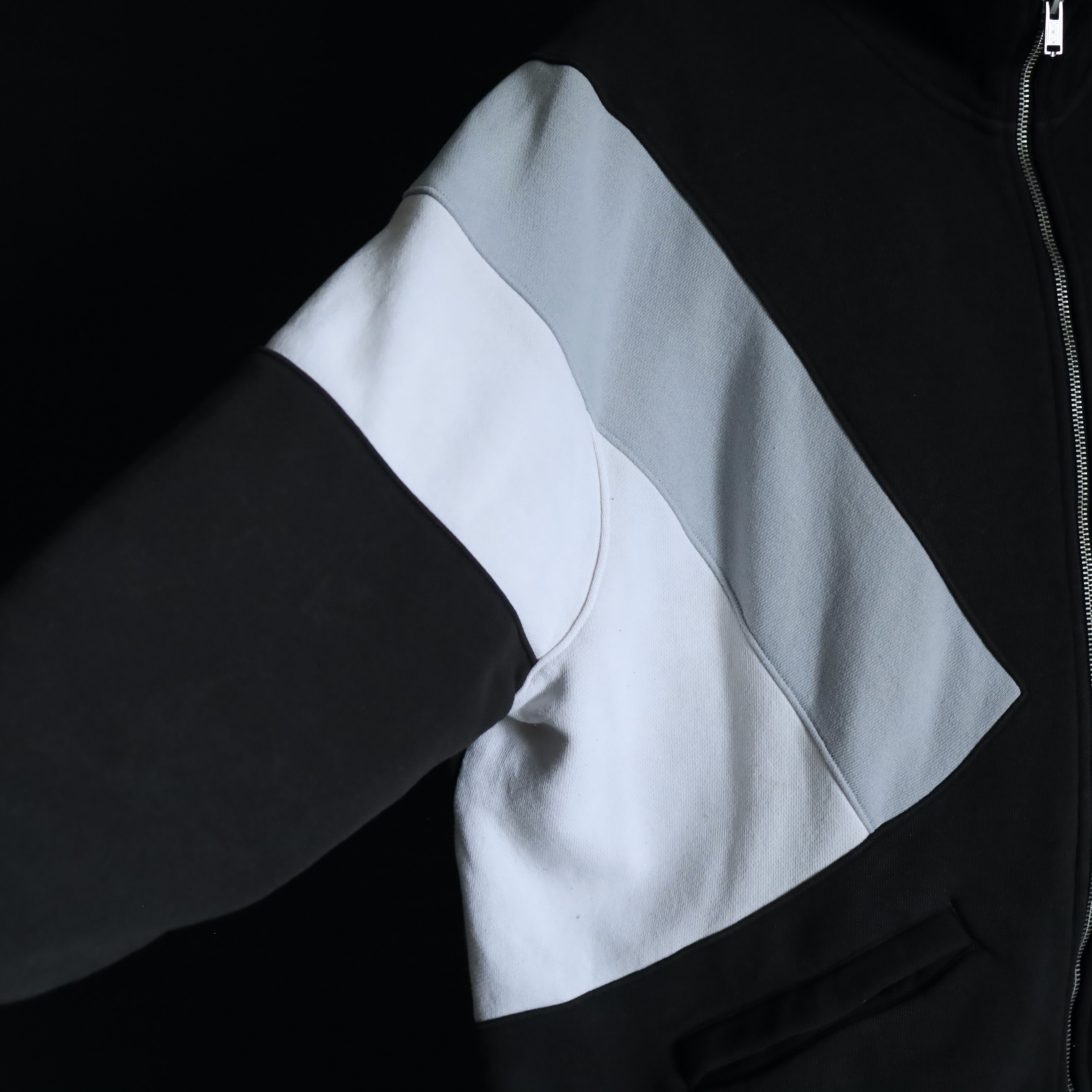 ブラックカラーをベースとして,肩,脇下周辺がグレー,ホワイトのトライカラー切替.