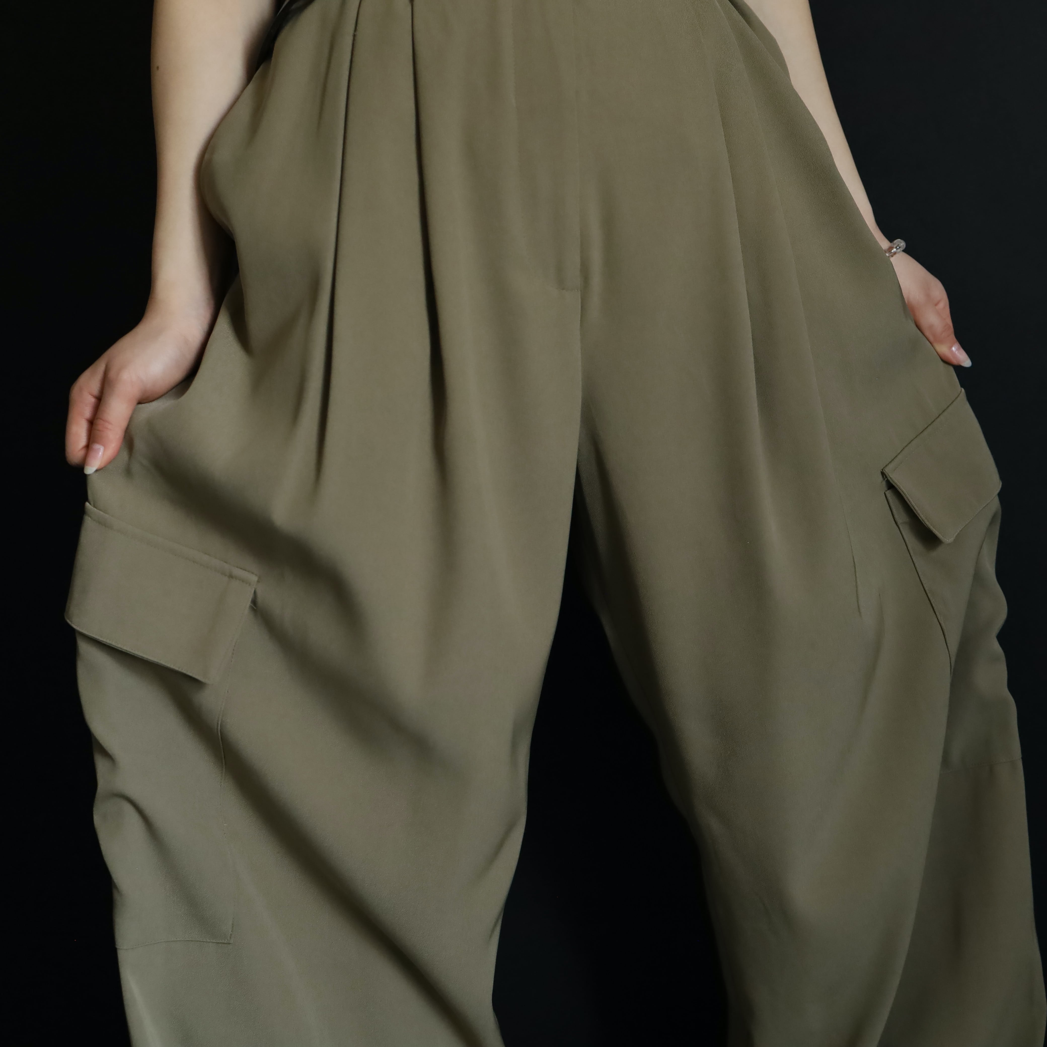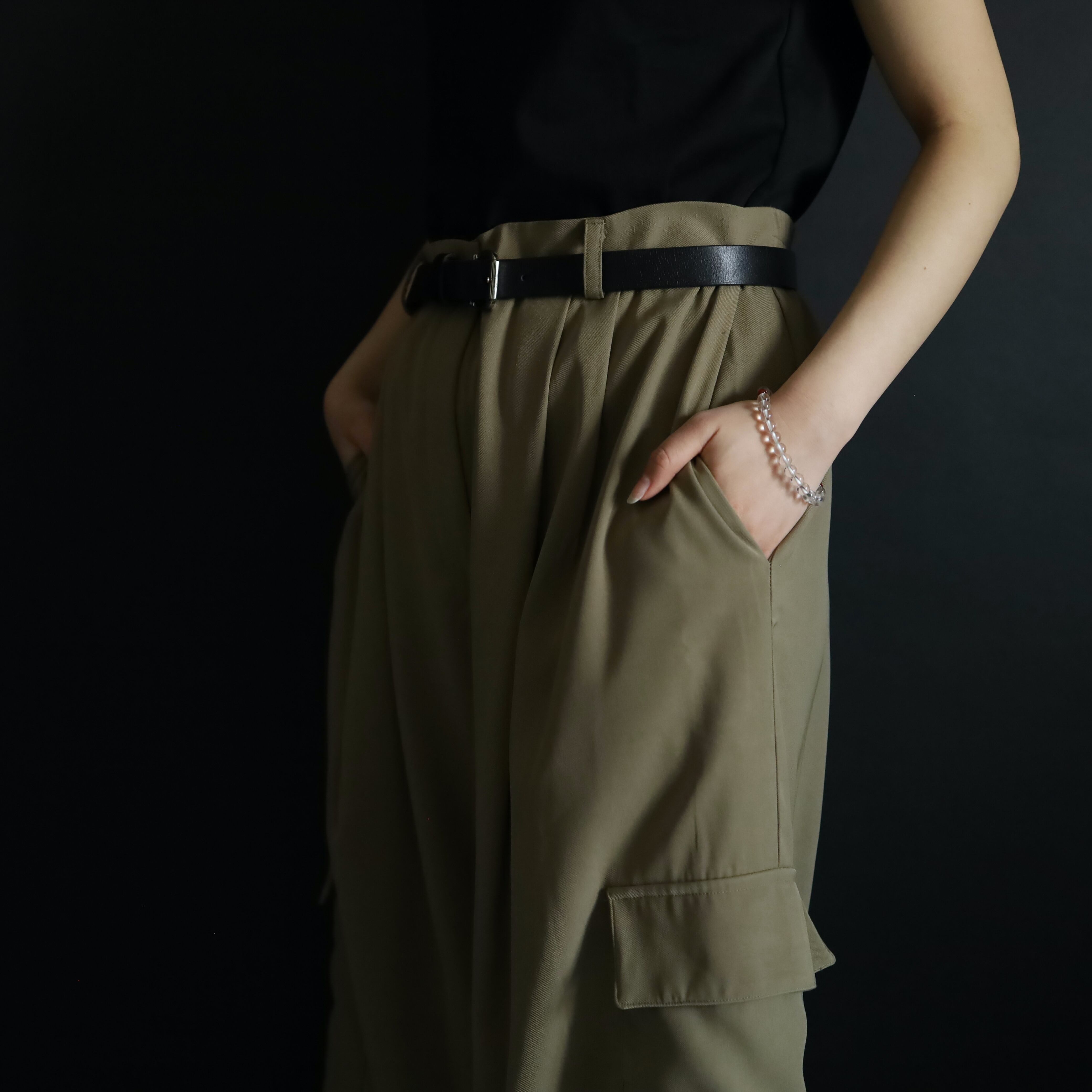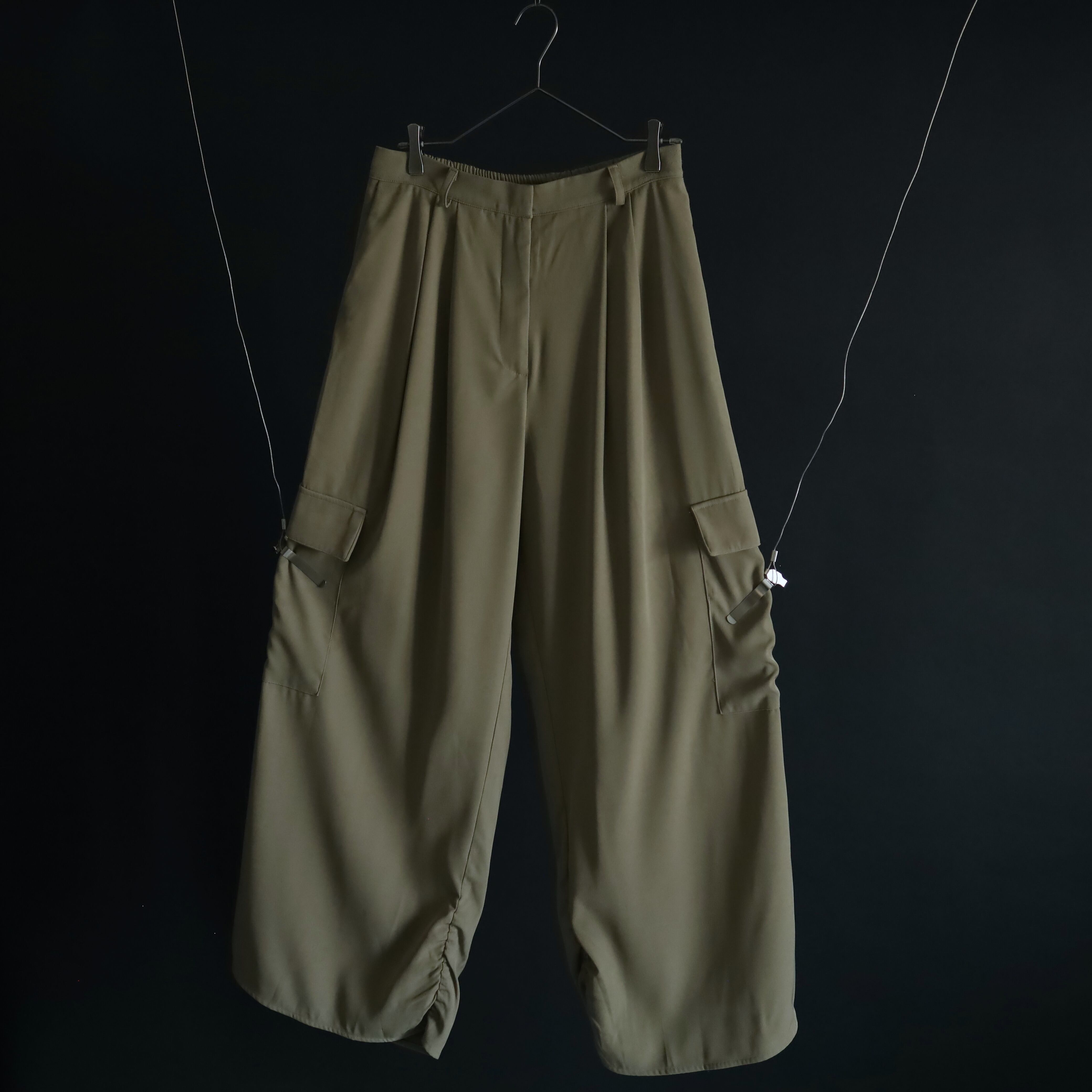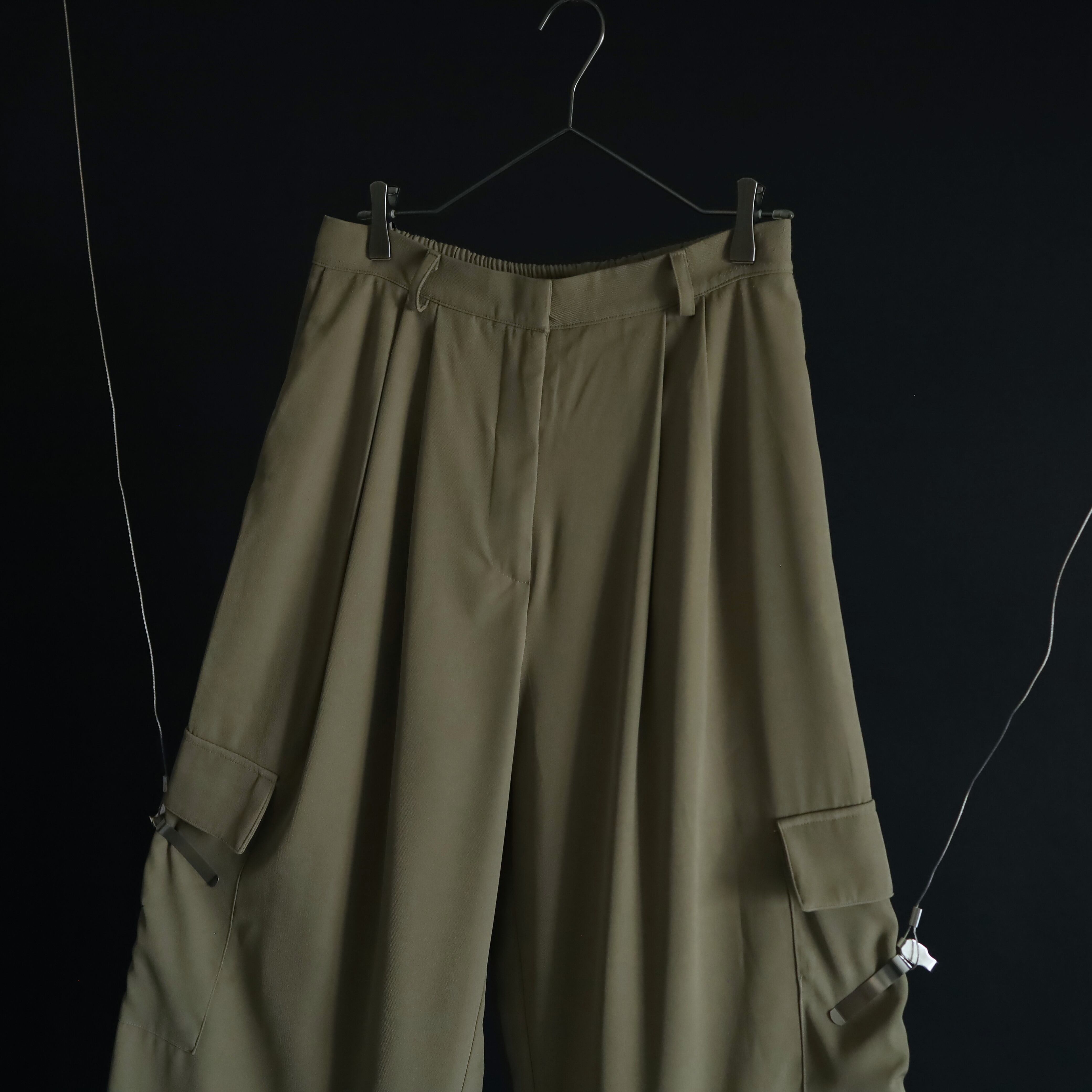 カジュアルなカーゴパンツの印象が,スラックスの生地,ディテールを加えることによって大人っぽく,きれいめな雰囲気に仕上げられた一本.