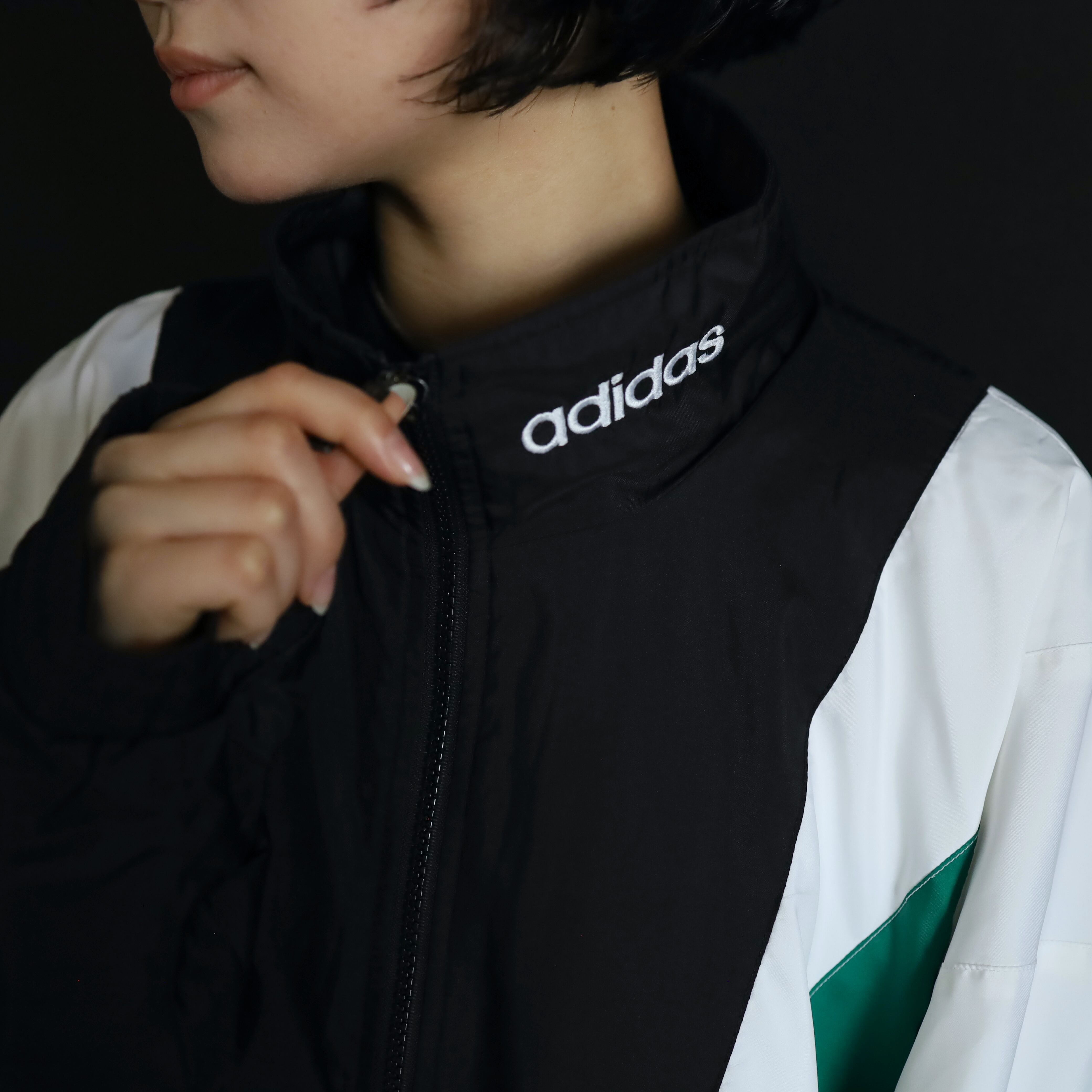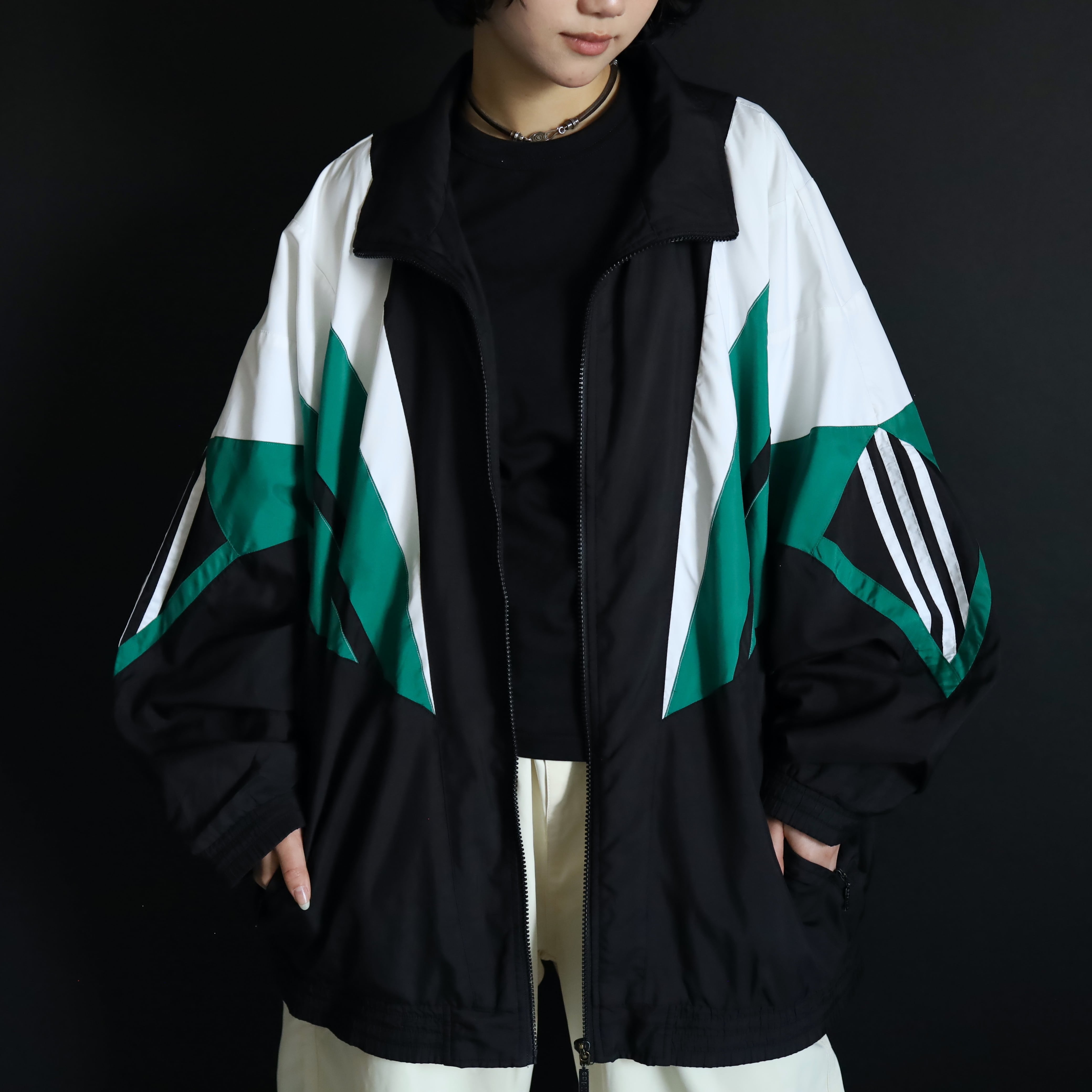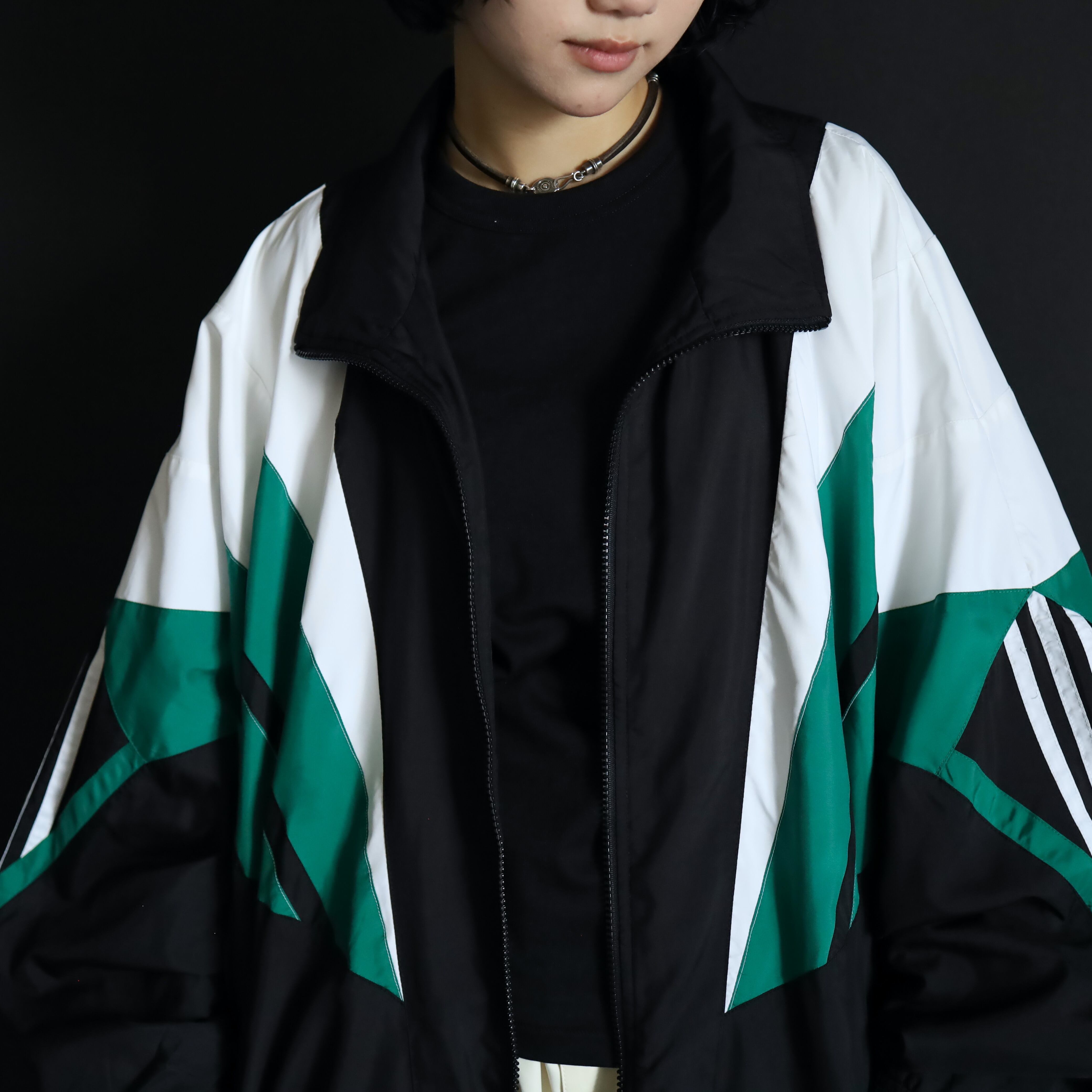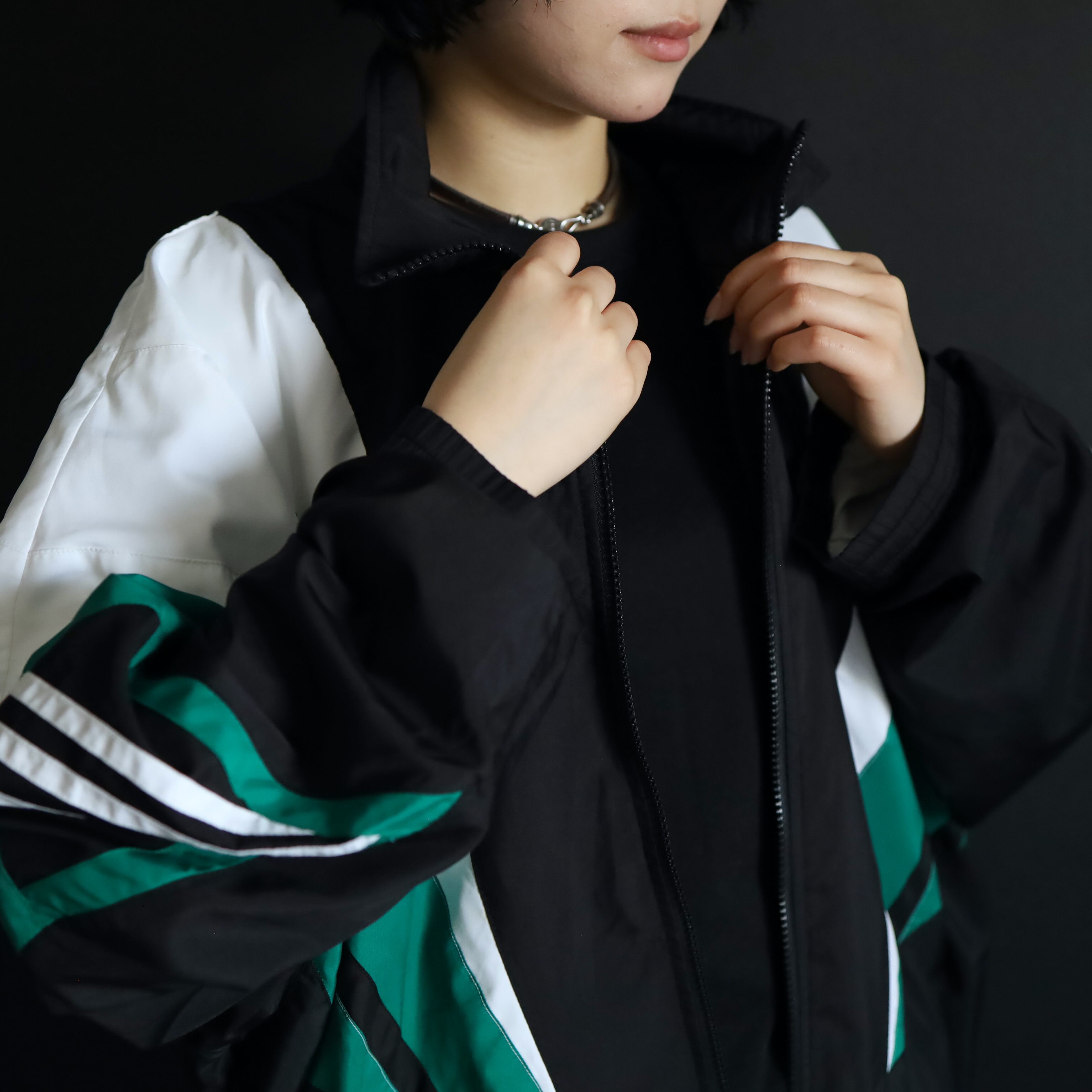 ブラックカラーボディをベースに,肩や袖を中心にグリーンカラーとホワイトカラー切替.