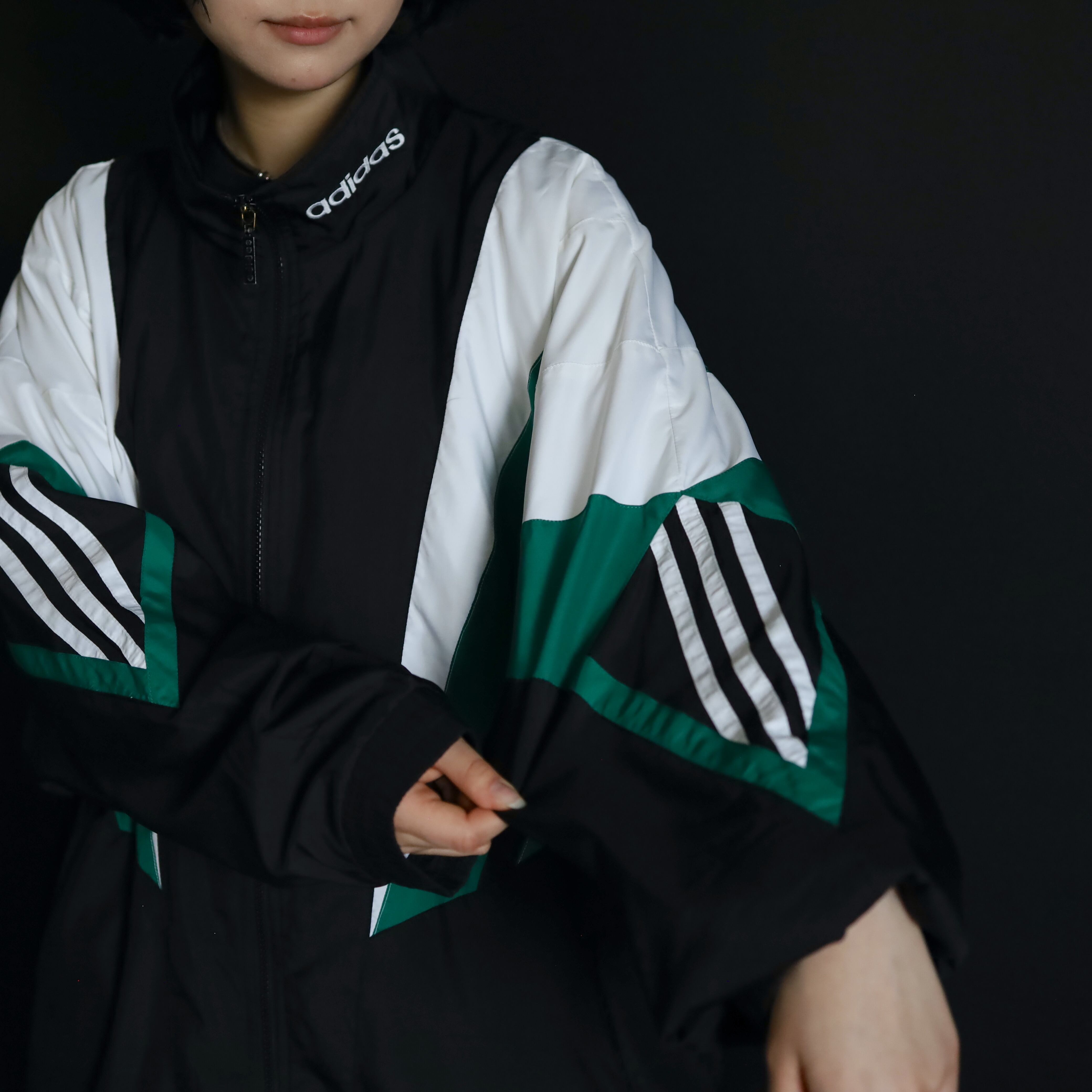 さらに袖中腹にはライン切替も備えた,adidasらしいデザインも組み込まれた一枚.