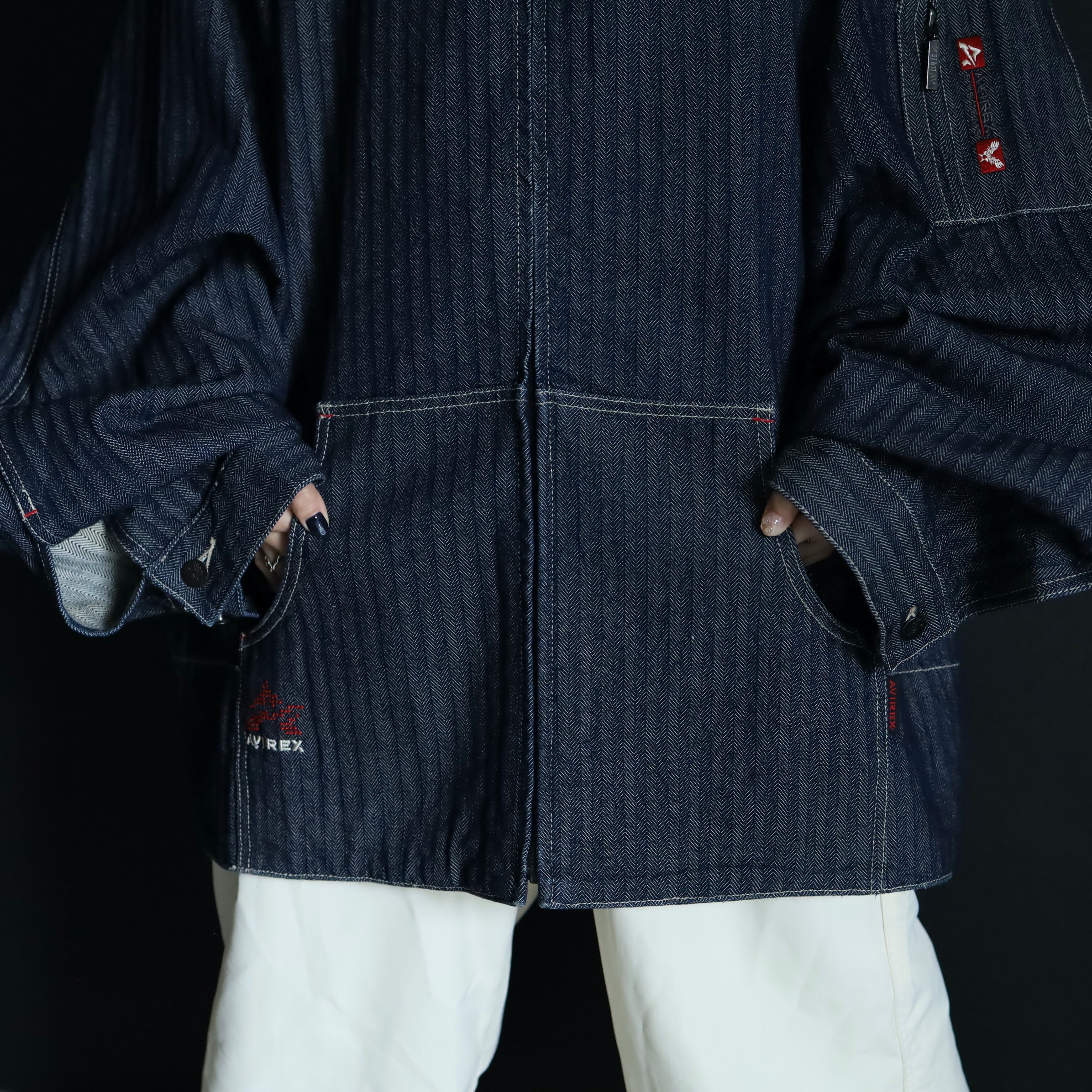 大きめのバンドウォーマーポケットをはじめ,左袖のジップシガレットポケットもいい表情.