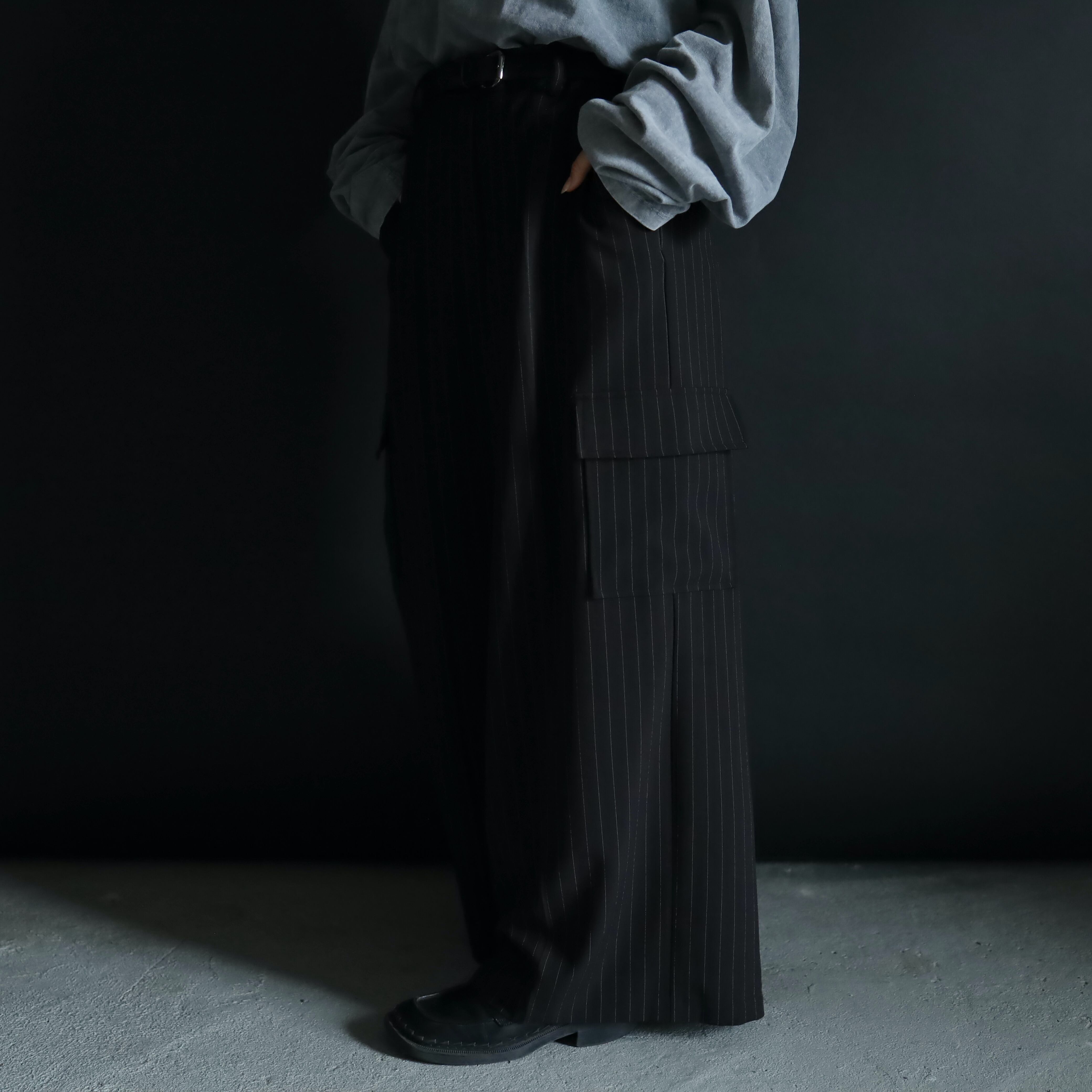 左右にカーゴポケットが備えられており,スラックスながらフォーマル過ぎないデザインも◎