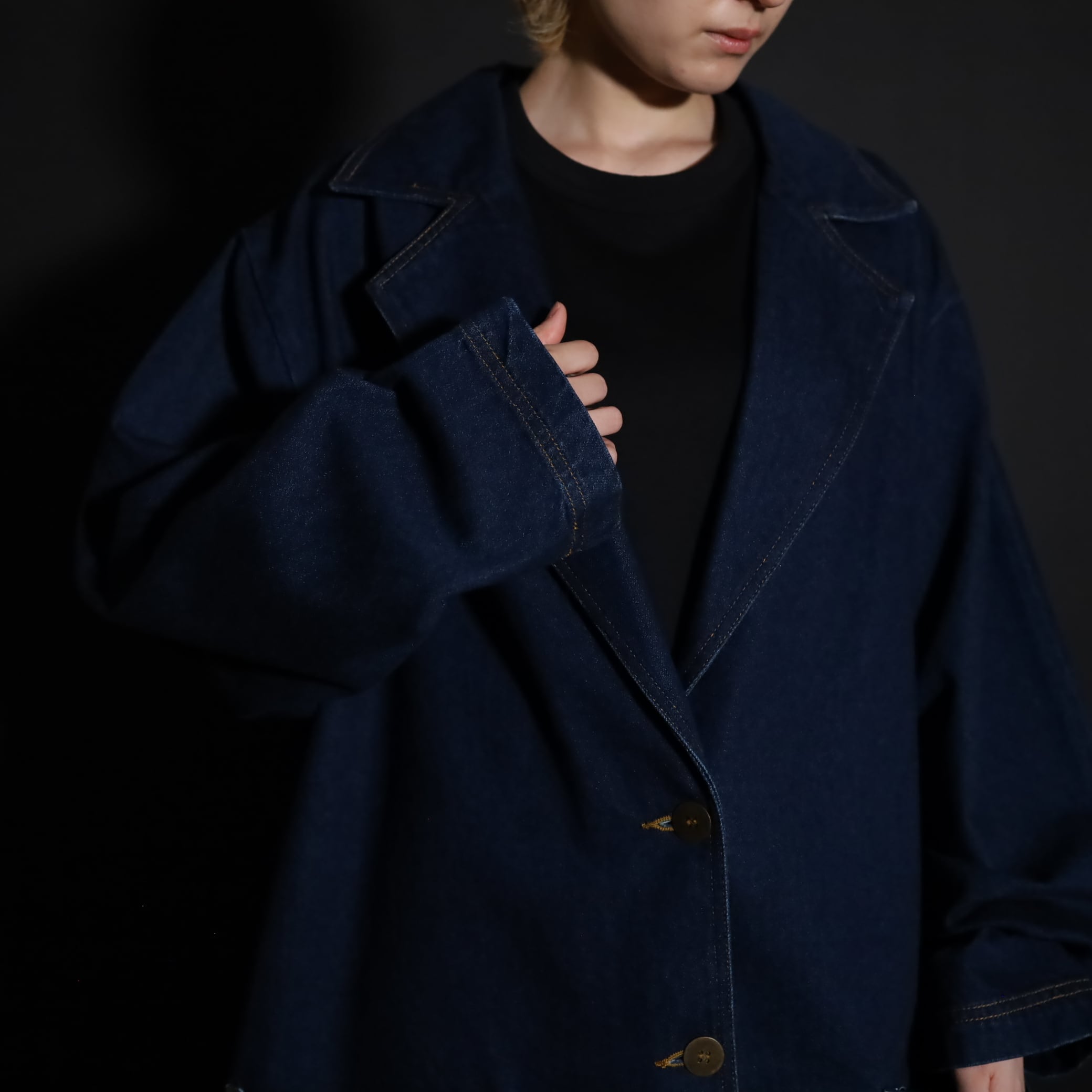 ミドルインディゴカラーのライトオンスデニムで,まさに今の気温にぴったりの生地感.