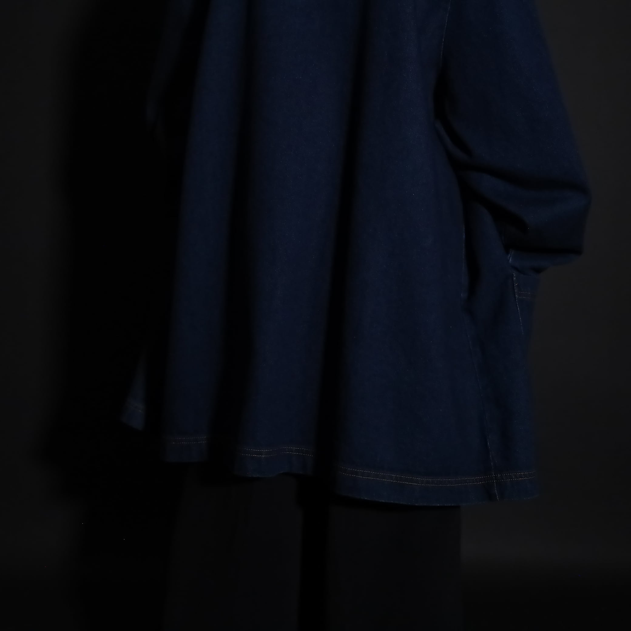スッキリとした肩幅に対して広い身幅を持ち,着用時には綺麗なAラインを描きます.