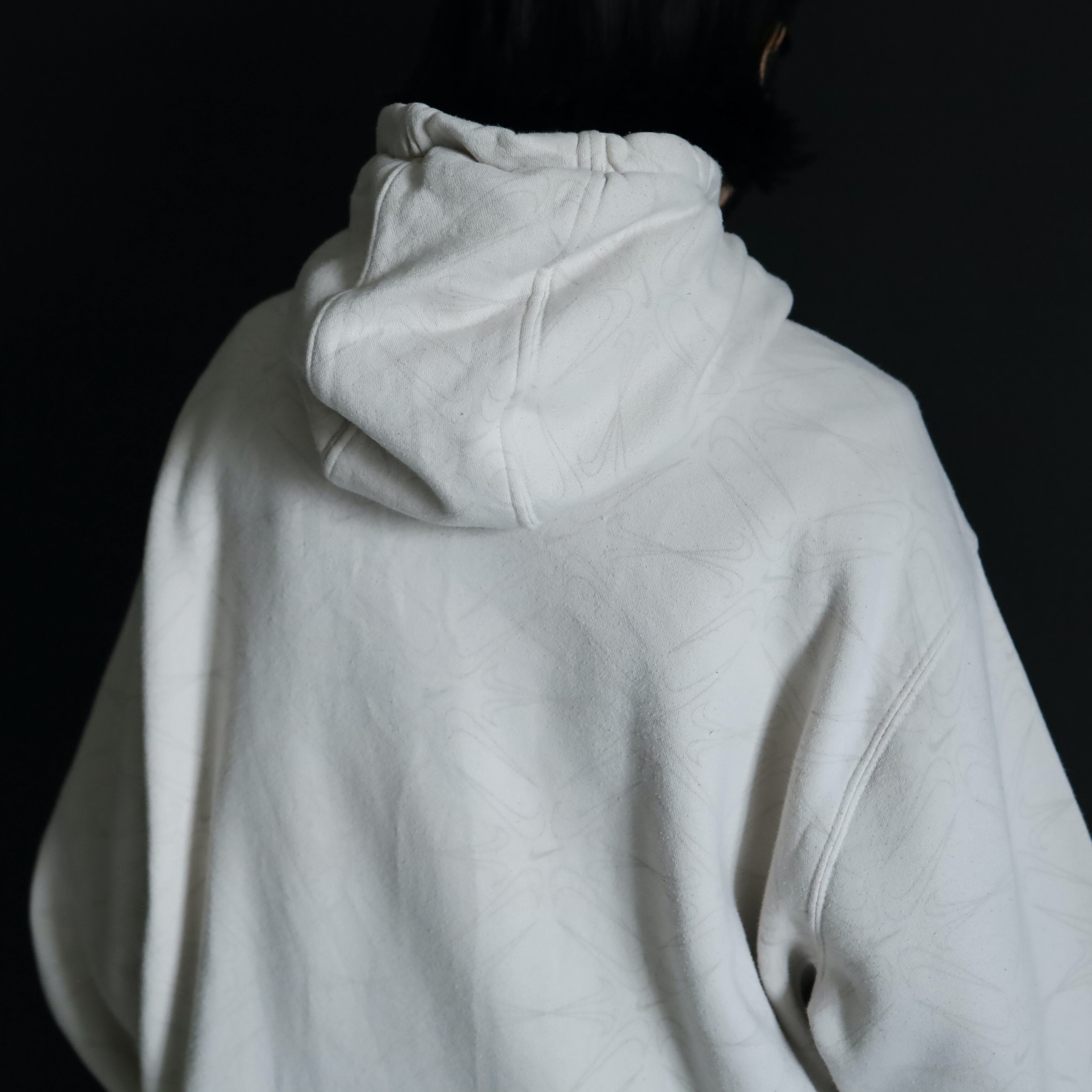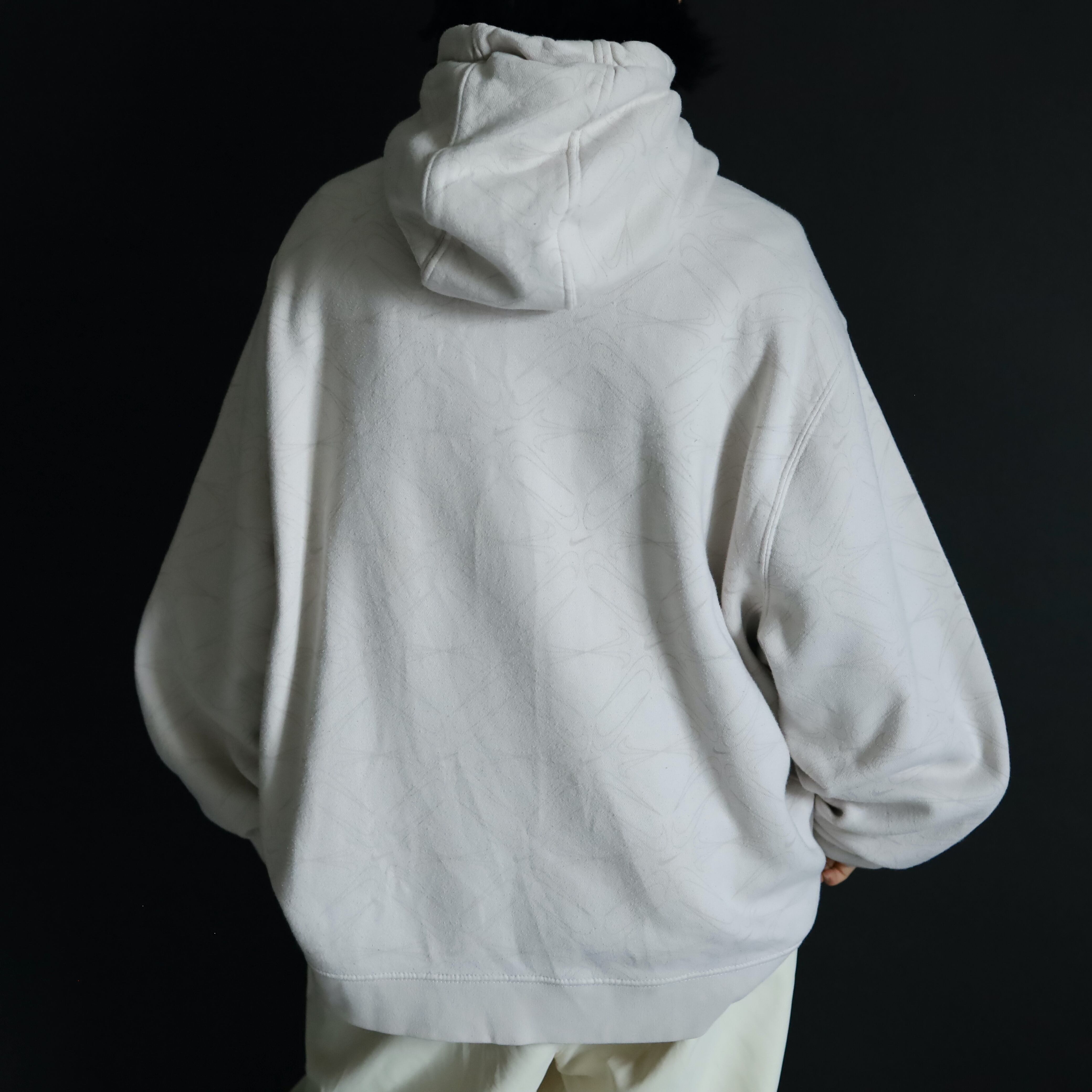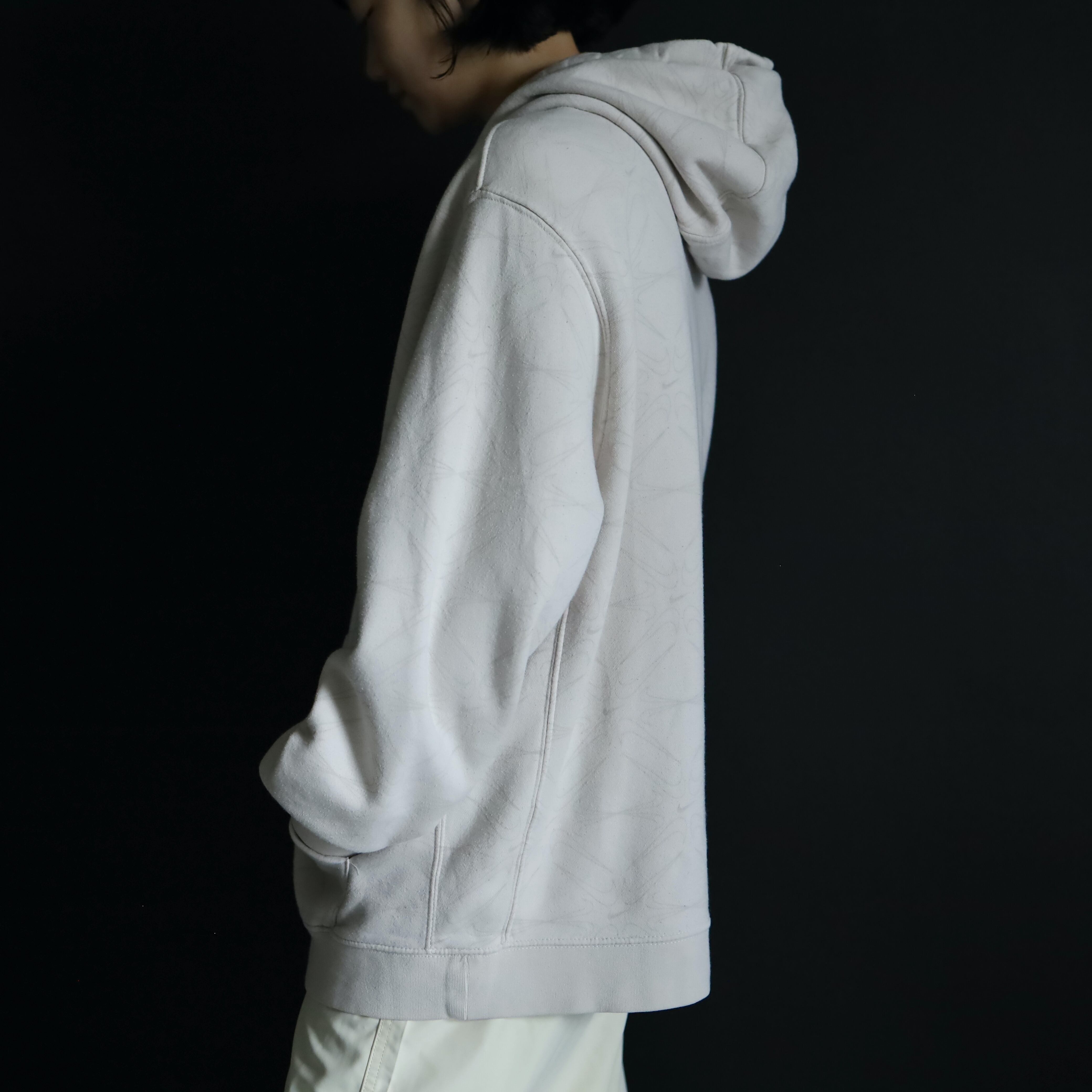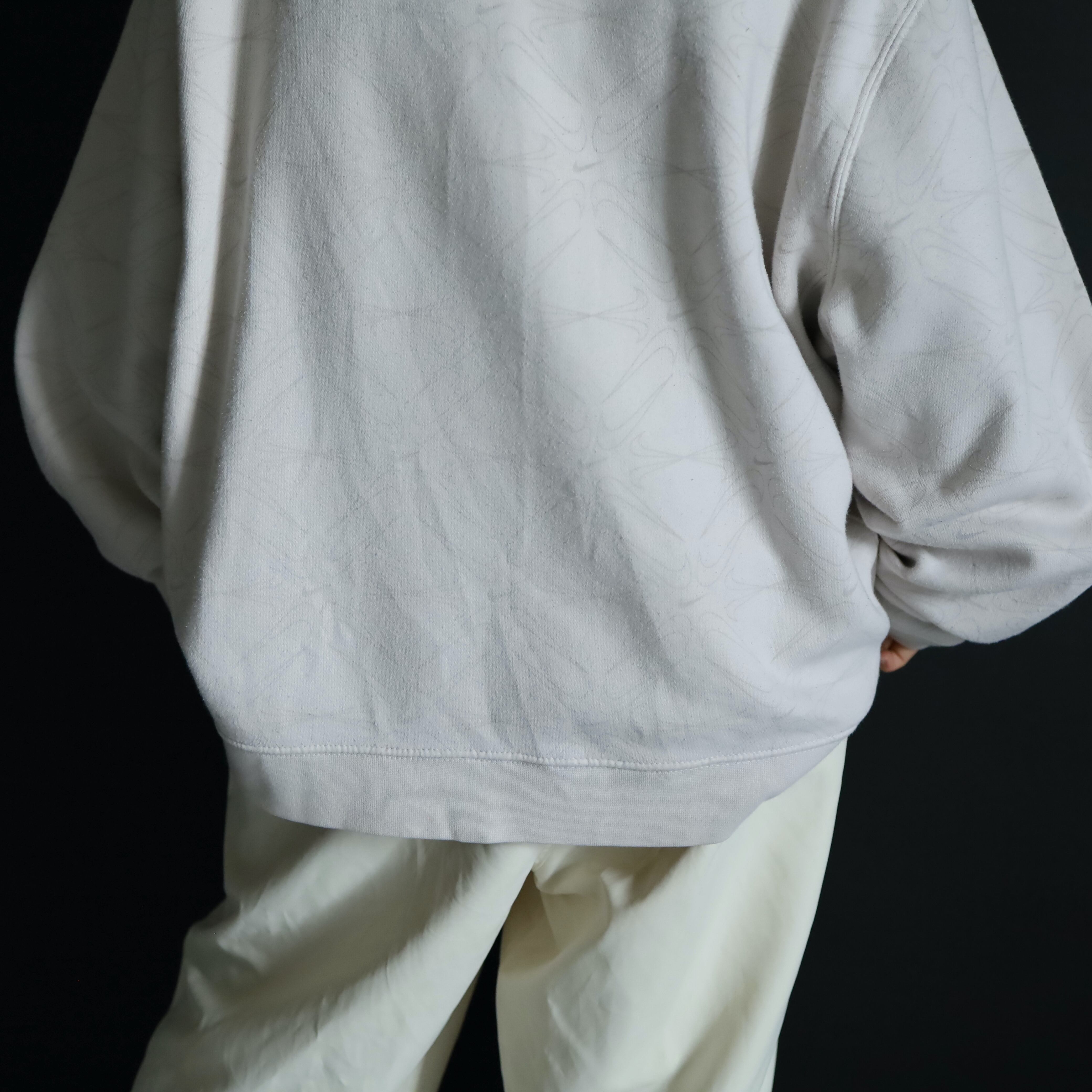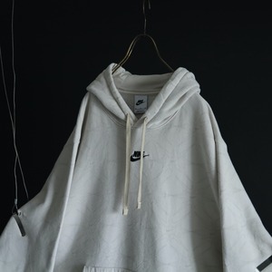 フロントにブラックのNIKEとスウッシュロゴ刺繍,全体に幾何学調のスウッシュプリントデザイン.