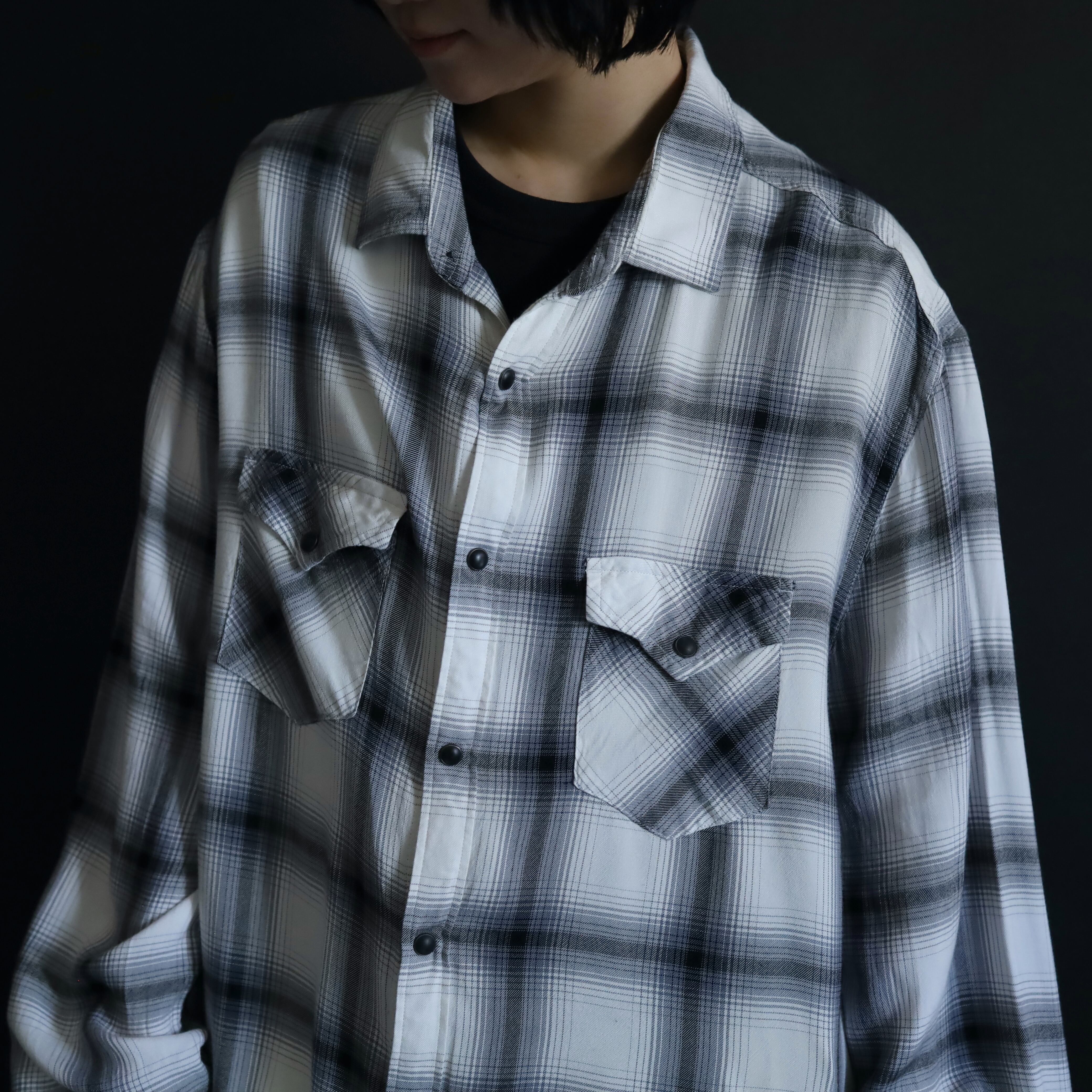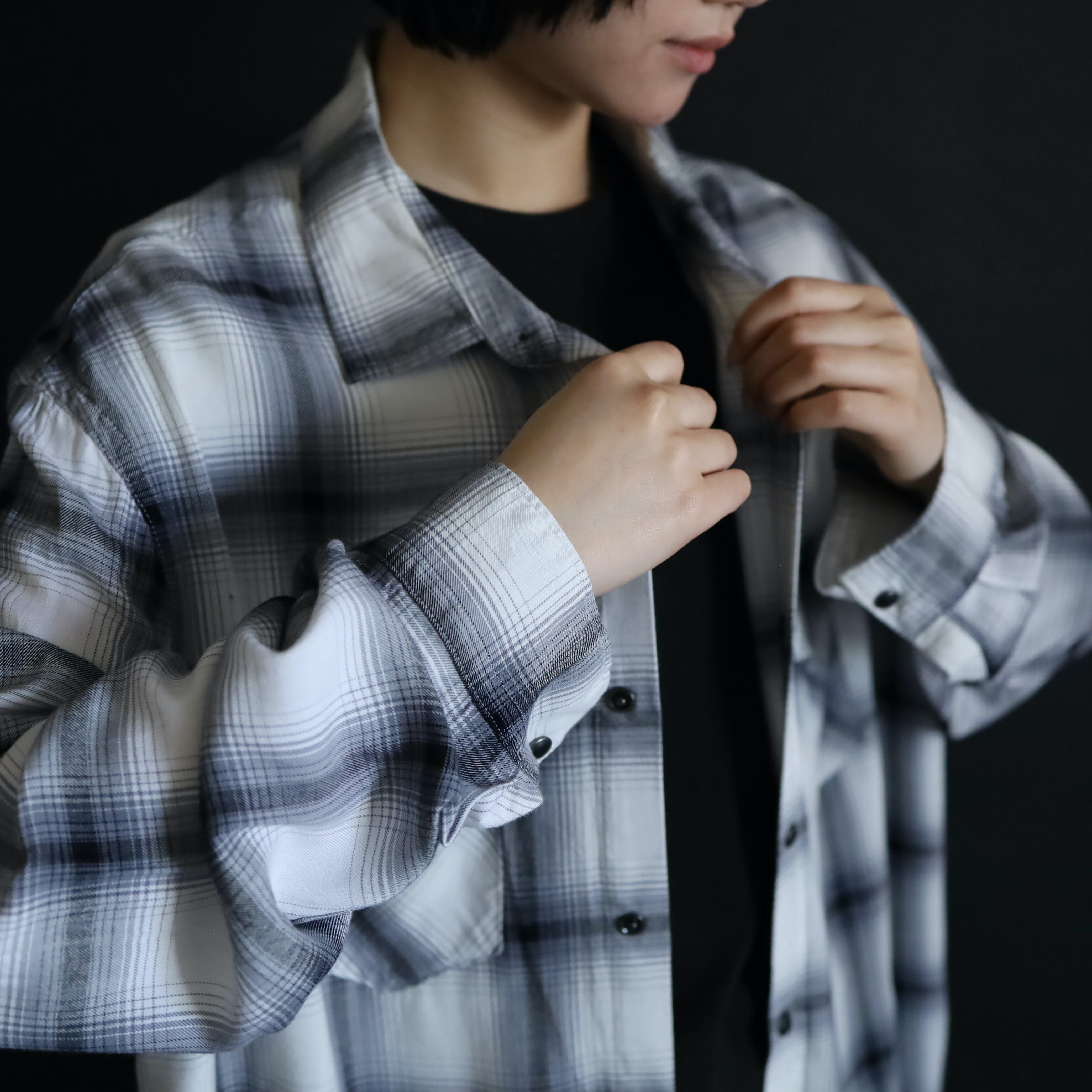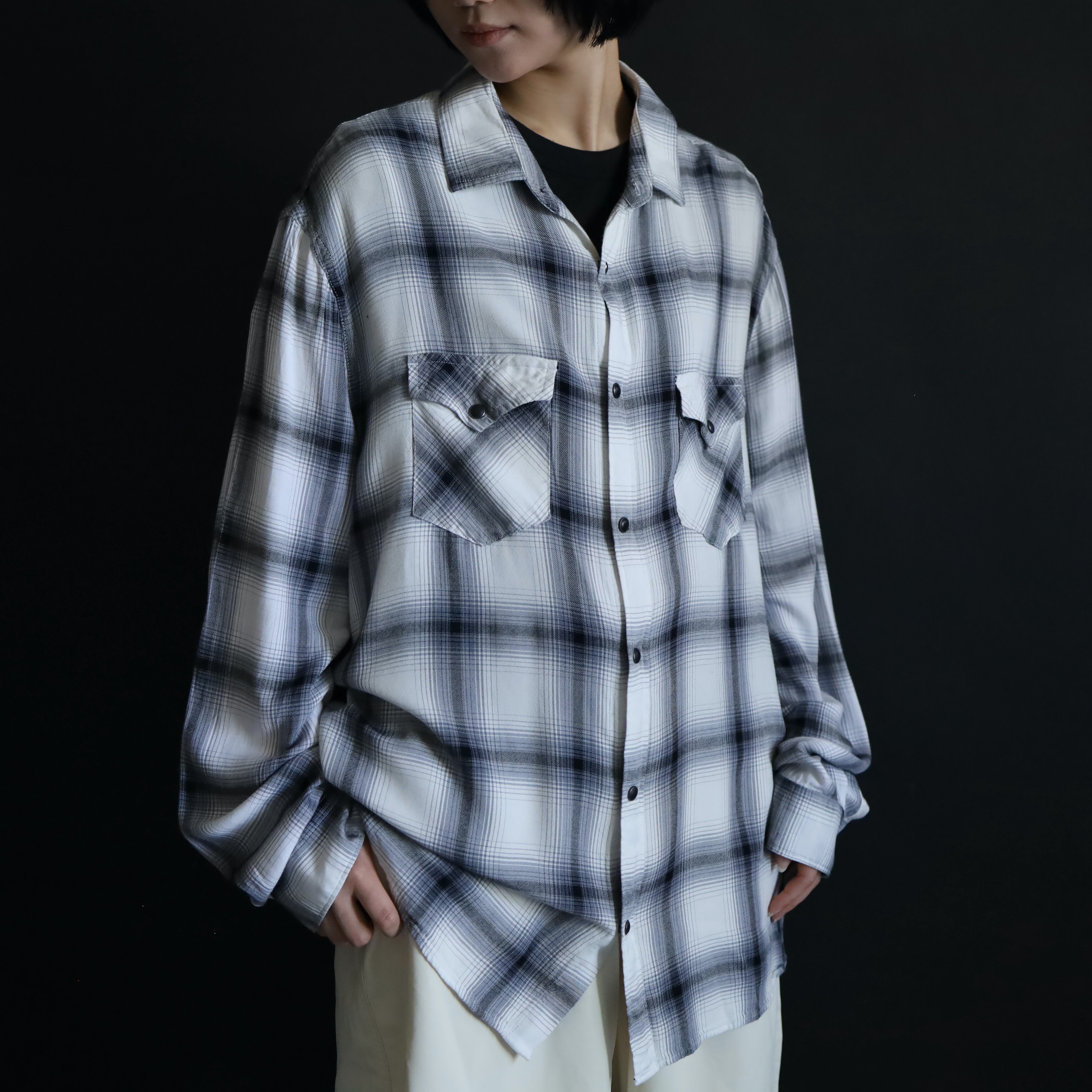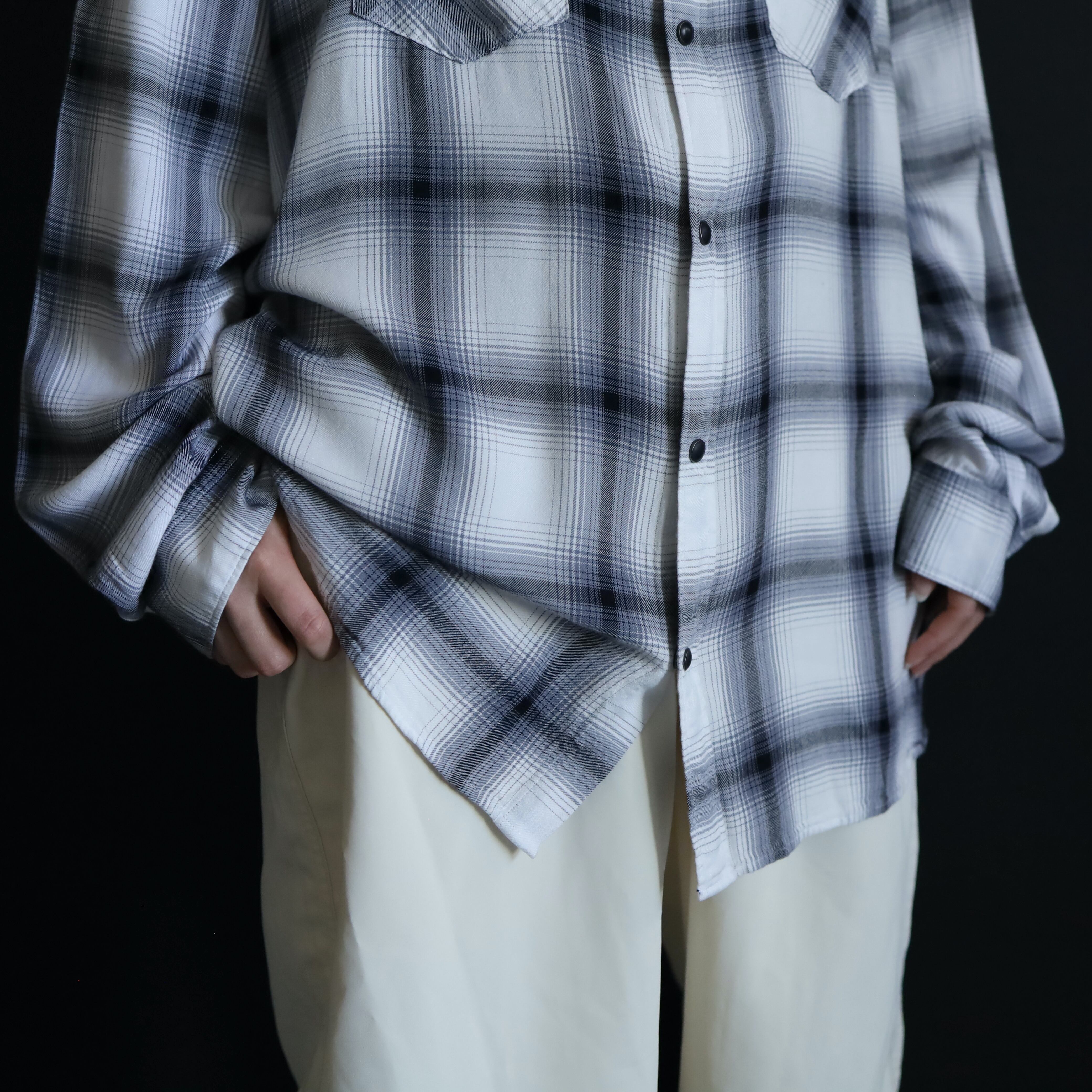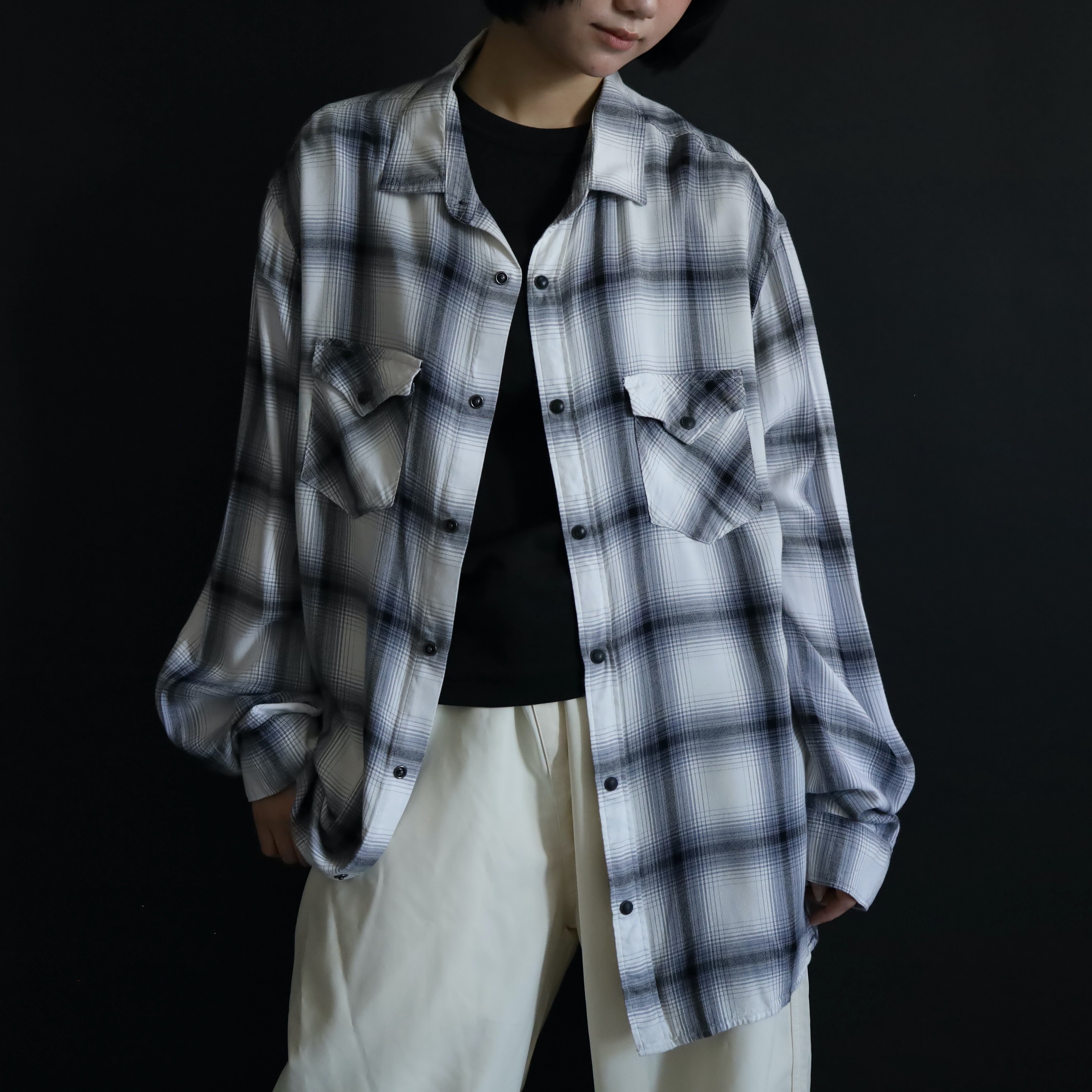 ホワイトボディをベースに,ブラック,グレーで構成されたオンブレチェックデザイン.