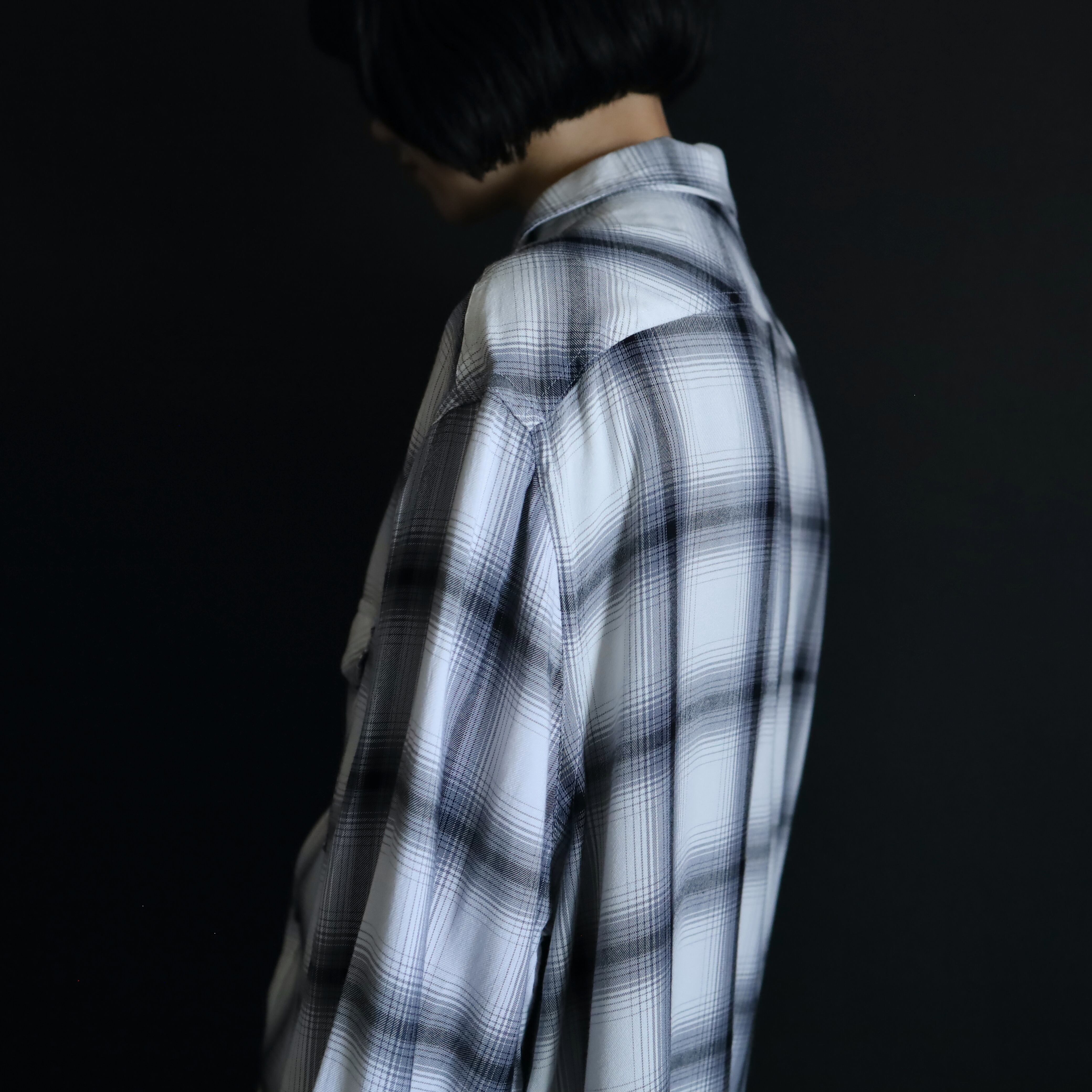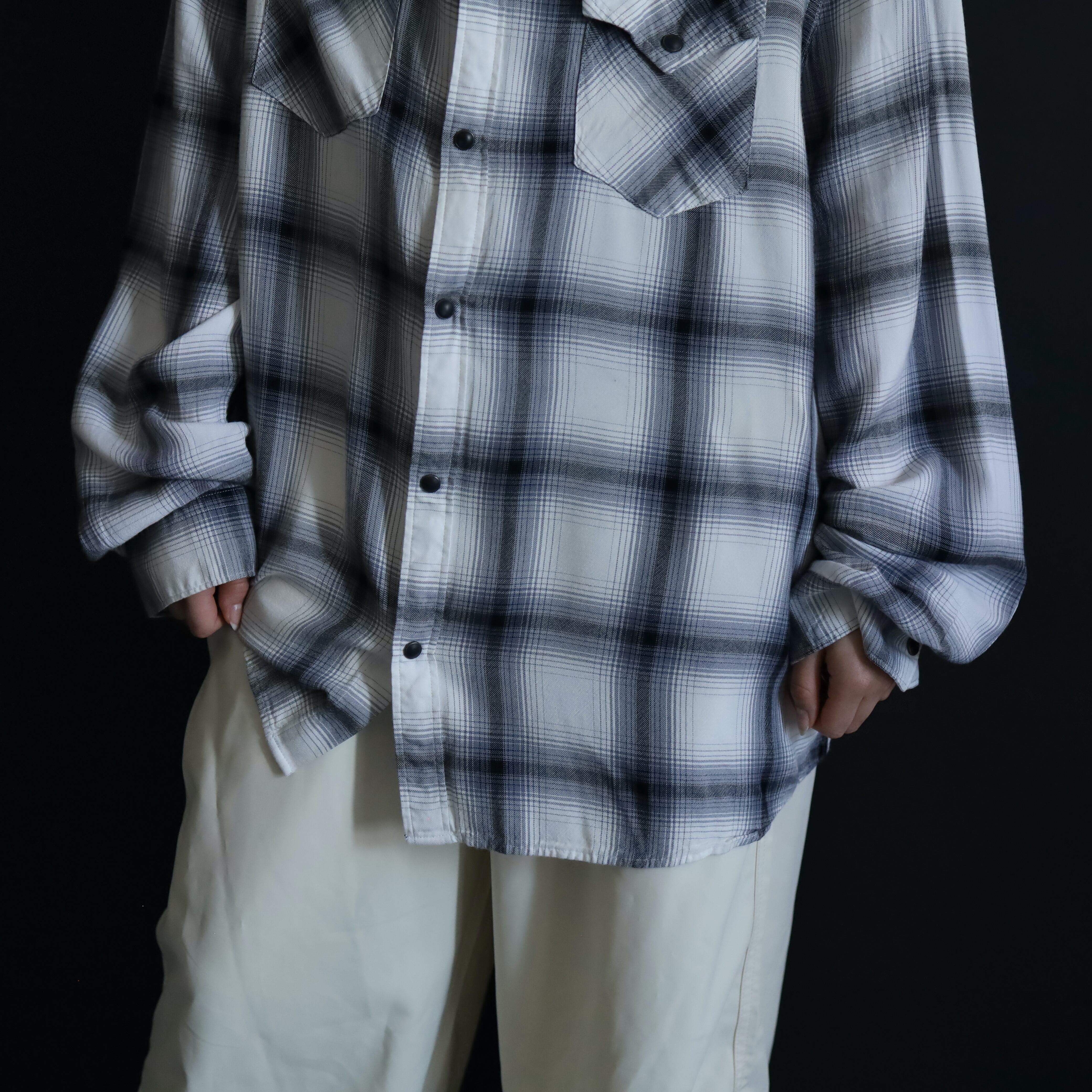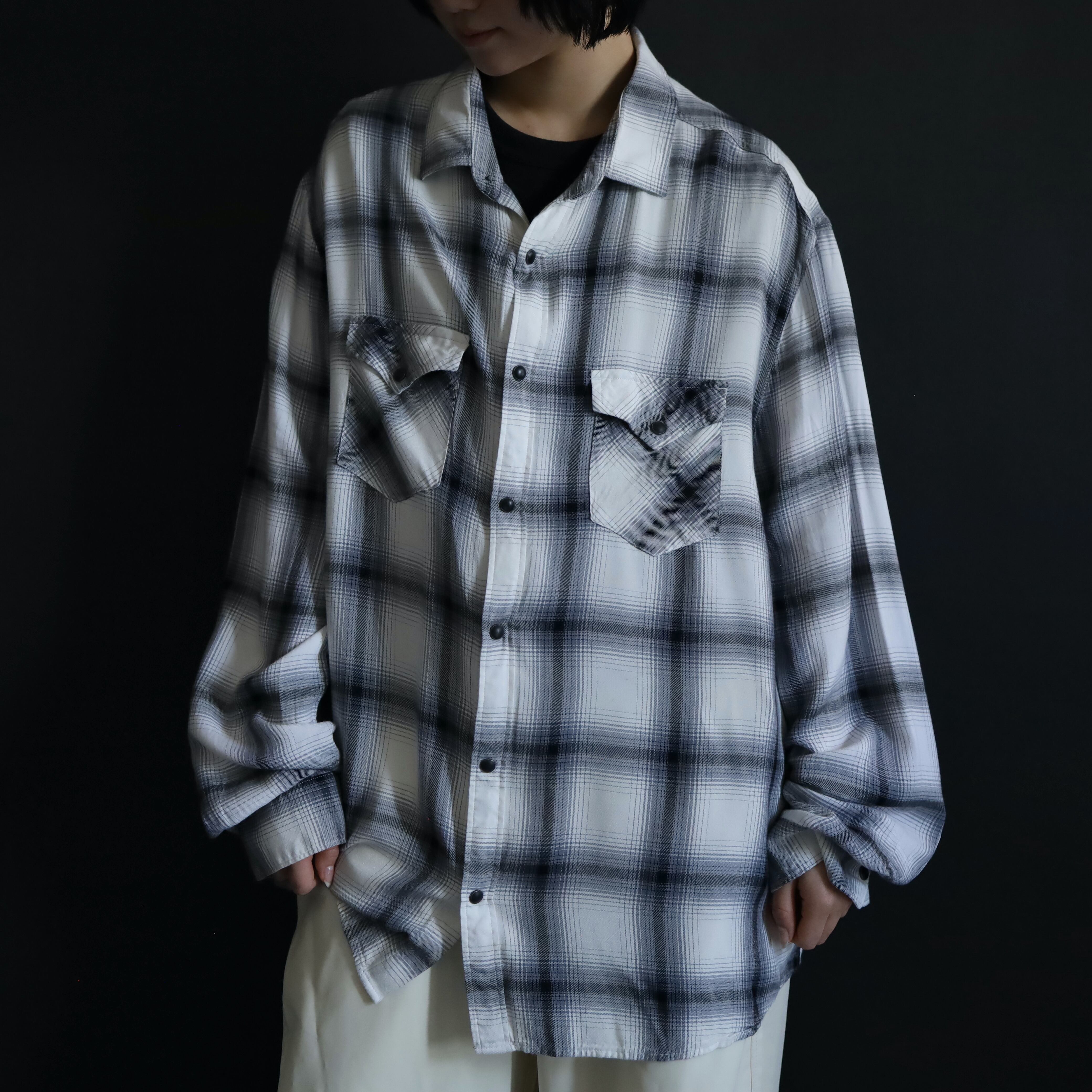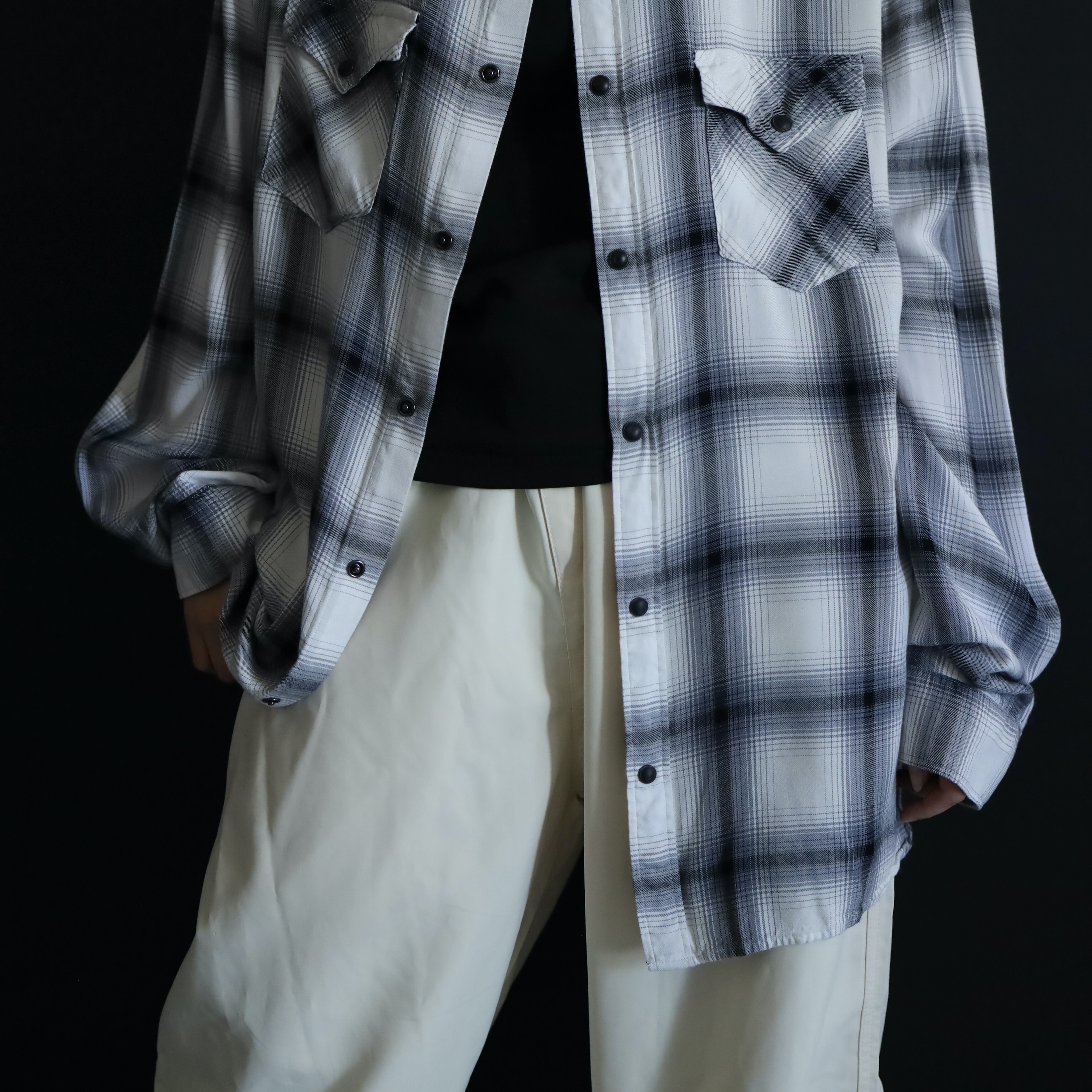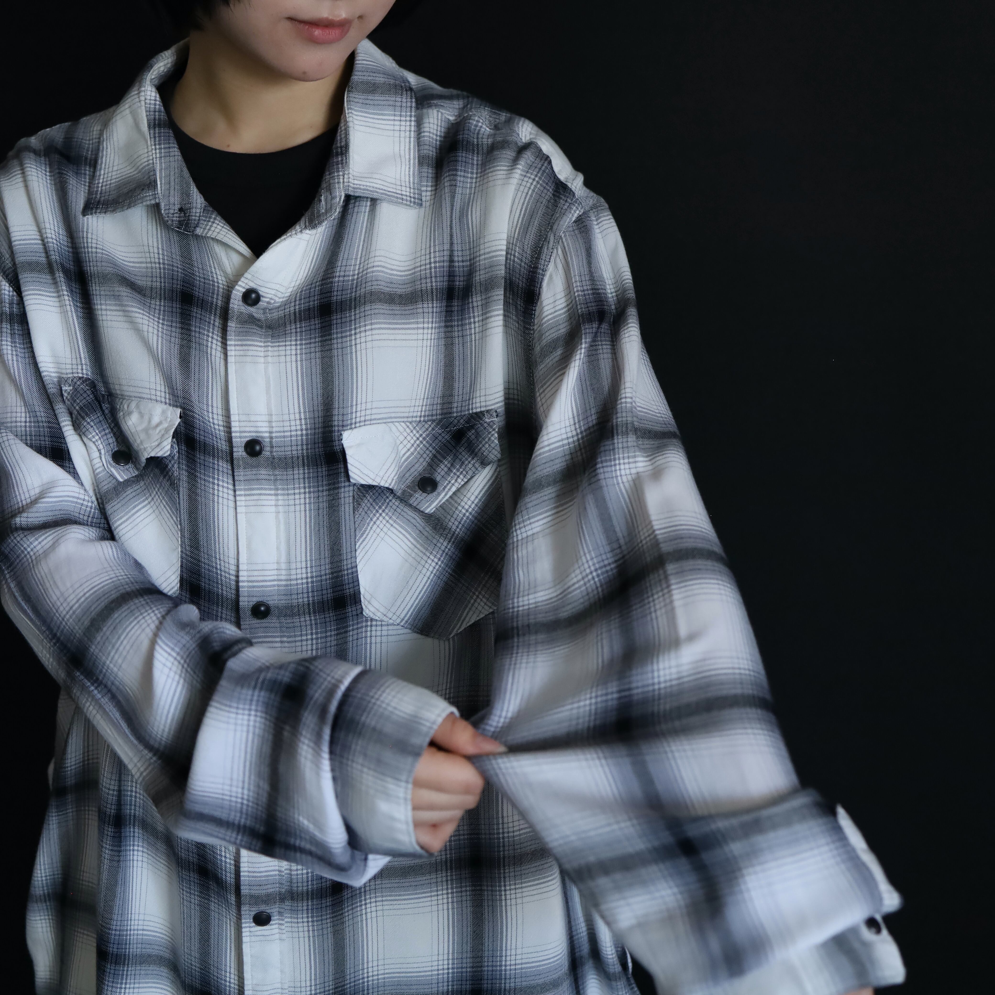 ホワイトボディをベースに,ブラック,グレーで構成されたオンブレチェックデザイン.