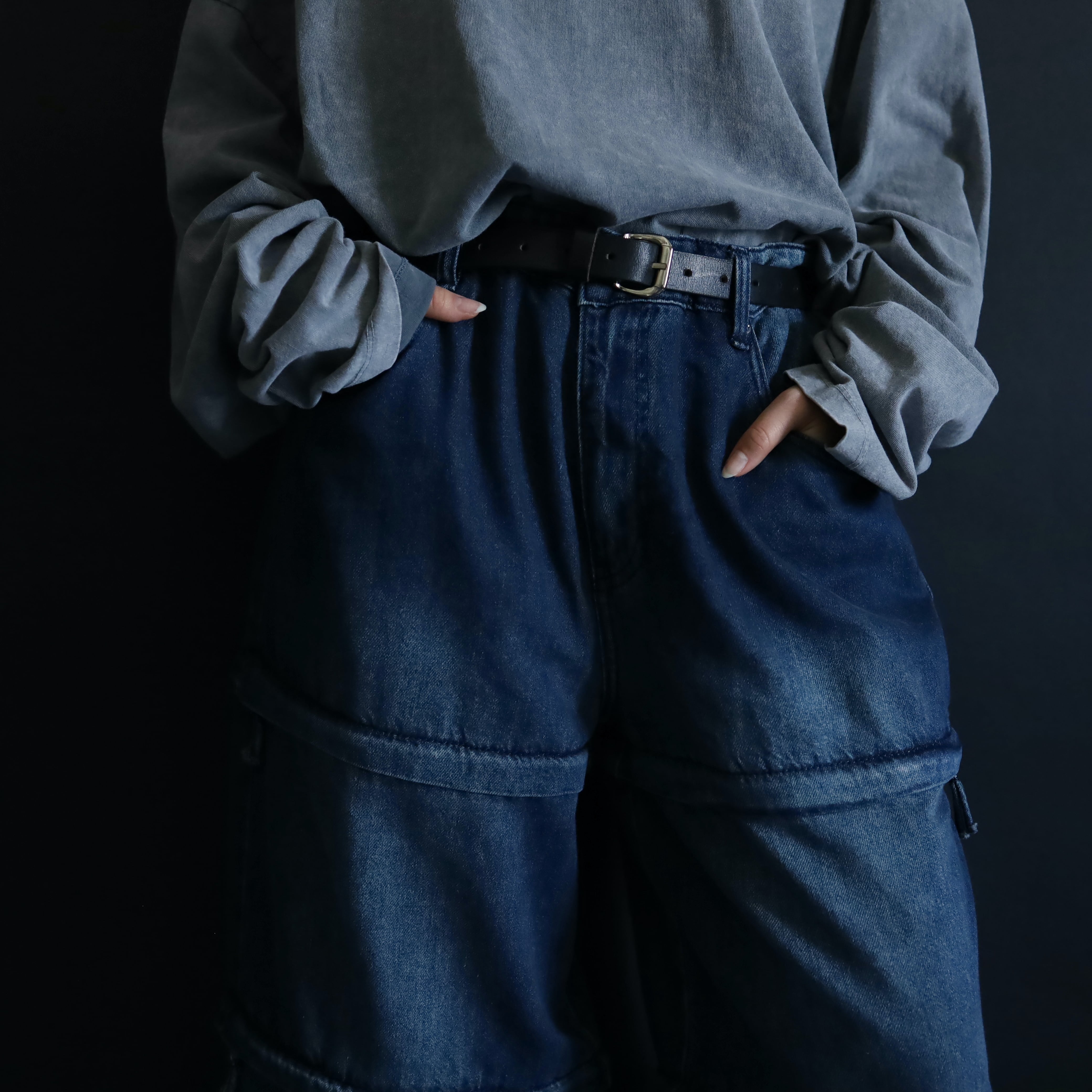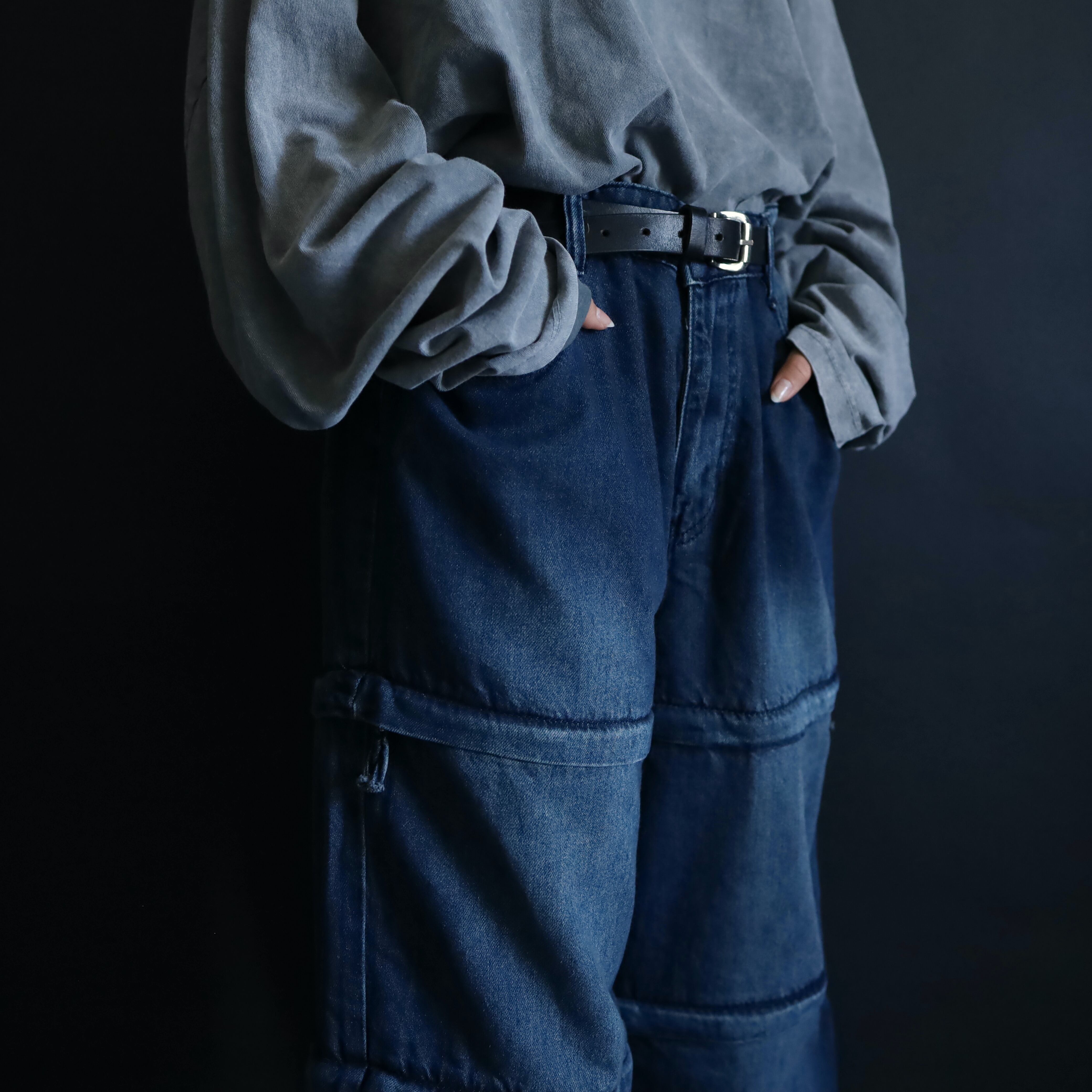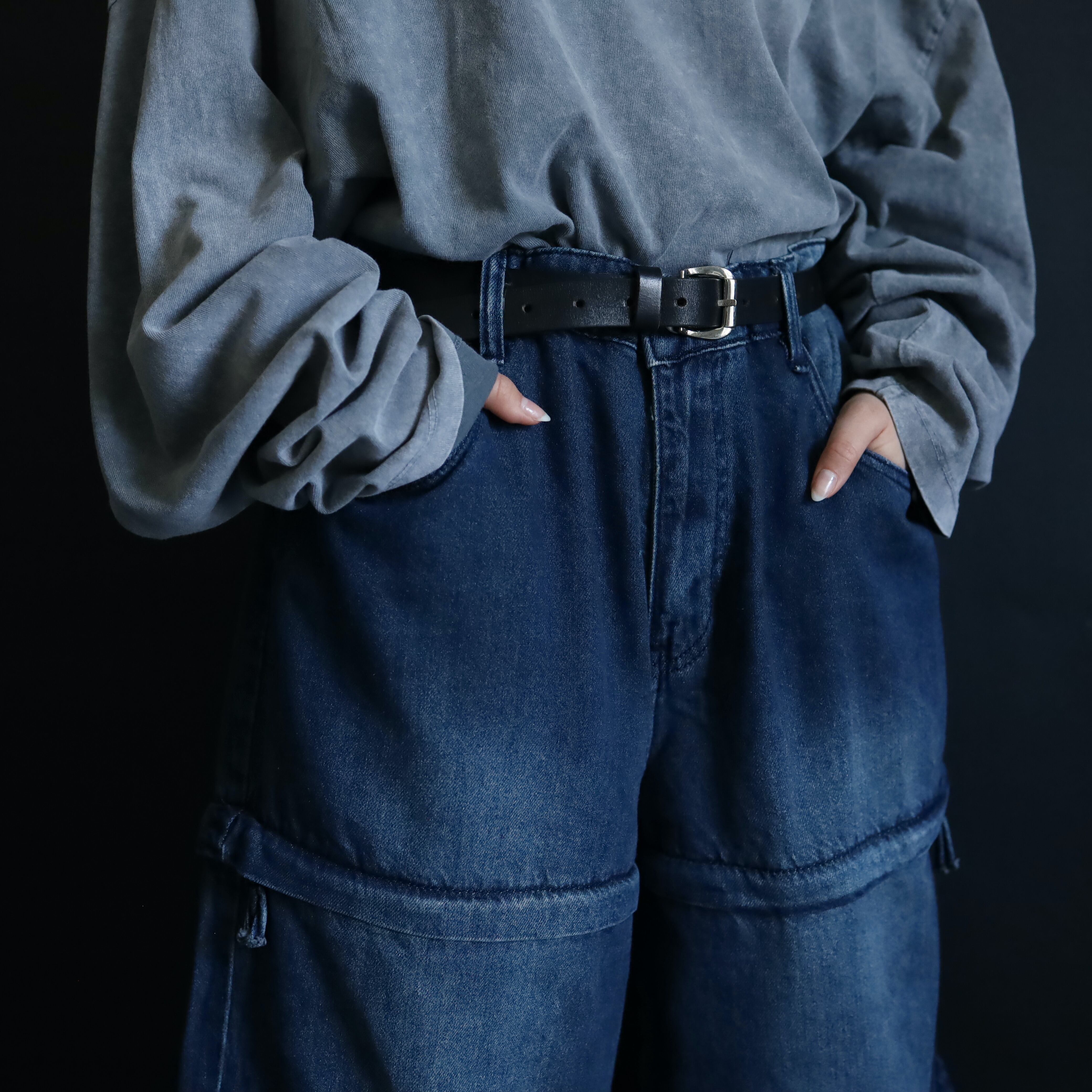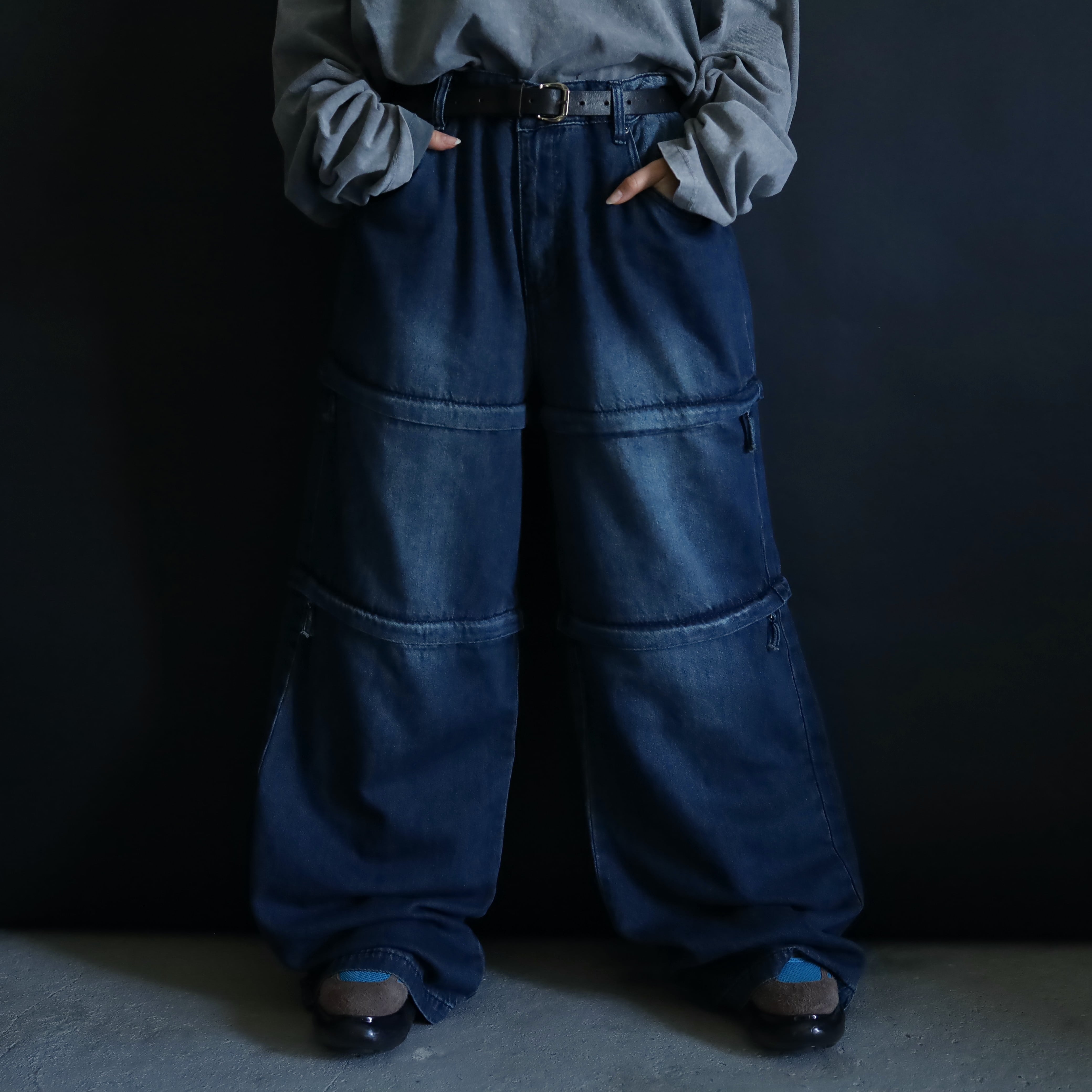 全体にかけてしっかりワイドシルエットにつき,どの丈で着用してもいいボリューム感に仕上がります.
