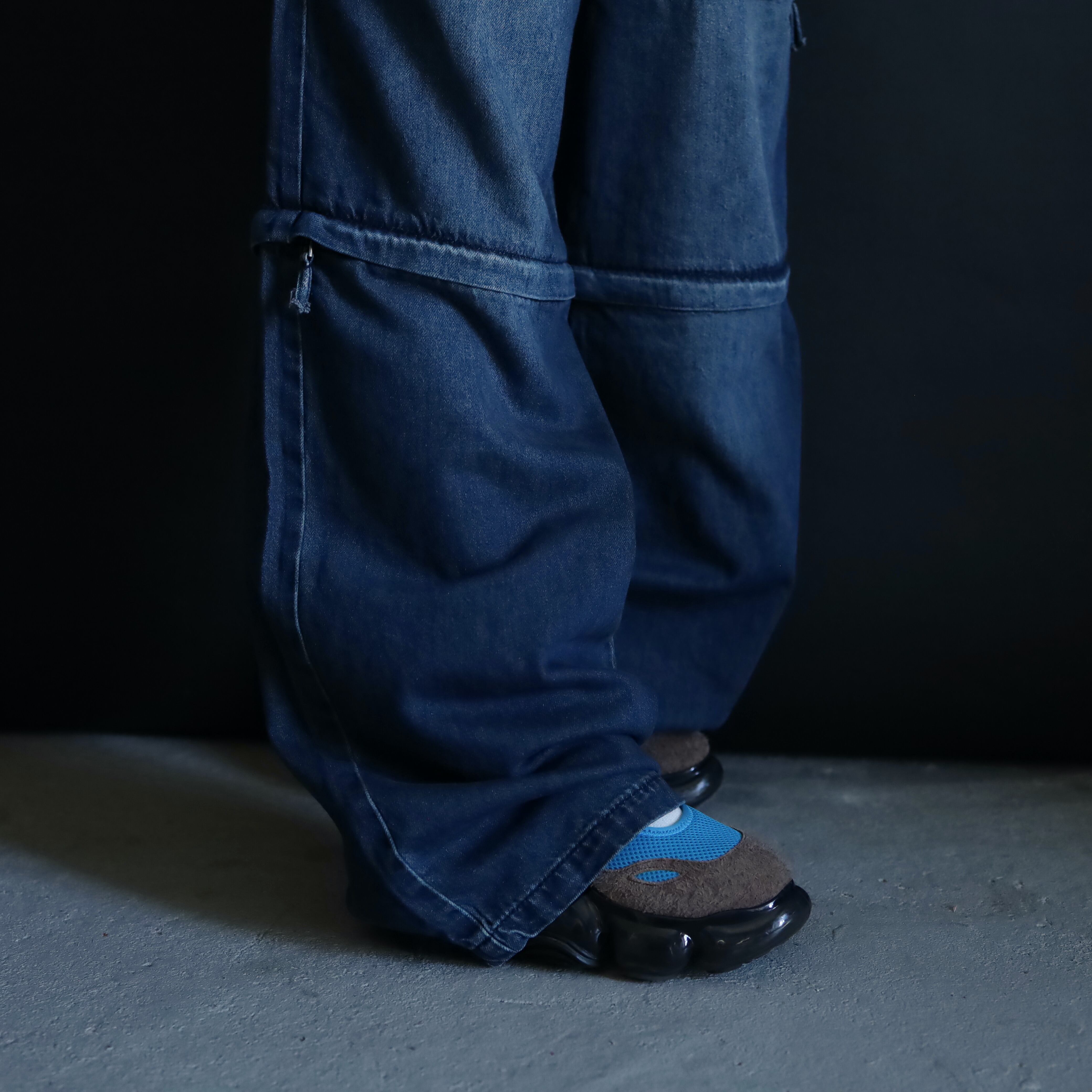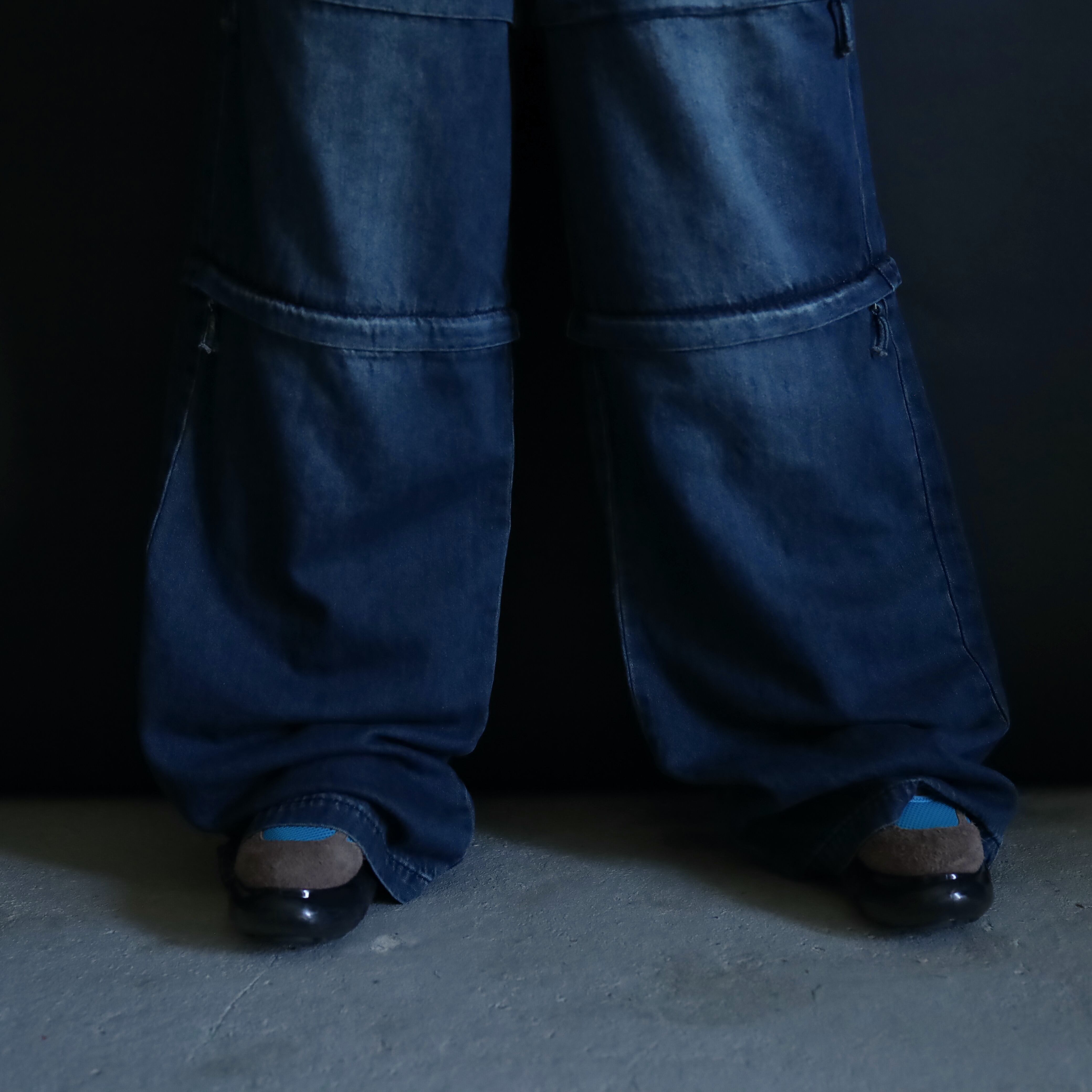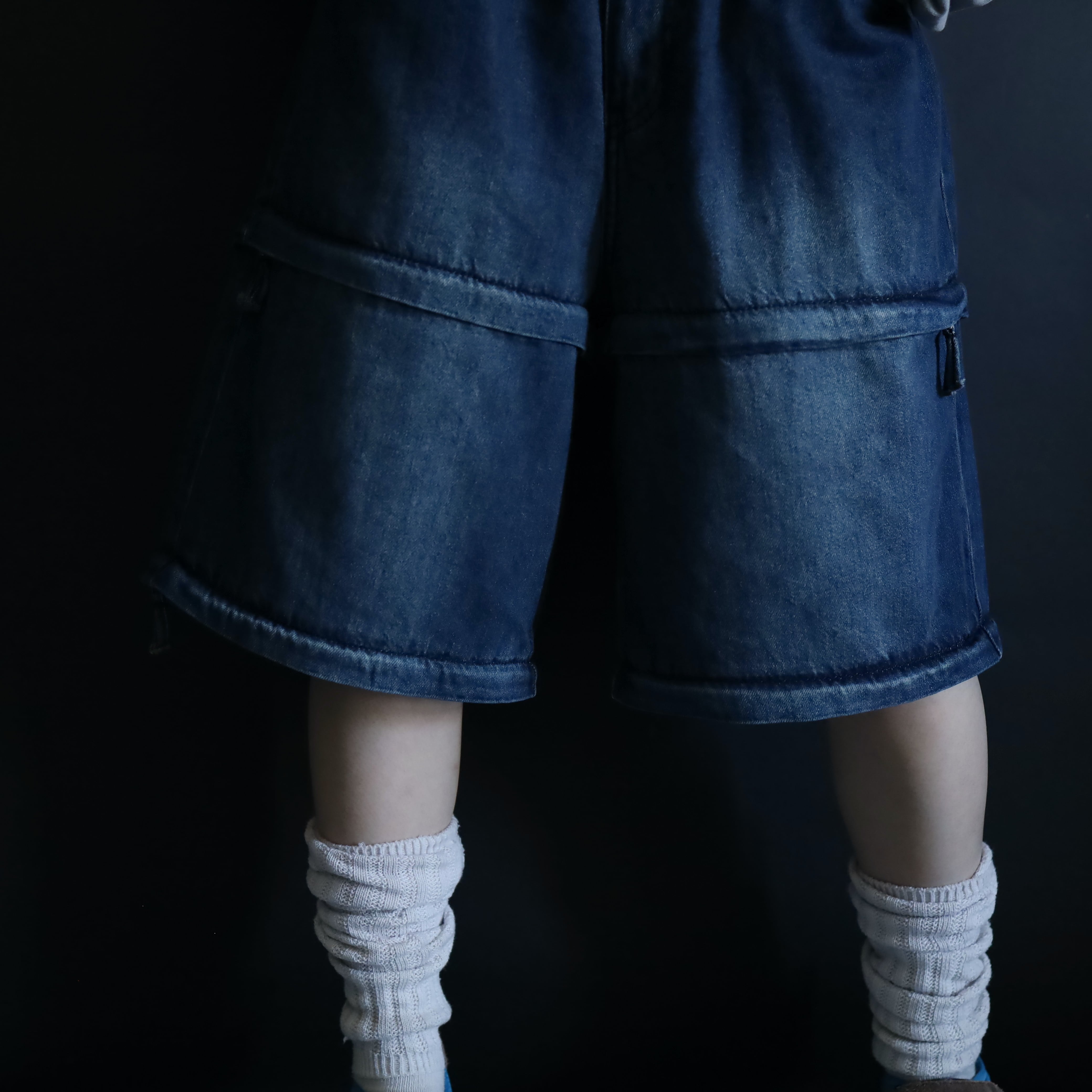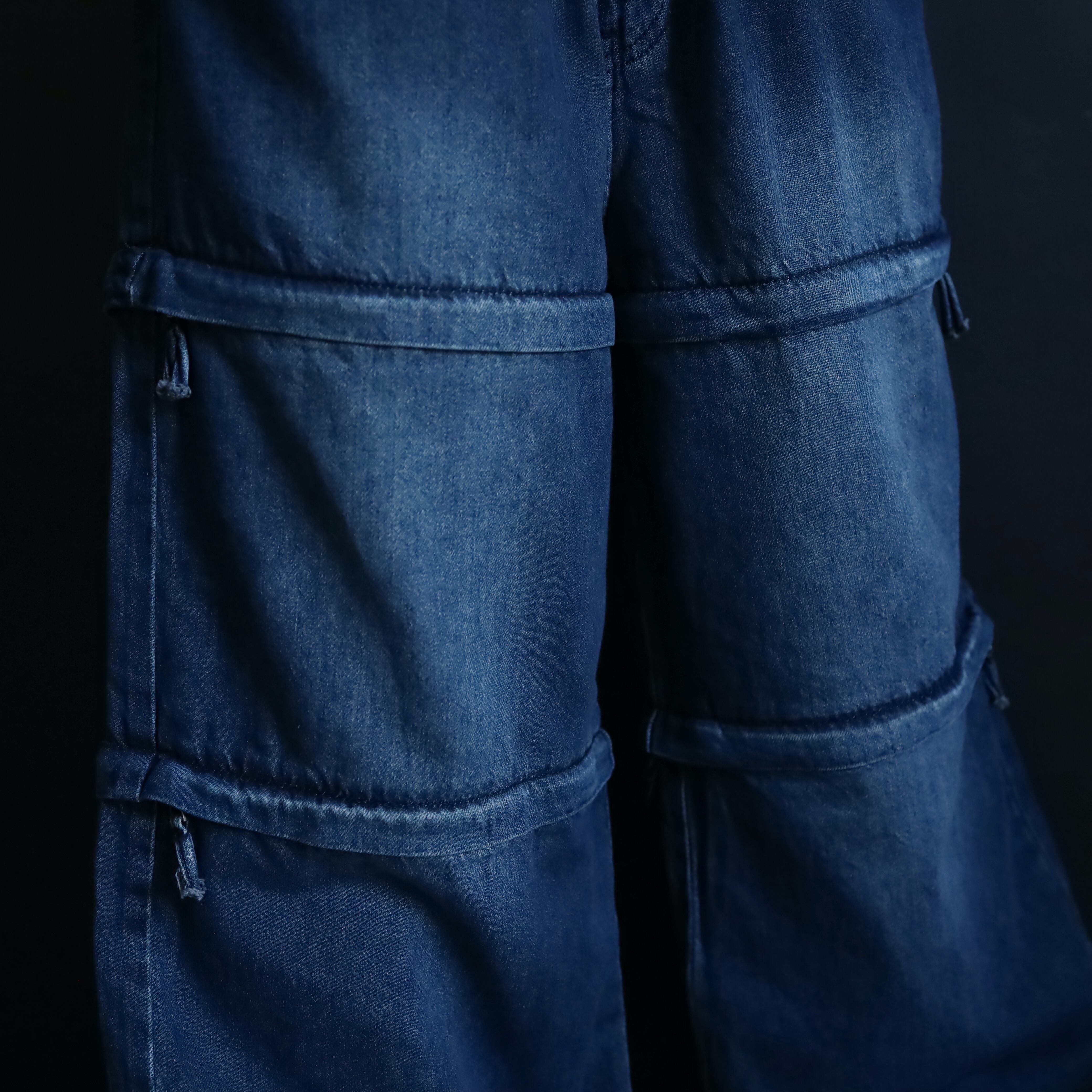 膝あたりと太もも中腹にジッパーが仕込まれており,そのラインで丈の長さを切替られます.