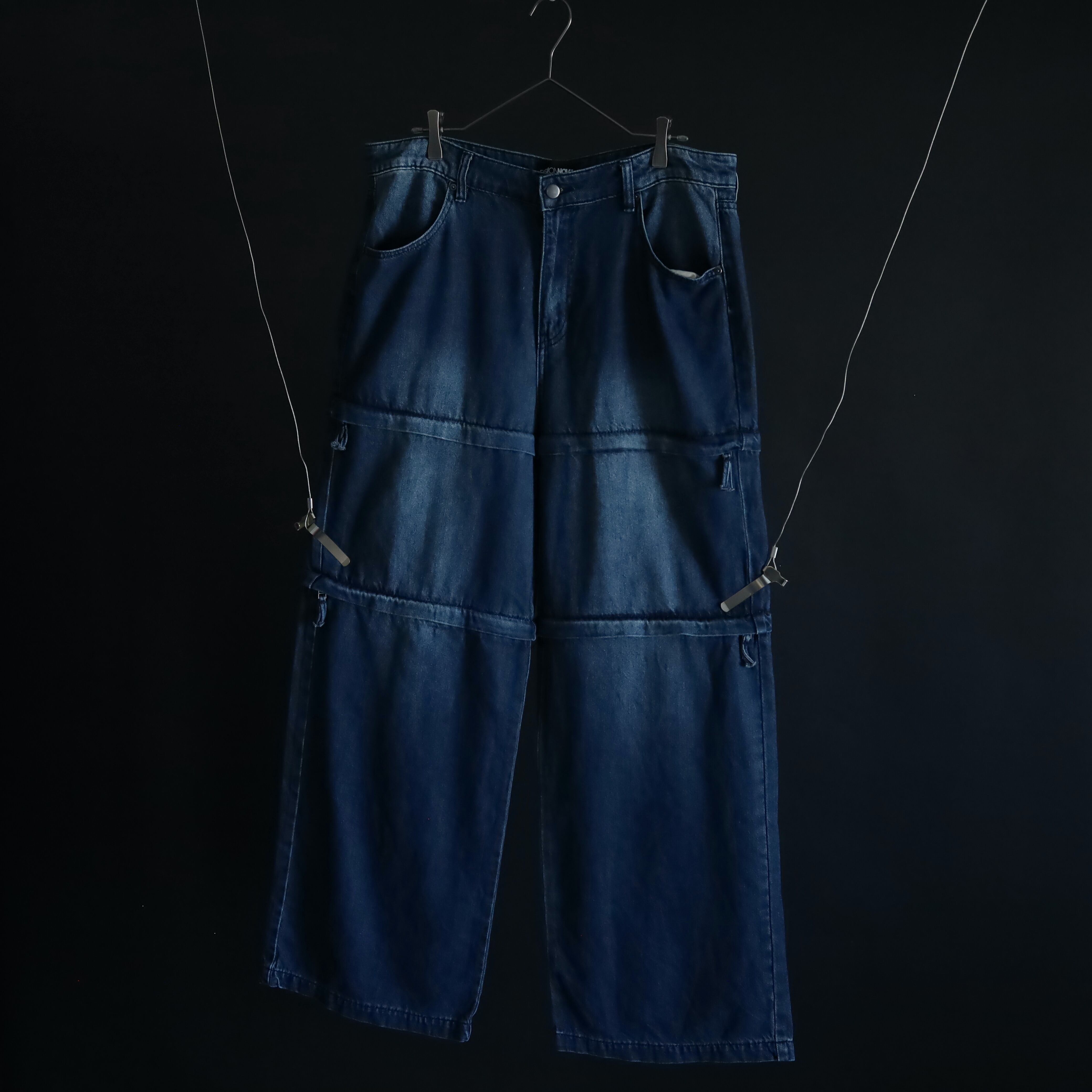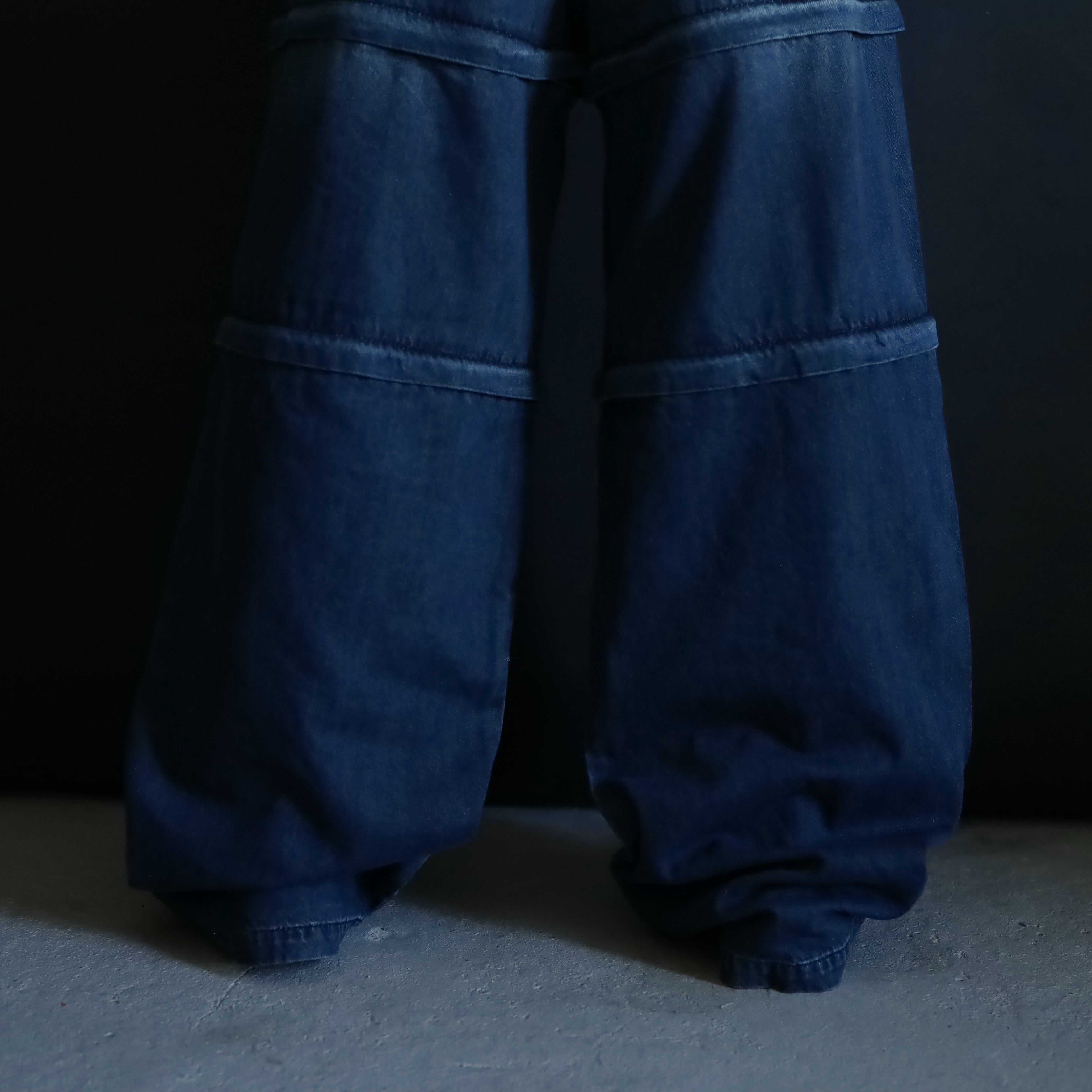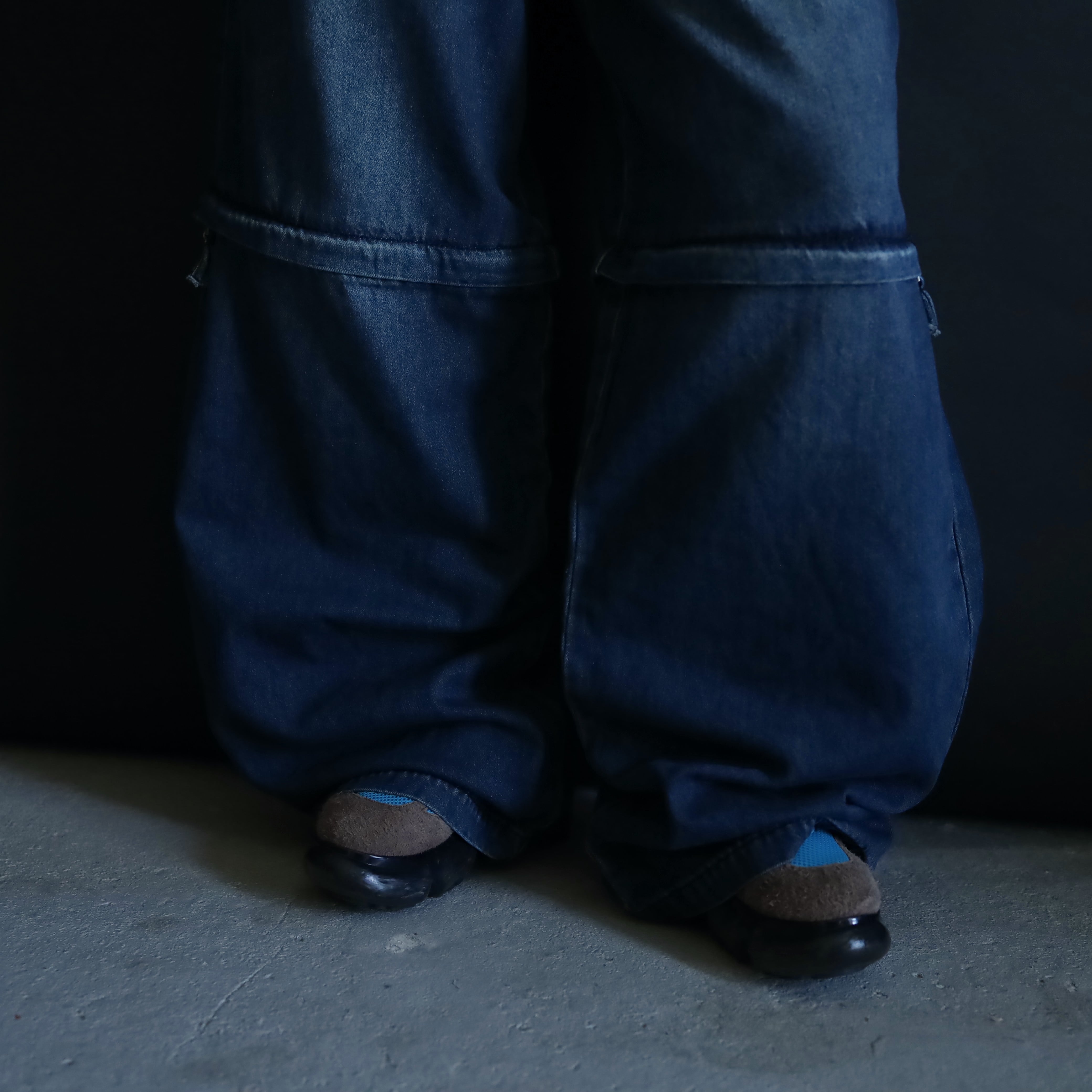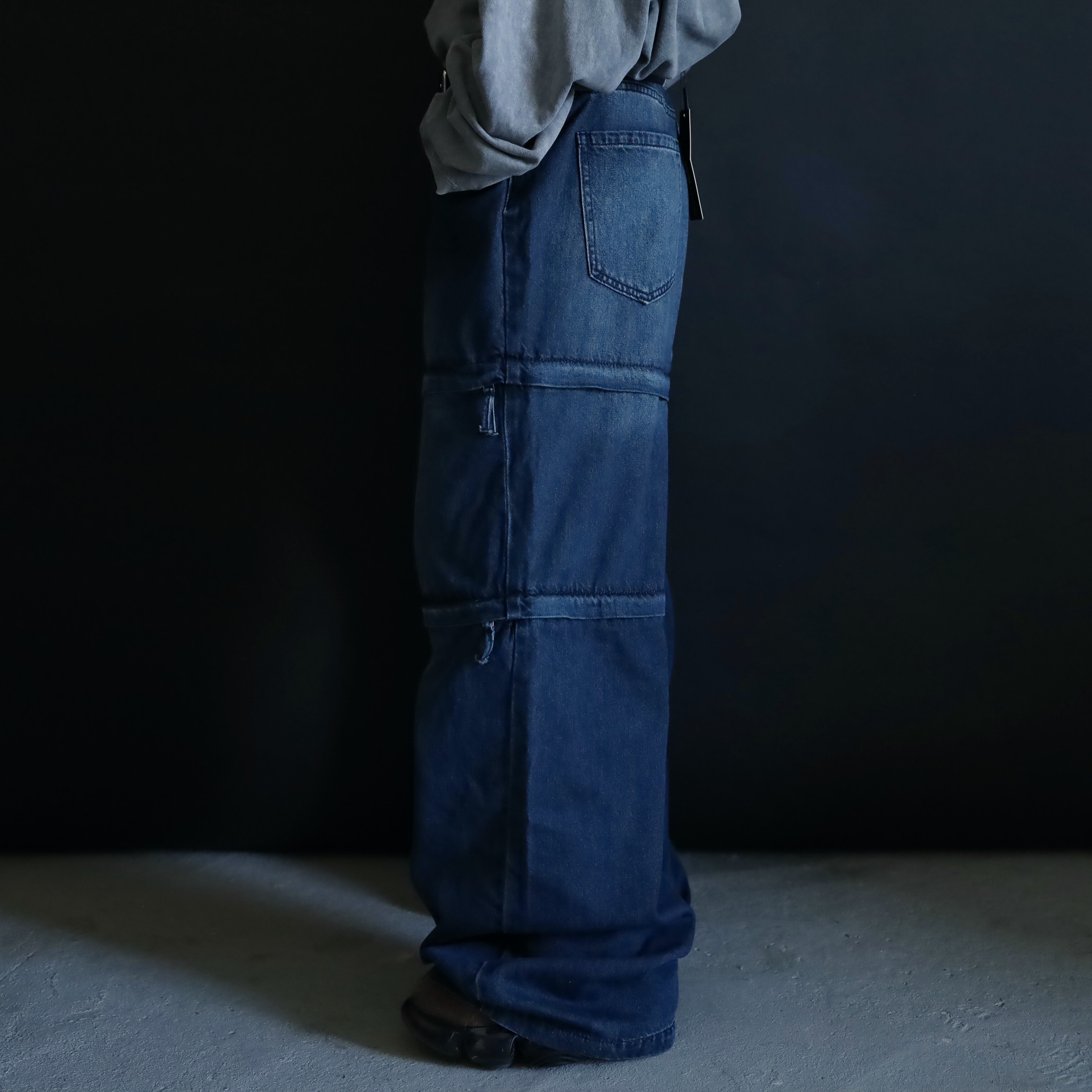 セパレートタイプのワイドデニムパンツ.