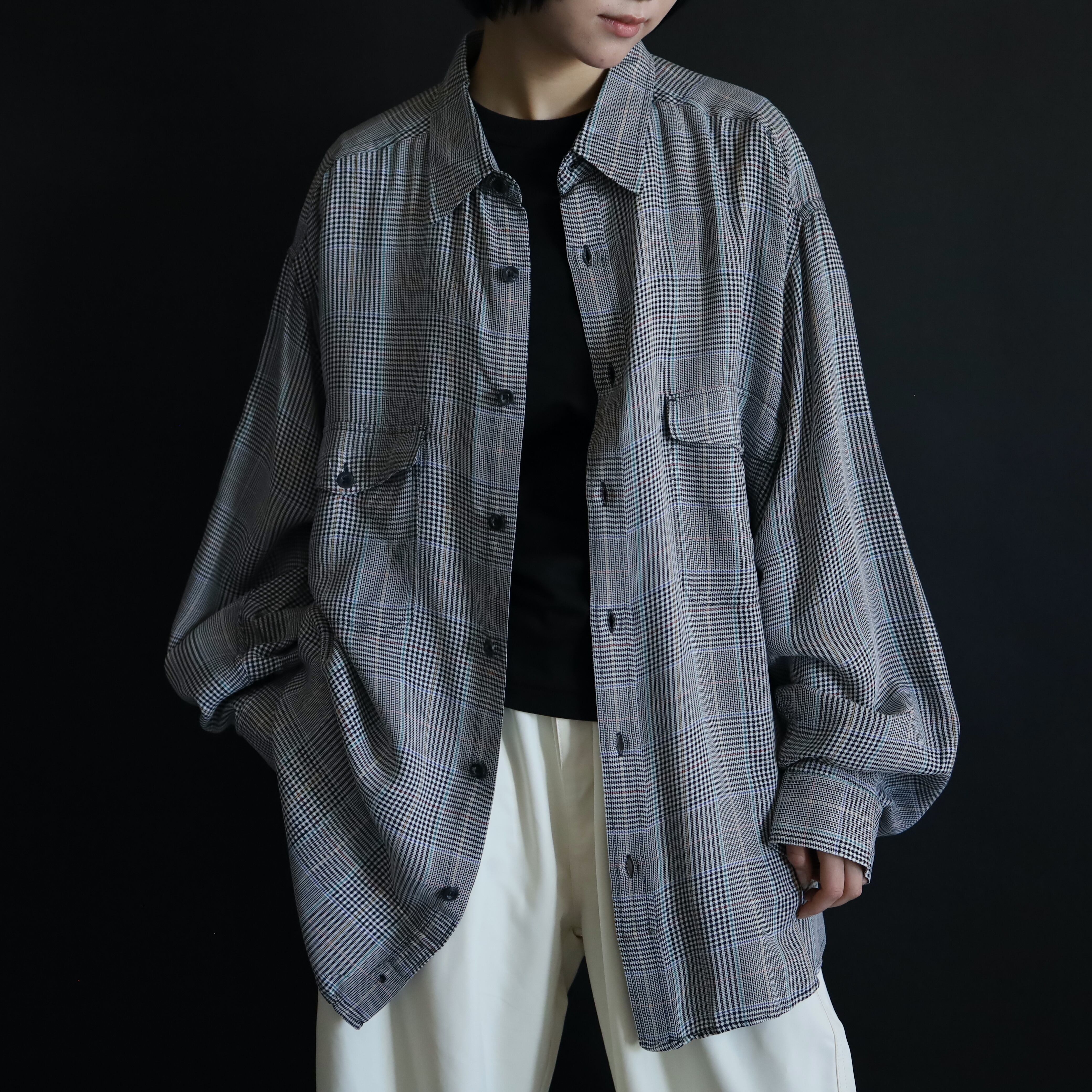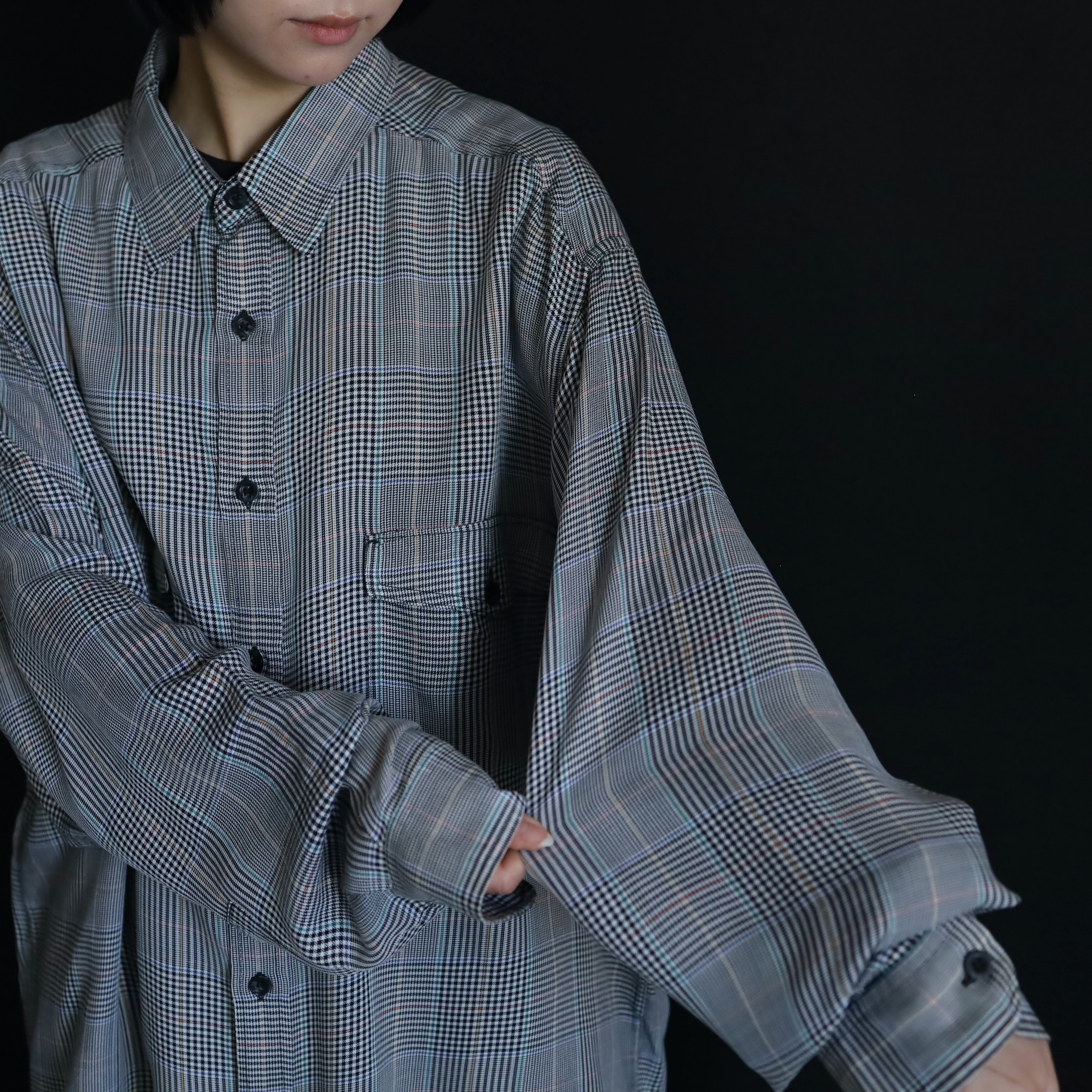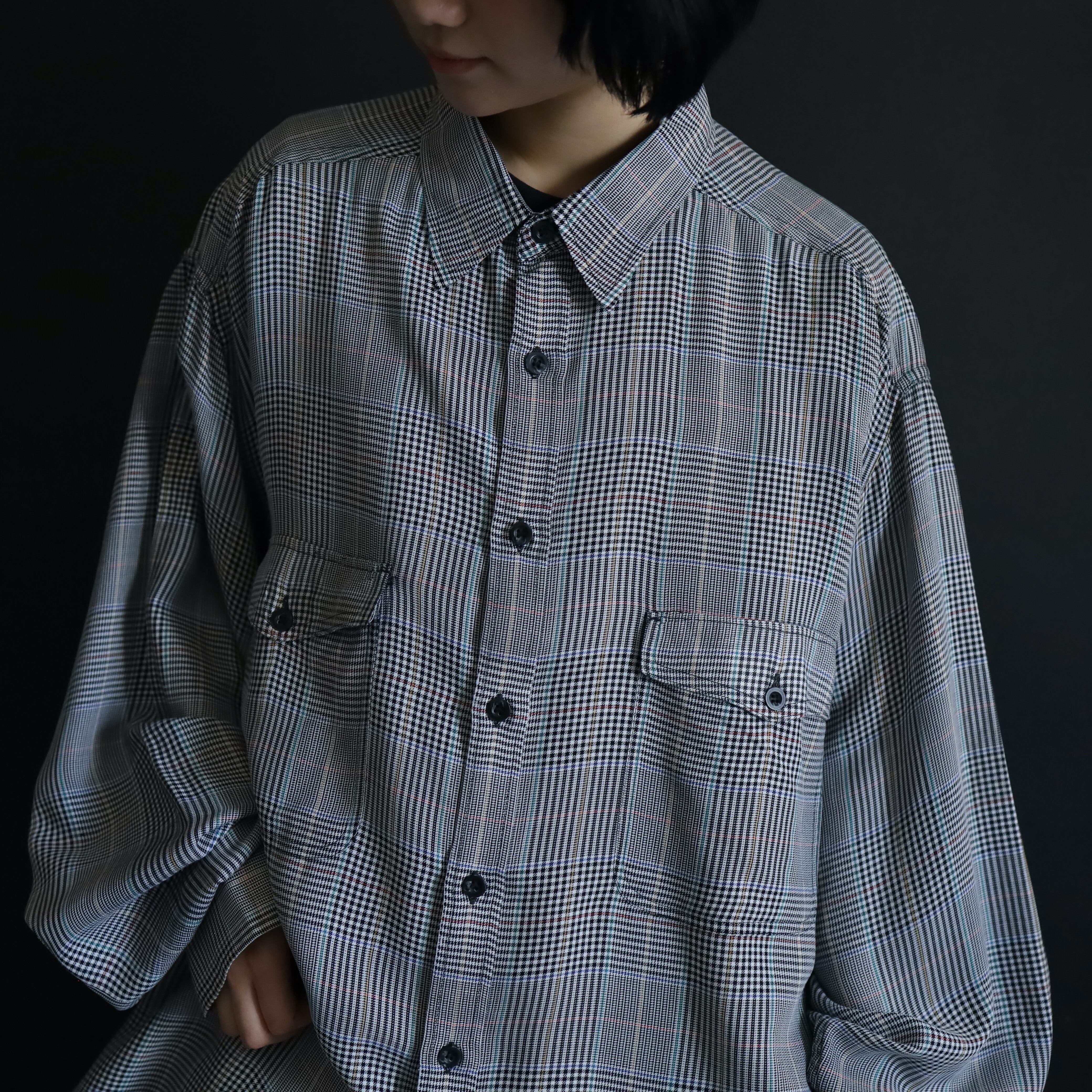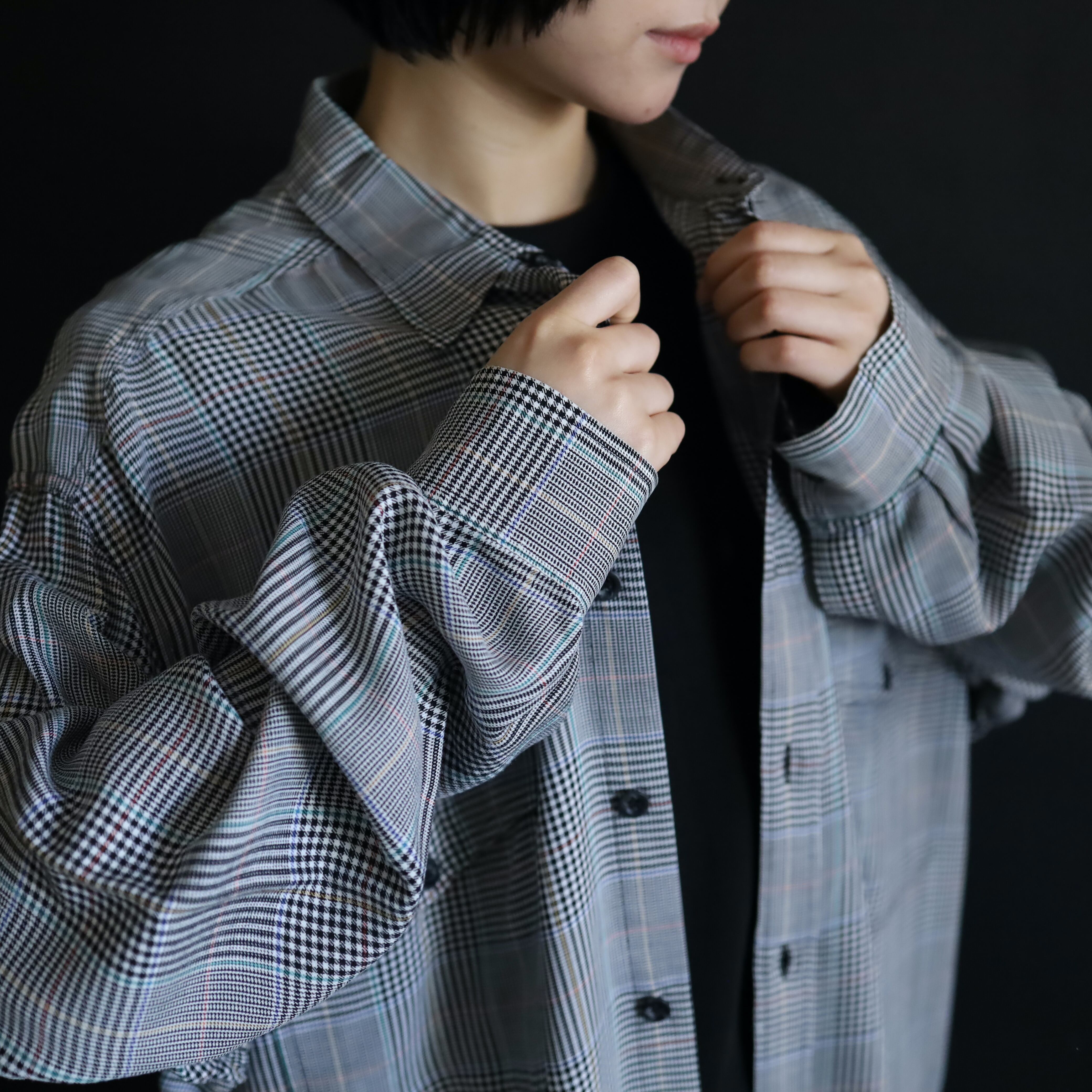 ブラックとホワイトを織り交ぜることで,グレーっぽく見えるボディをベースに,全体に細かくデザインされたグレンチェック.