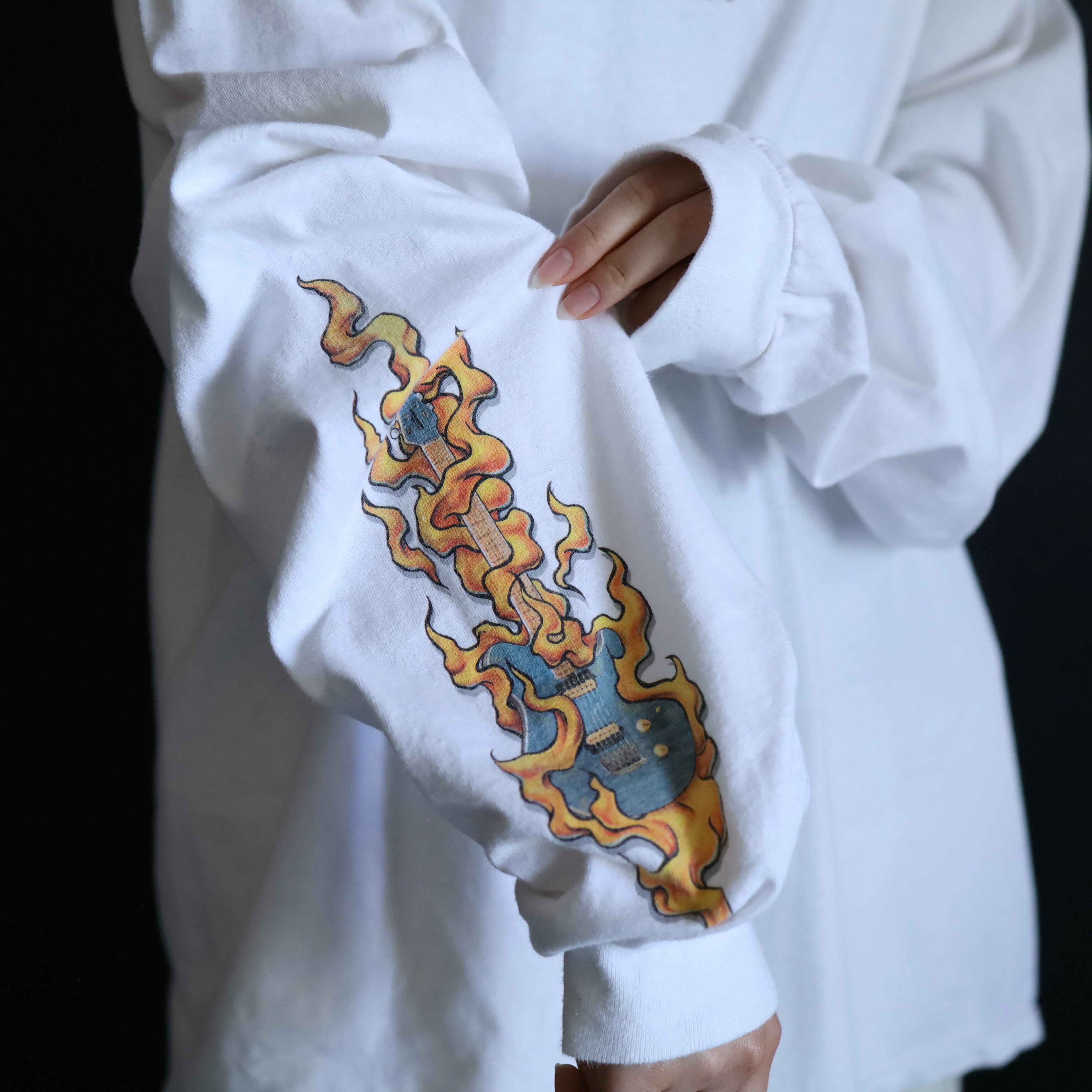 ファイアパターン系のいいアクセントのプリントで,プリントサイズは小さいものの存在感がありますね.