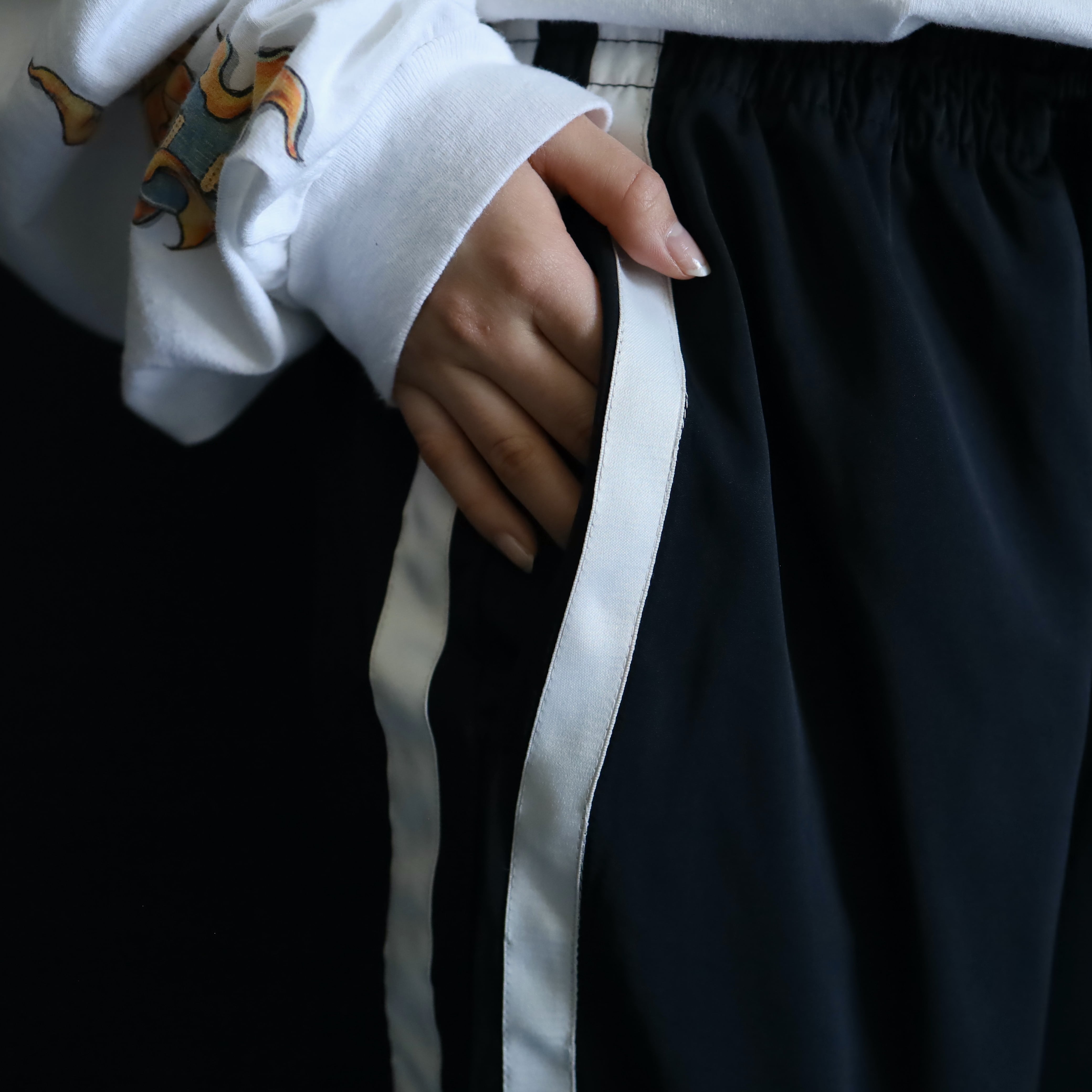 中途半端な太さの多いトラックパンツ.