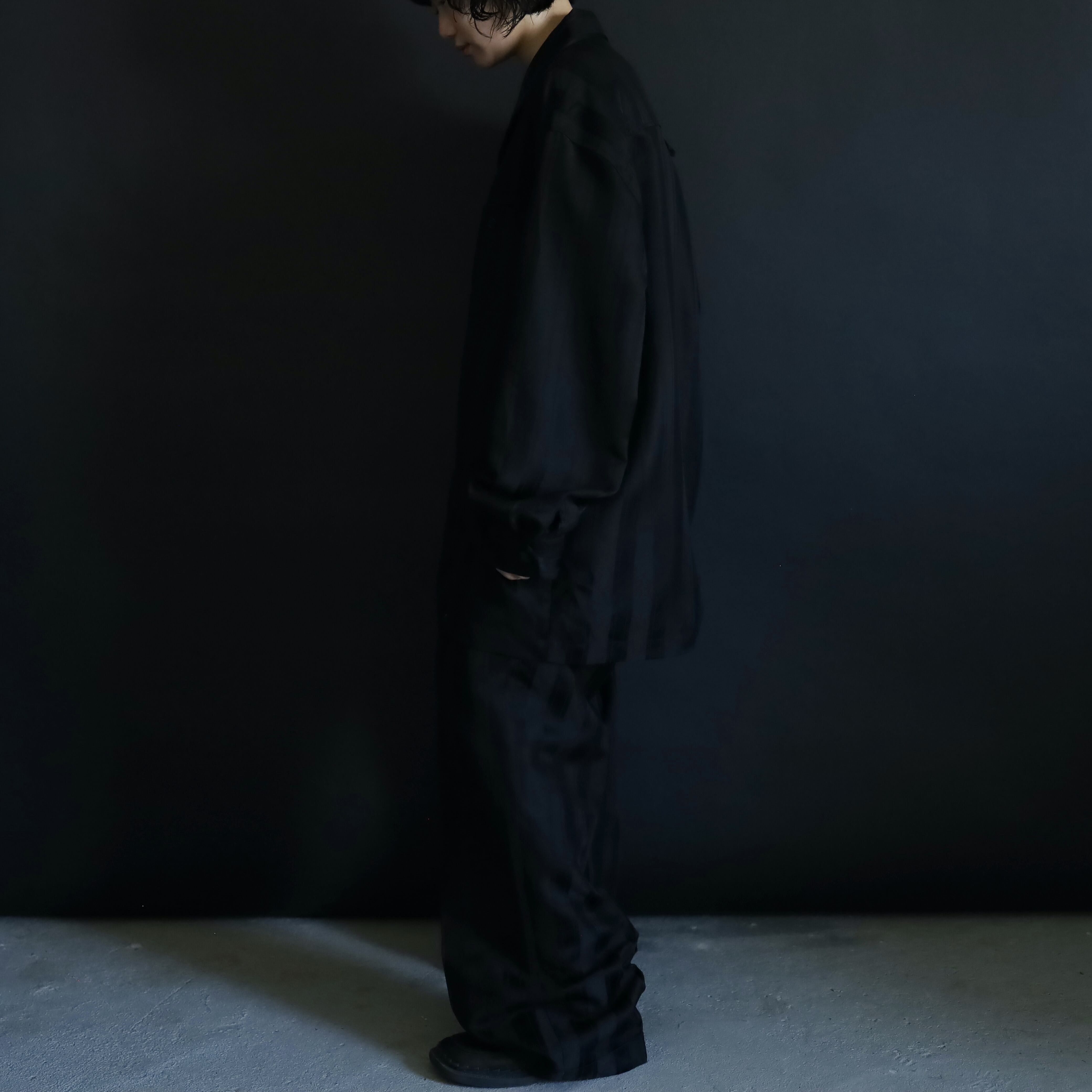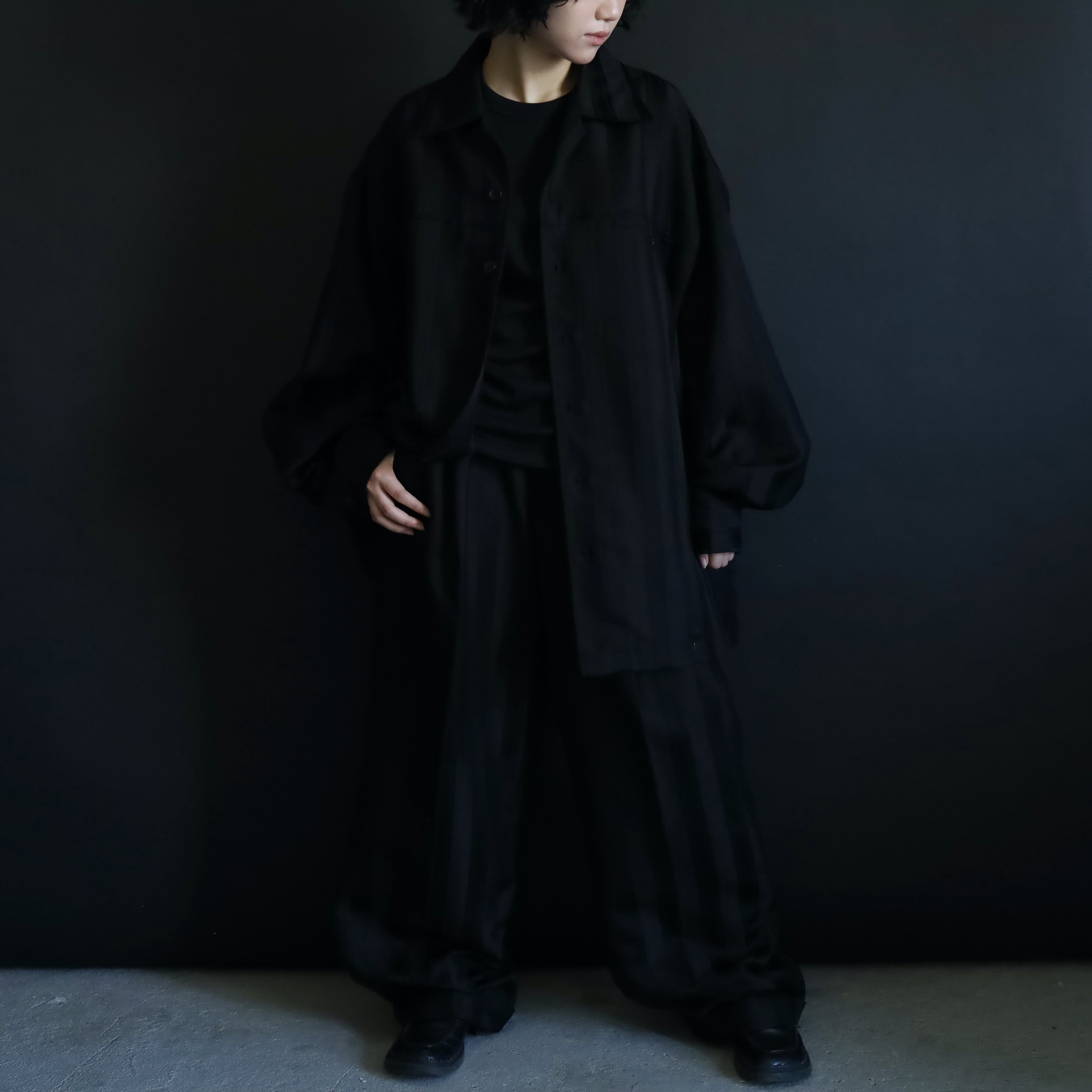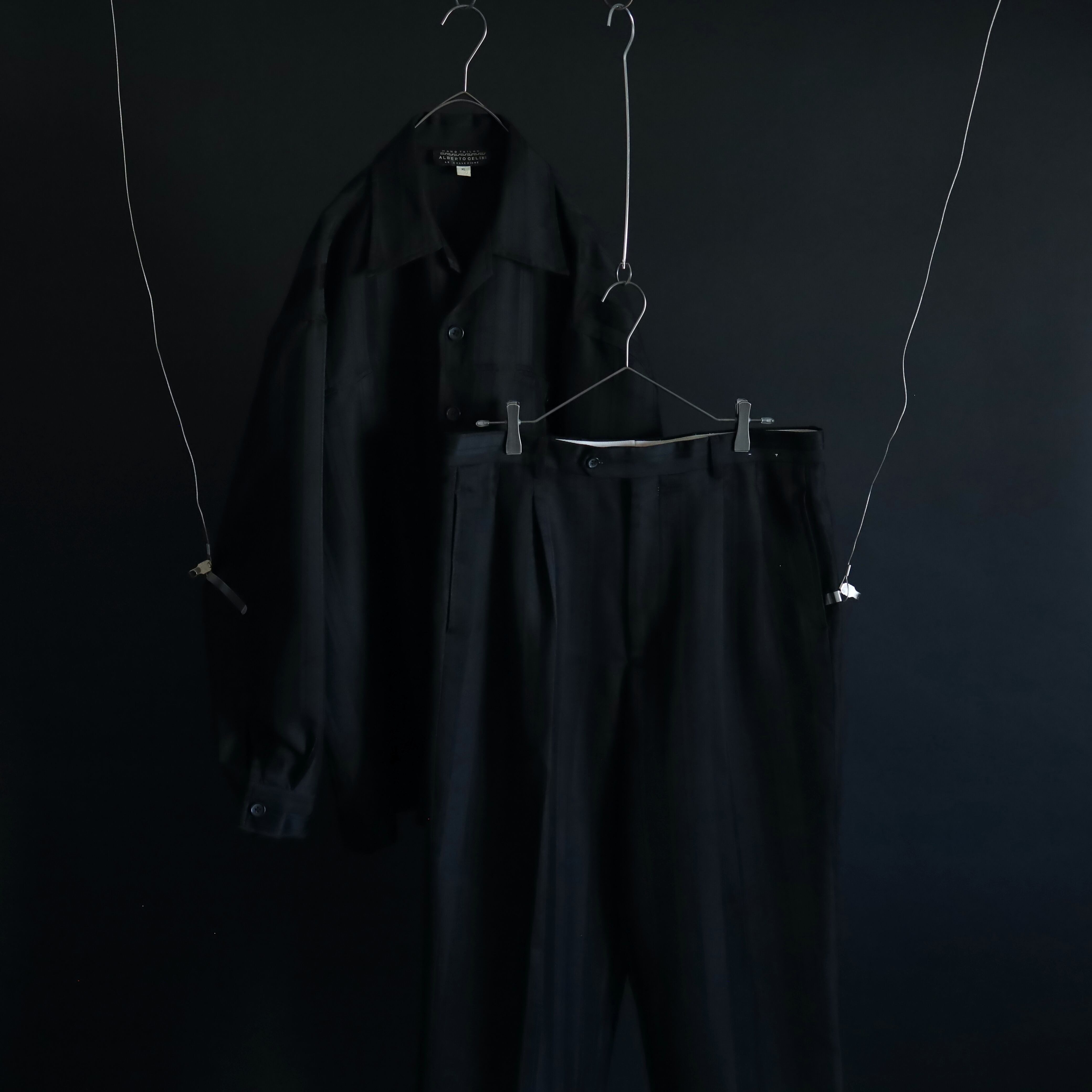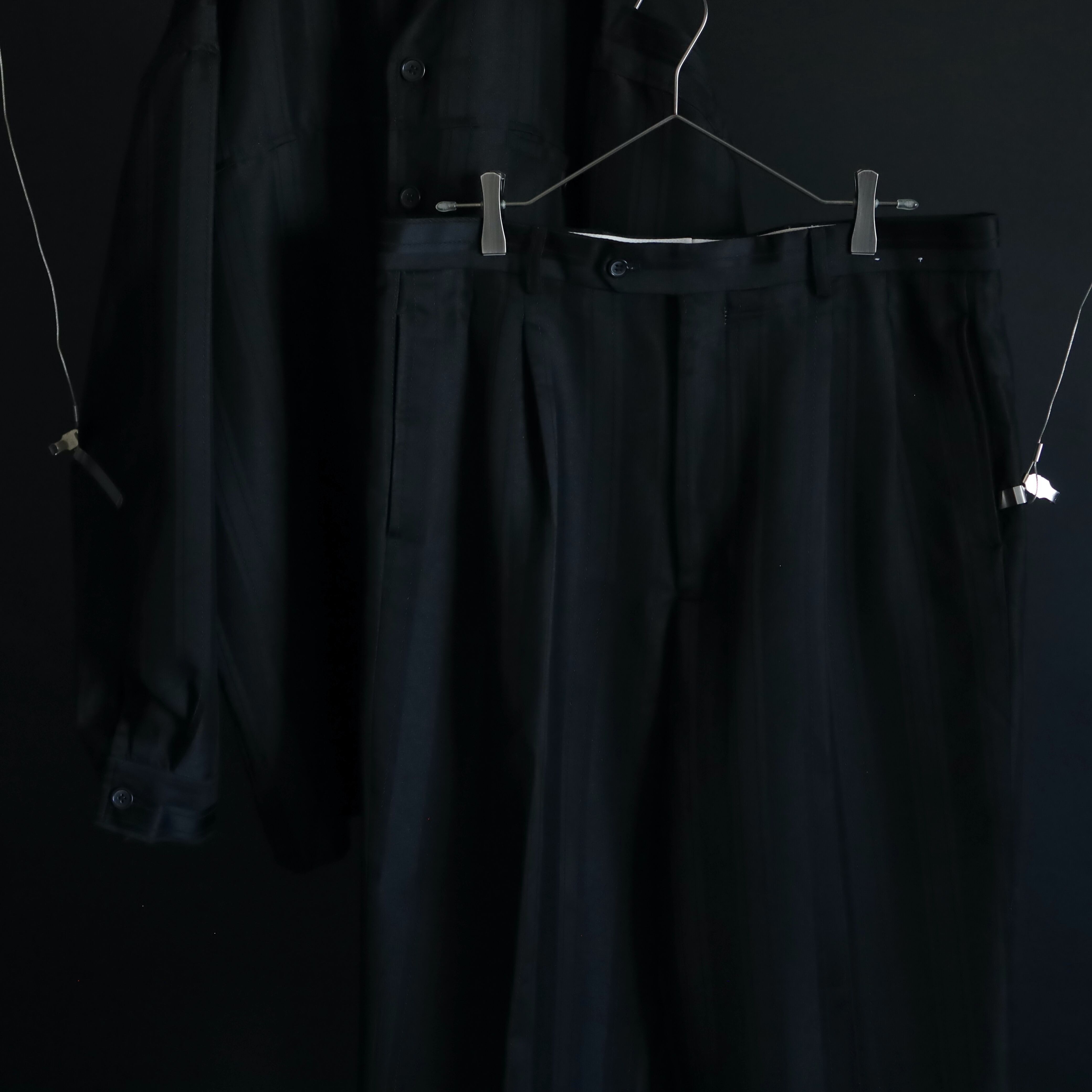 シャツ,スラックスそれぞれ単体で着る際にも,ブラックベースゆえ使いやすいかと.