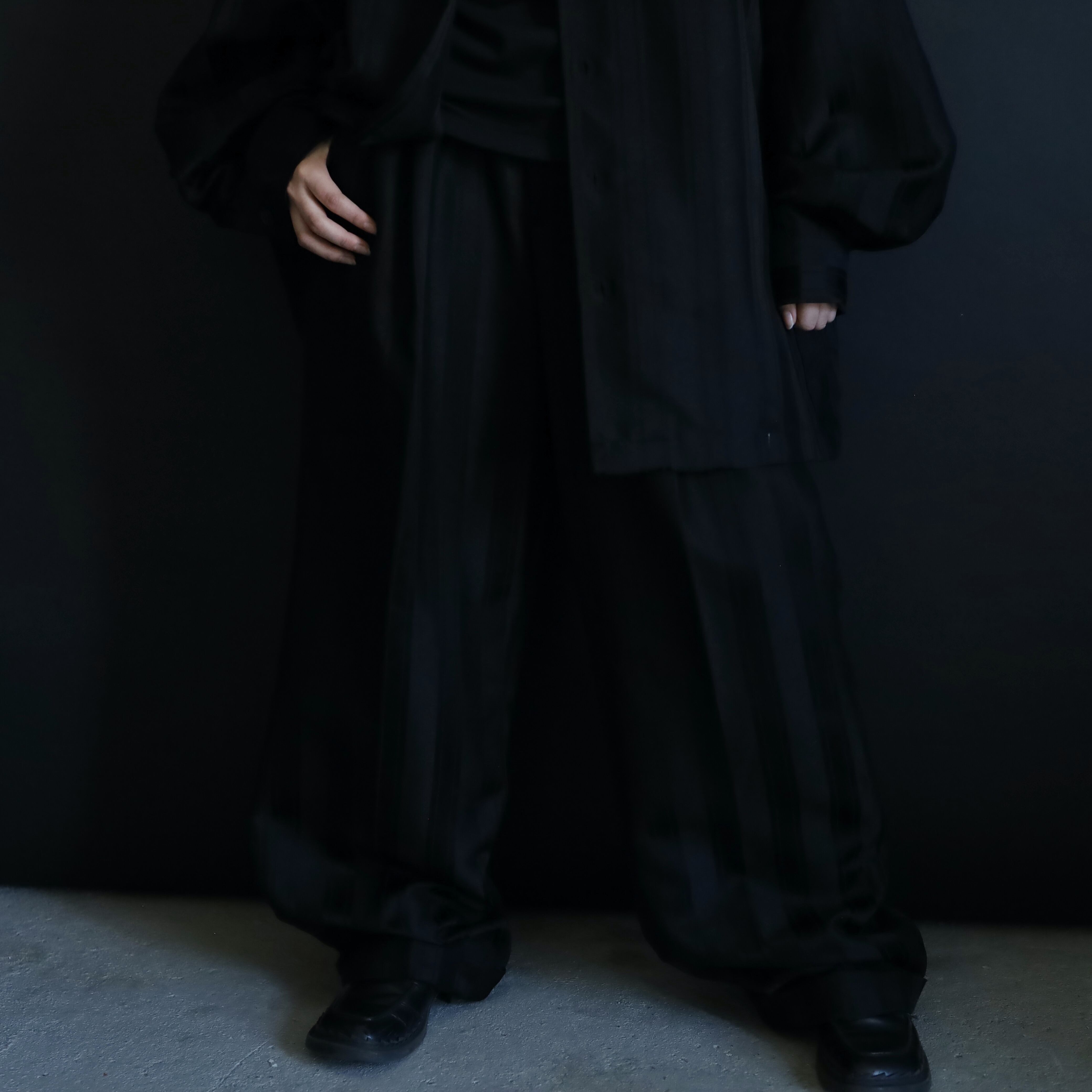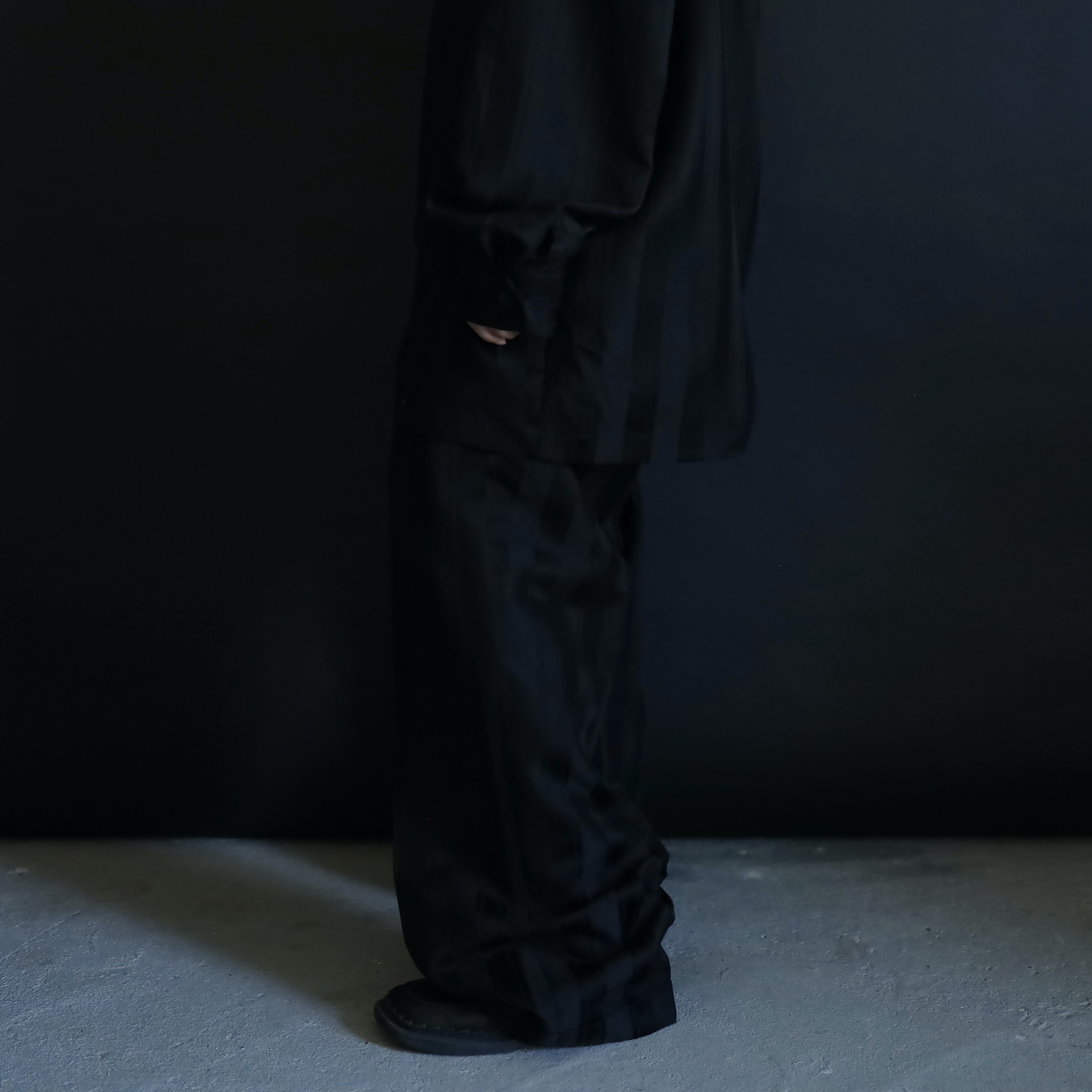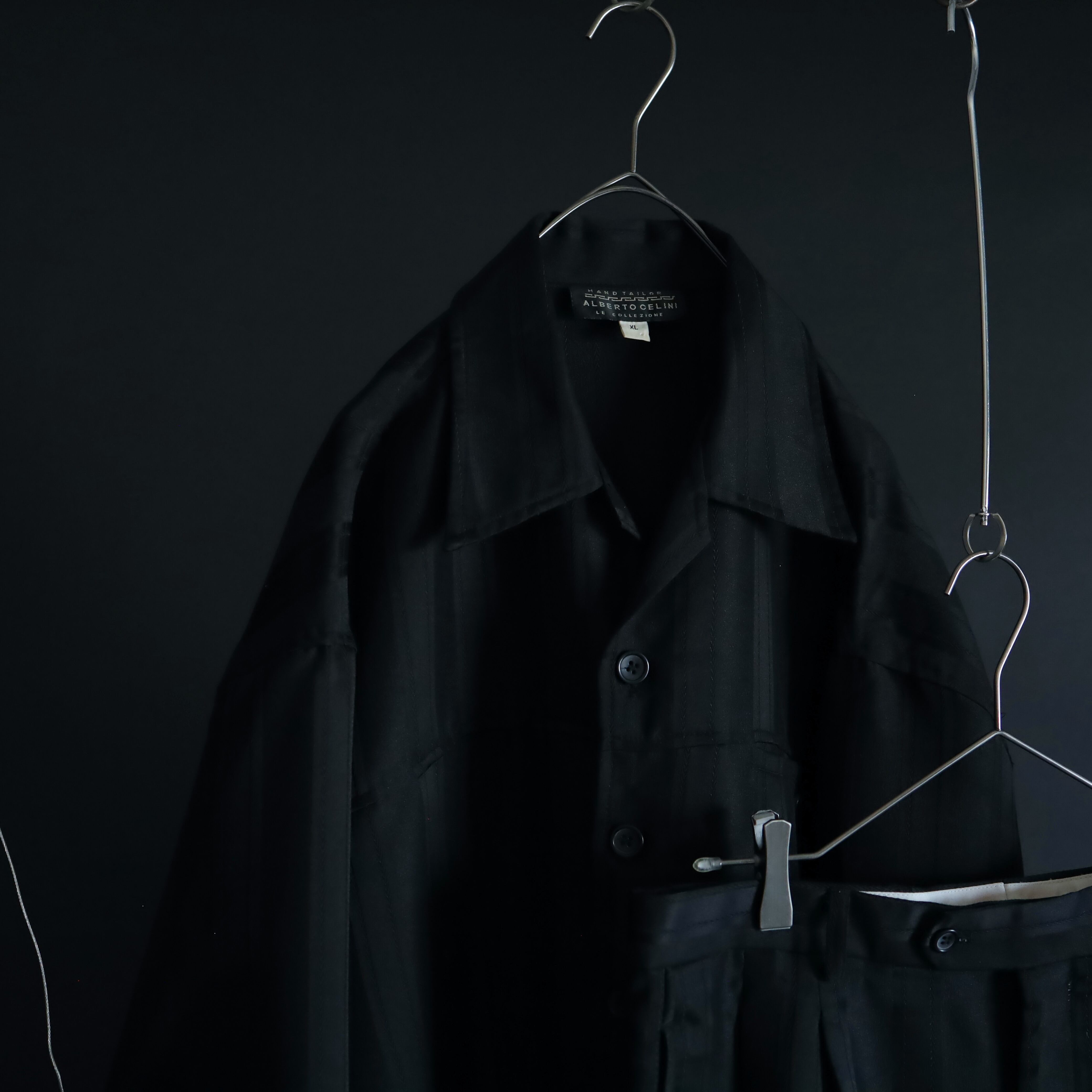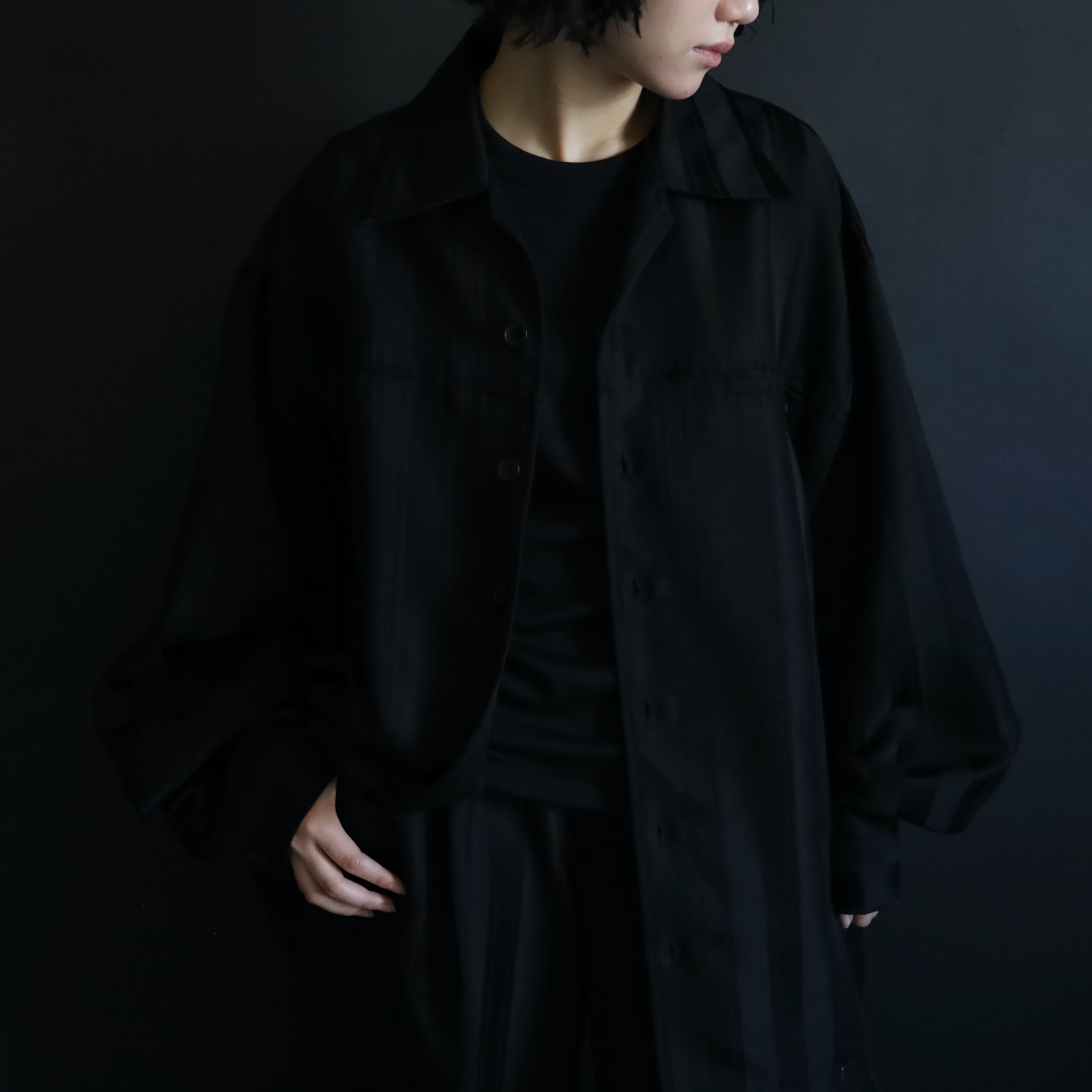 シャツ,スラックスそれぞれ単体で着る際にも,ブラックベースゆえ使いやすいかと.