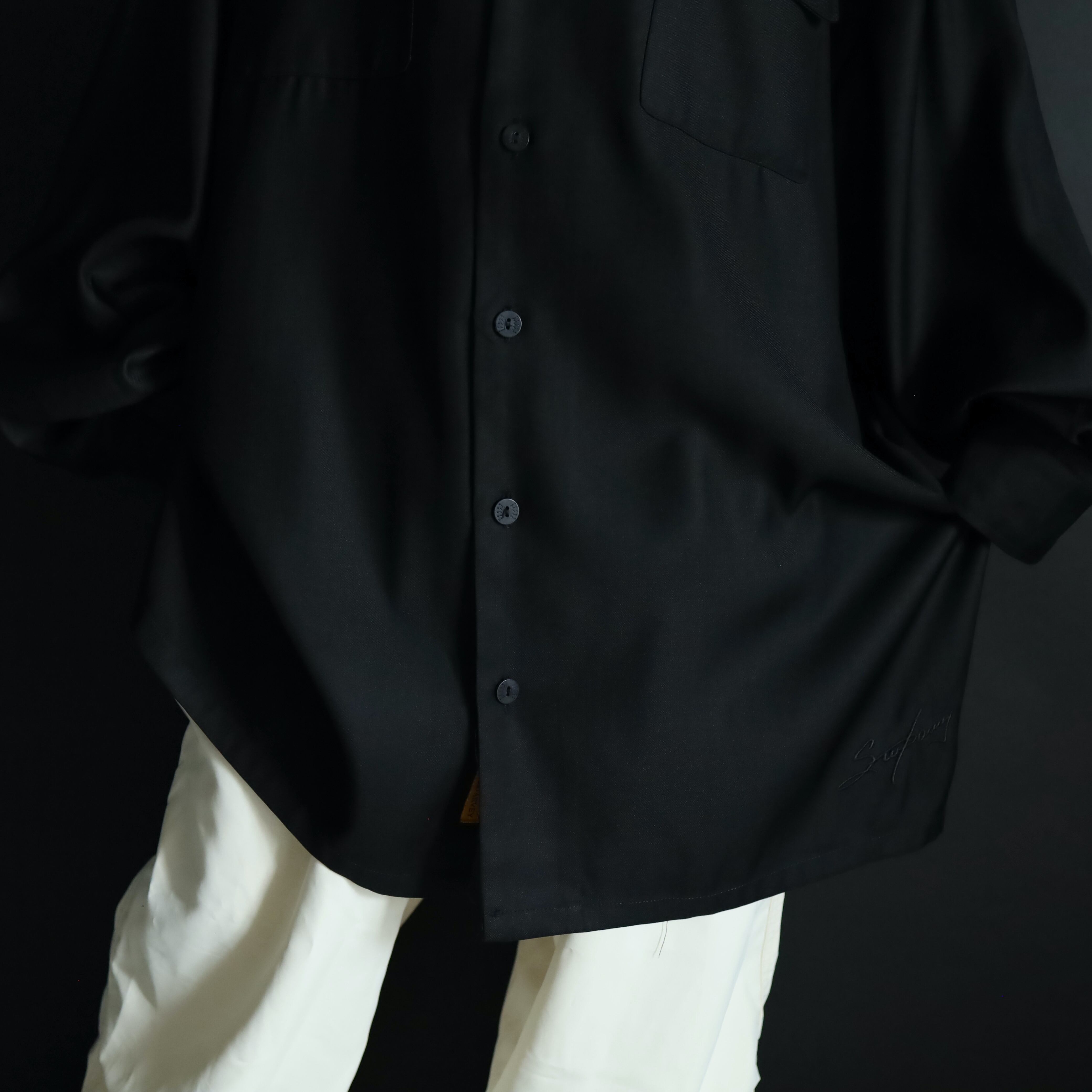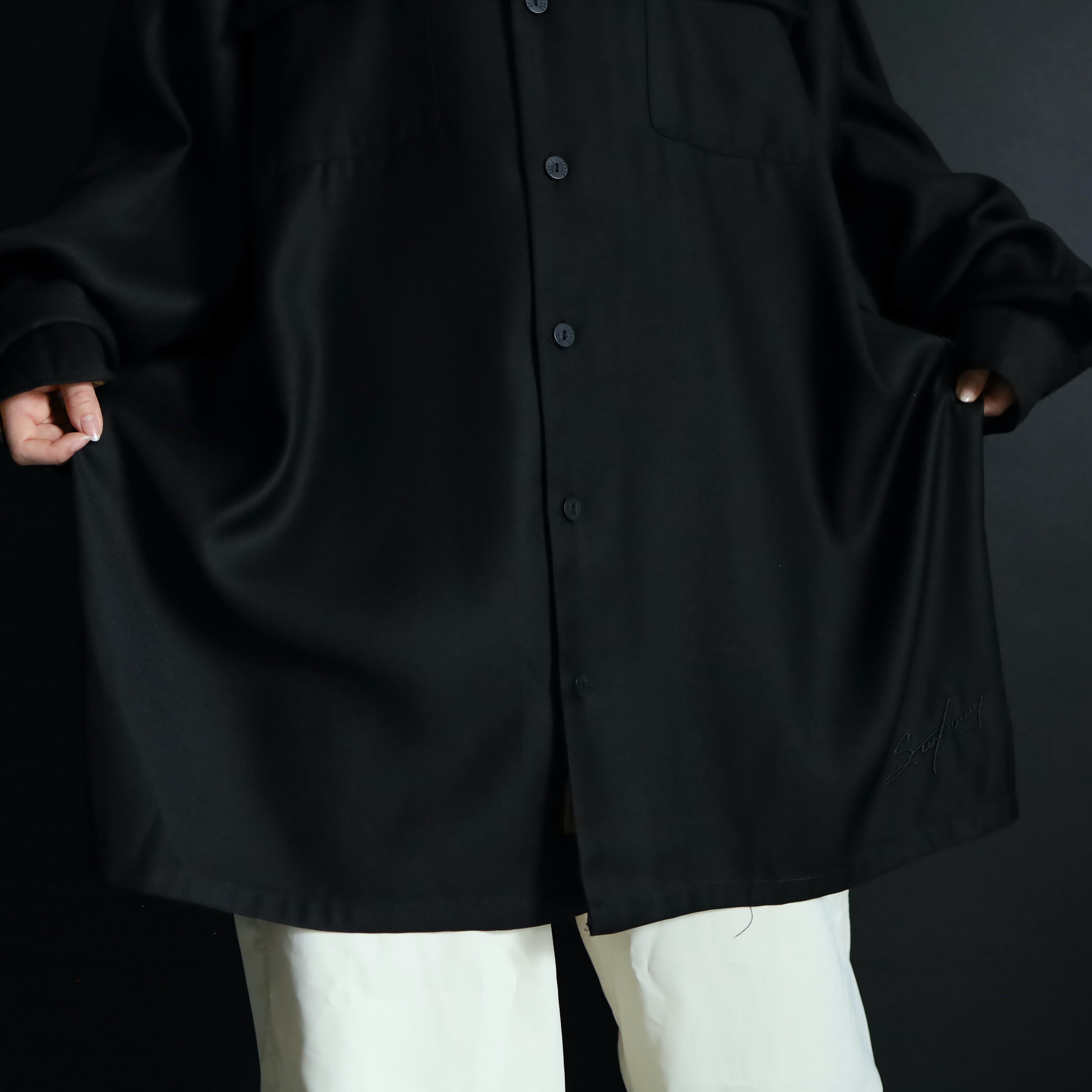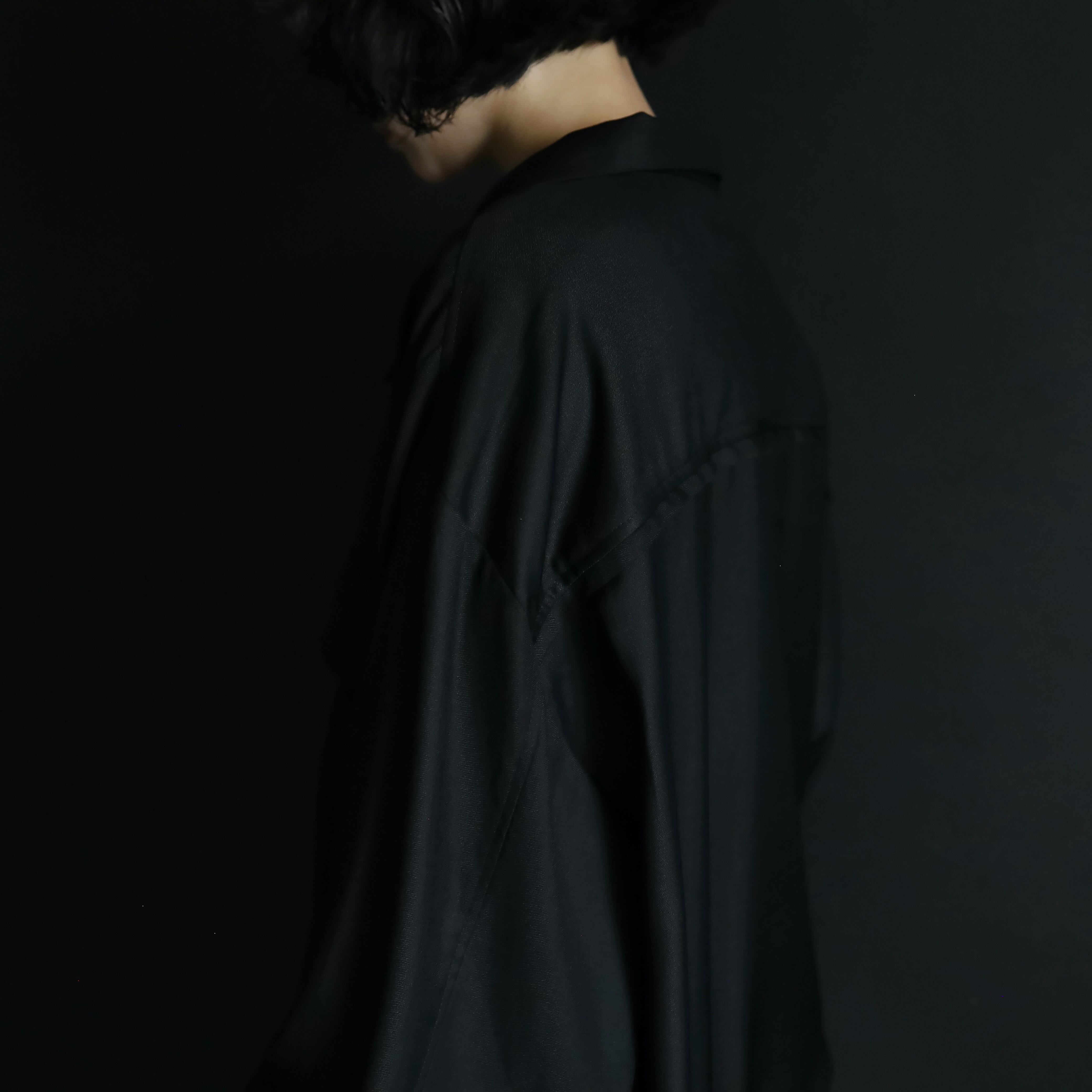 肩を落として着れるゆるいサイズ感と,レーヨンベースによる滑らかな生地感が魅力的な一枚.