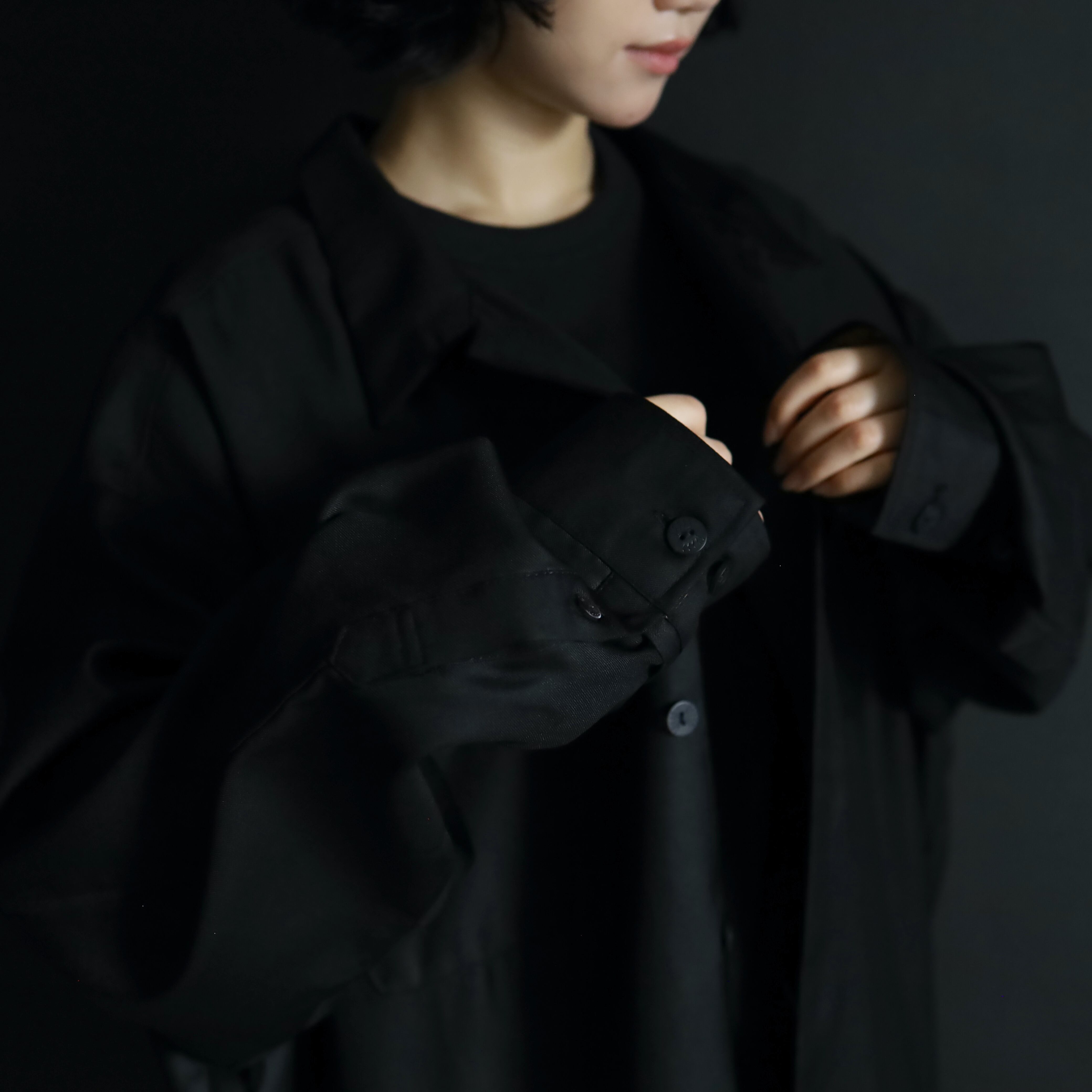 全体にルーズでゆとりのあるサイジングですが,体のラインに沿って生地の落ち感が出てくれるため,ゴツさのない柔らかなシルエットにまとまります.