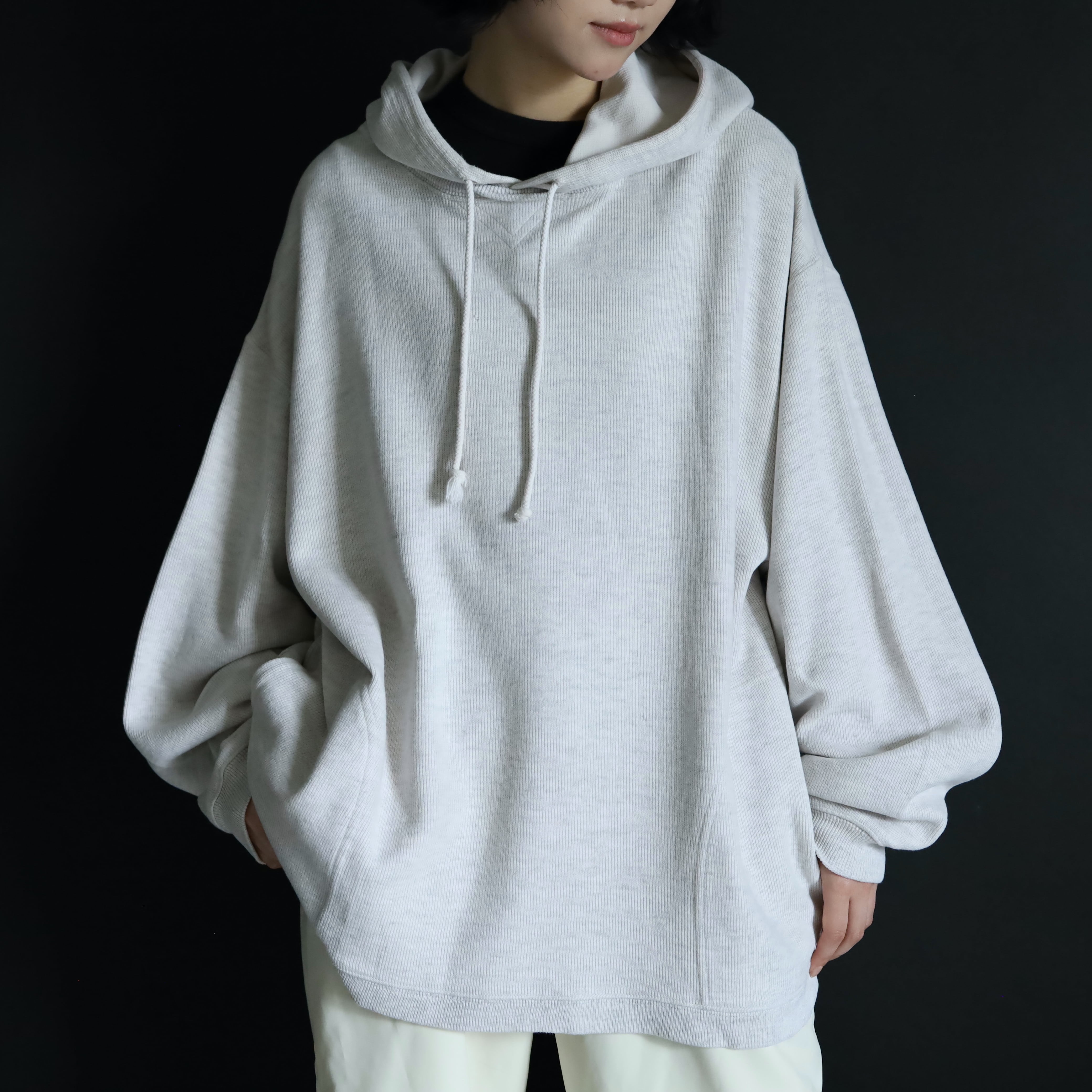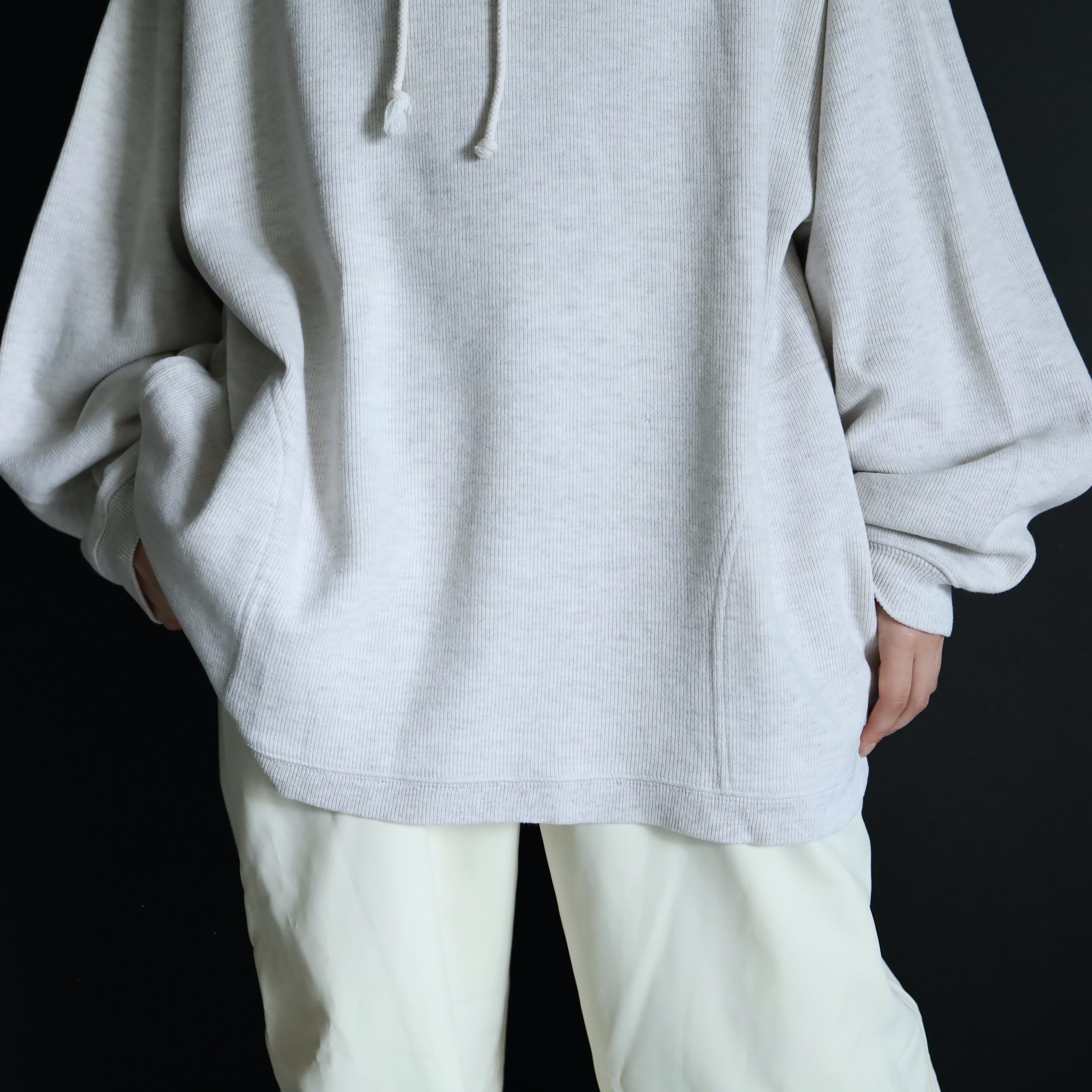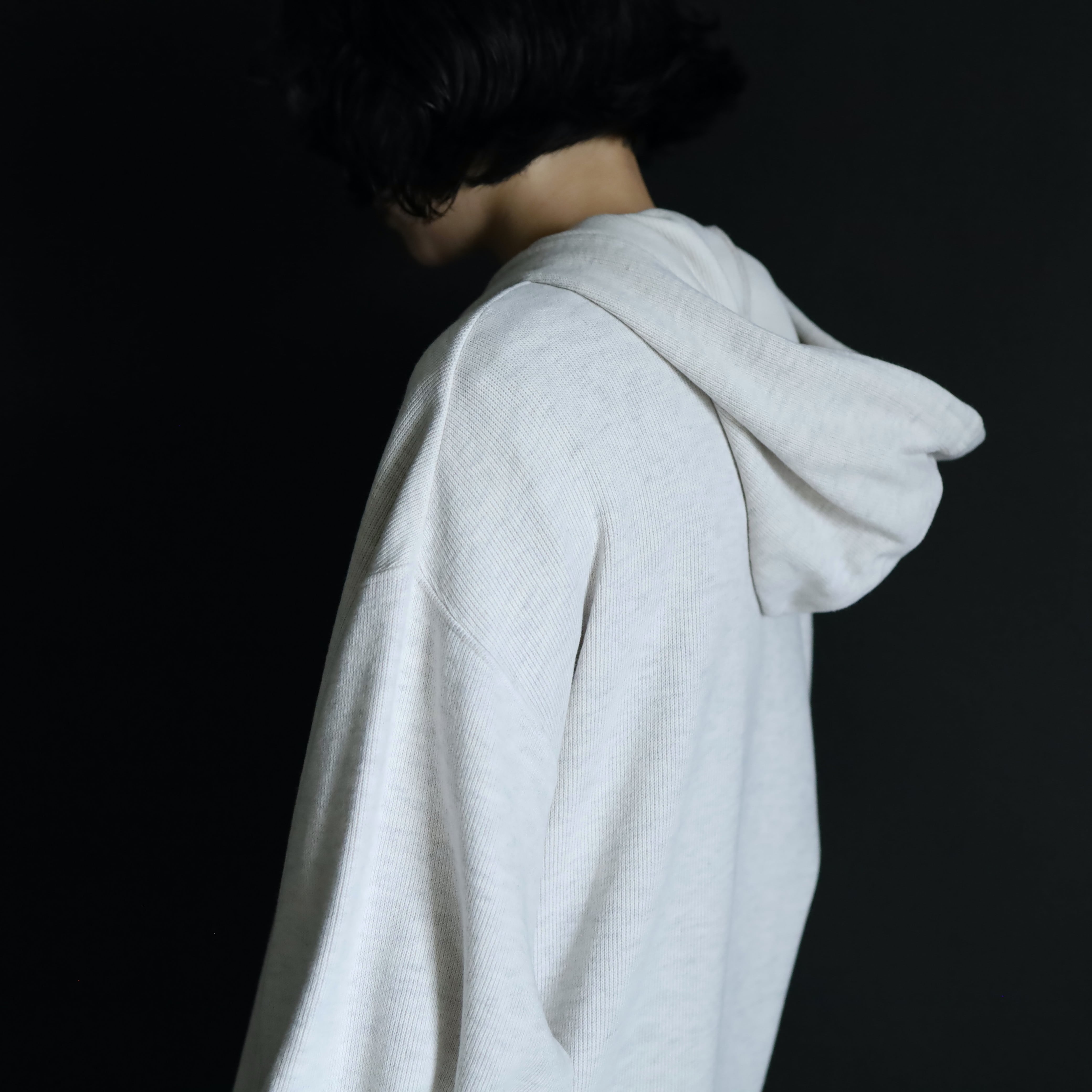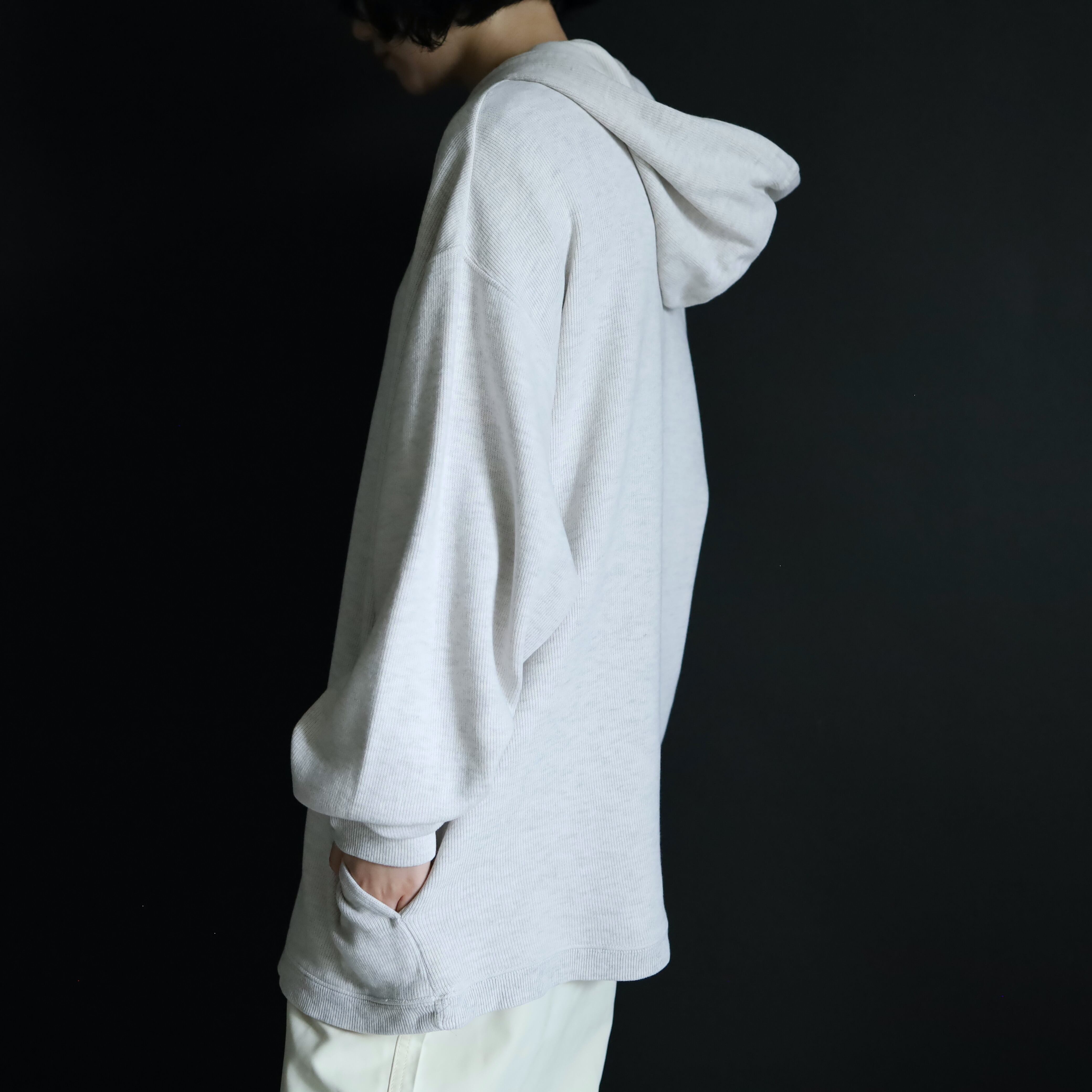 ニットソー生地によるプルオーバーパーカー.