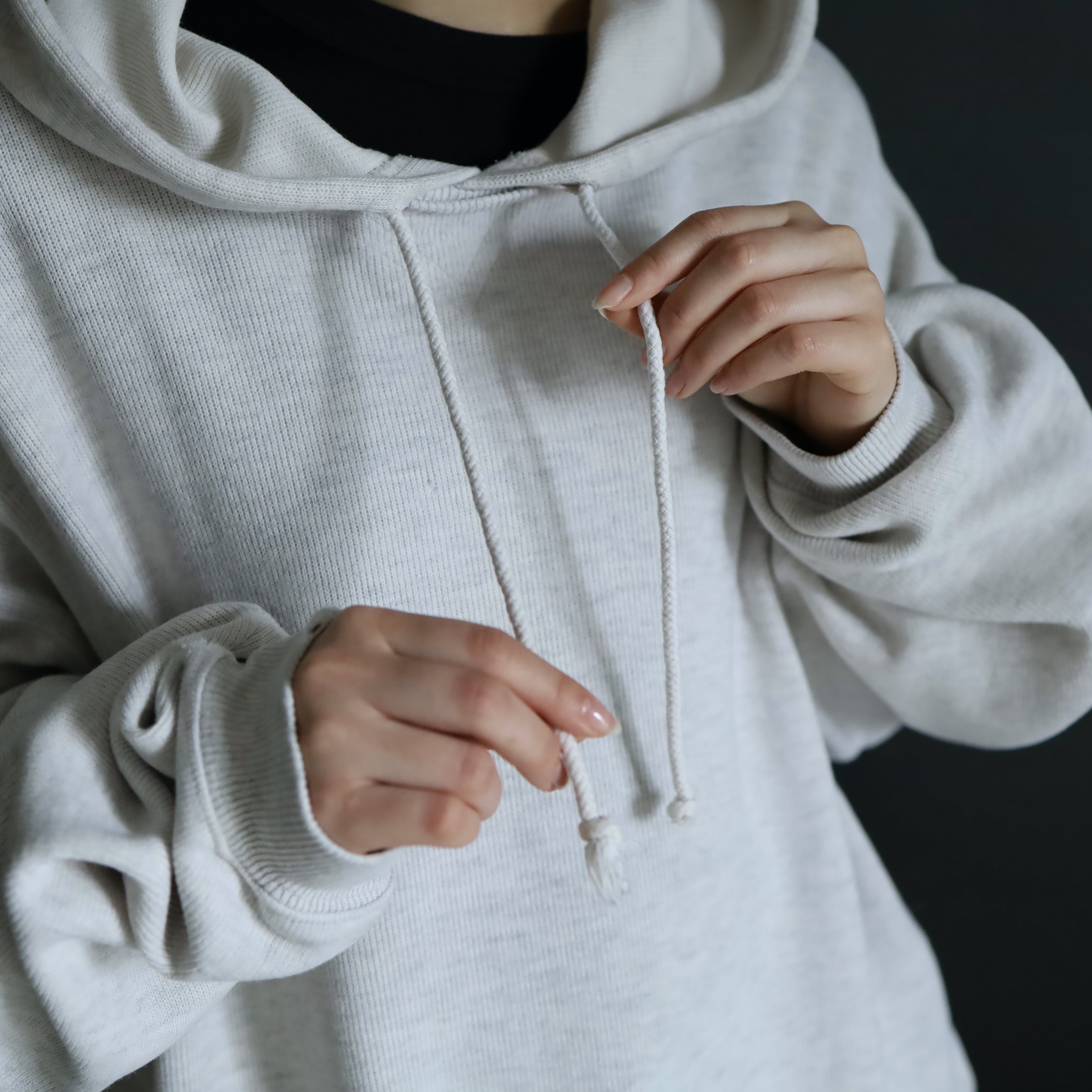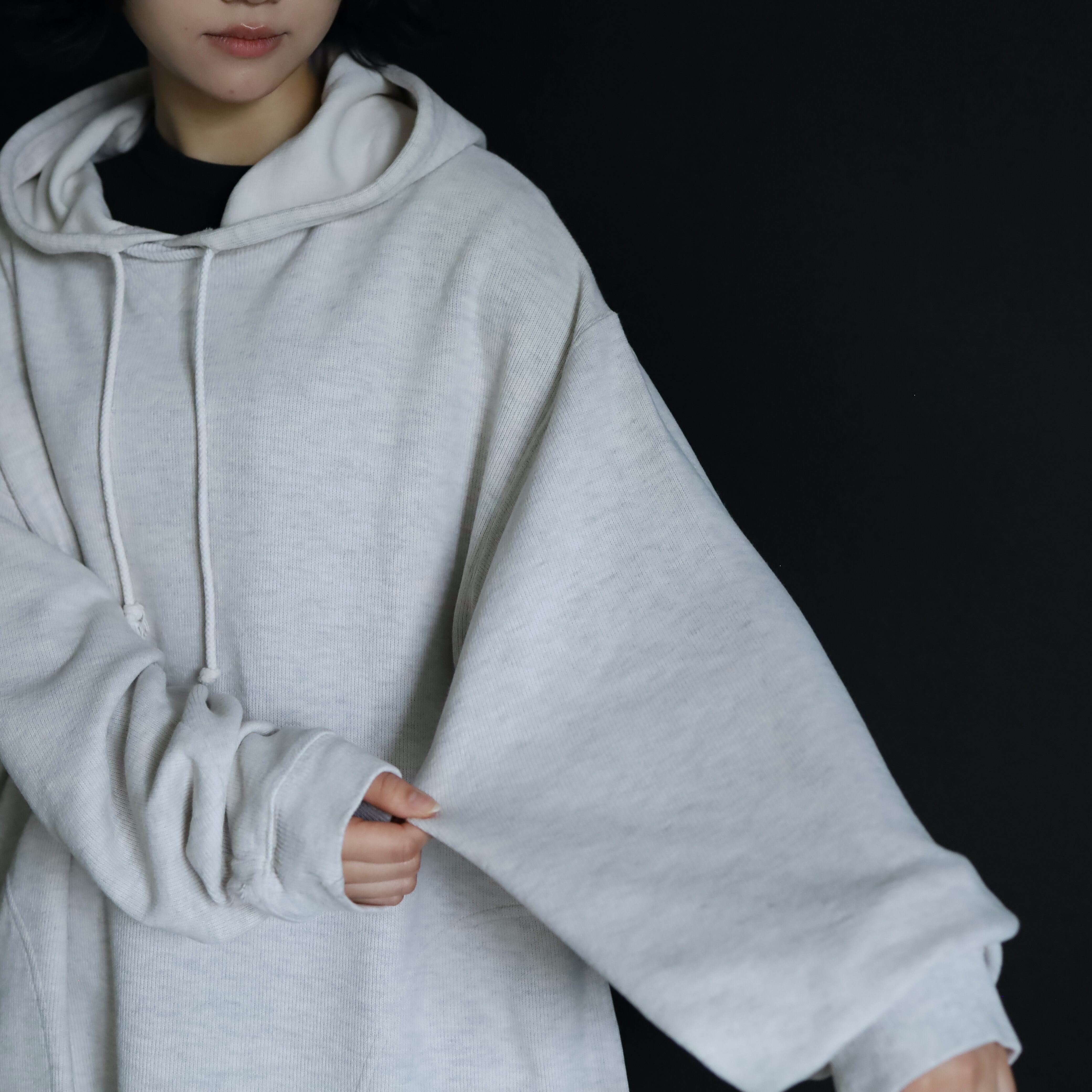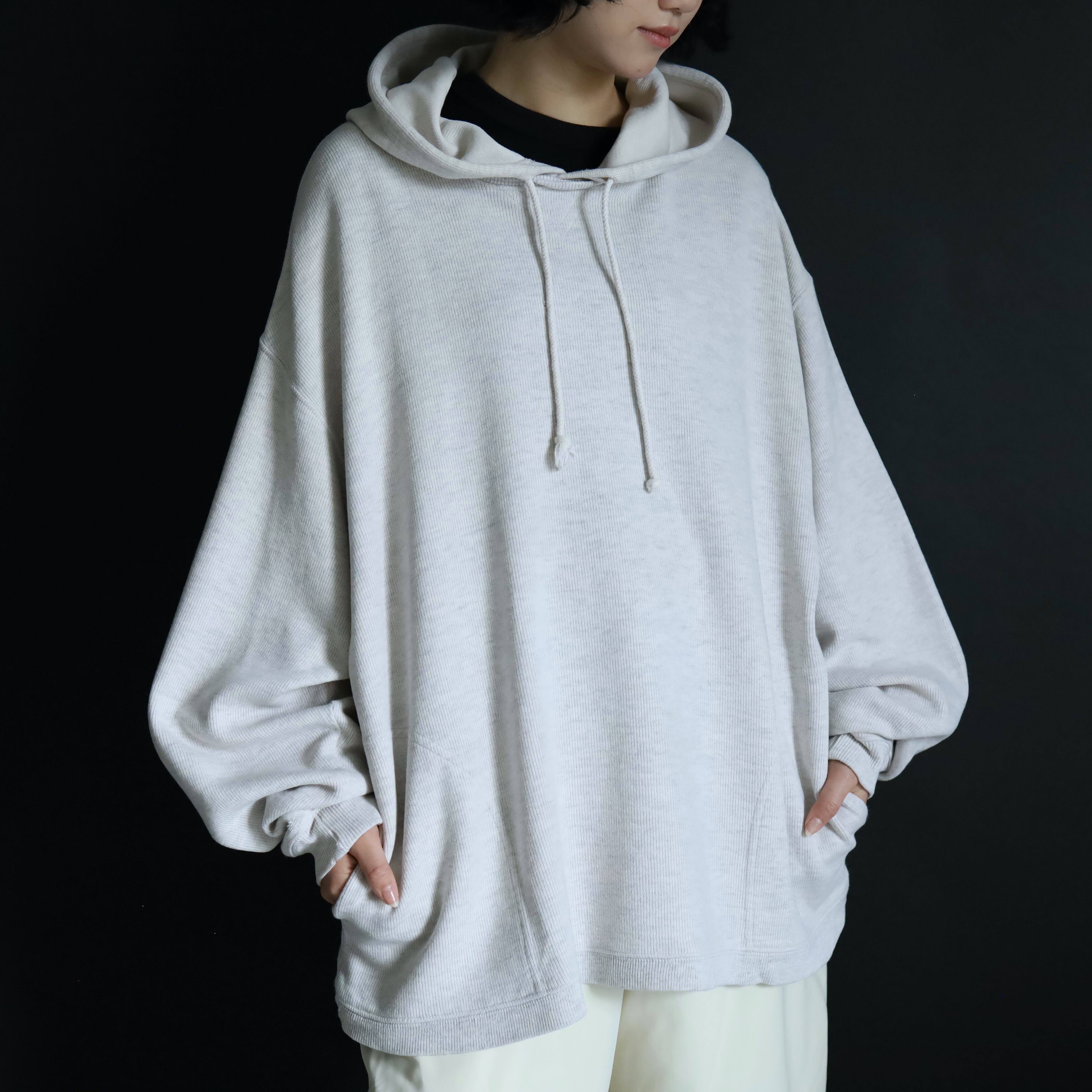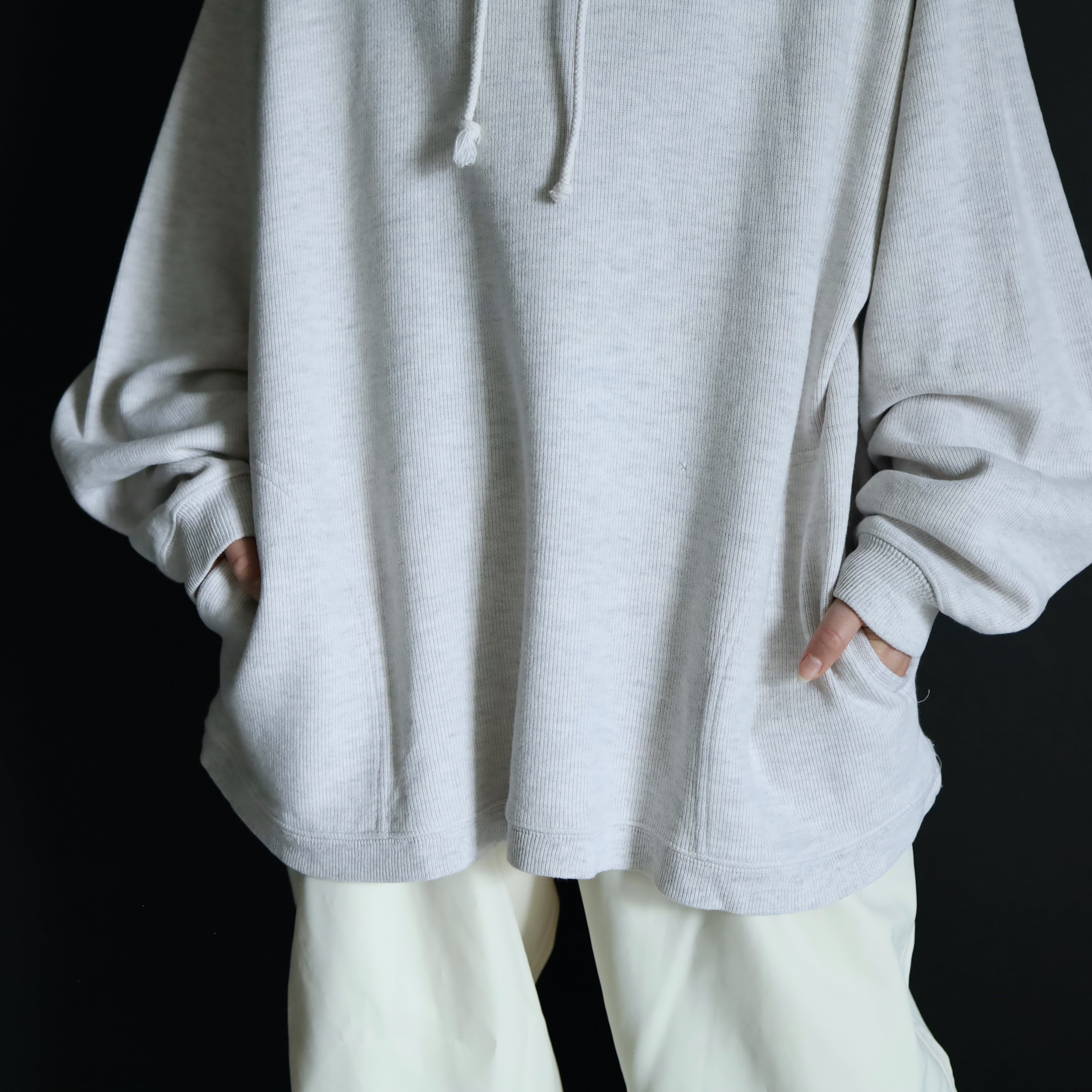 ニットソー生地によるプルオーバーパーカー.
