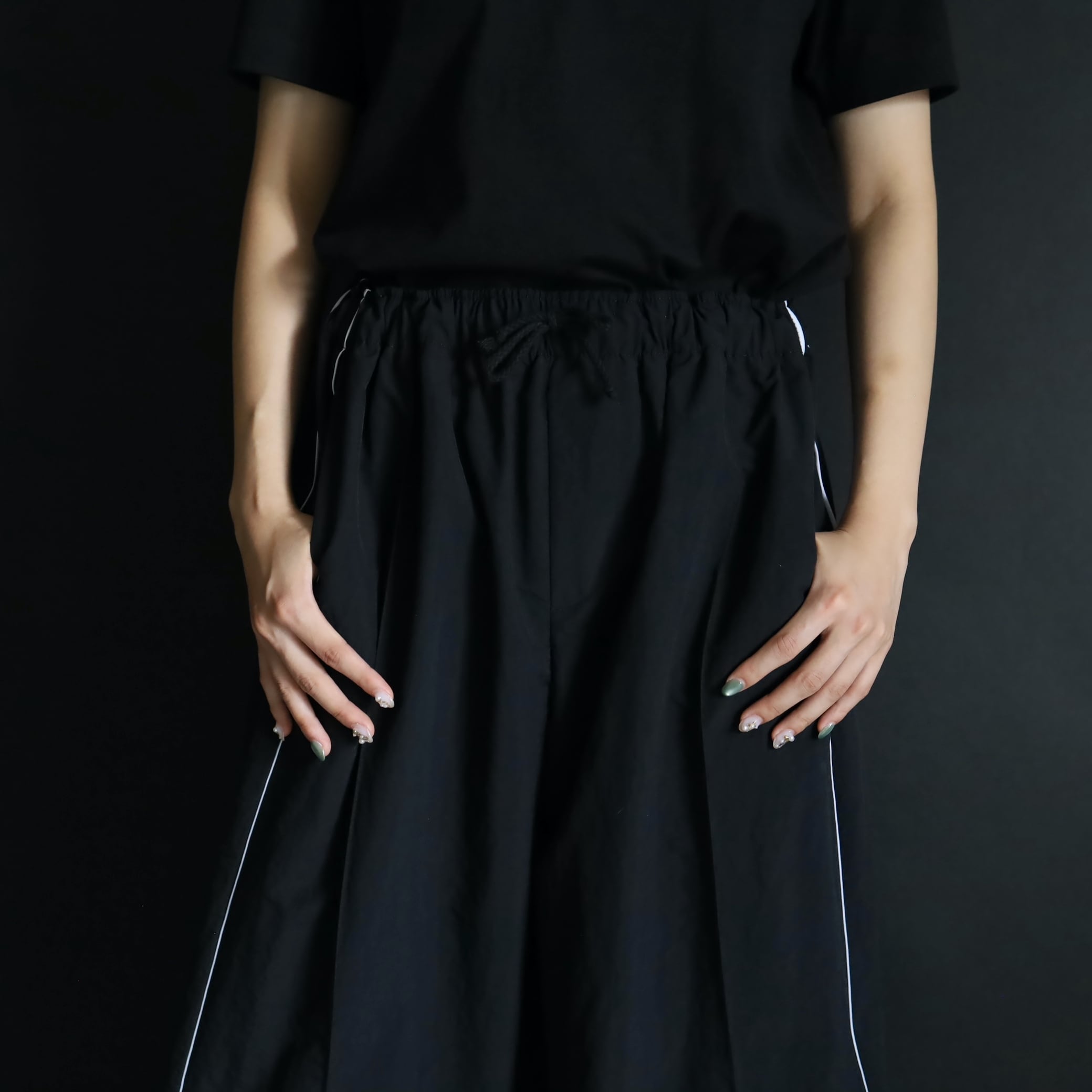 元々内部のゴムのみだったのですが,ドローコードをカスタムしましたので,細身の方も問題なく絞って着用いただけます.