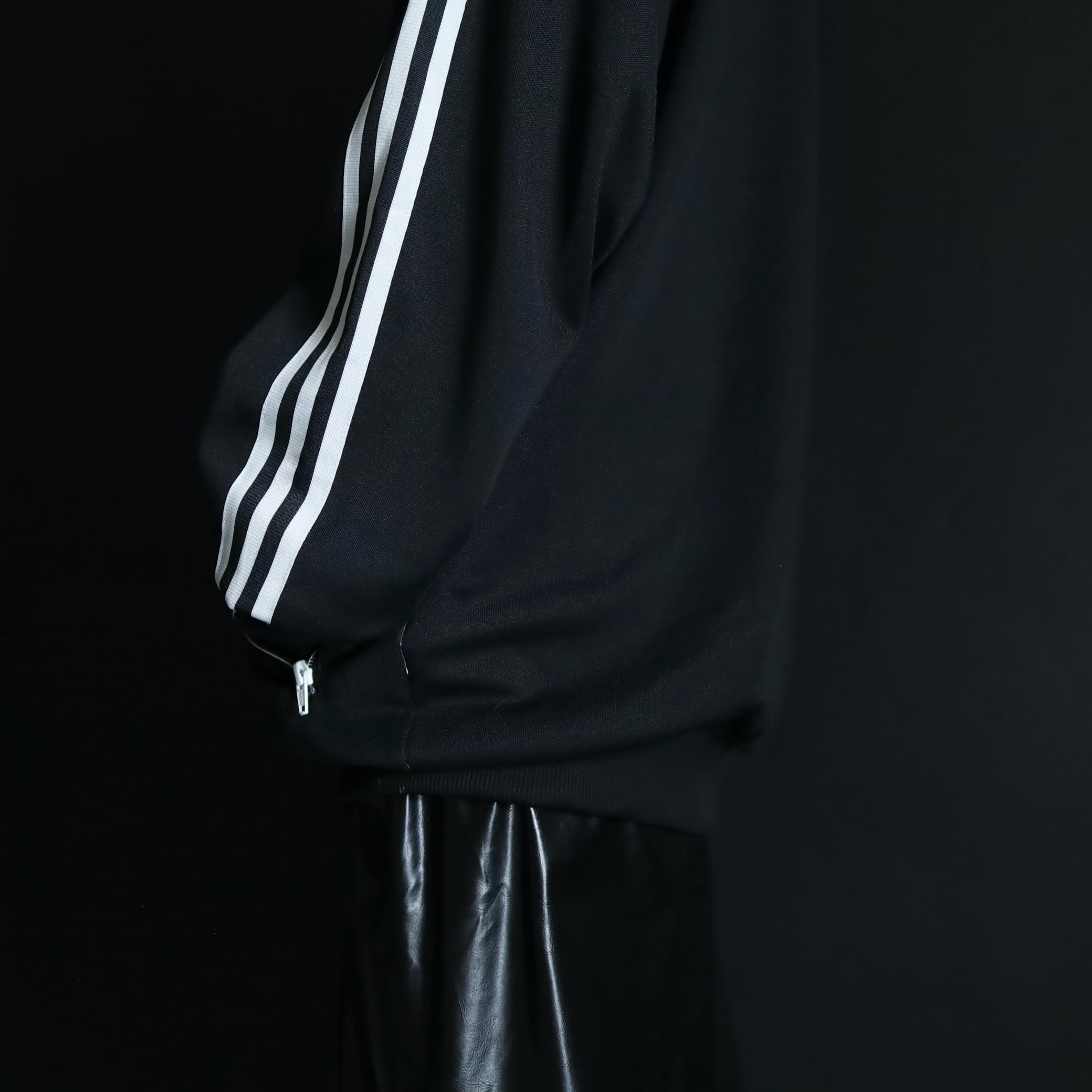 ブラックカラーのジャージボディをベースに,ネックリブ部さホワイトカラー切替.