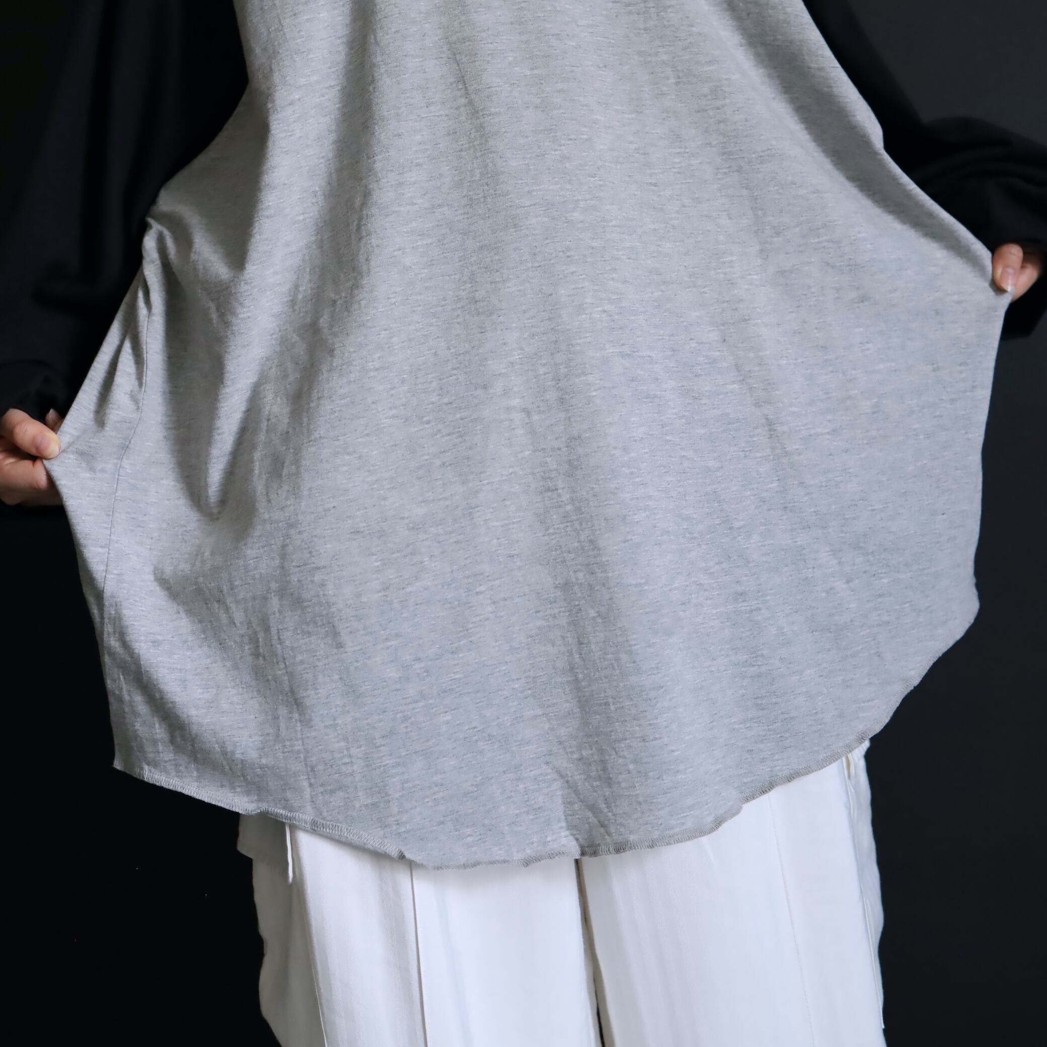 ラグランスリーヴで肩,腕が動かしやすく,リラックスした印象や抜け感のある仕上がり.