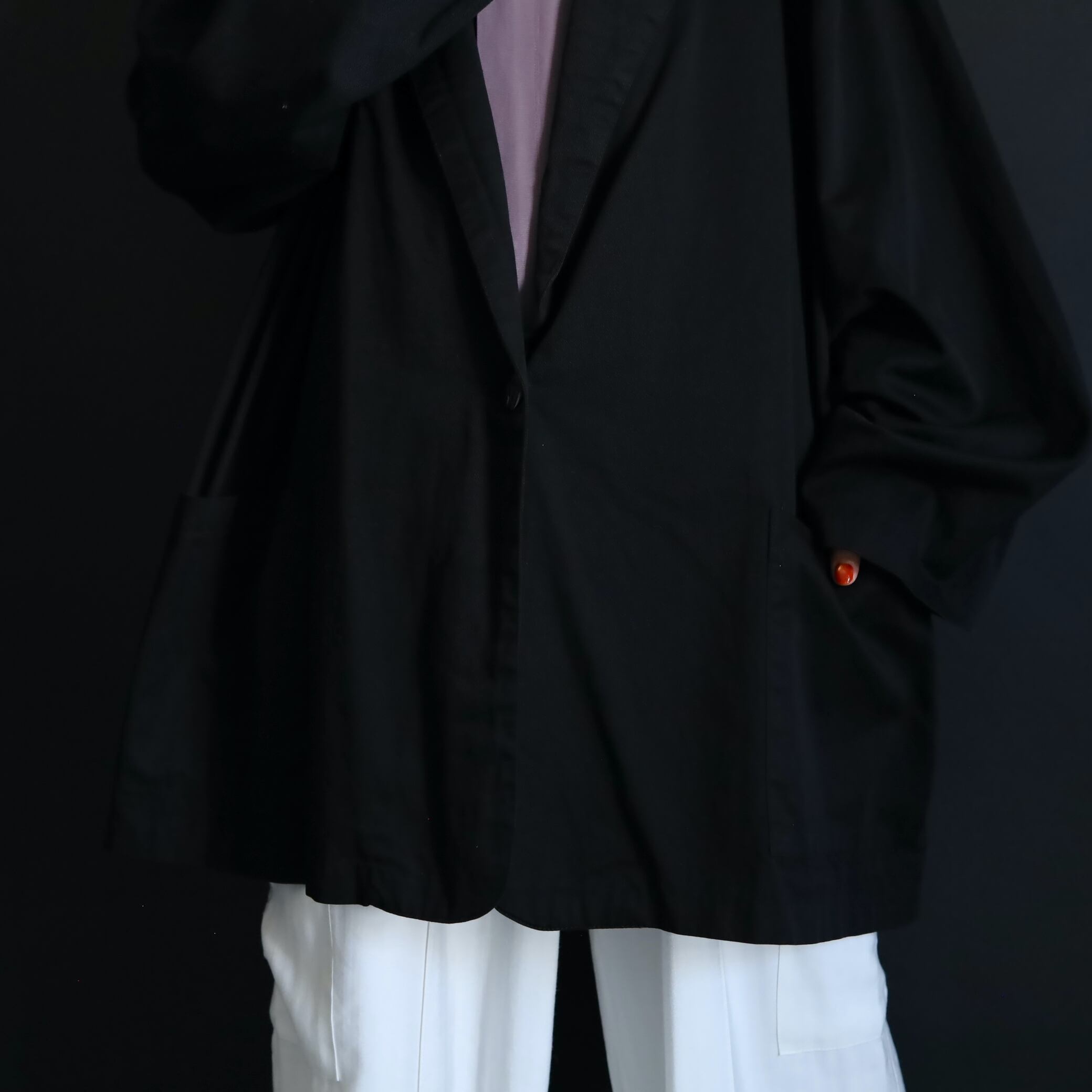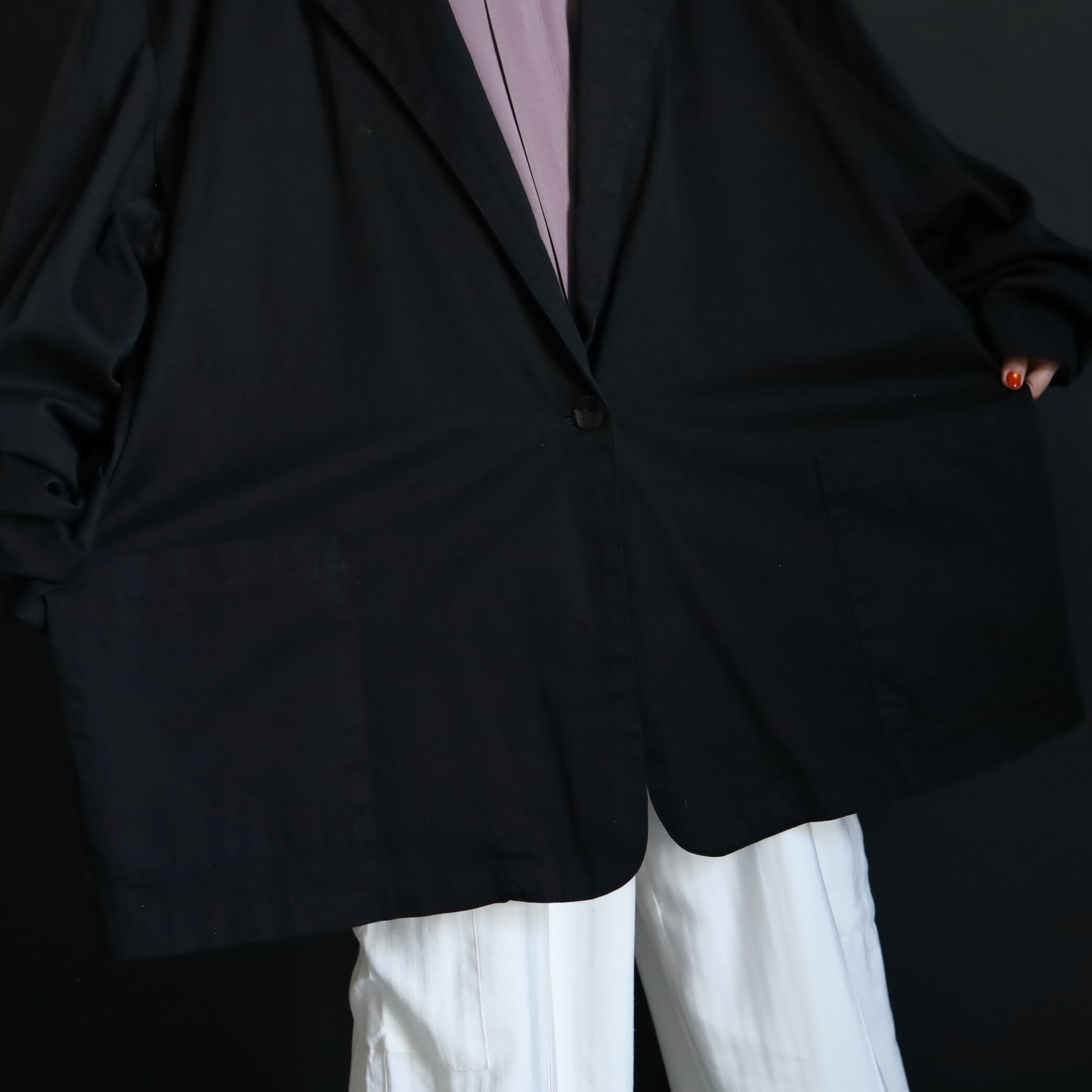 ビッグサイズなのは間違いないですが,生地がソフトなためシルエットも同様に柔らかく自然で,一般のテーラードのようなフォーマルさはなし.