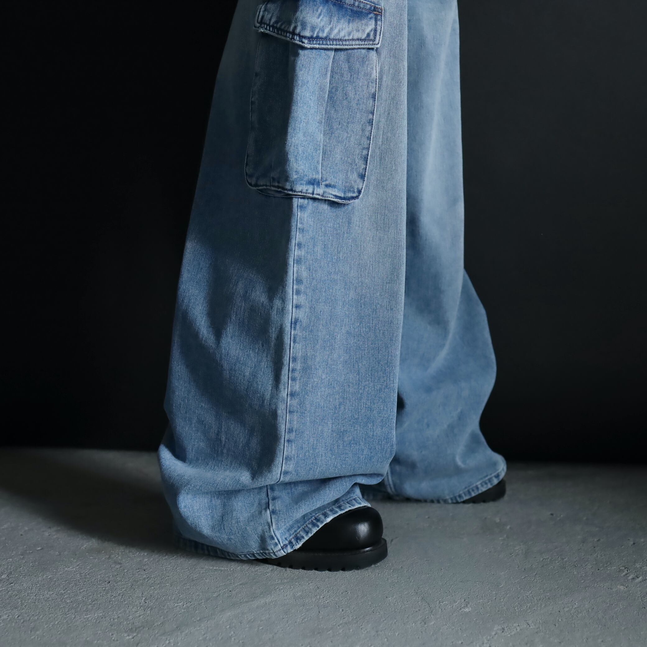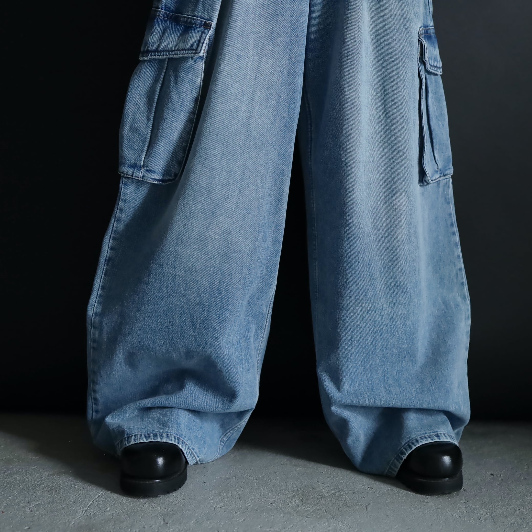 全体にムラのあるフェード感を持つアイスブルーデニム.