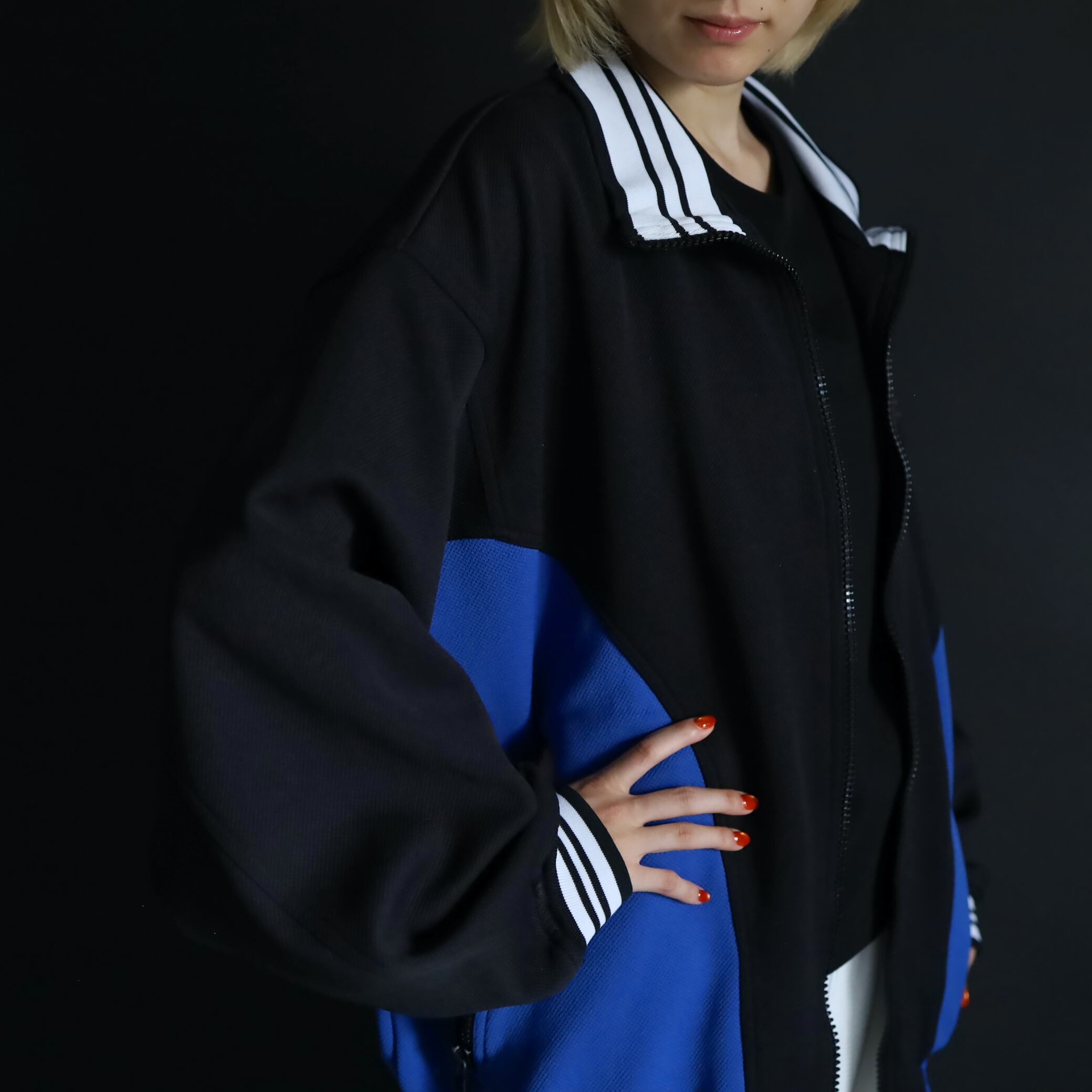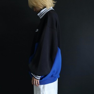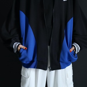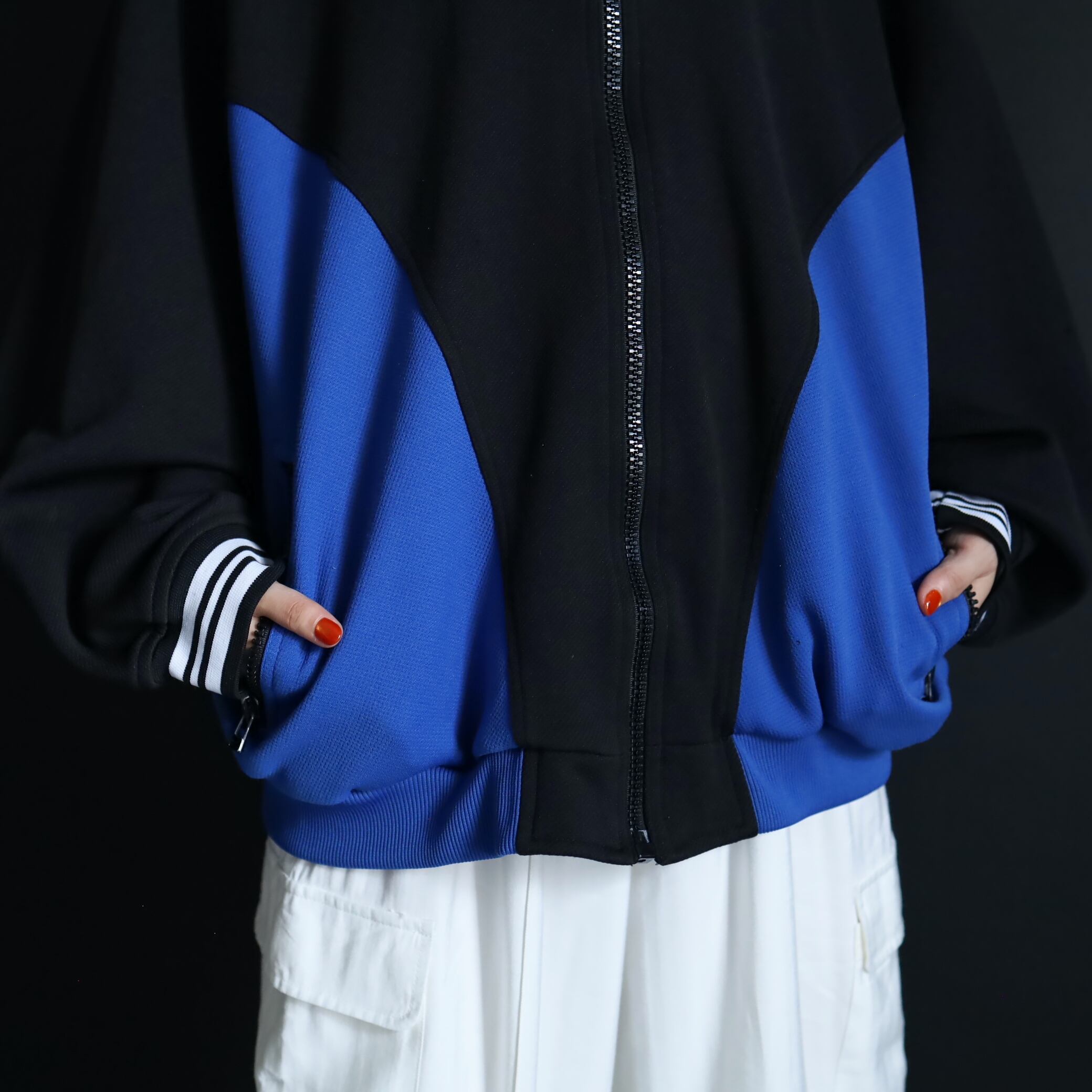 ブラック×ブルーのバイカラーボディをベースに,ネック,袖のリブは白黒のライン切替.