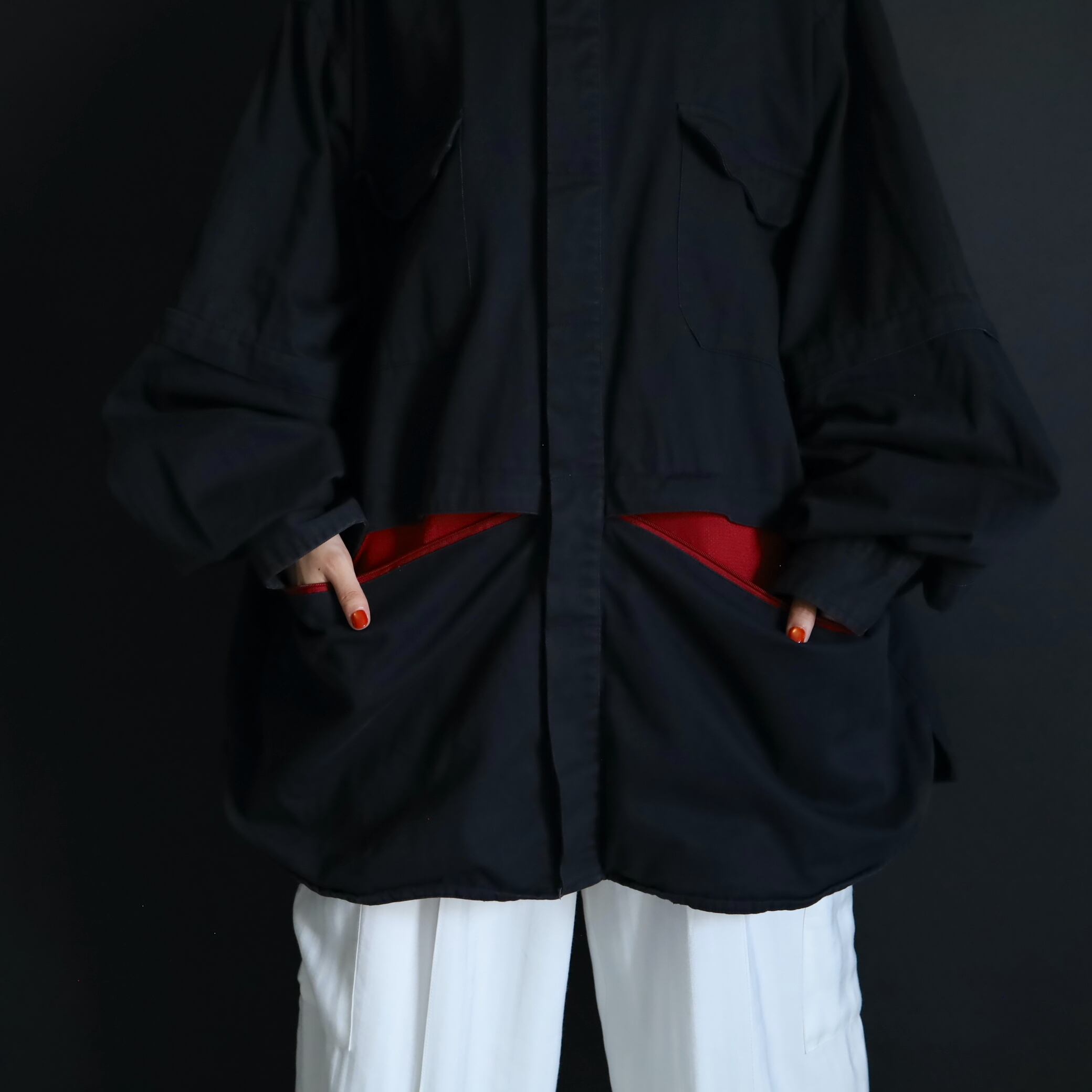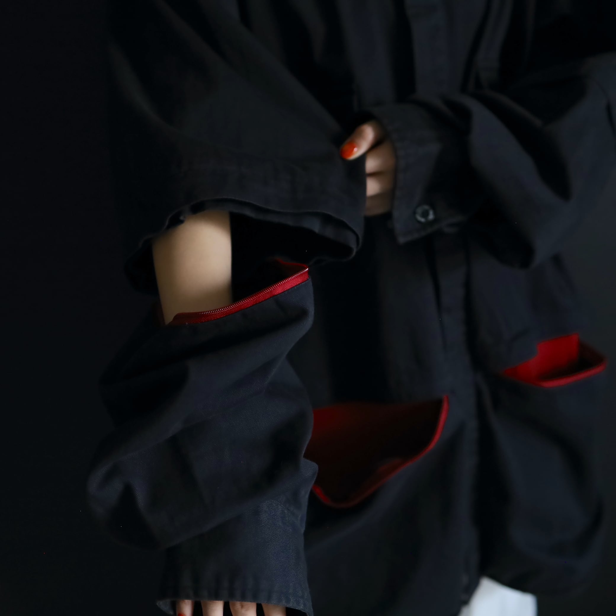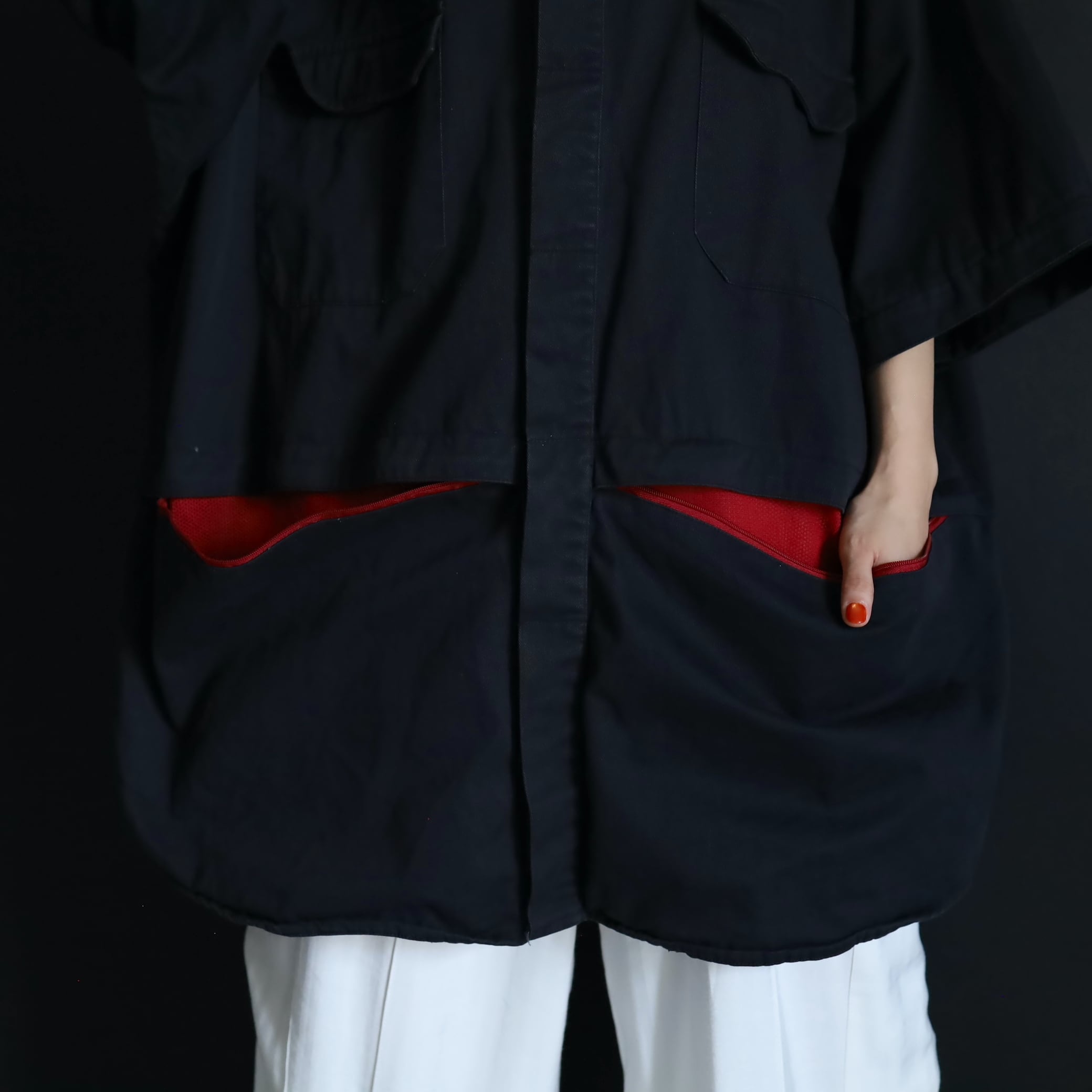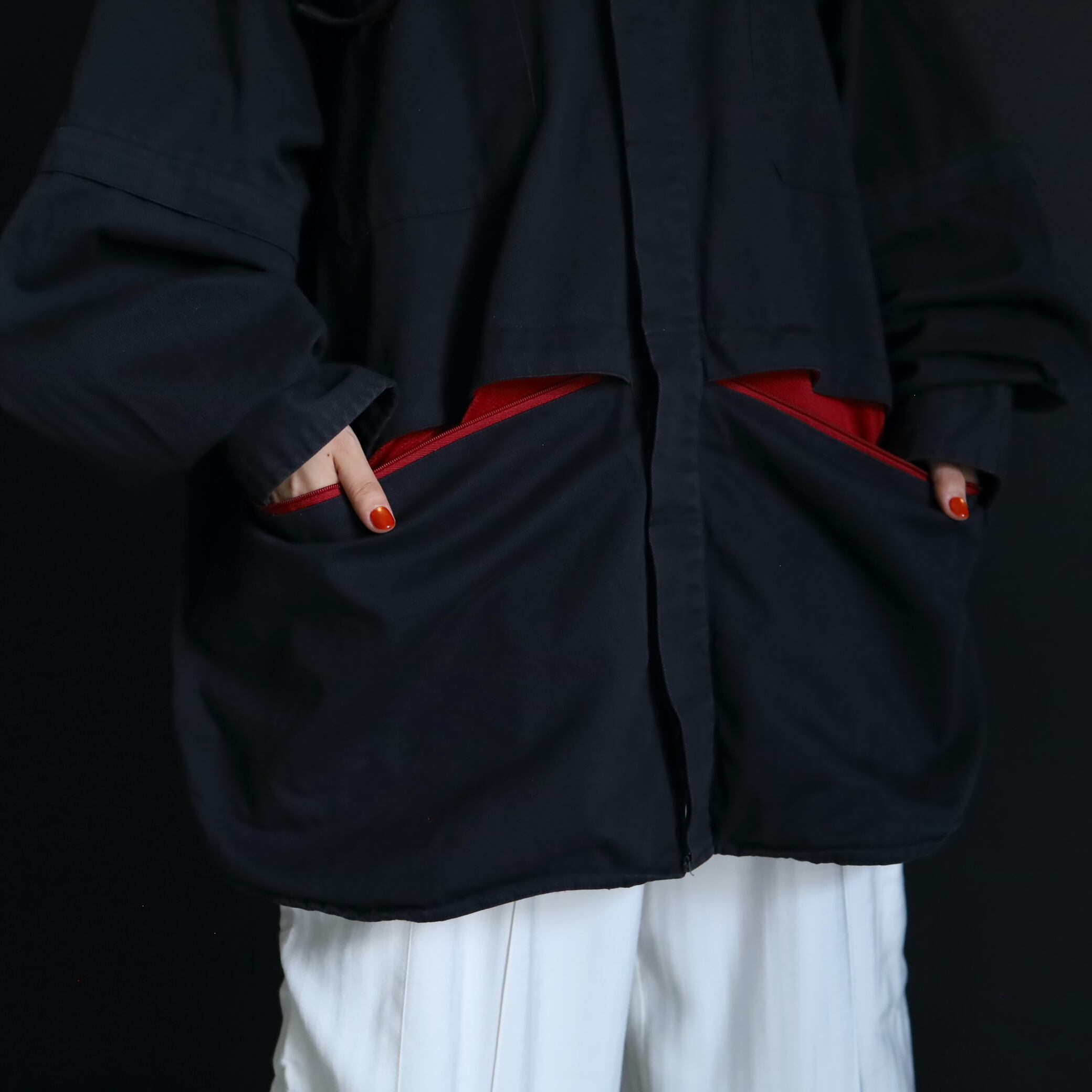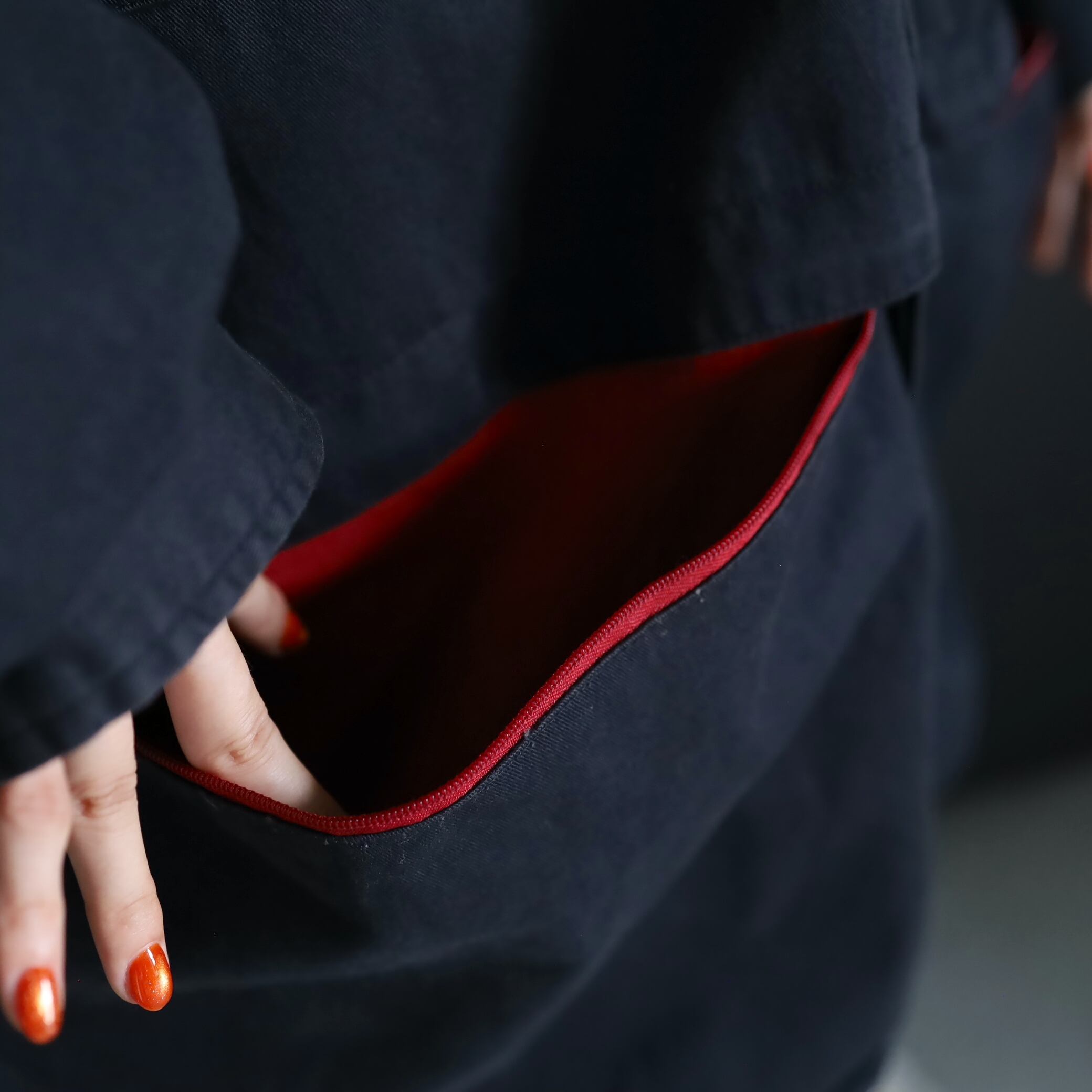 裾ポケット内部が赤のメッシュ生地のため,ジップ開けておくと絶妙な差し色として機能します.