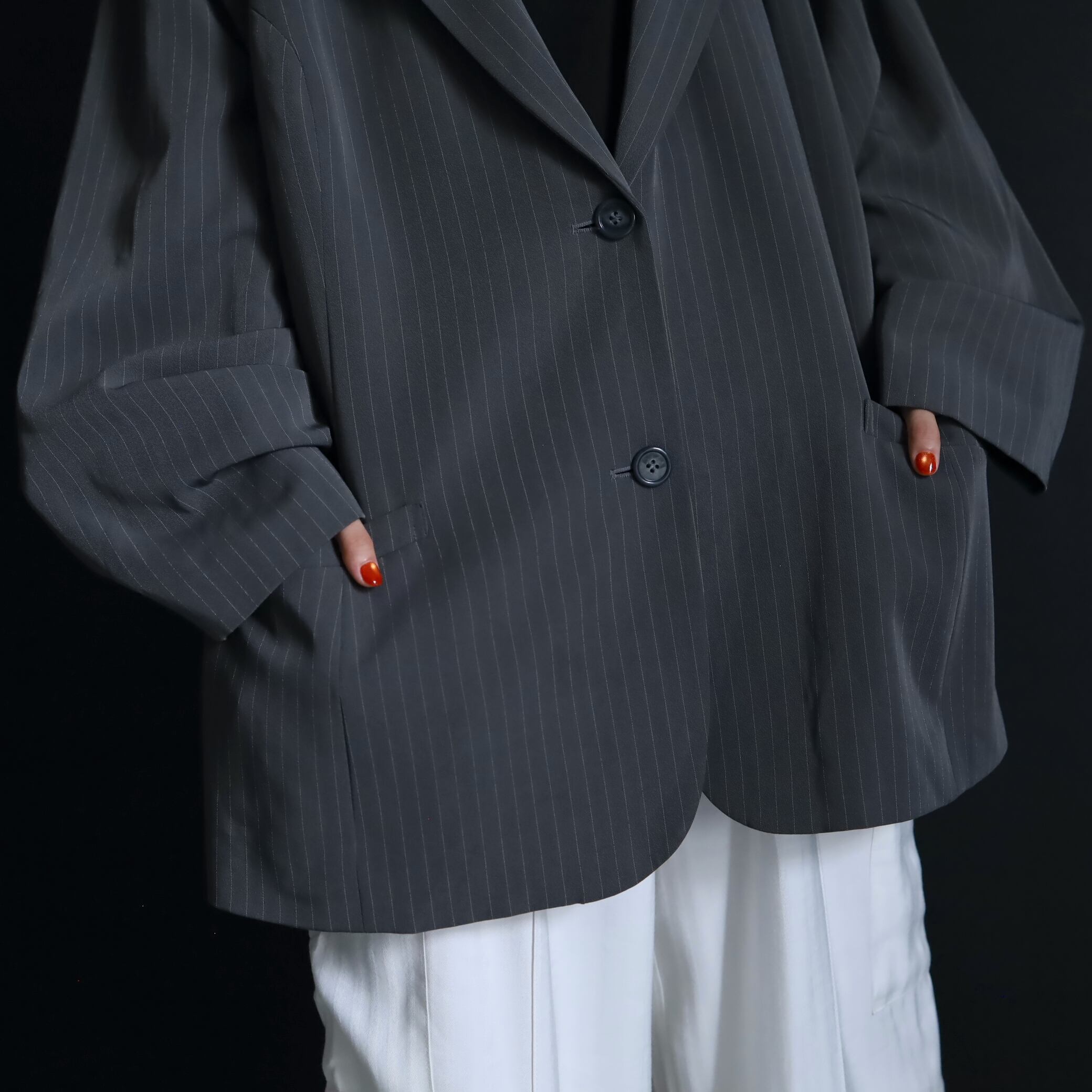 全体に等間隔のドビーストライプデザインで,より一層クラシカルな雰囲気に仕上がった一着.