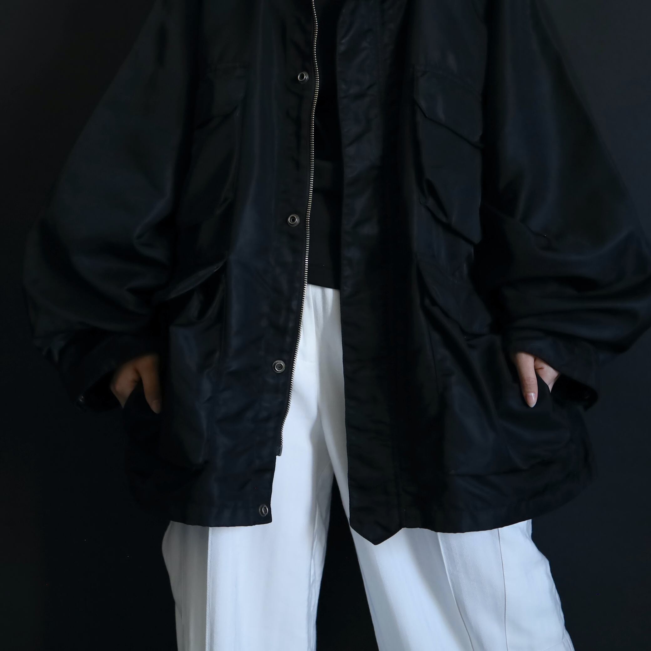 4つのフラップポケットに加え,下部の2つのポケットに重なるサイドポケット付き.