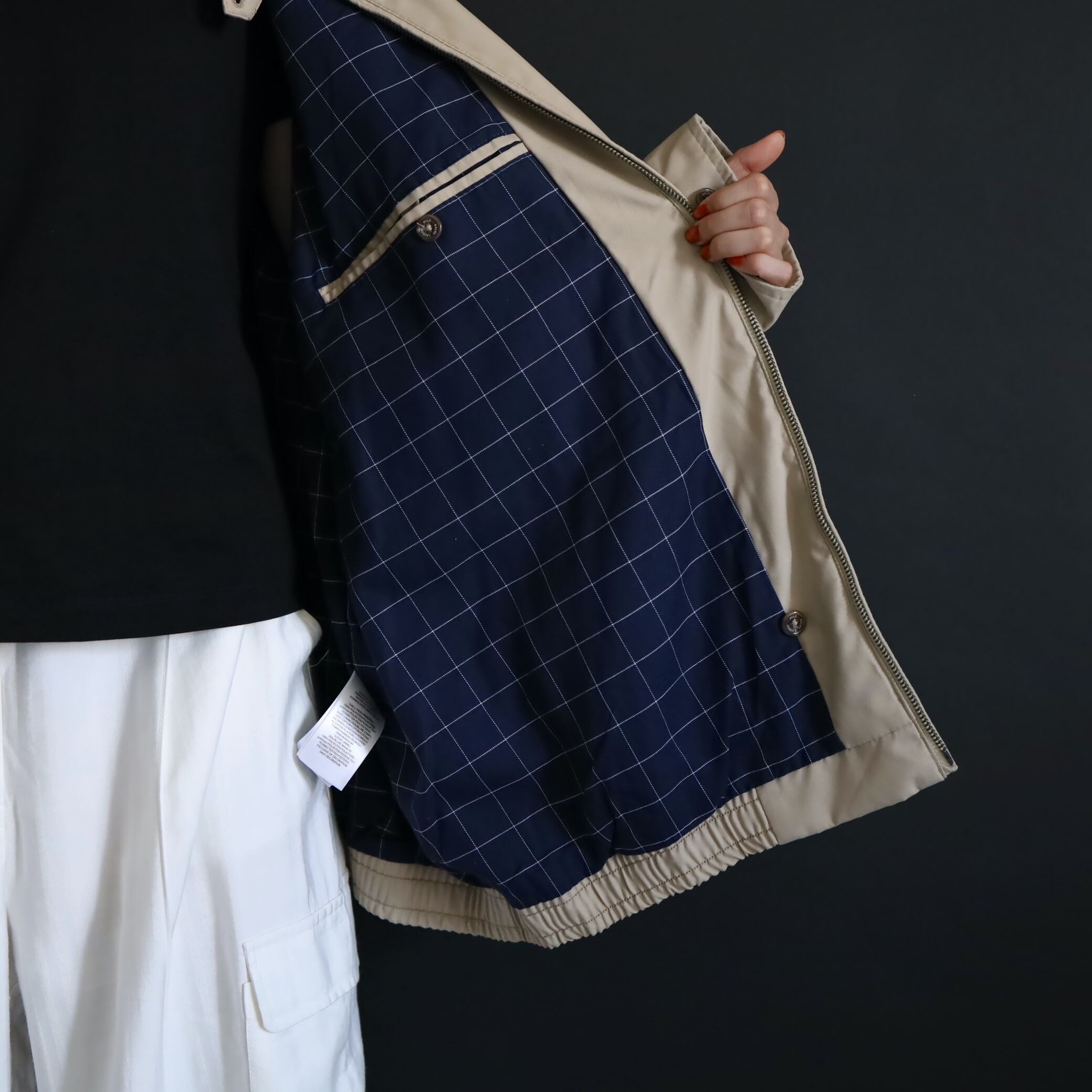 裏地ウィンドウペン柄,襟裏はネイビーカラー切替.