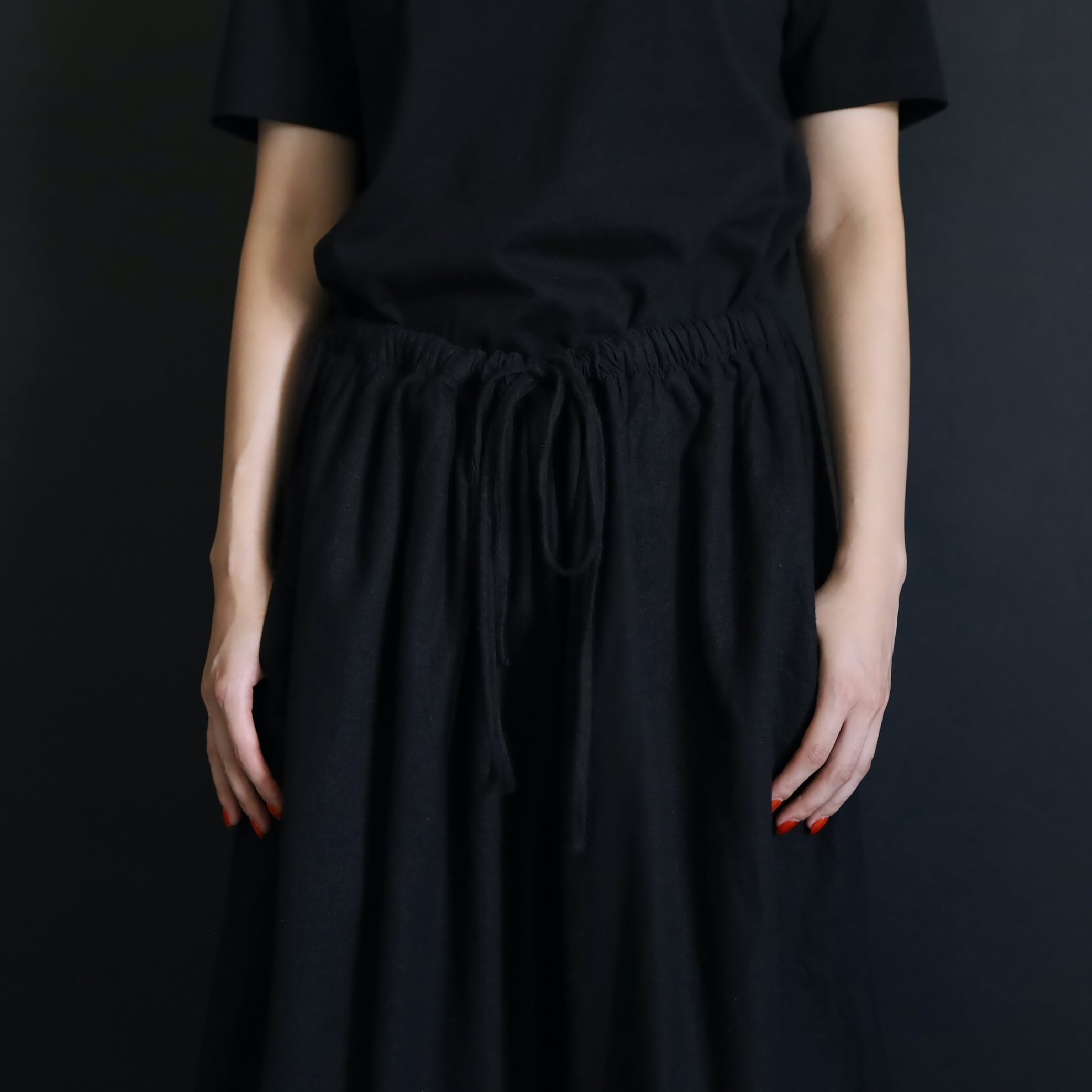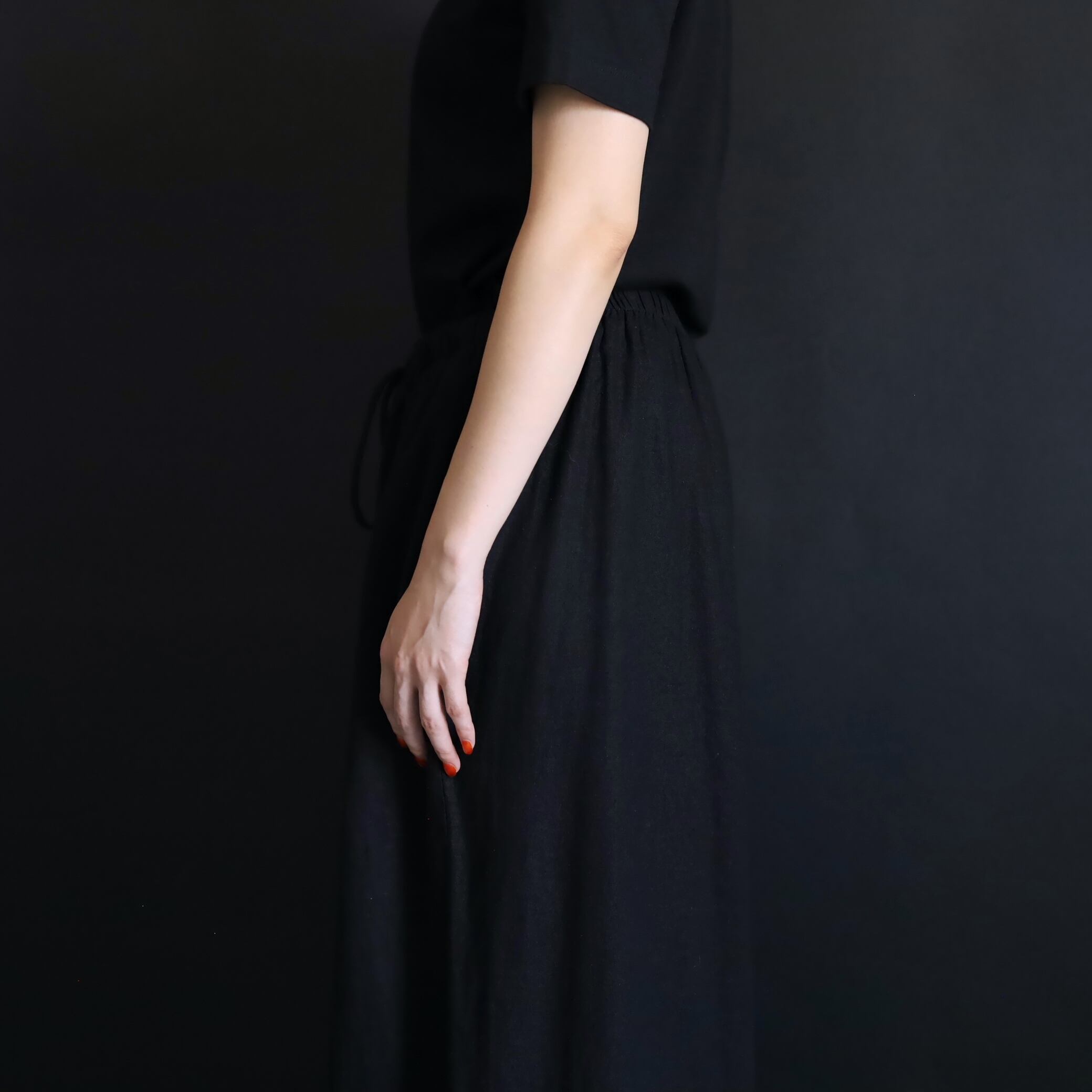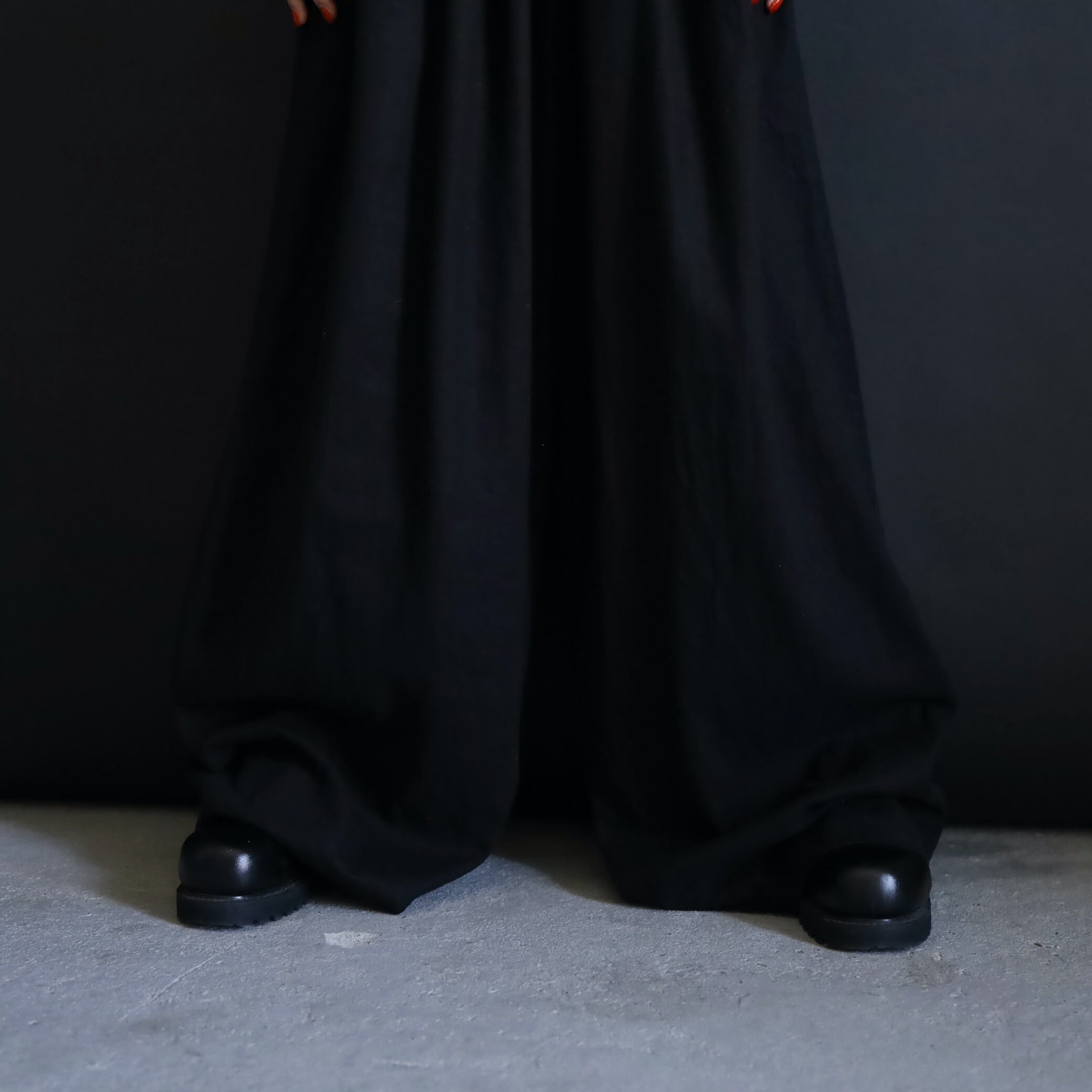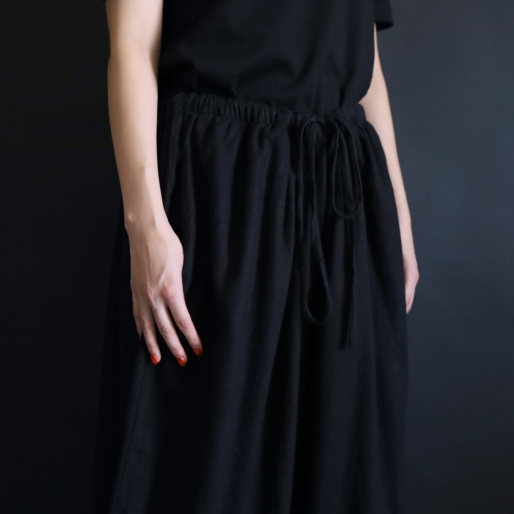 生地の落ち感や揺れる表情によるこのルーズ具合,ワイドパンツファンには堪らない一本かと.