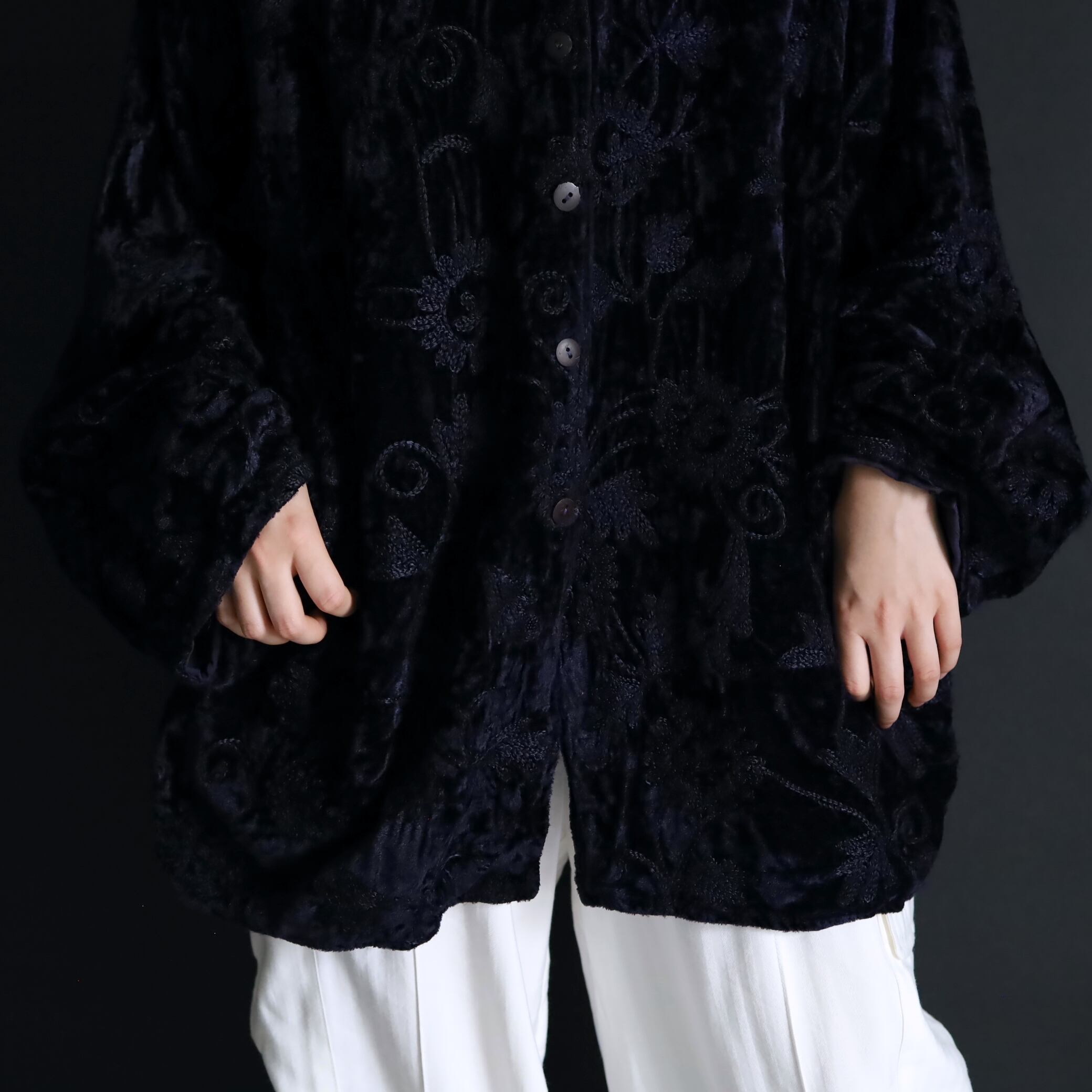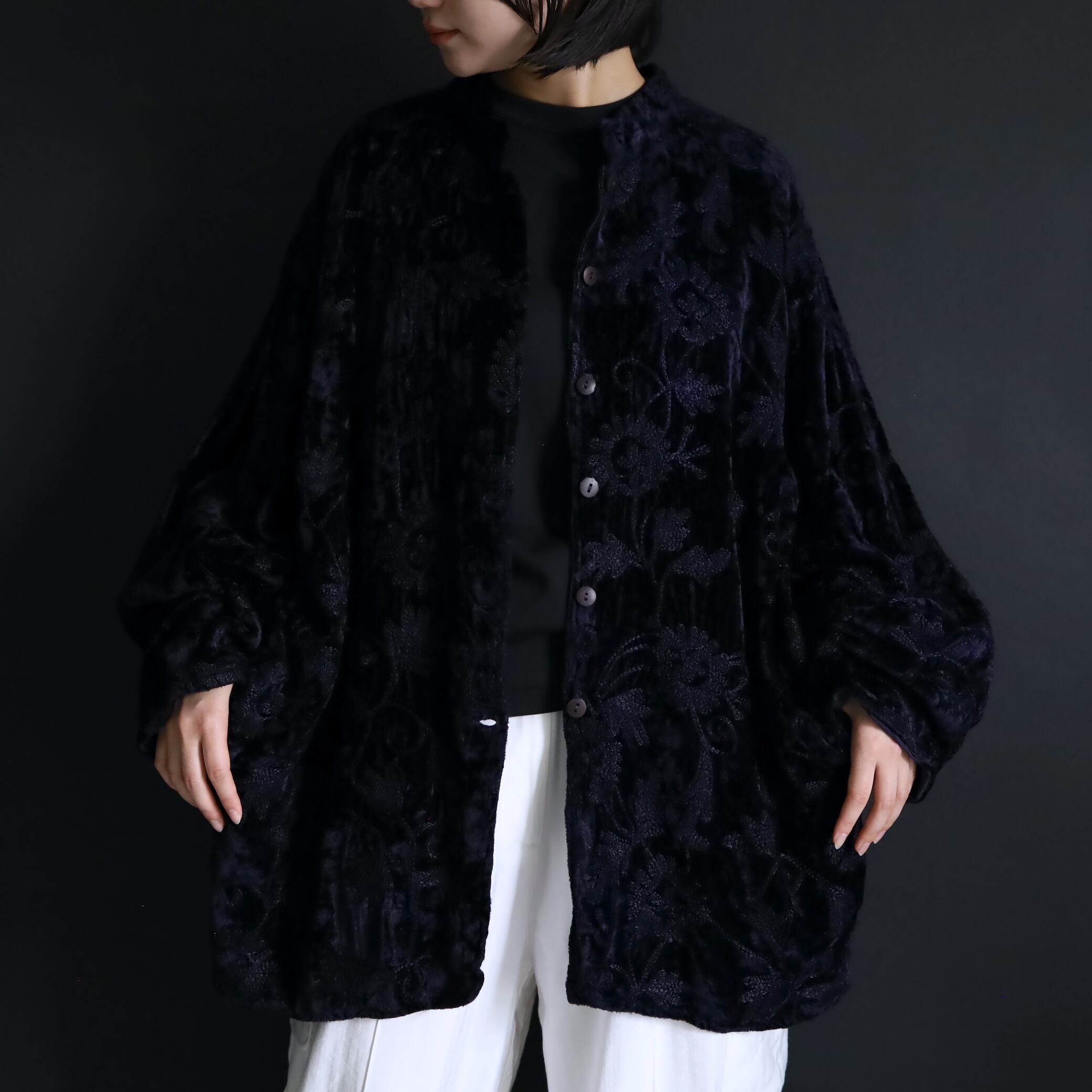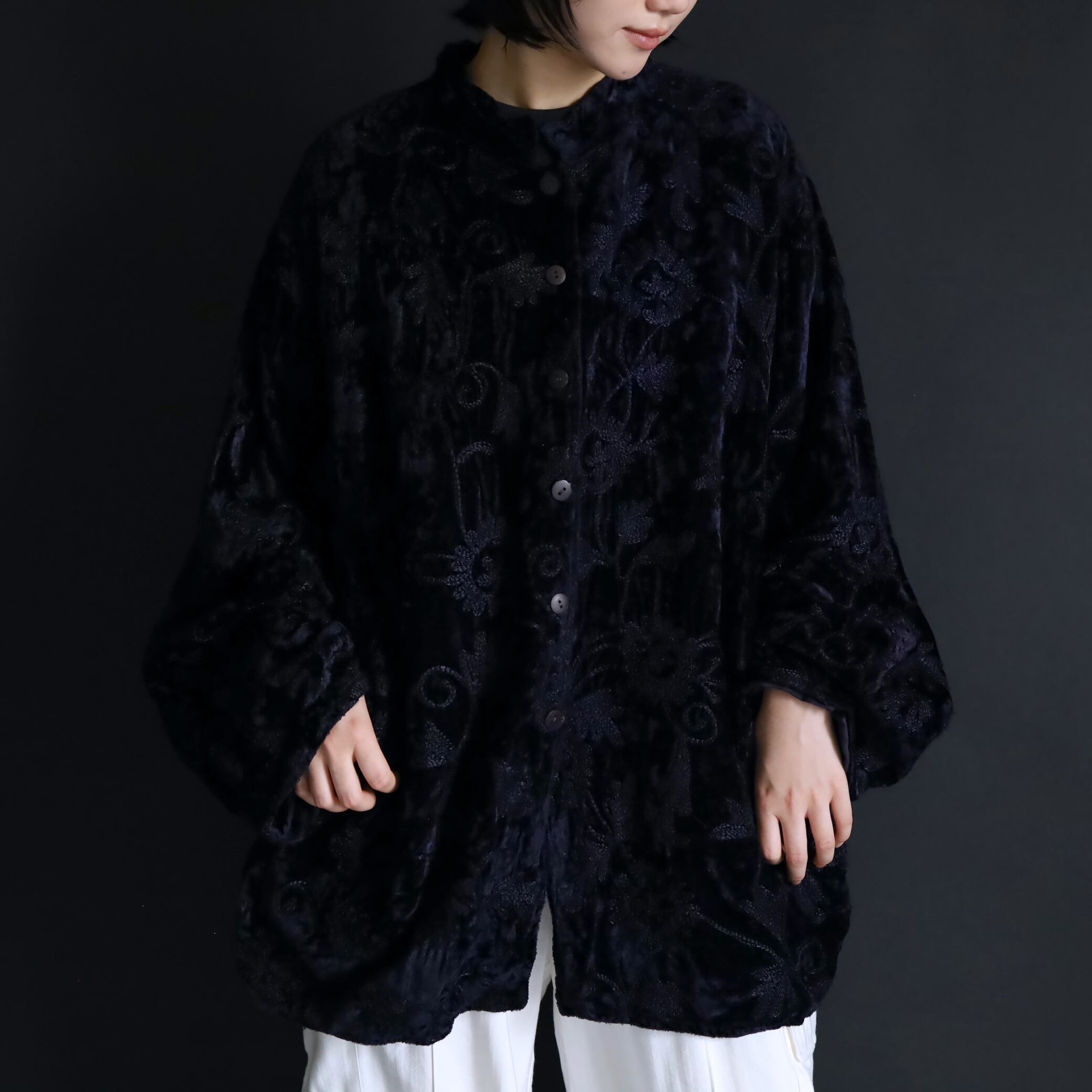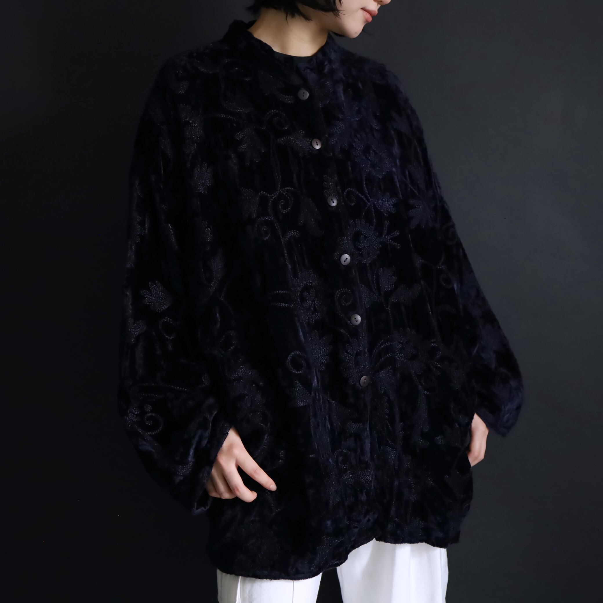 総刺繍でデザインされたスタンドカラージャケット.